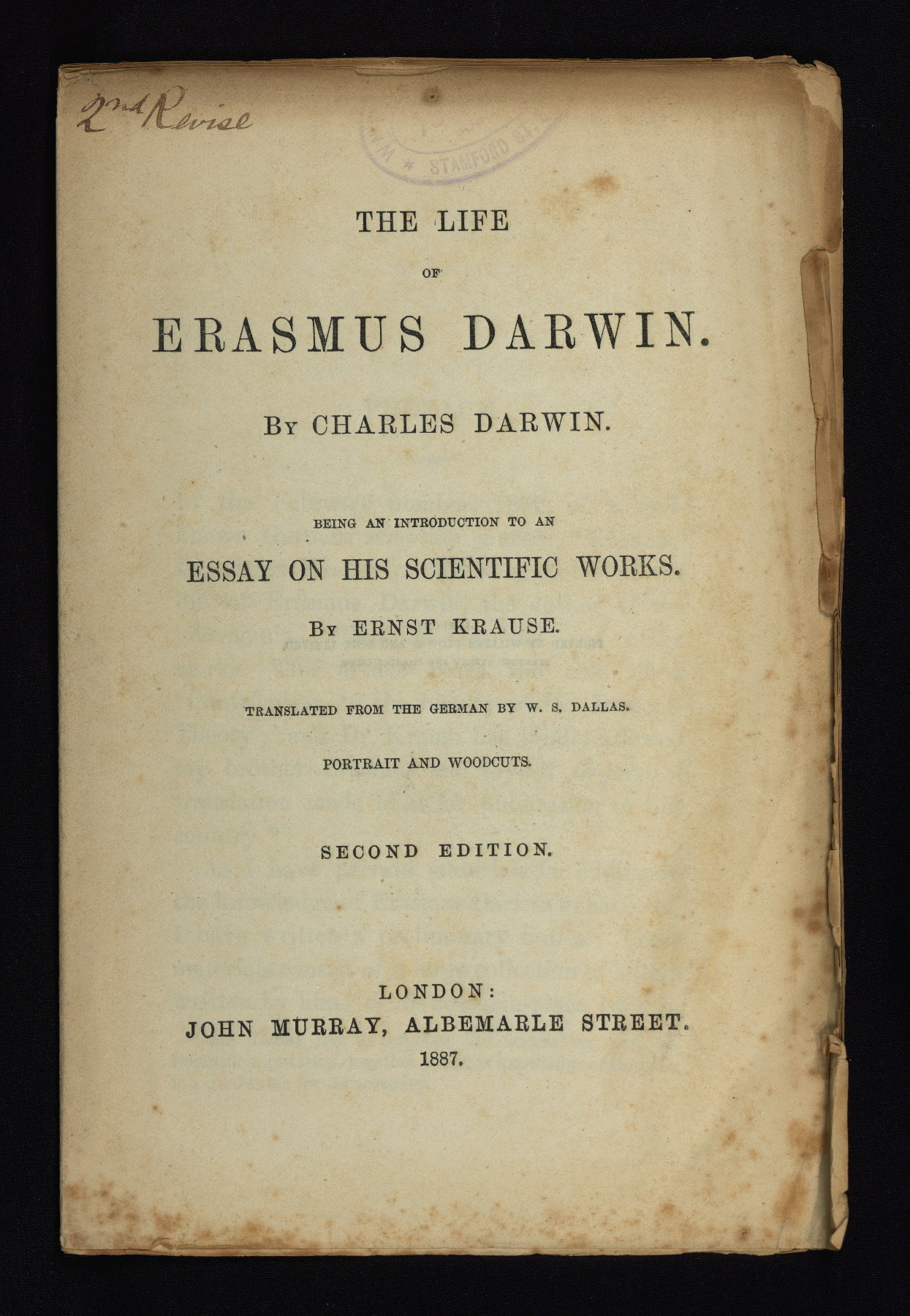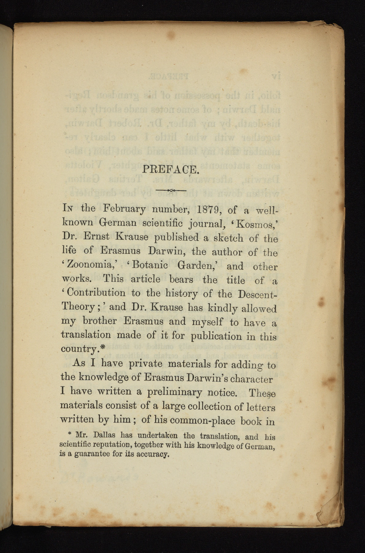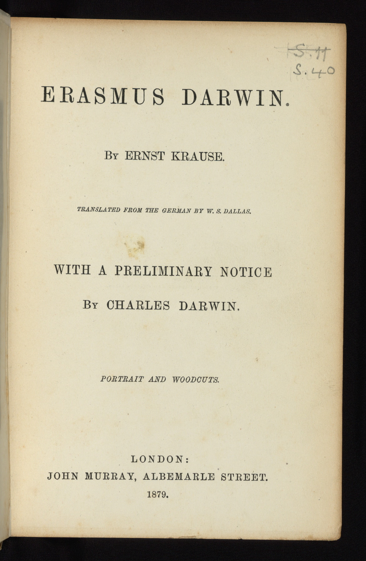 - Description: These are images of Walters Ms. PC.9, Erasmus Darwin, on paper, written by Krause, Ernst, 1839-1903, Dallas, W. S. (William Sweetland), 1824-1890, Darwin, Charles, 1809-1882, London: John Murray, 1879