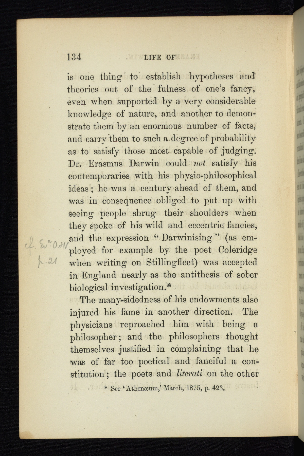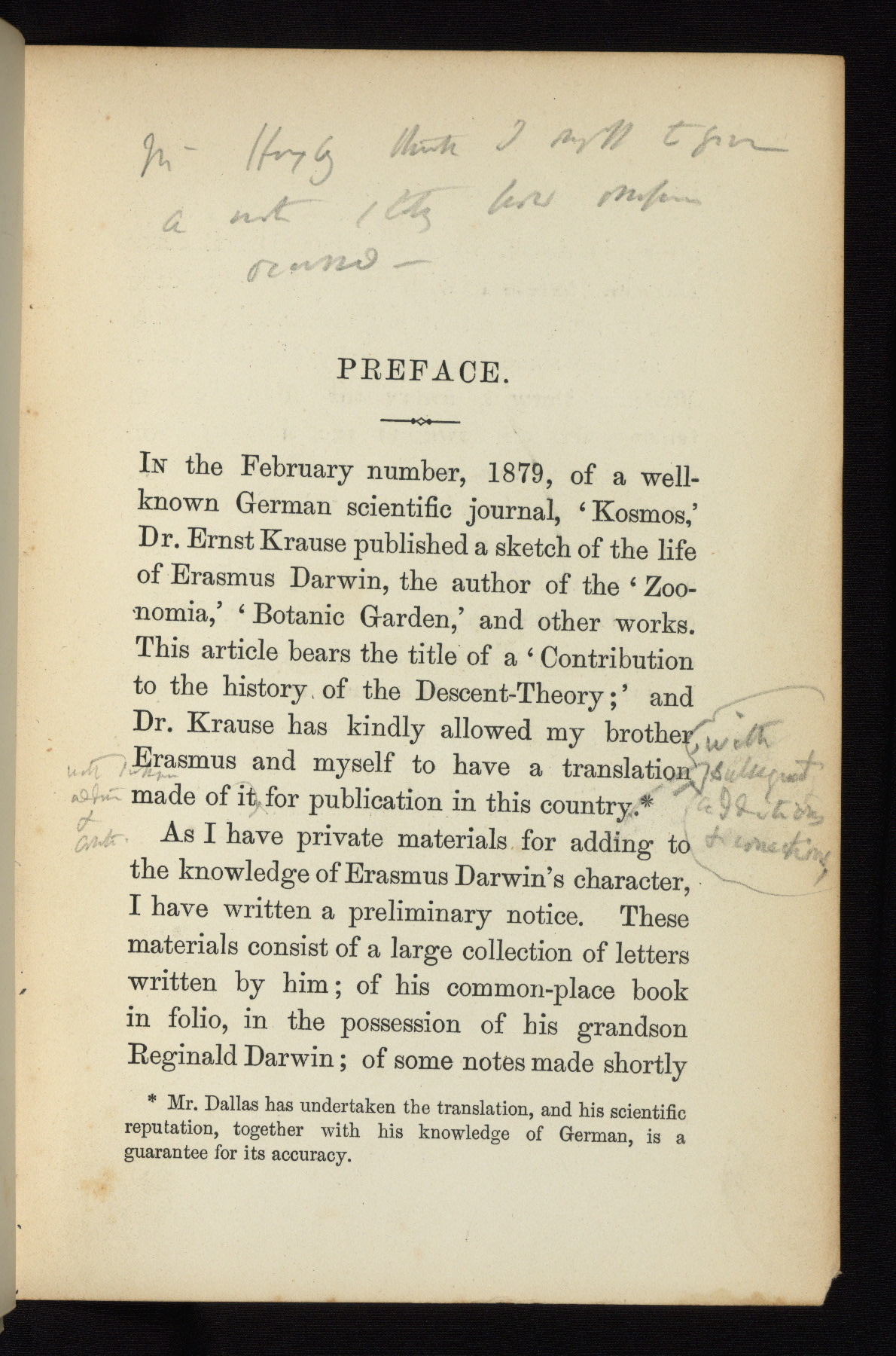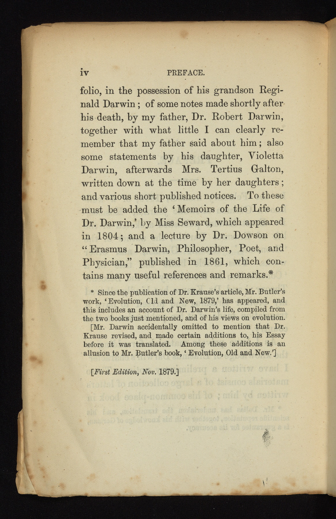 - Description: These are images of Walters Ms. PC.9, Erasmus Darwin, on paper, written by Krause, Ernst, 1839-1903, Dallas, W. S. (William Sweetland), 1824-1890, Darwin, Charles, 1809-1882, London: John Murray, 1879