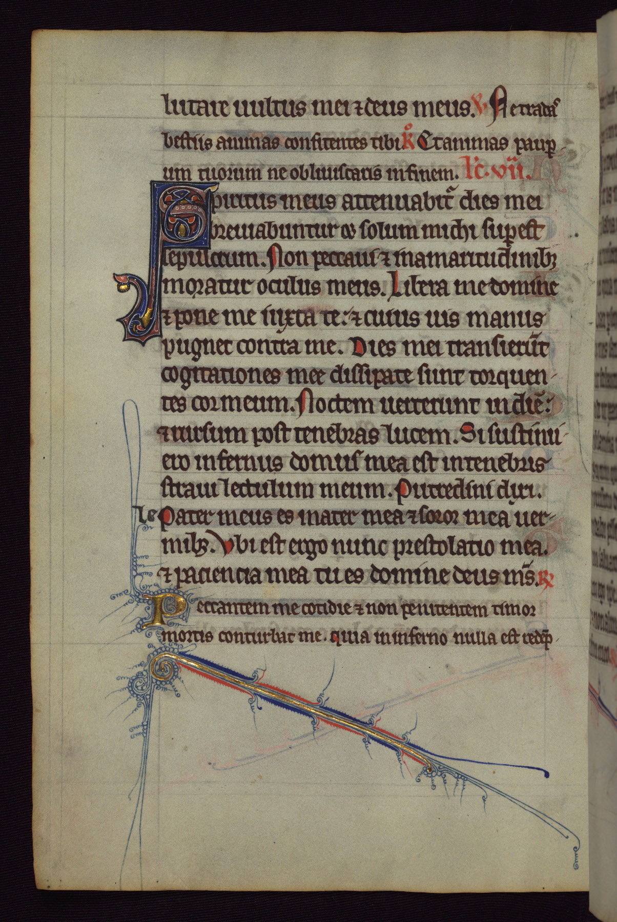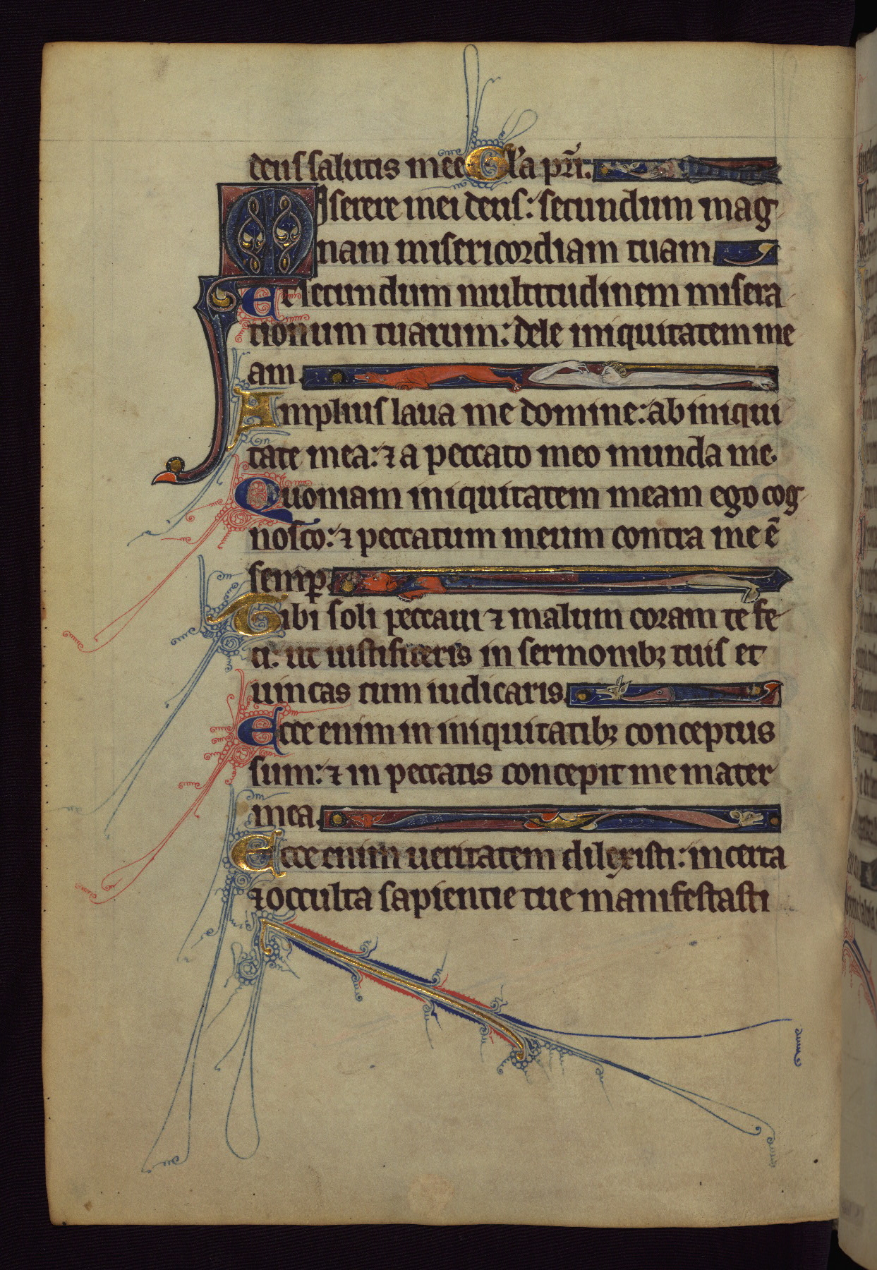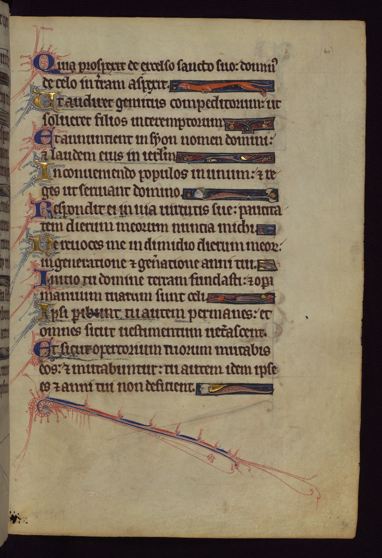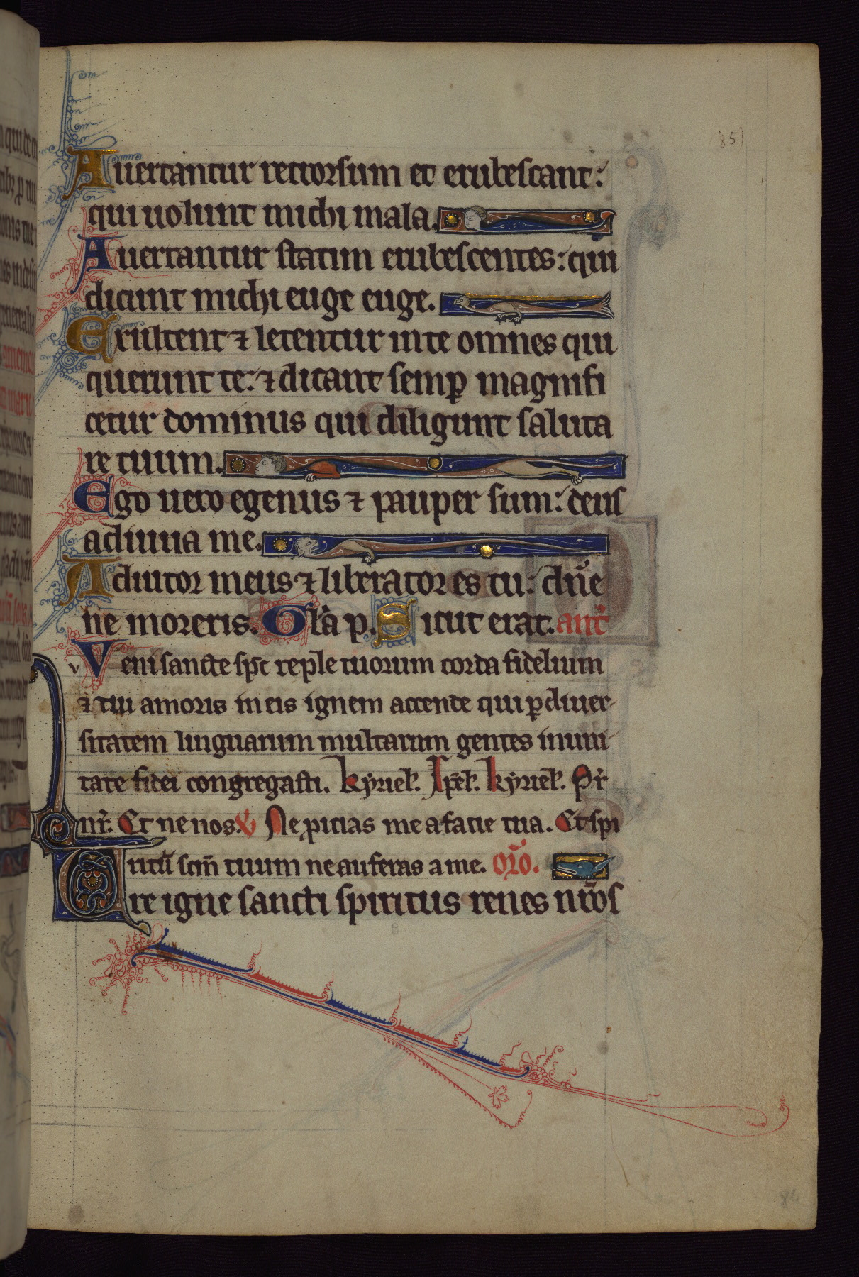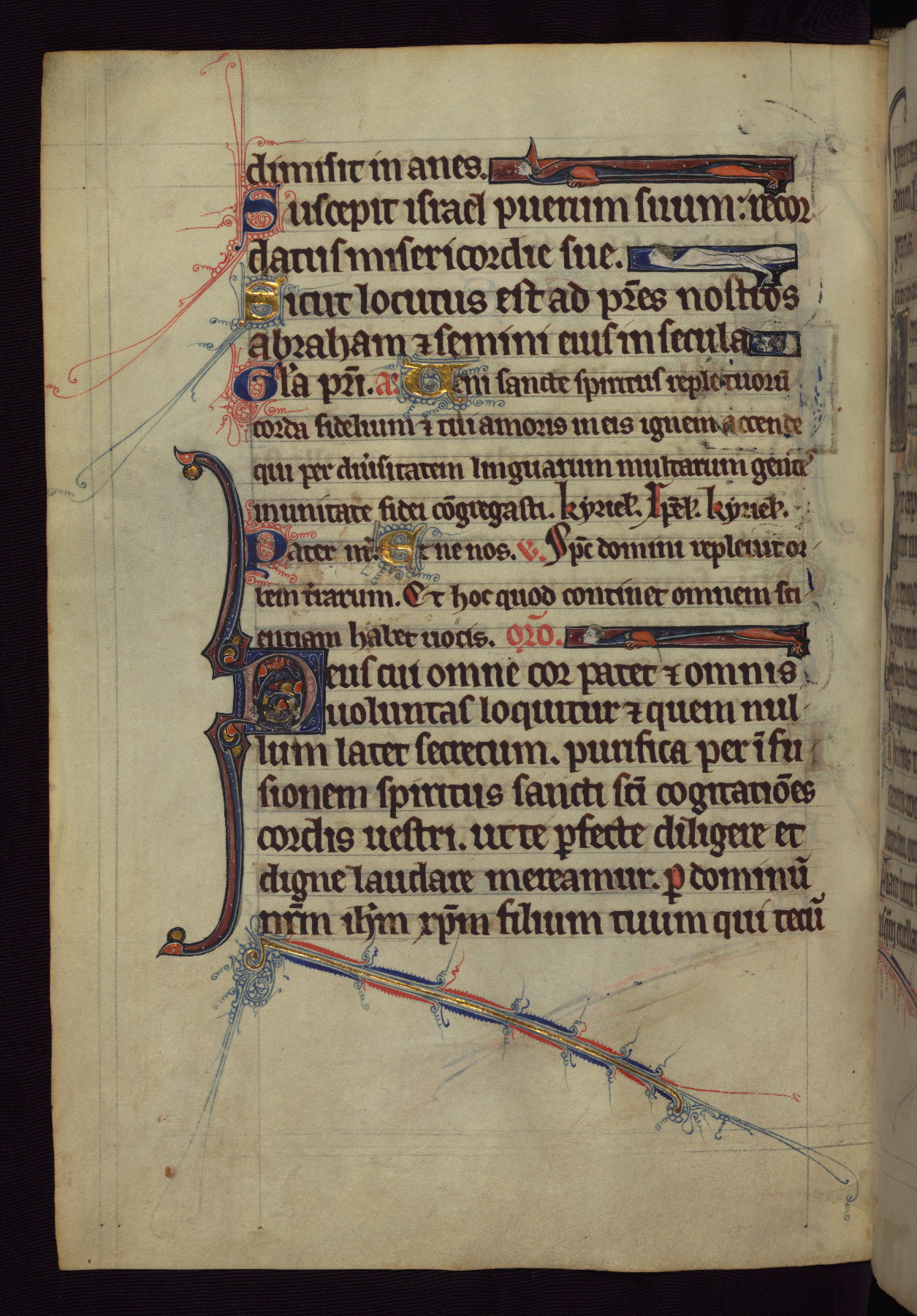 This finely illuminated and iconographically rich book of hours was made in England at the end of the thirteenth century. The manuscript is incomplete and misbound. Its main artist can also be found at work in a Bible (Oxford, Bodleian Library Ms. Auct. D.3.2) and a psalter (Cambridge, Trinity College Cambridge Ms. O.4.16). The manuscript contains a number of unusual texts, including the Hours of Jesus Crucified and the Office of St. Catherine. The patron of the manuscript is not clear; a woman is depicted as praying in many of the initials, but rubrics in the Office of the Dead mention "freres" (brothers). The imagery is inventive, and the Hours of Christ Crucified are graced with images depicting the funeral of Reynard the Fox in its margins. In the absence of a calendar, it is not possible to locate the origin of the manuscript precisely.