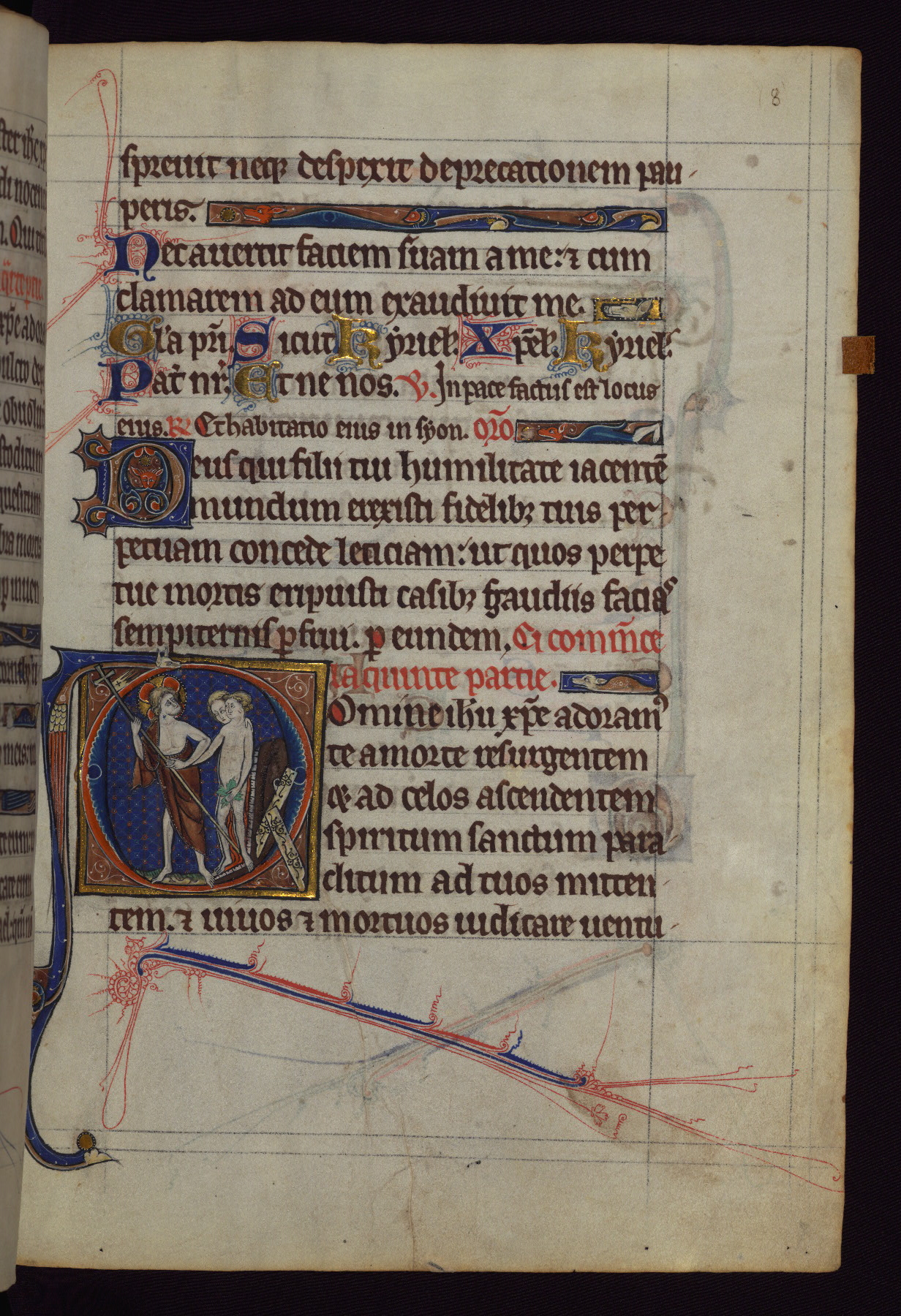 - Decoration note: Eight historiated initials; minor decorated initials; line fillers; marginalia