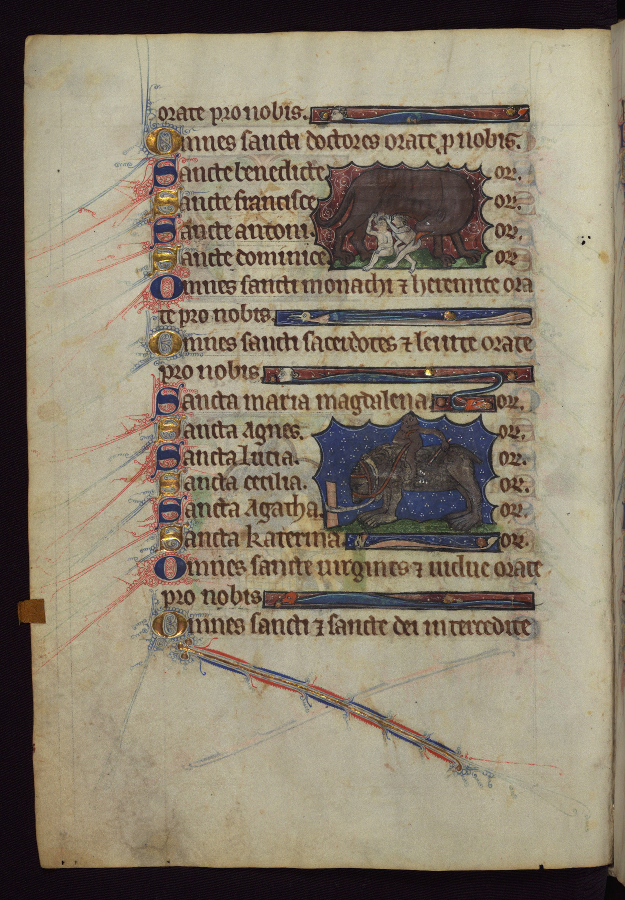Randall, Lilian M. C. "An Elephant in the Litany: Further Thoughts on an English Book of Hours in the Walters Art Gallery (W. 102)," in Willene B. Clark and Meradith T. McMunn, eds., Beasts and Birds of the Middle Ages. The Bestiary and Its Legacy (Philadelphia: University of Pennsylvania Press, 1989), 106-133.