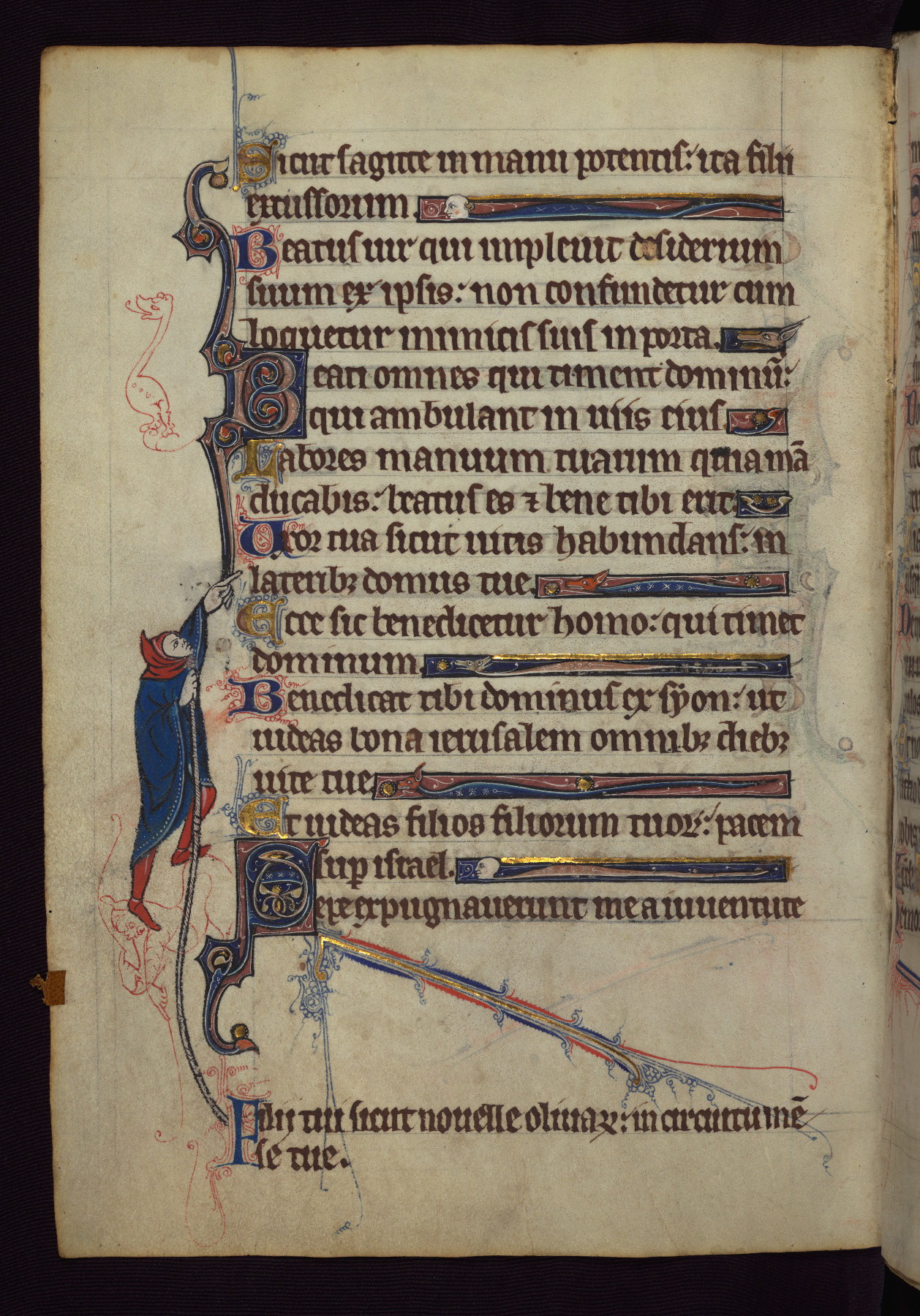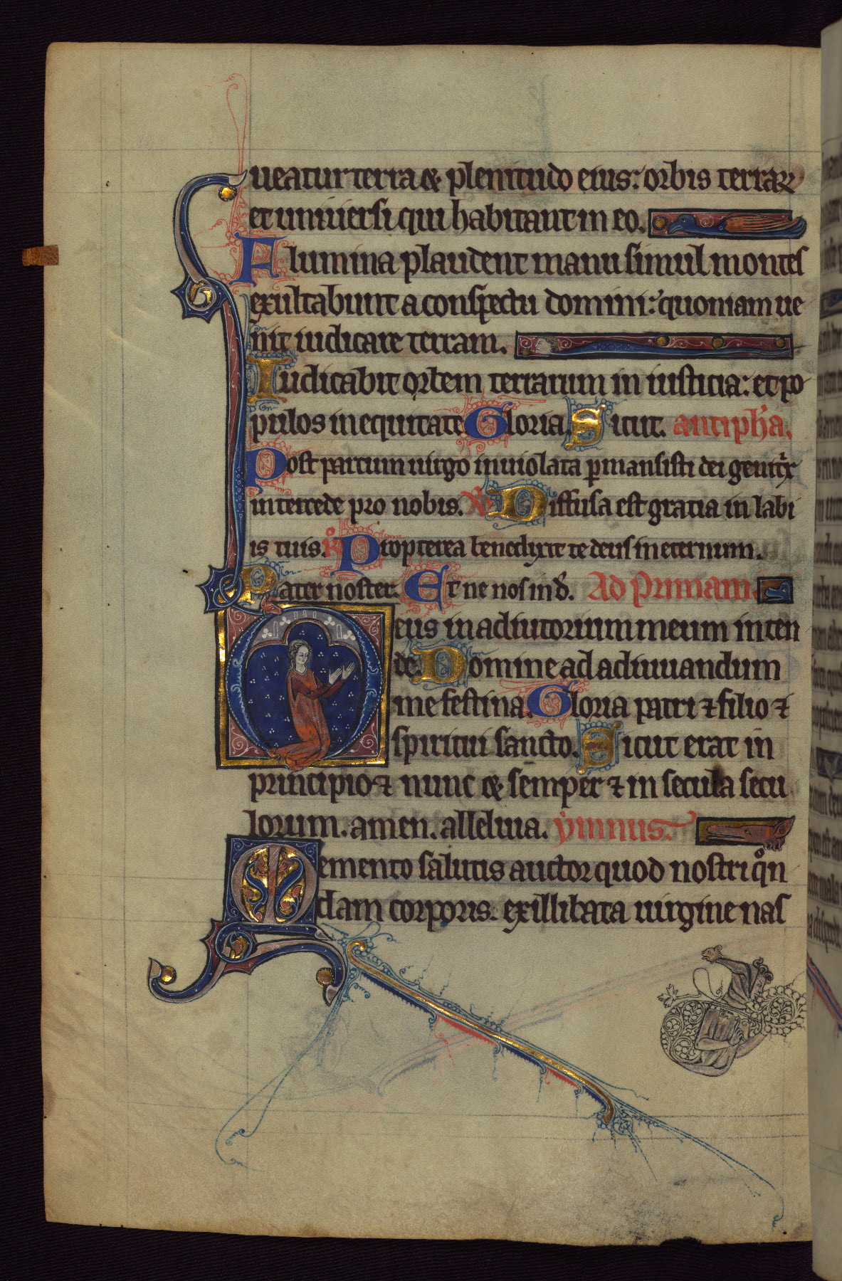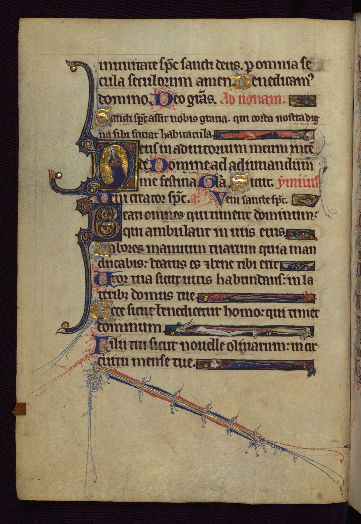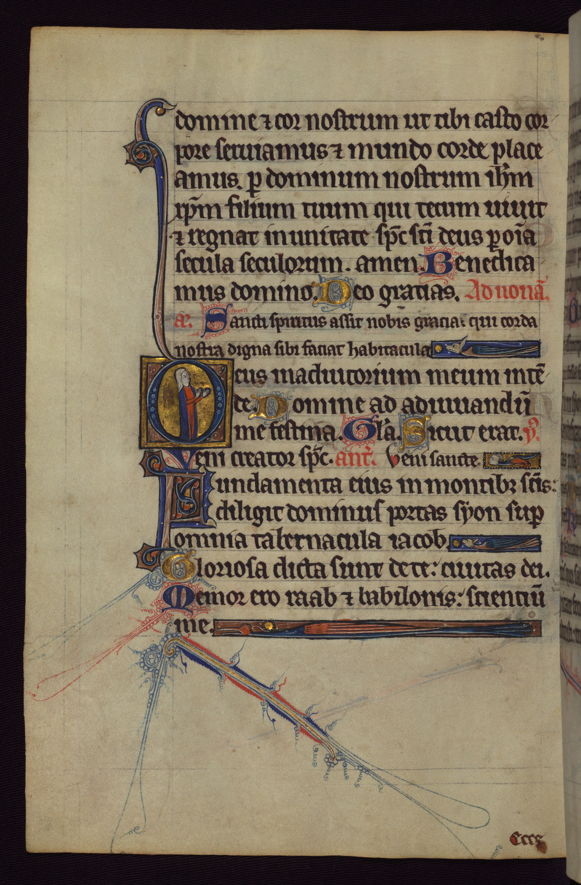 - Decoration note: One half-page line drawing; one historiated initial; line fillers; marginalia