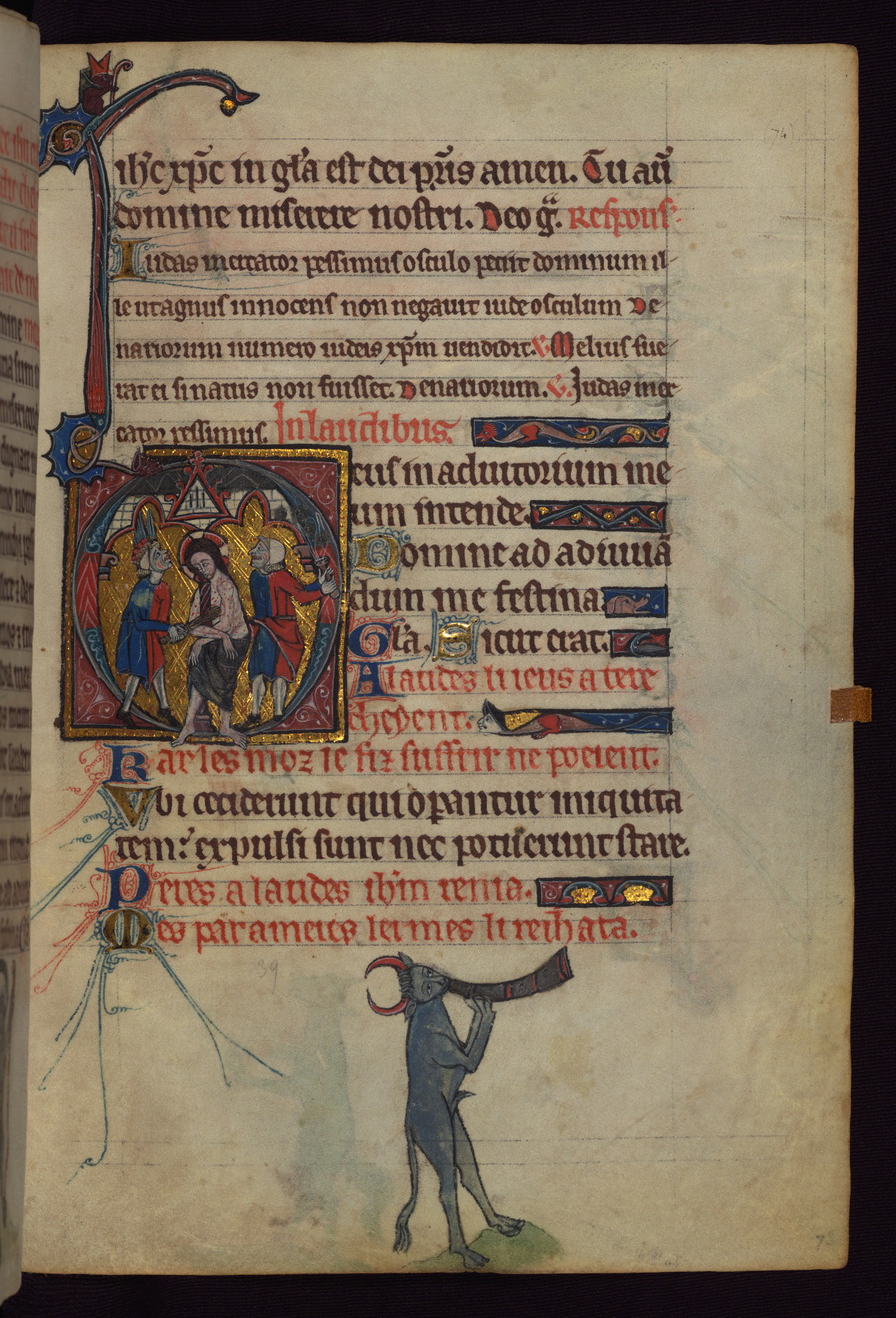 - Title: Flagellation; bull blowing a horn, from a marginal cycle of images of the funeral of Renard the Fox