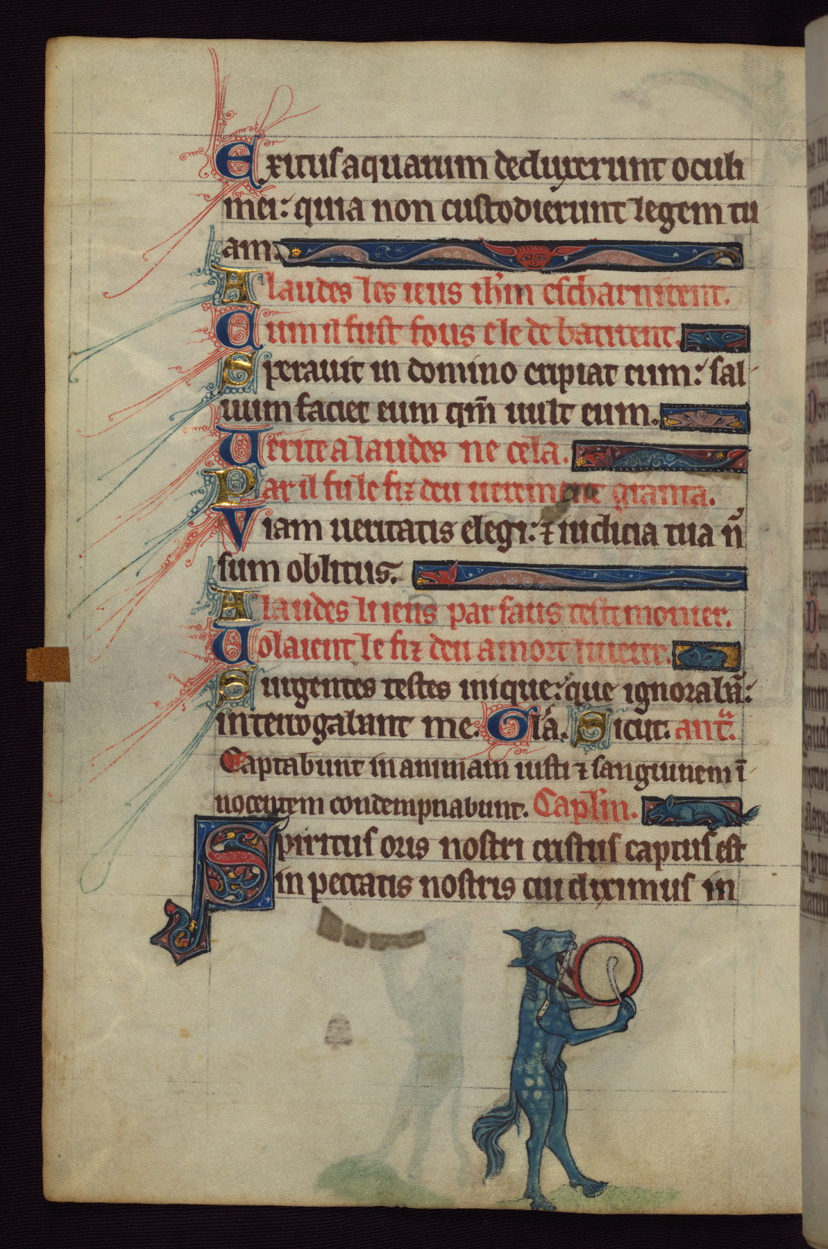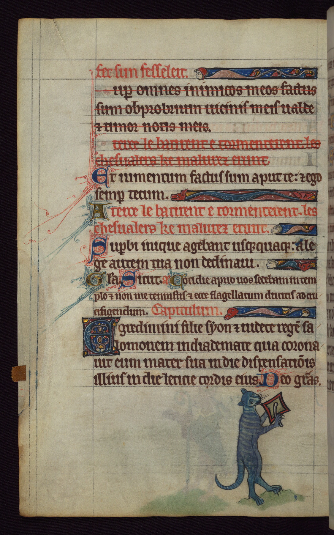 - Title: Cat beating a cymbal, from a marginal cycle of images of the funeral of Renard the Fox