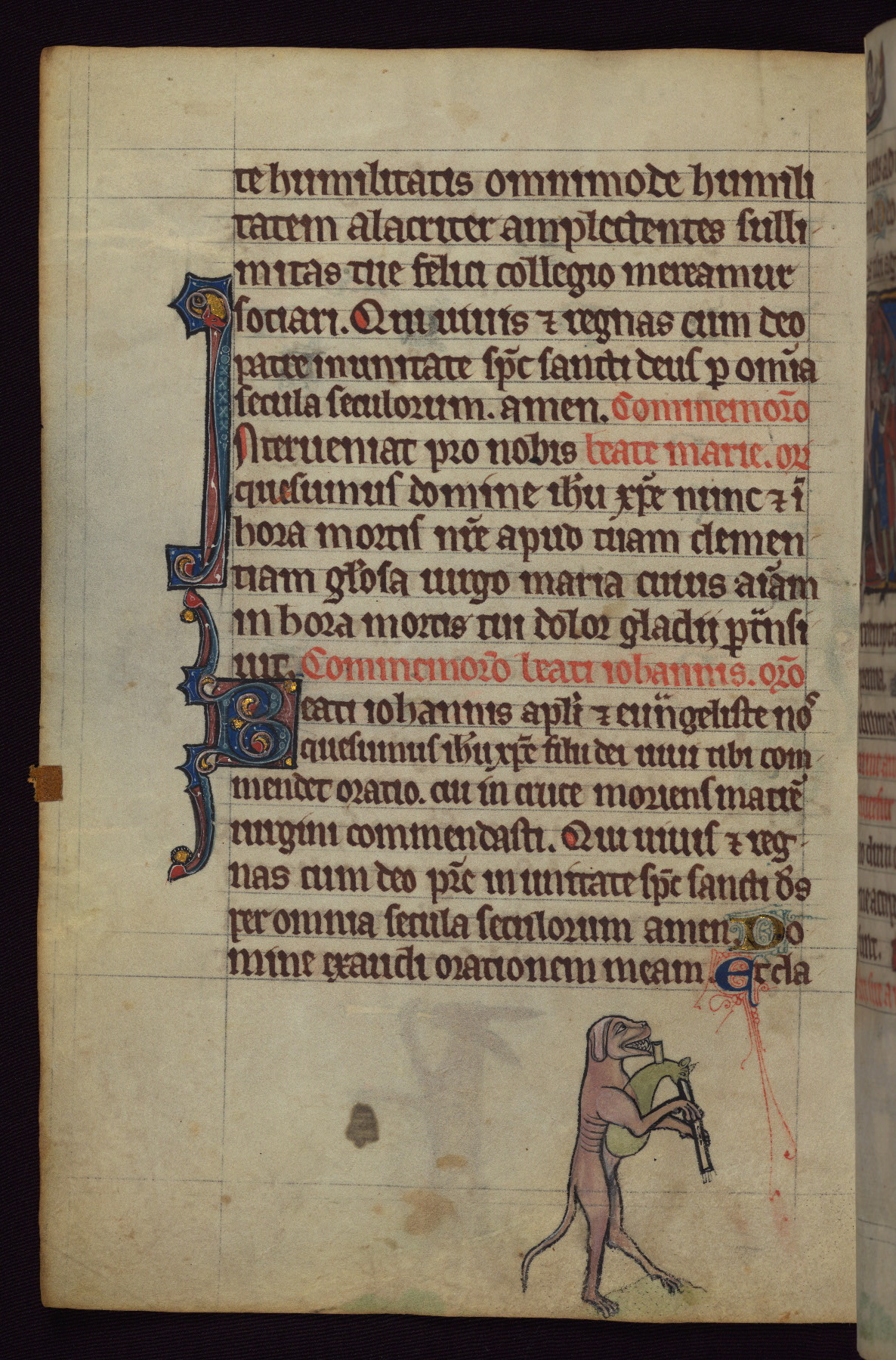 - Title: Ass playing a recorder and bell, from a marginal cycle of images of the funeral of Renard the Fox