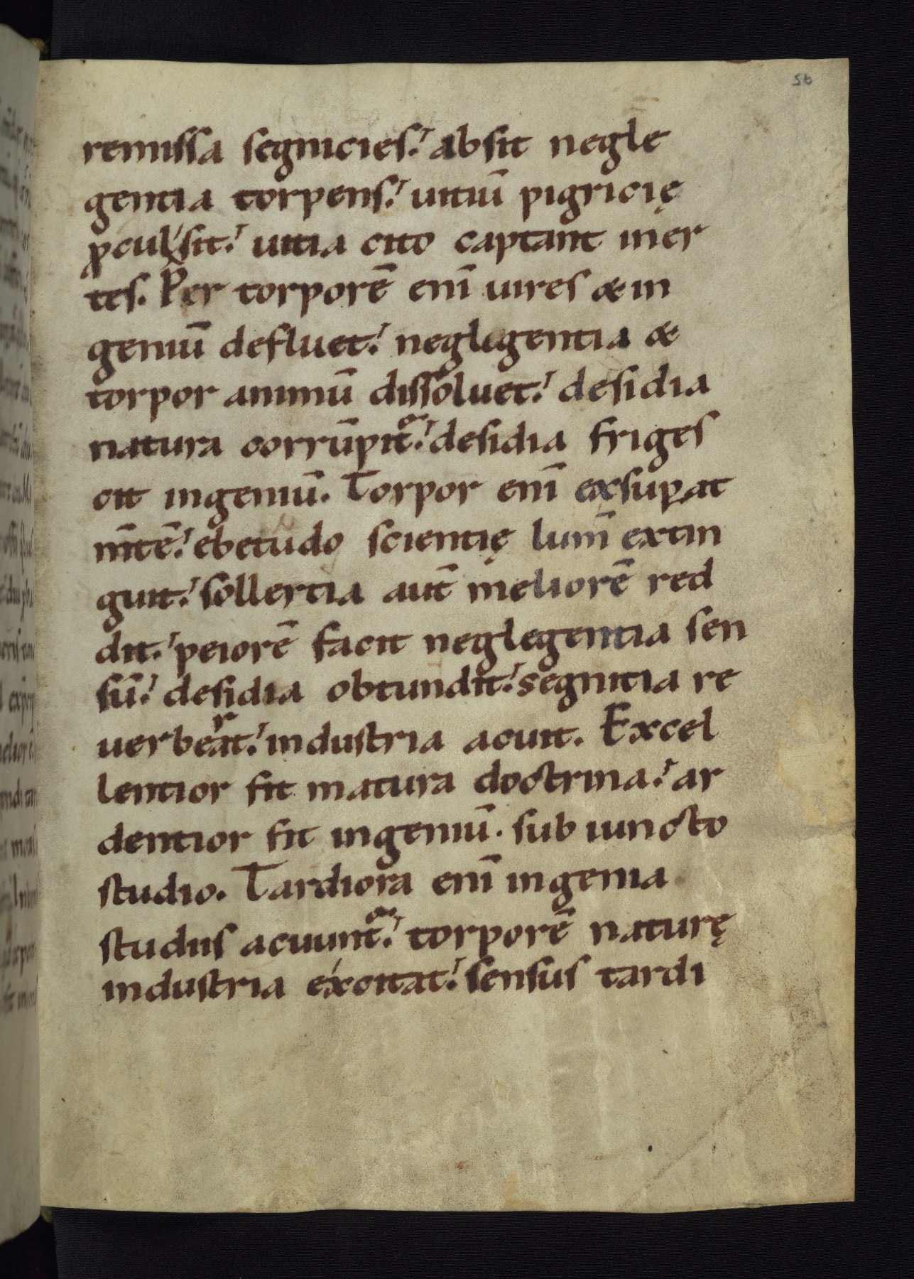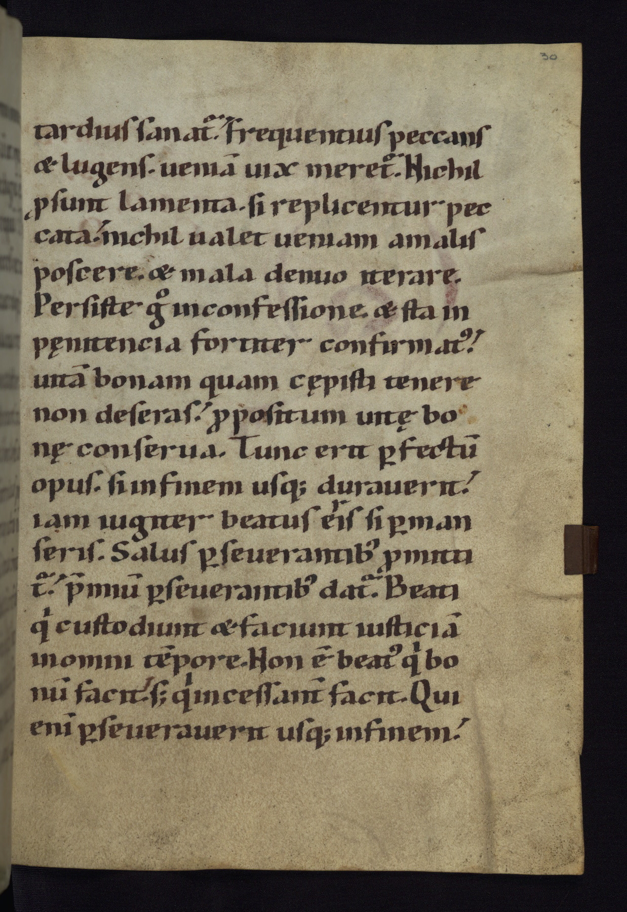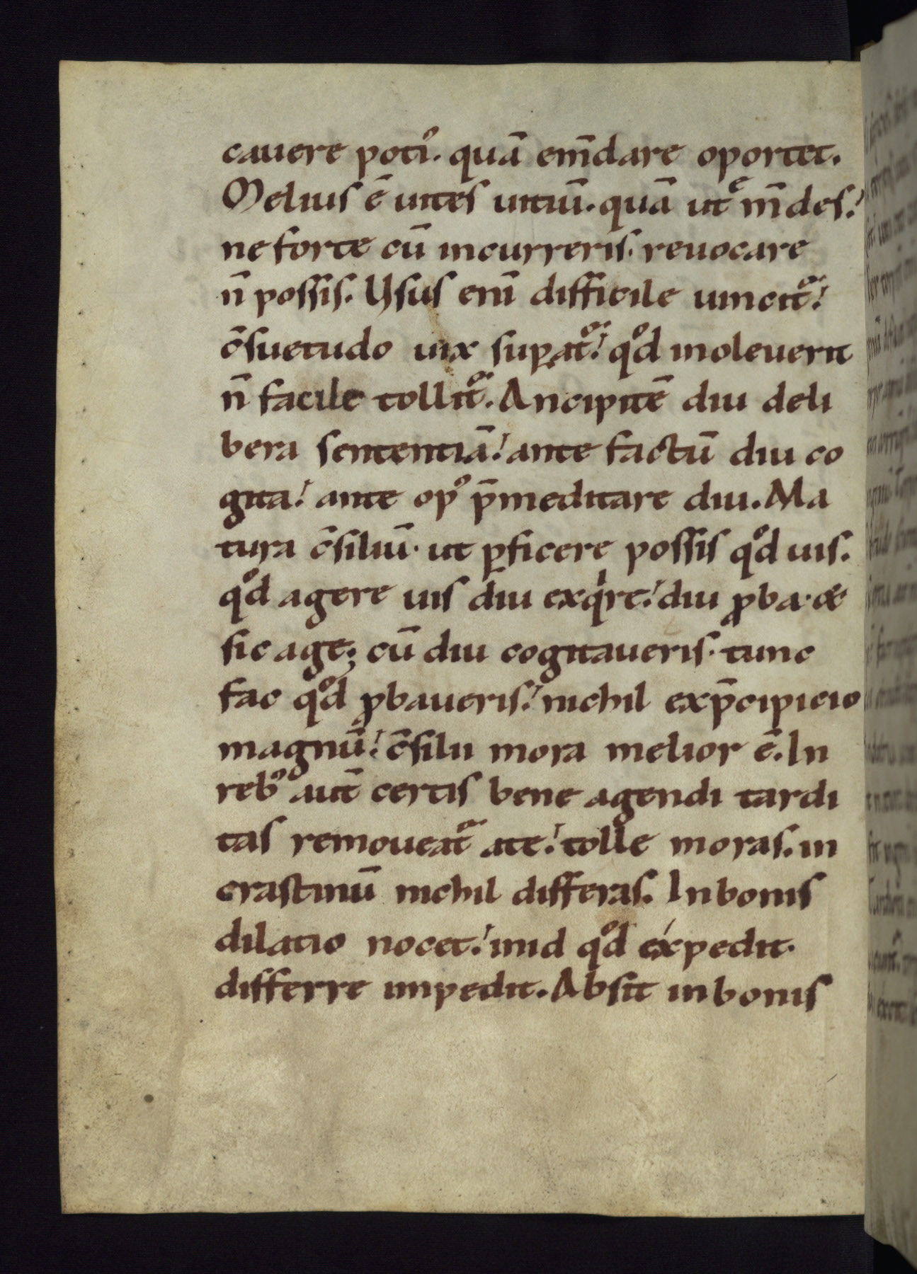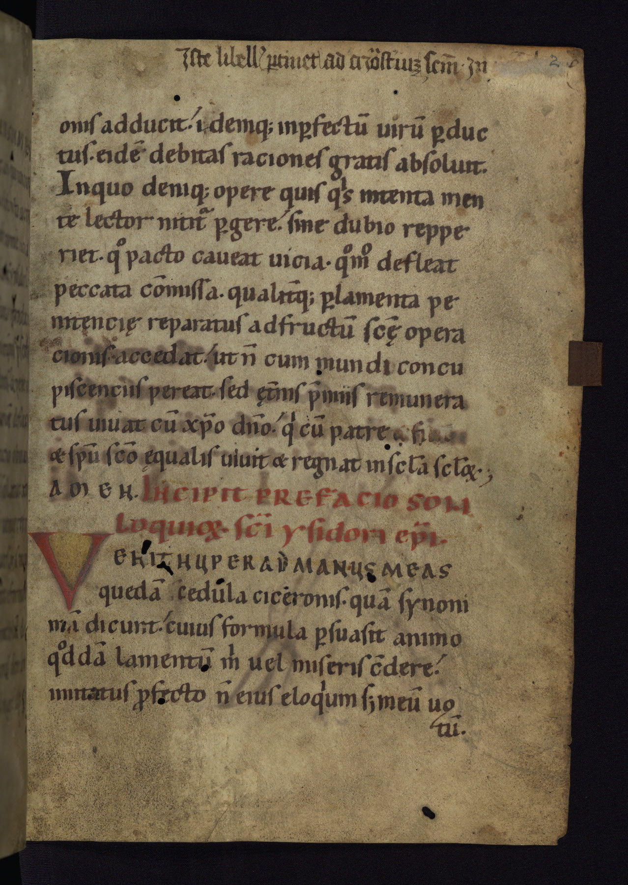 This modest German monastic textbook from the middle of the twelfth century survives in excellent condition in its original binding. Isidore of Seville, who died in 636, was the last of the great Latin fathers, whose works became core to the medieval monastic curriculum. The Synonyma, also known as the Liber lamentationum, starts as a dialogue between Man and Reason, in which Reason tells Man how he can reach eternal joy. The second part is a discussion of vices and virtues. The manuscript contains seventy folios and four decorated or inhabited initials.
