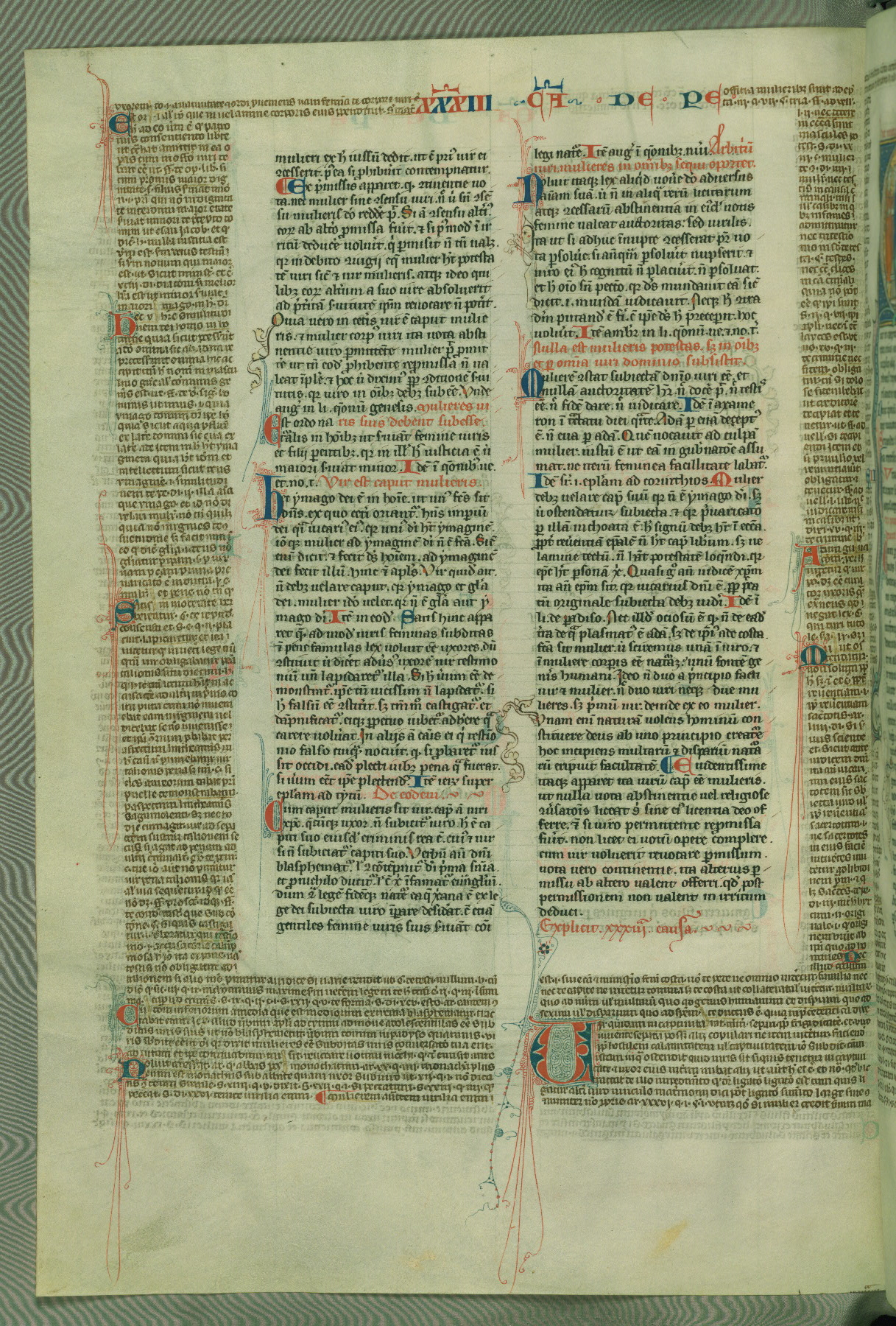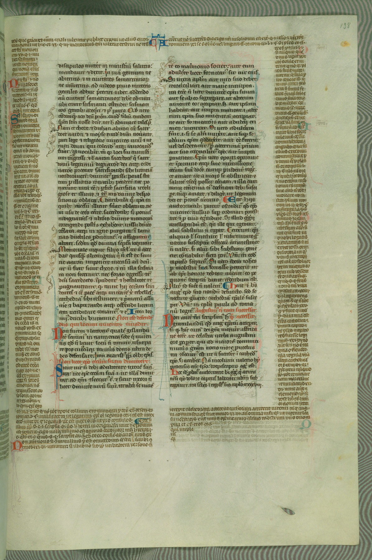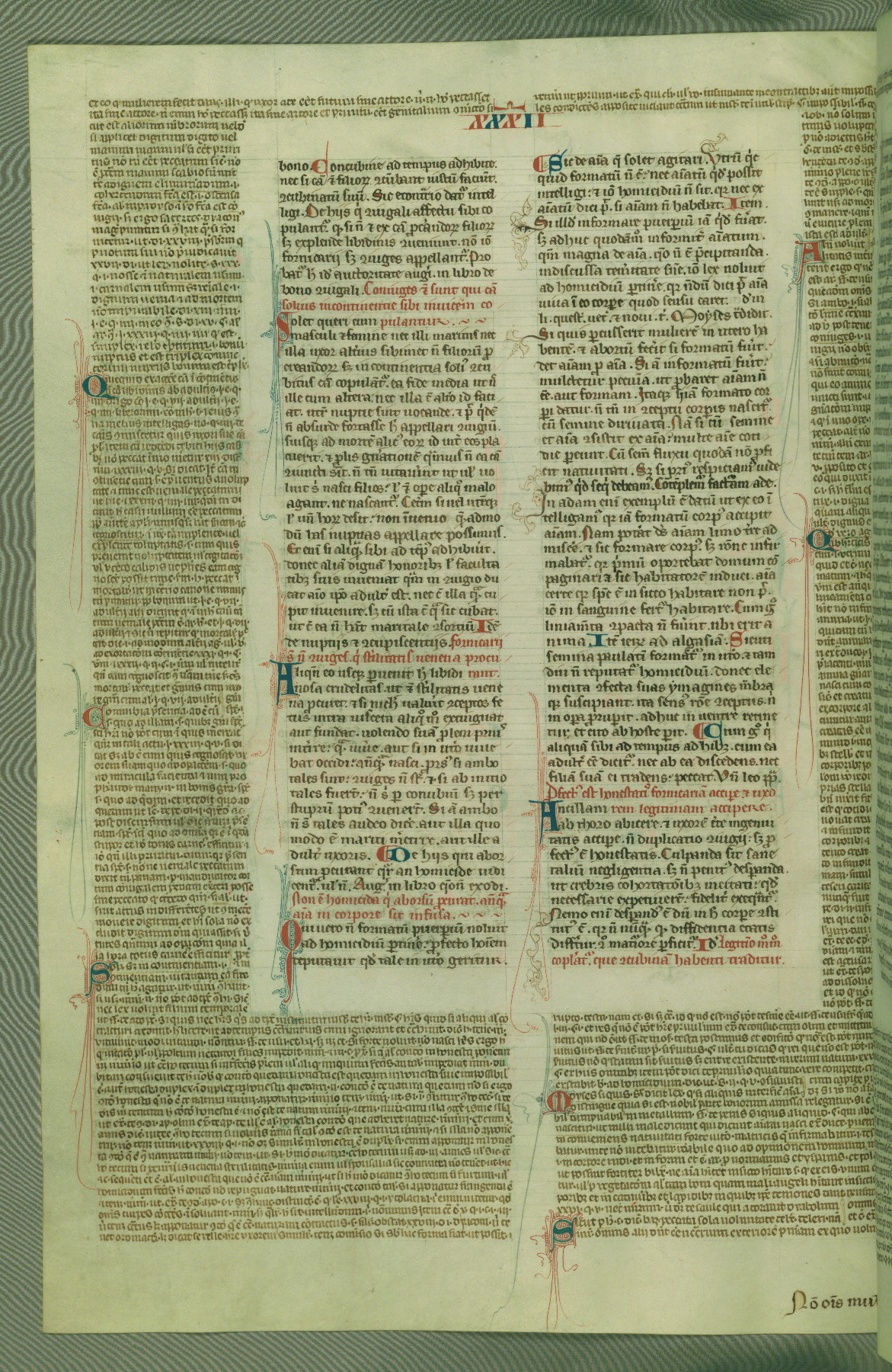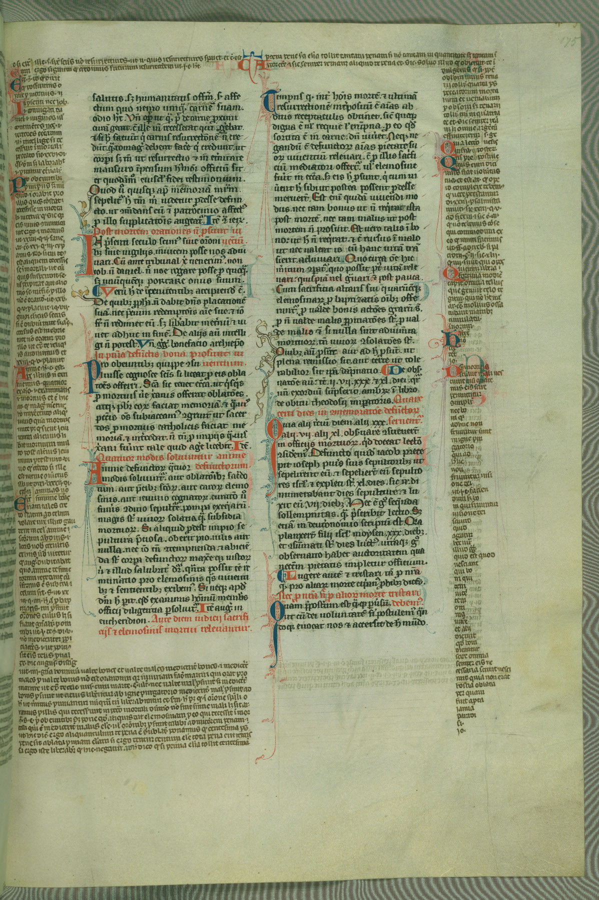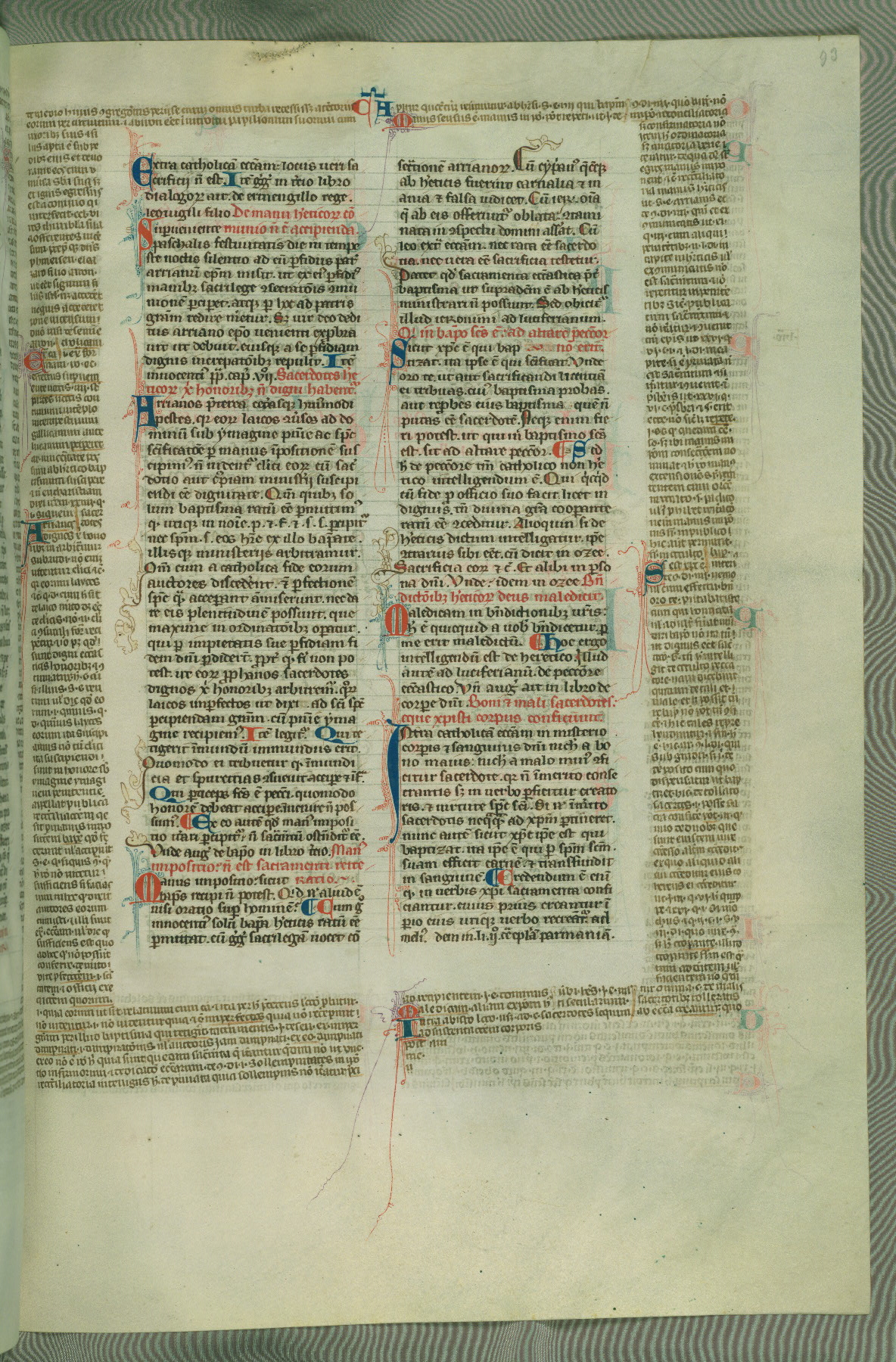 This deluxe version of Gratian's Decretum was created ca. 1280-90, most likely in Hainaut. The lively decoration of the manuscript indicates a marked taste for narrative, and there are thirty-seven historiated initials. The gloss work was completed by Bartholomew of Brescia. At first, Paris would seem to be the most likely place of origin, given that it was the leading center for the study of canon law. However, this particular manuscript exhibits scribal features that suggest its place of origin as being the Cistercian abbey of Cambron in Hainaut. Furthermore, Abbot Baudouin de Bousso, whose tenure at the abbey was from 1283 to 1293, was schooled in theology at the University of Paris, and he would eventually endorse the production of many fine manuscripts while at Cambron. In fact, the catalyst for this endeavor seems to have been the Beaupré Antiphonary (W.759-761), which was was created at Cambron during the 1280s. Stylistic features of W.133 seem to have connections with the Beaupré Antiphonary. For example, Cistercian monks are shown in three extant illuminations throughout three of the antiphonary volumes; these monks are pictured in brown habits similar to the type worn by clerics in W.133. The reliance upon Cistercian precedents for textual and design features associates W.133 with the Cistercian abbey at Cambron. However, more remains to be confirmed by further inspection of the output of the scriptorium at Cambron.