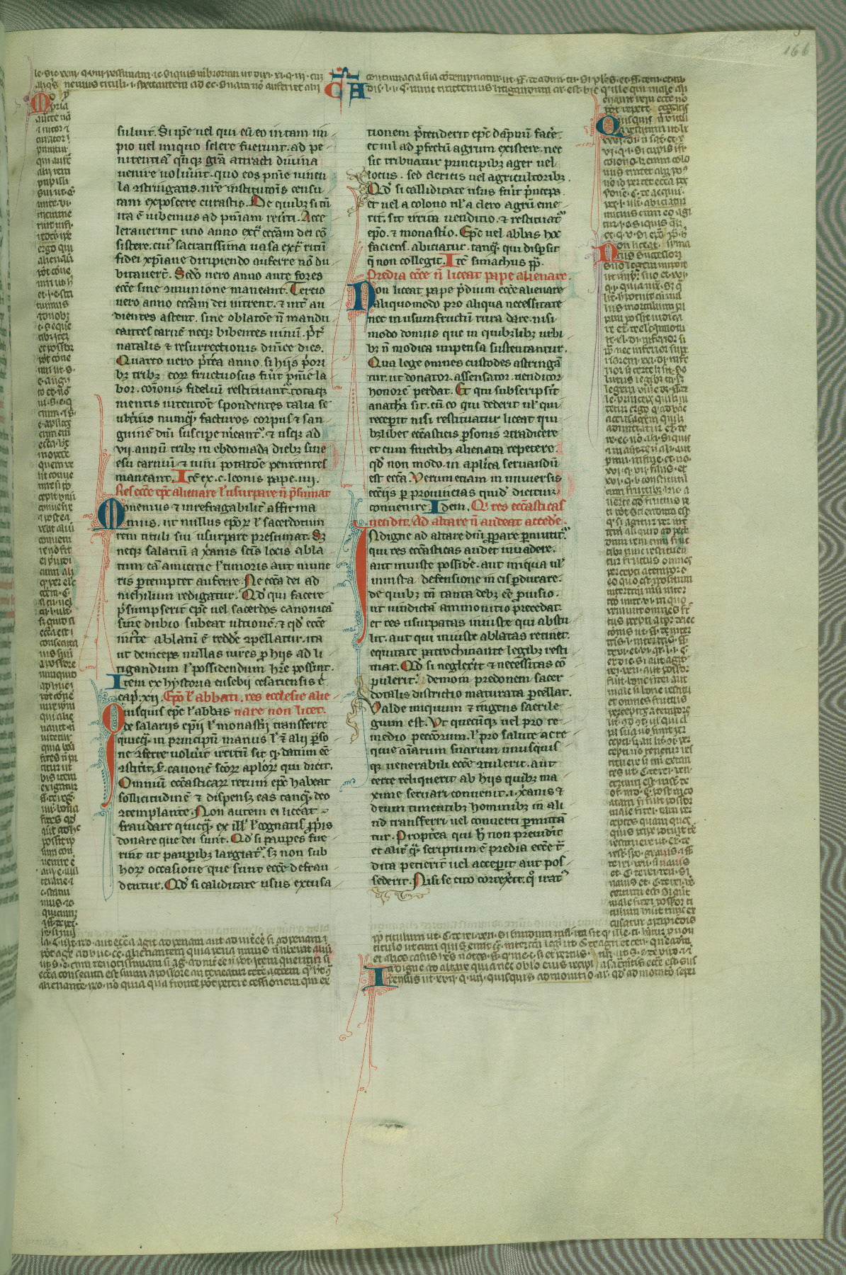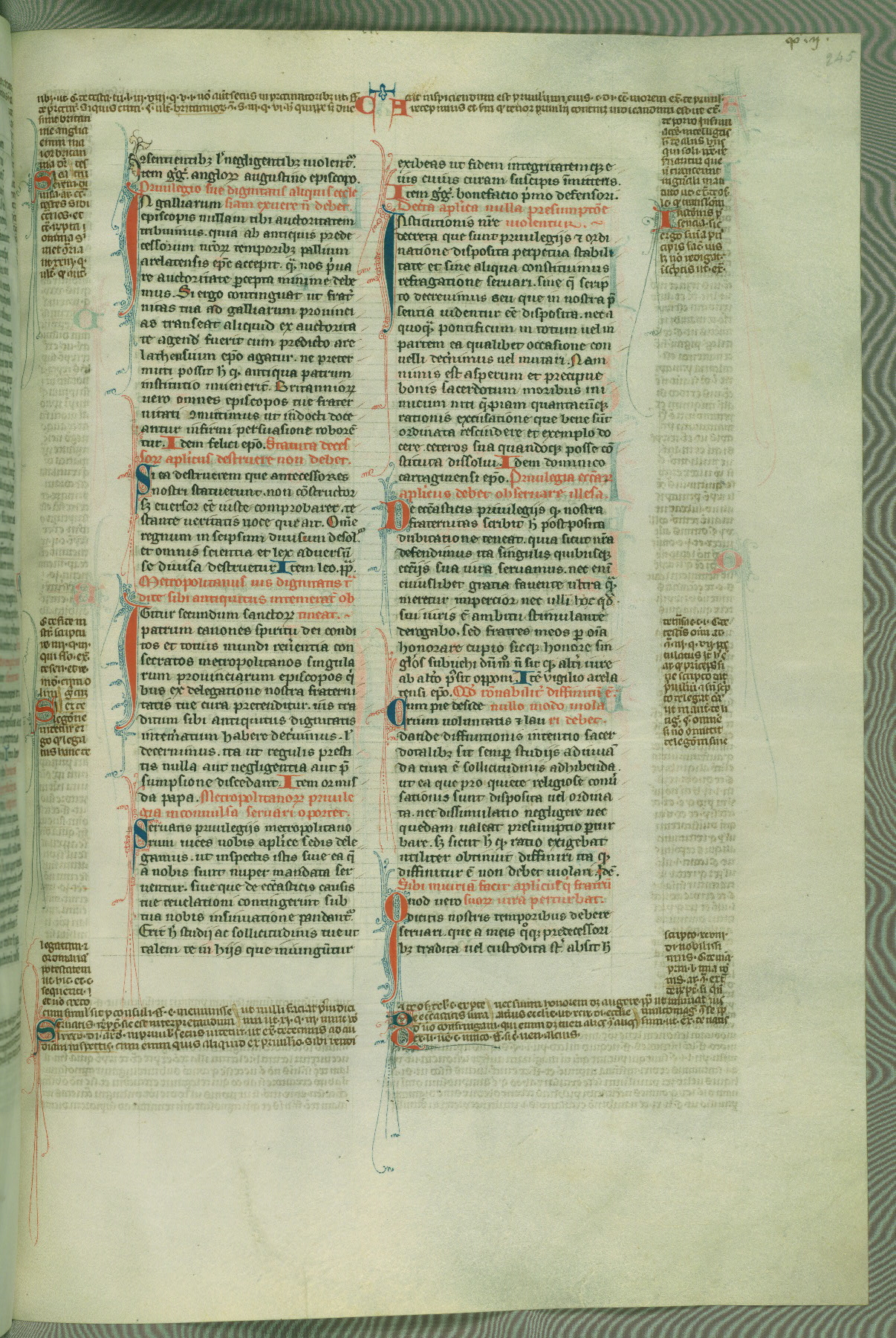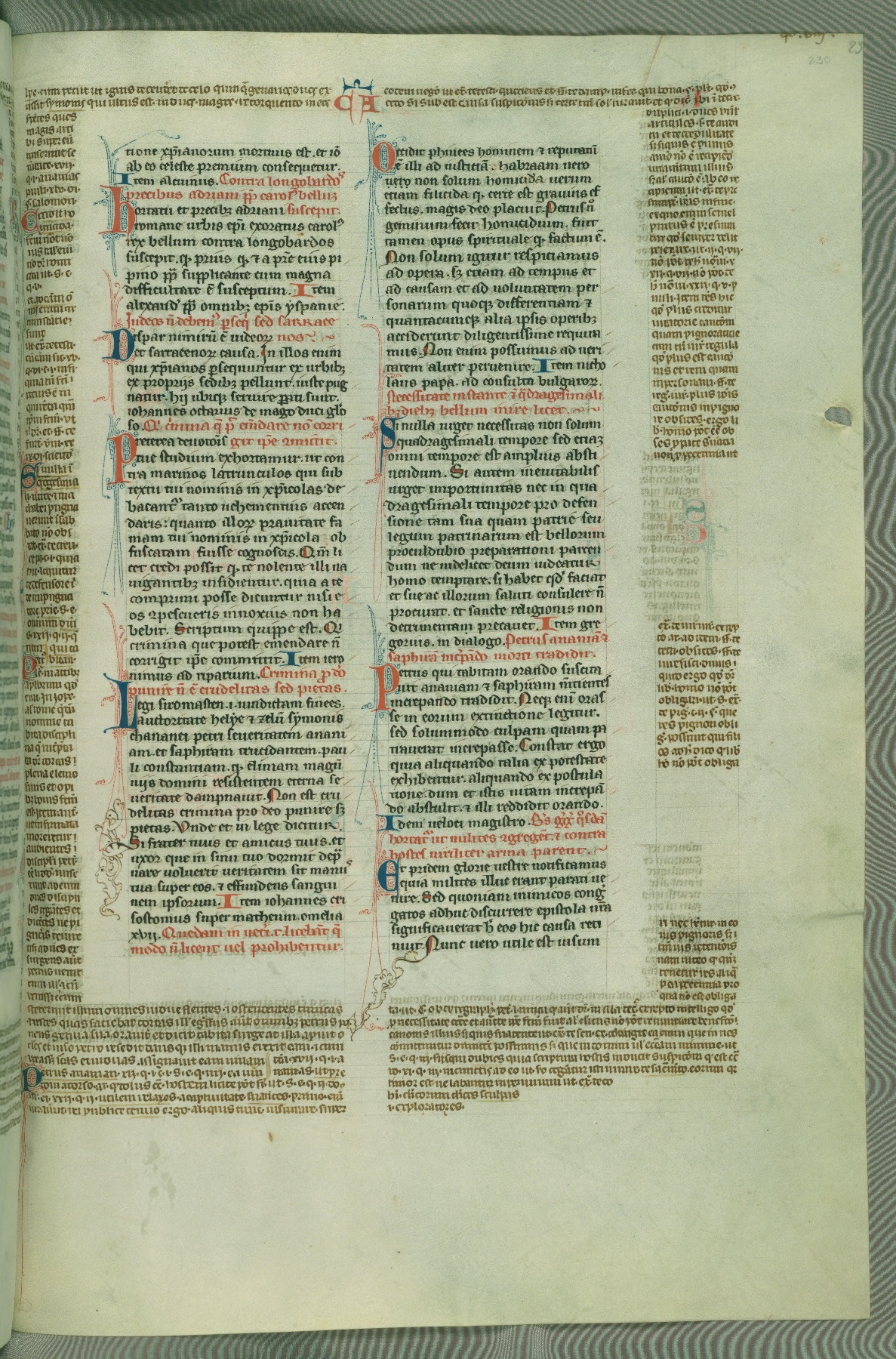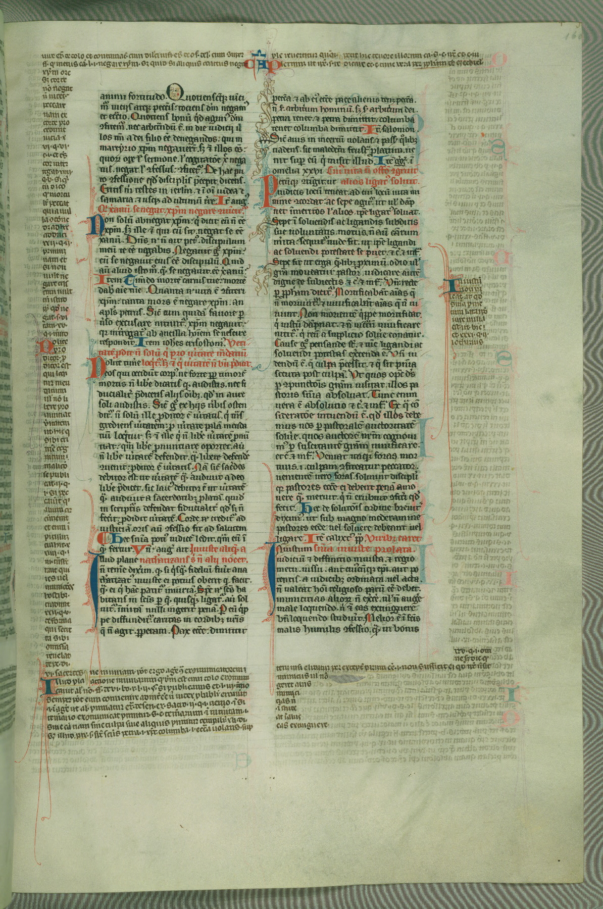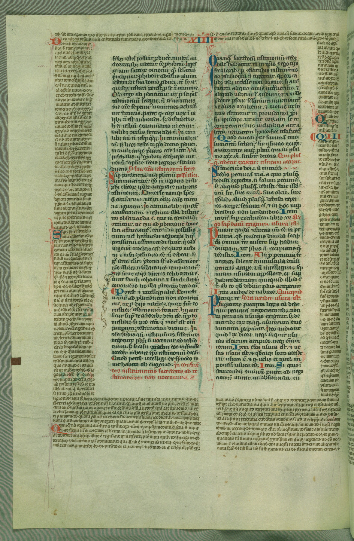 This deluxe version of Gratian's Decretum was created ca. 1280-90, most likely in Hainaut. The lively decoration of the manuscript indicates a marked taste for narrative, and there are thirty-seven historiated initials. The gloss work was completed by Bartholomew of Brescia. At first, Paris would seem to be the most likely place of origin, given that it was the leading center for the study of canon law. However, this particular manuscript exhibits scribal features that suggest its place of origin as being the Cistercian abbey of Cambron in Hainaut. Furthermore, Abbot Baudouin de Bousso, whose tenure at the abbey was from 1283 to 1293, was schooled in theology at the University of Paris, and he would eventually endorse the production of many fine manuscripts while at Cambron. In fact, the catalyst for this endeavor seems to have been the Beaupré Antiphonary (W.759-761), which was was created at Cambron during the 1280s. Stylistic features of W.133 seem to have connections with the Beaupré Antiphonary. For example, Cistercian monks are shown in three extant illuminations throughout three of the antiphonary volumes; these monks are pictured in brown habits similar to the type worn by clerics in W.133. The reliance upon Cistercian precedents for textual and design features associates W.133 with the Cistercian abbey at Cambron. However, more remains to be confirmed by further inspection of the output of the scriptorium at Cambron.