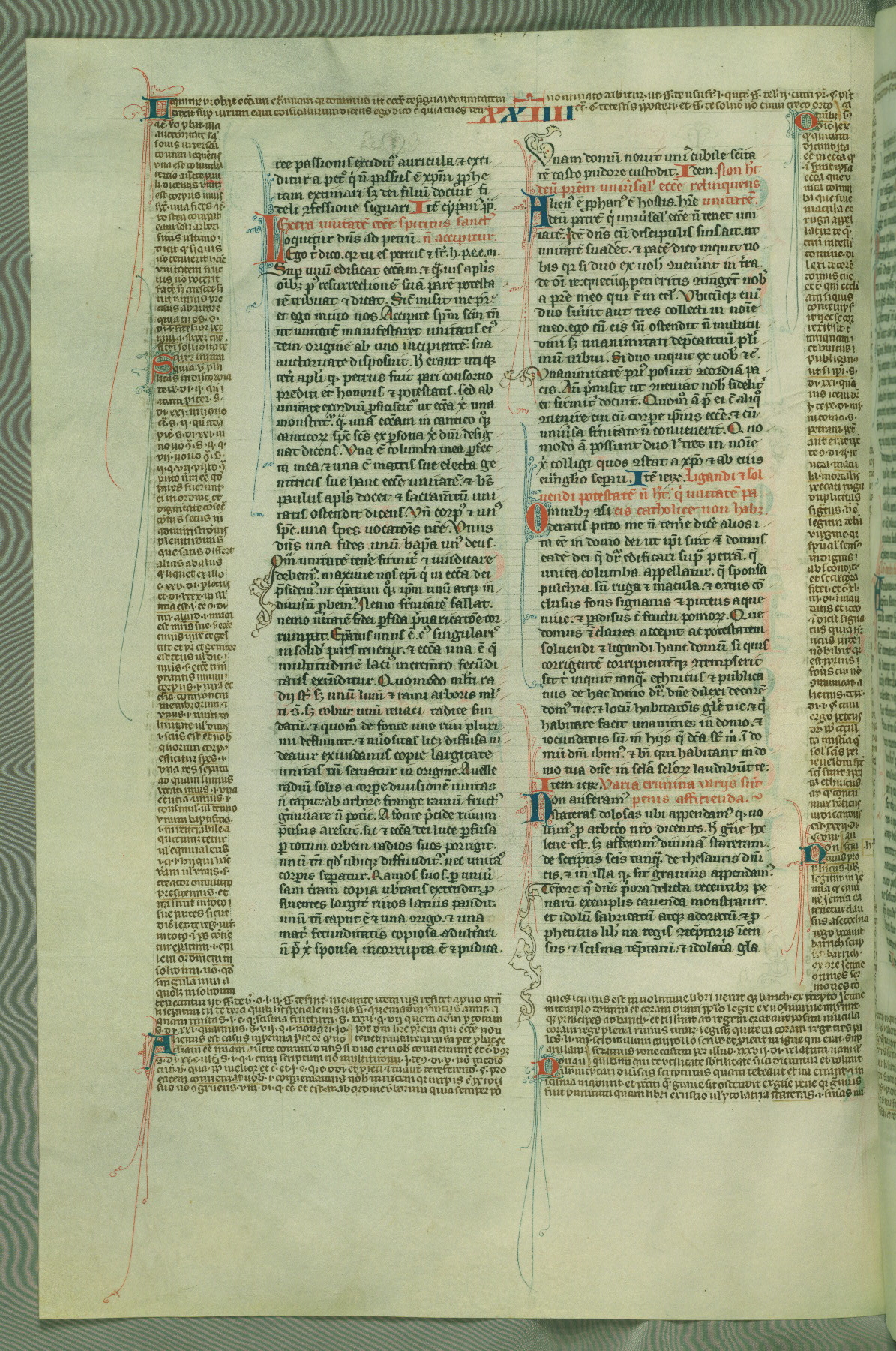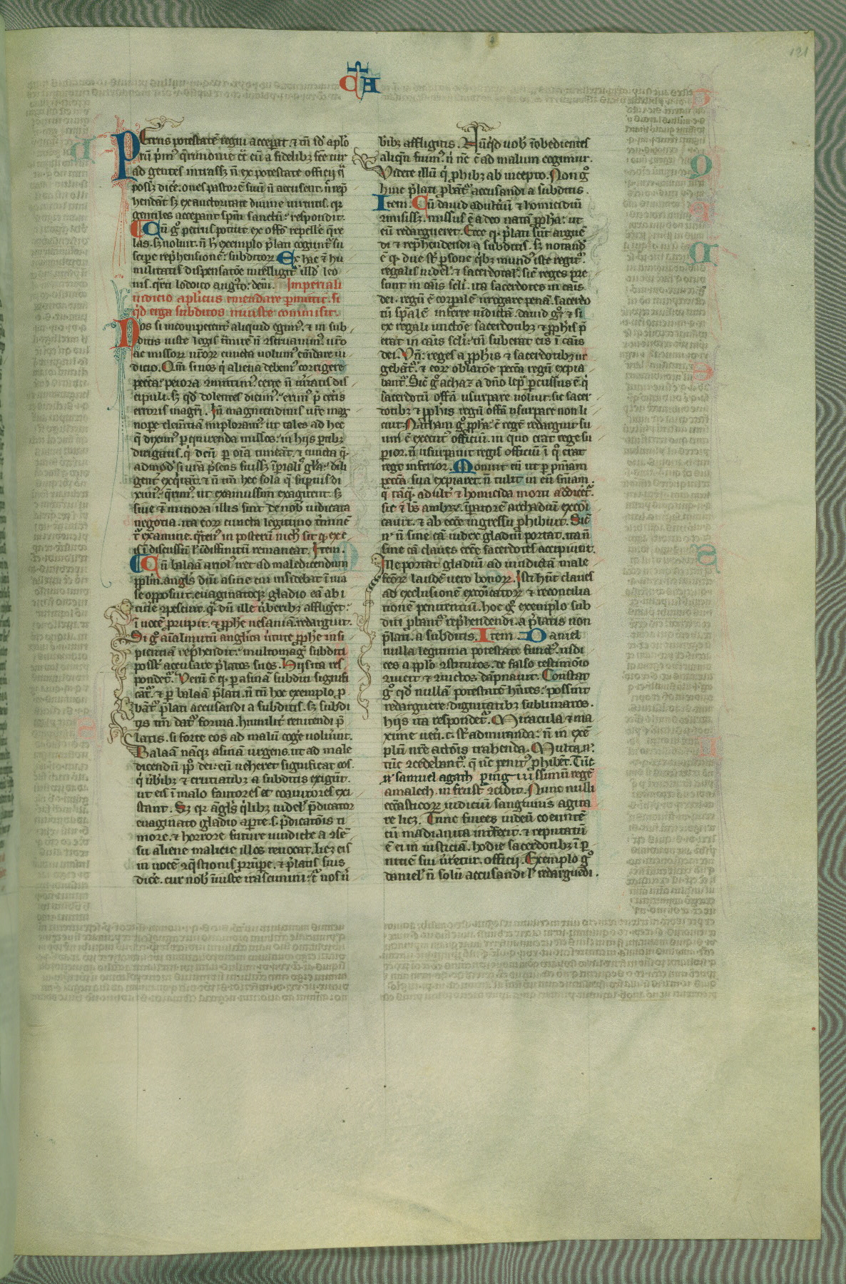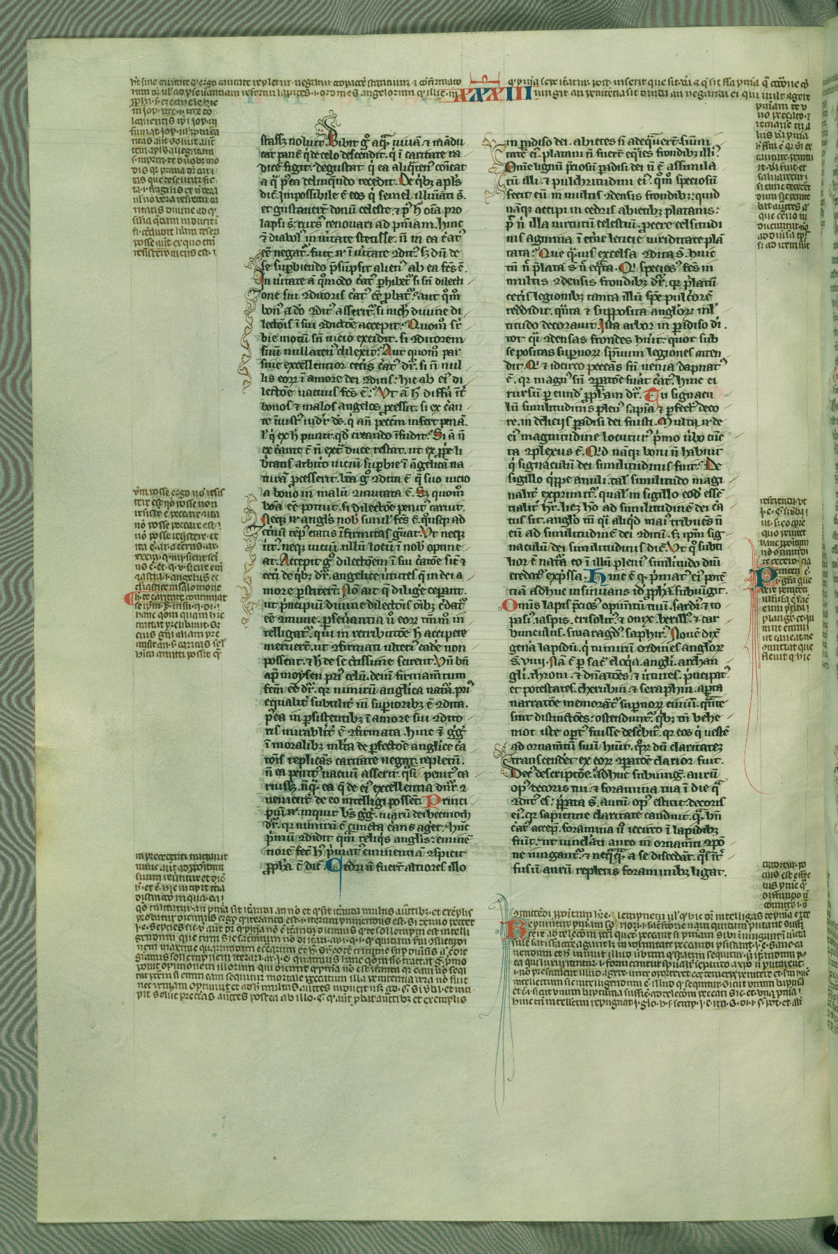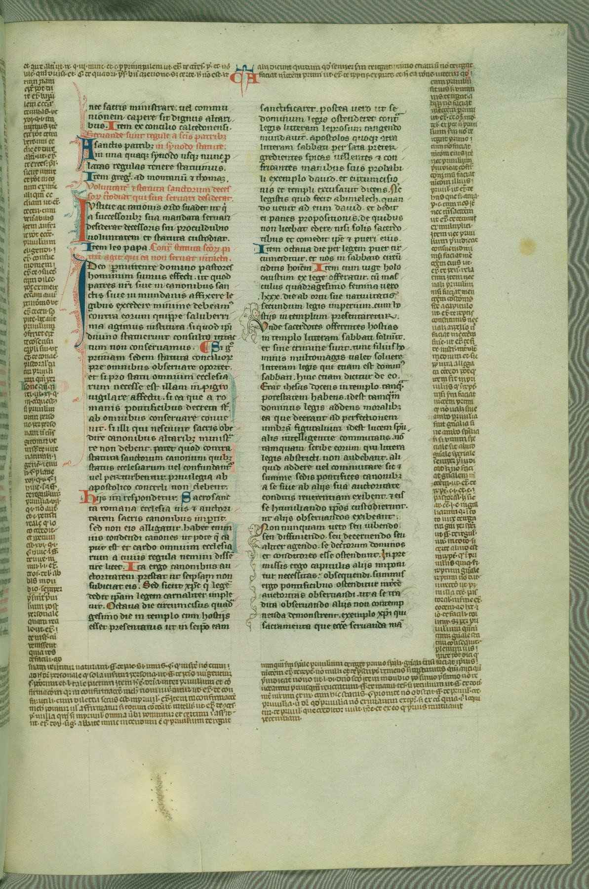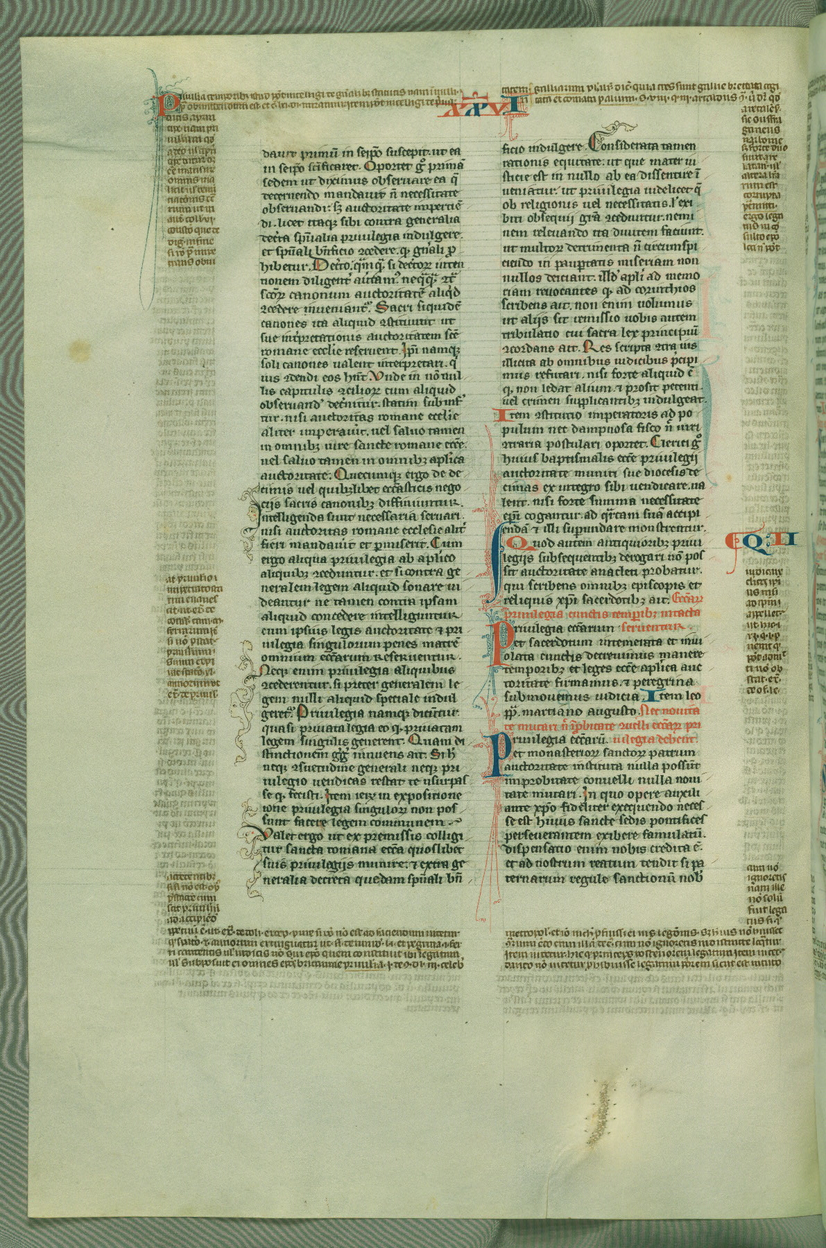 This deluxe version of Gratian's Decretum was created ca. 1280-90, most likely in Hainaut. The lively decoration of the manuscript indicates a marked taste for narrative, and there are thirty-seven historiated initials. The gloss work was completed by Bartholomew of Brescia. At first, Paris would seem to be the most likely place of origin, given that it was the leading center for the study of canon law. However, this particular manuscript exhibits scribal features that suggest its place of origin as being the Cistercian abbey of Cambron in Hainaut. Furthermore, Abbot Baudouin de Bousso, whose tenure at the abbey was from 1283 to 1293, was schooled in theology at the University of Paris, and he would eventually endorse the production of many fine manuscripts while at Cambron. In fact, the catalyst for this endeavor seems to have been the Beaupré Antiphonary (W.759-761), which was was created at Cambron during the 1280s. Stylistic features of W.133 seem to have connections with the Beaupré Antiphonary. For example, Cistercian monks are shown in three extant illuminations throughout three of the antiphonary volumes; these monks are pictured in brown habits similar to the type worn by clerics in W.133. The reliance upon Cistercian precedents for textual and design features associates W.133 with the Cistercian abbey at Cambron. However, more remains to be confirmed by further inspection of the output of the scriptorium at Cambron.