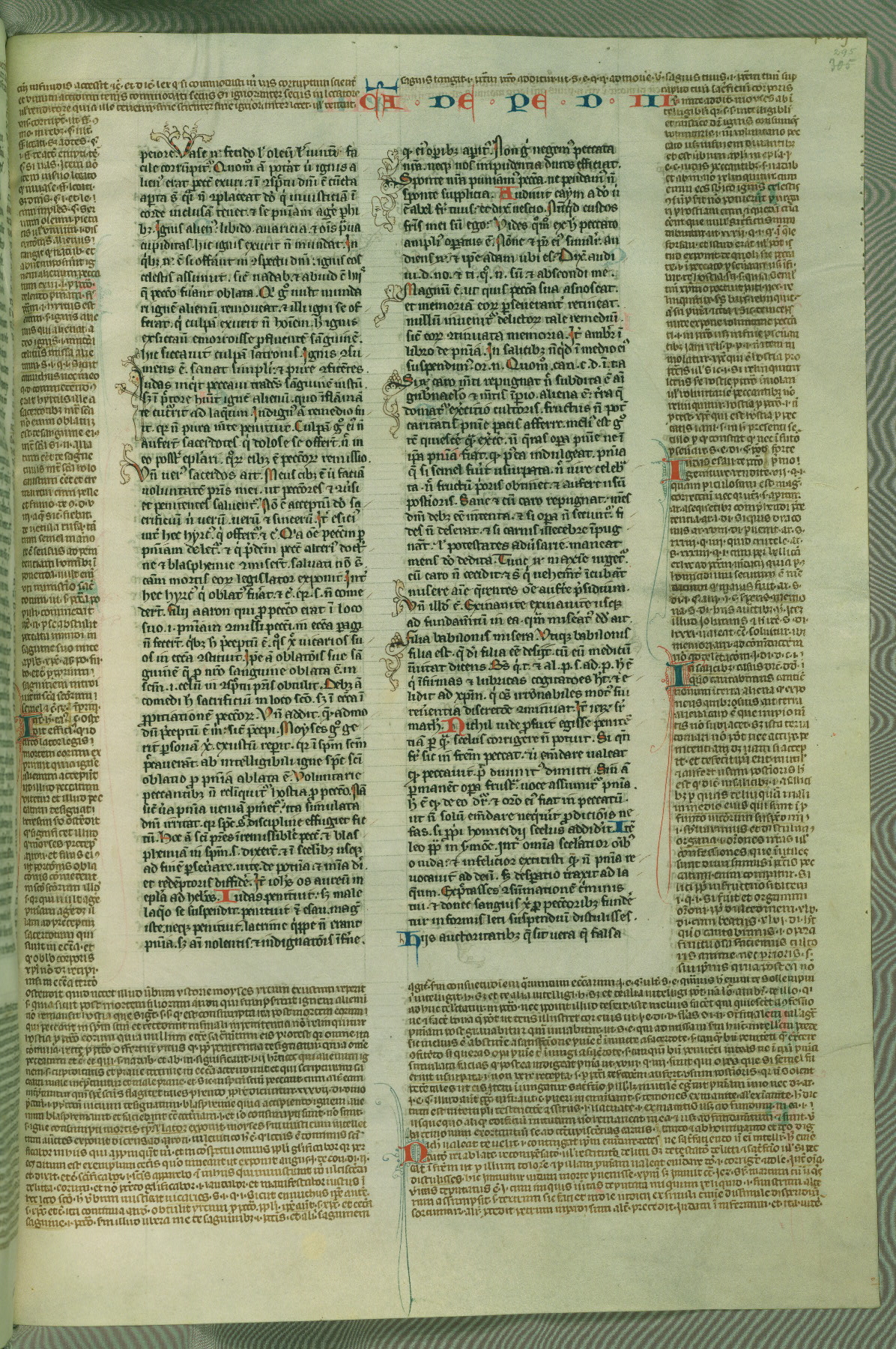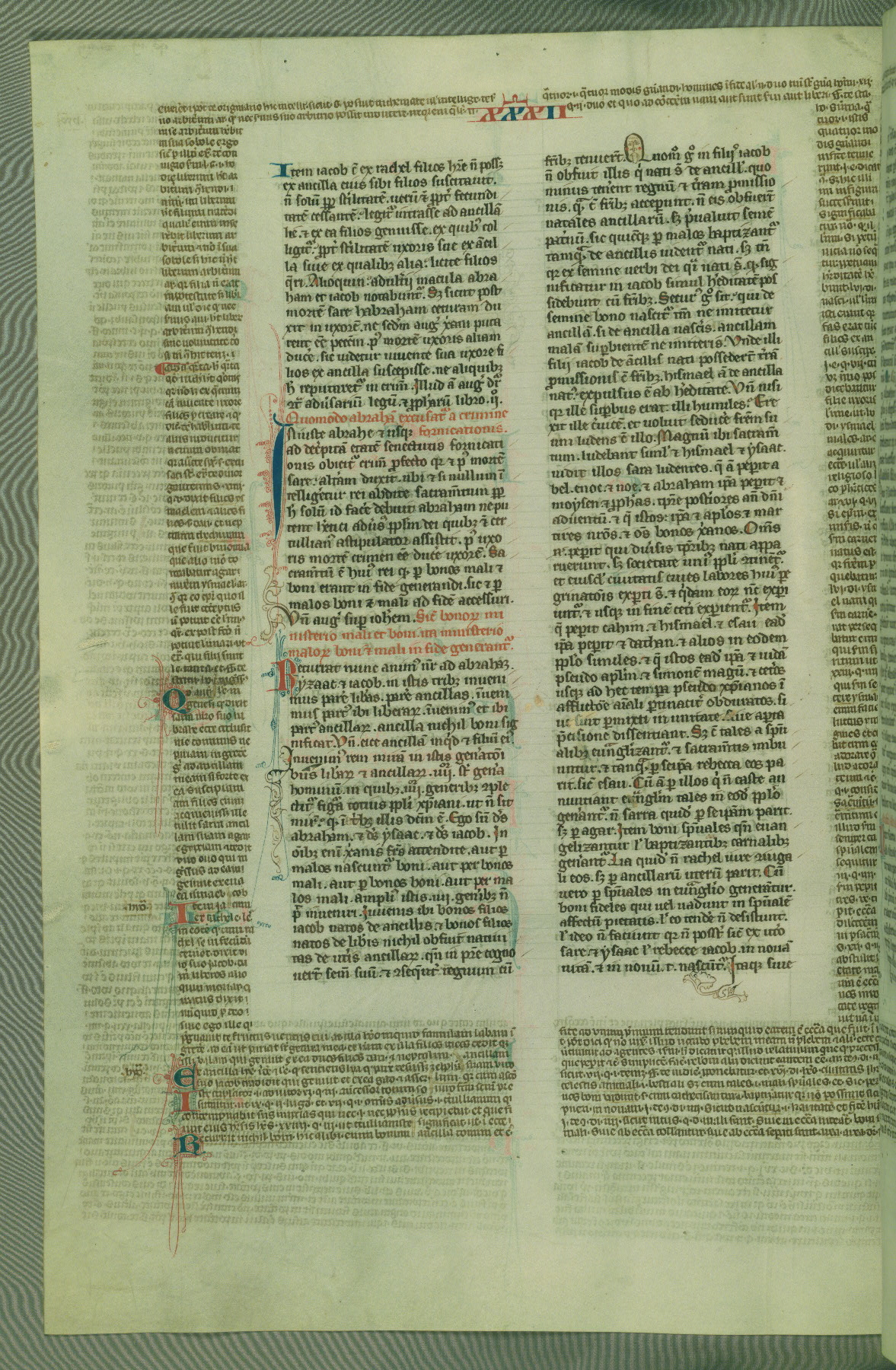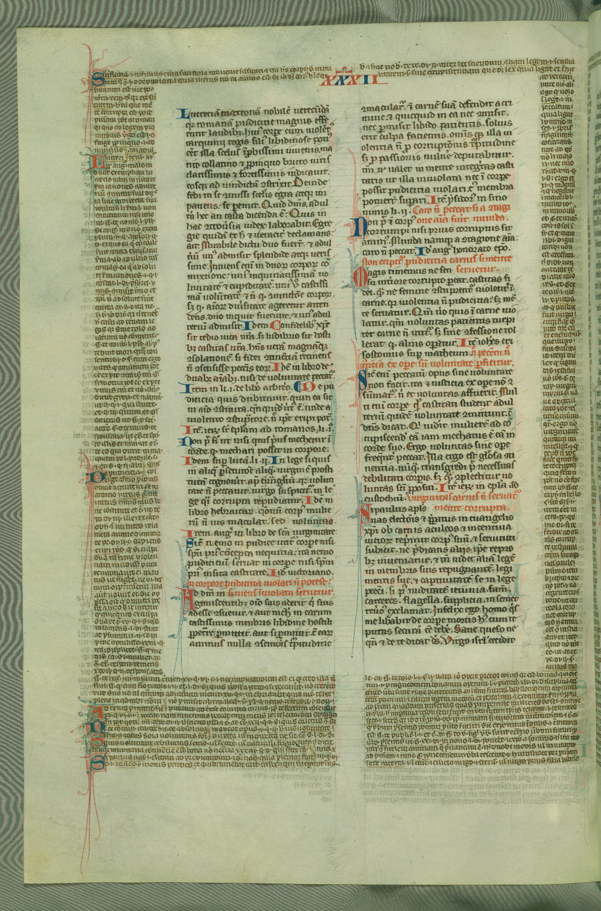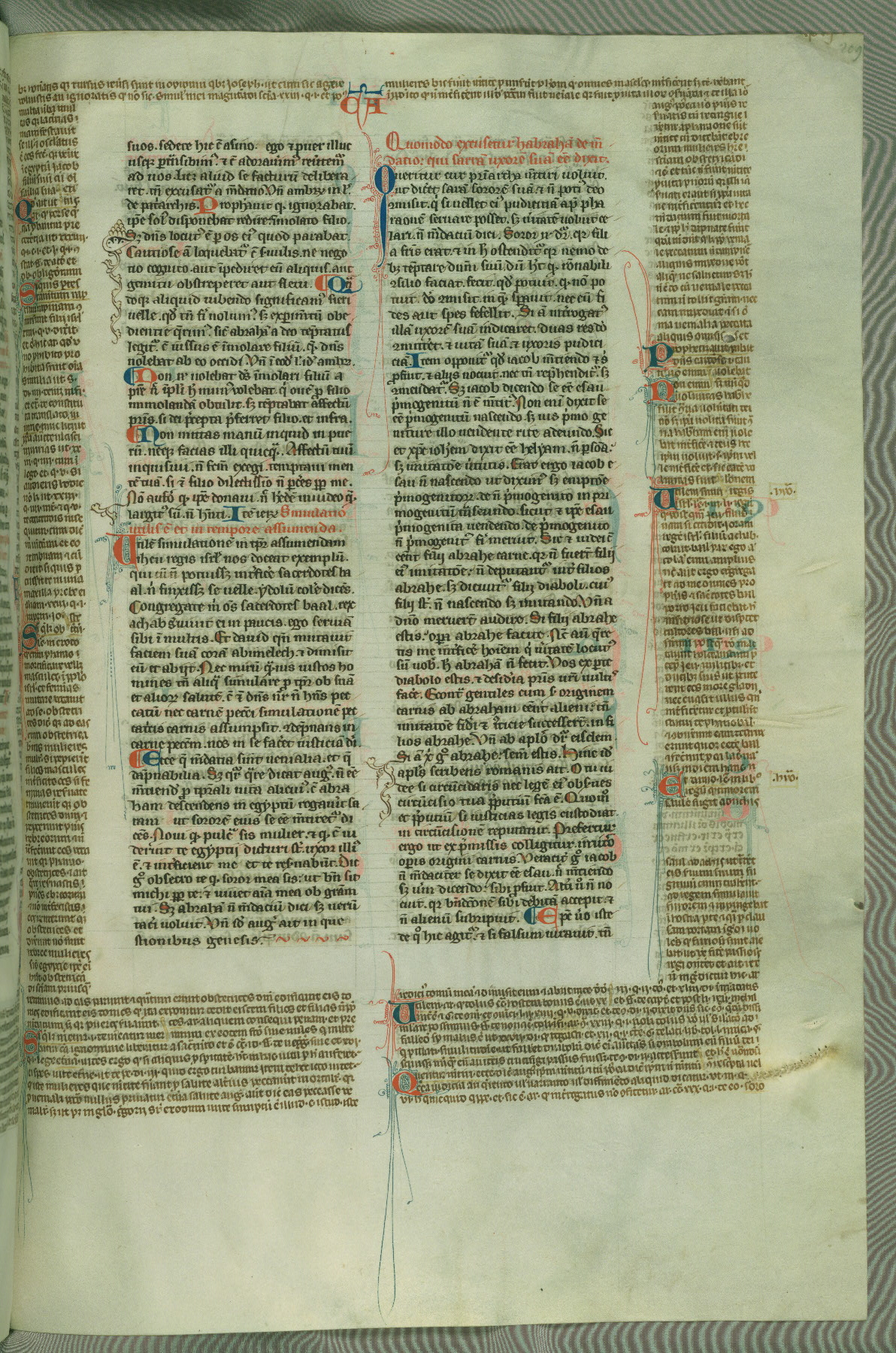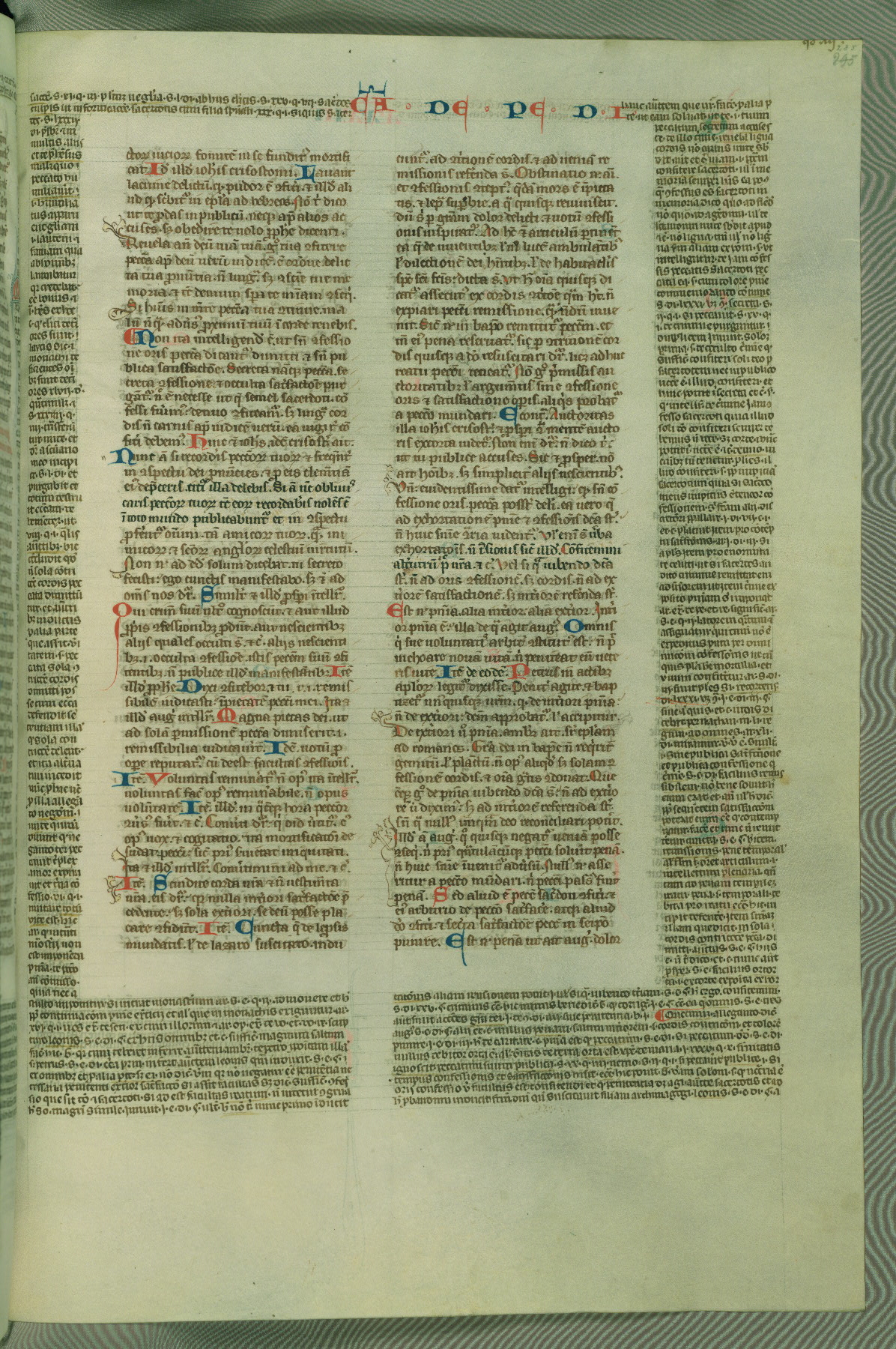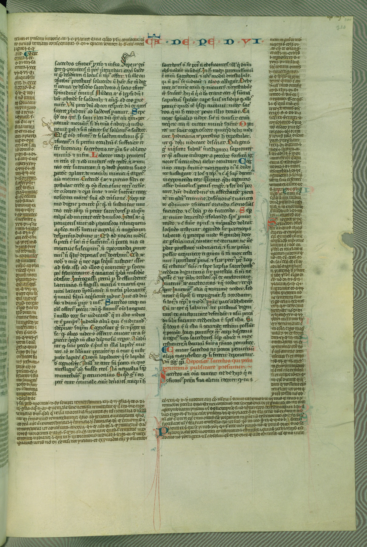 This deluxe version of Gratian's Decretum was created ca. 1280-90, most likely in Hainaut. The lively decoration of the manuscript indicates a marked taste for narrative, and there are thirty-seven historiated initials. The gloss work was completed by Bartholomew of Brescia. At first, Paris would seem to be the most likely place of origin, given that it was the leading center for the study of canon law. However, this particular manuscript exhibits scribal features that suggest its place of origin as being the Cistercian abbey of Cambron in Hainaut. Furthermore, Abbot Baudouin de Bousso, whose tenure at the abbey was from 1283 to 1293, was schooled in theology at the University of Paris, and he would eventually endorse the production of many fine manuscripts while at Cambron. In fact, the catalyst for this endeavor seems to have been the Beaupré Antiphonary (W.759-761), which was was created at Cambron during the 1280s. Stylistic features of W.133 seem to have connections with the Beaupré Antiphonary. For example, Cistercian monks are shown in three extant illuminations throughout three of the antiphonary volumes; these monks are pictured in brown habits similar to the type worn by clerics in W.133. The reliance upon Cistercian precedents for textual and design features associates W.133 with the Cistercian abbey at Cambron. However, more remains to be confirmed by further inspection of the output of the scriptorium at Cambron.