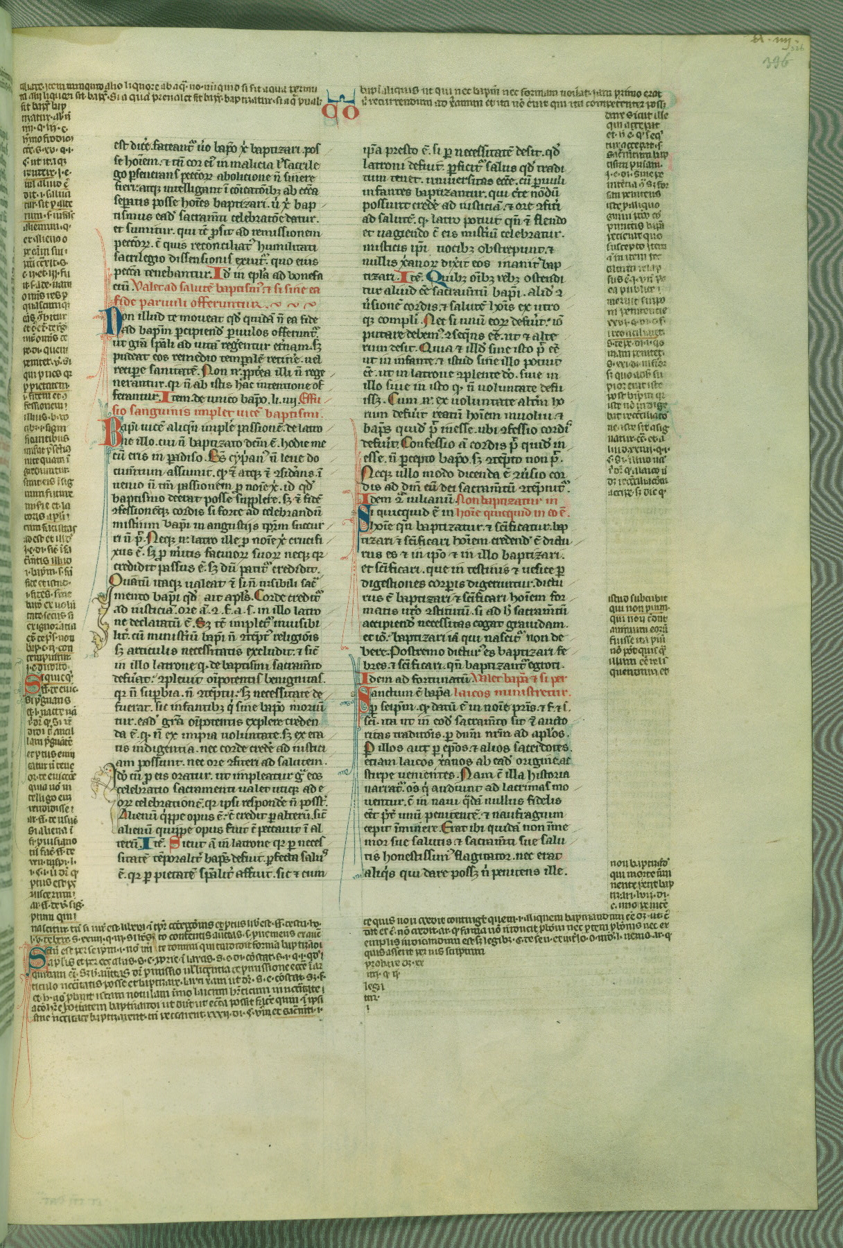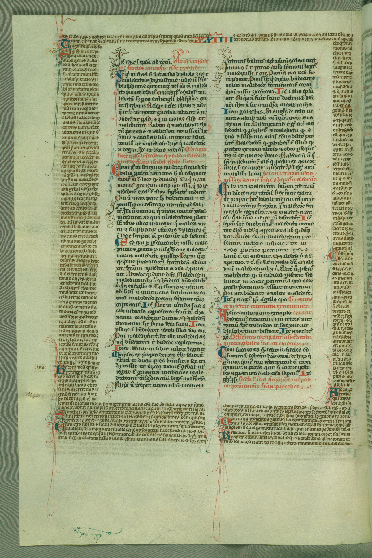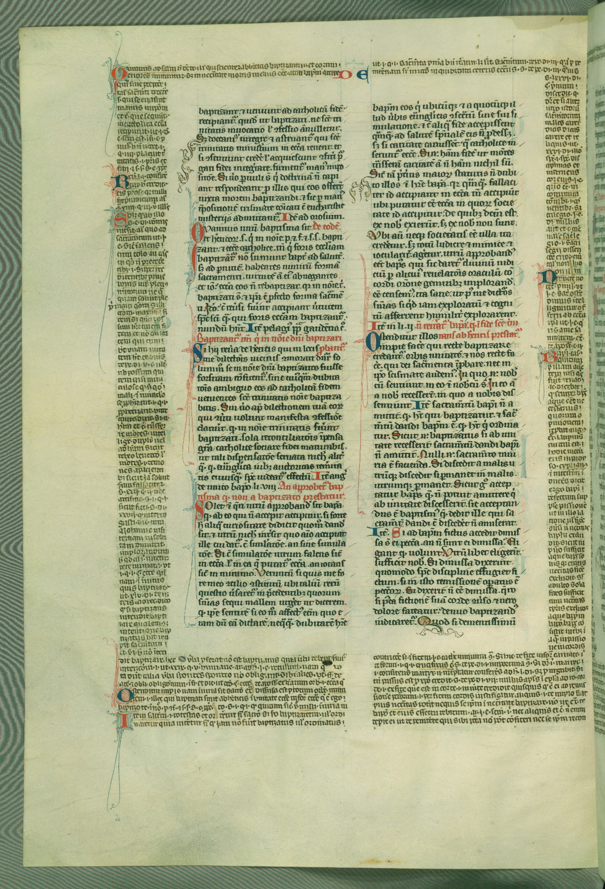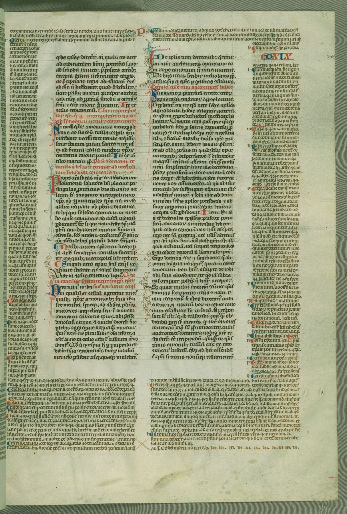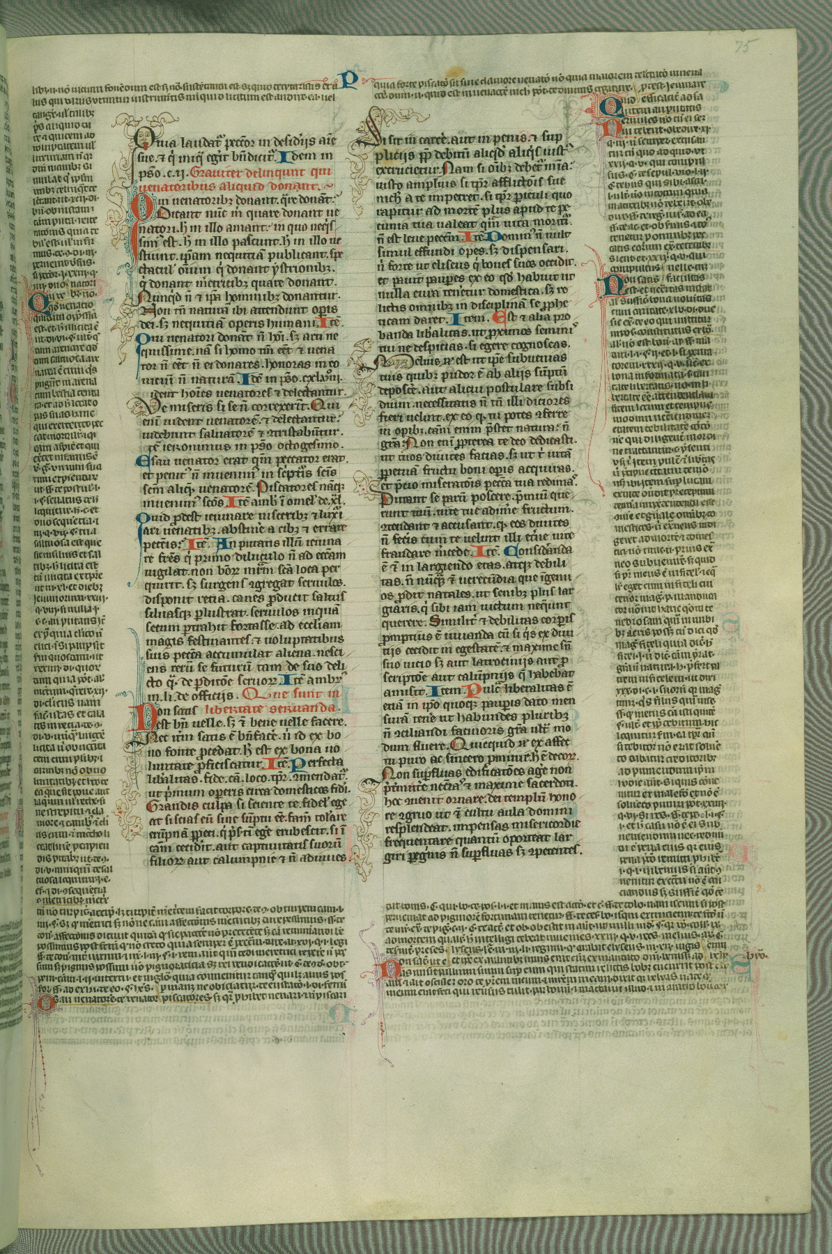 This deluxe version of Gratian's Decretum was created ca. 1280-90, most likely in Hainaut. The lively decoration of the manuscript indicates a marked taste for narrative, and there are thirty-seven historiated initials. The gloss work was completed by Bartholomew of Brescia. At first, Paris would seem to be the most likely place of origin, given that it was the leading center for the study of canon law. However, this particular manuscript exhibits scribal features that suggest its place of origin as being the Cistercian abbey of Cambron in Hainaut. Furthermore, Abbot Baudouin de Bousso, whose tenure at the abbey was from 1283 to 1293, was schooled in theology at the University of Paris, and he would eventually endorse the production of many fine manuscripts while at Cambron. In fact, the catalyst for this endeavor seems to have been the Beaupré Antiphonary (W.759-761), which was was created at Cambron during the 1280s. Stylistic features of W.133 seem to have connections with the Beaupré Antiphonary. For example, Cistercian monks are shown in three extant illuminations throughout three of the antiphonary volumes; these monks are pictured in brown habits similar to the type worn by clerics in W.133. The reliance upon Cistercian precedents for textual and design features associates W.133 with the Cistercian abbey at Cambron. However, more remains to be confirmed by further inspection of the output of the scriptorium at Cambron.