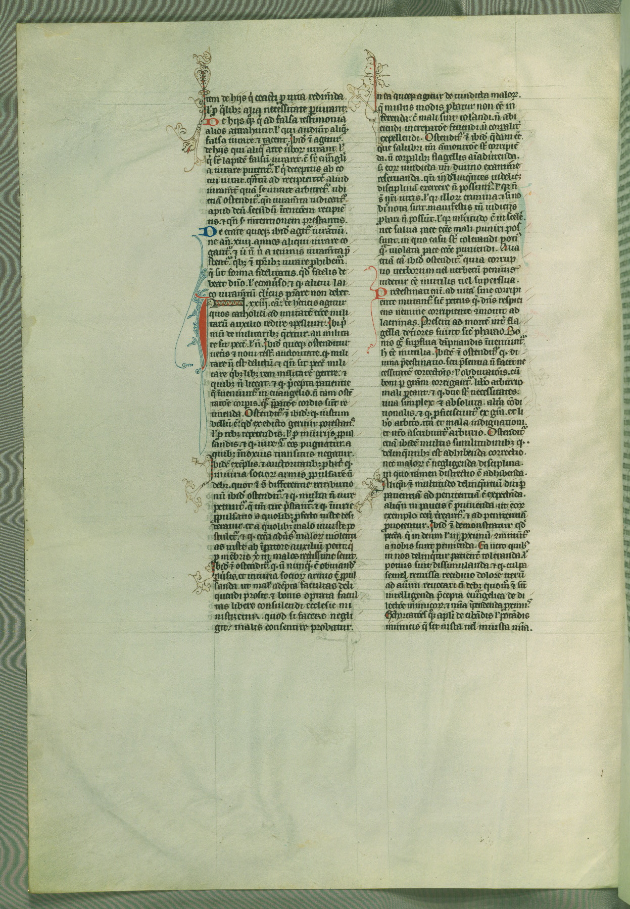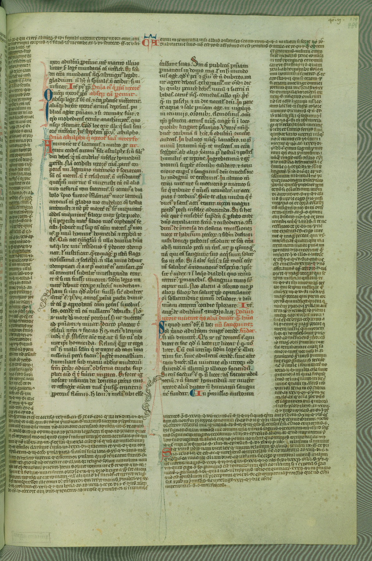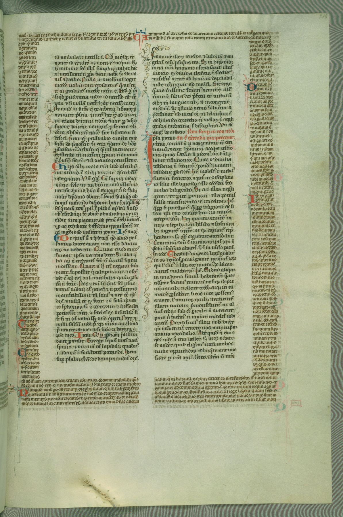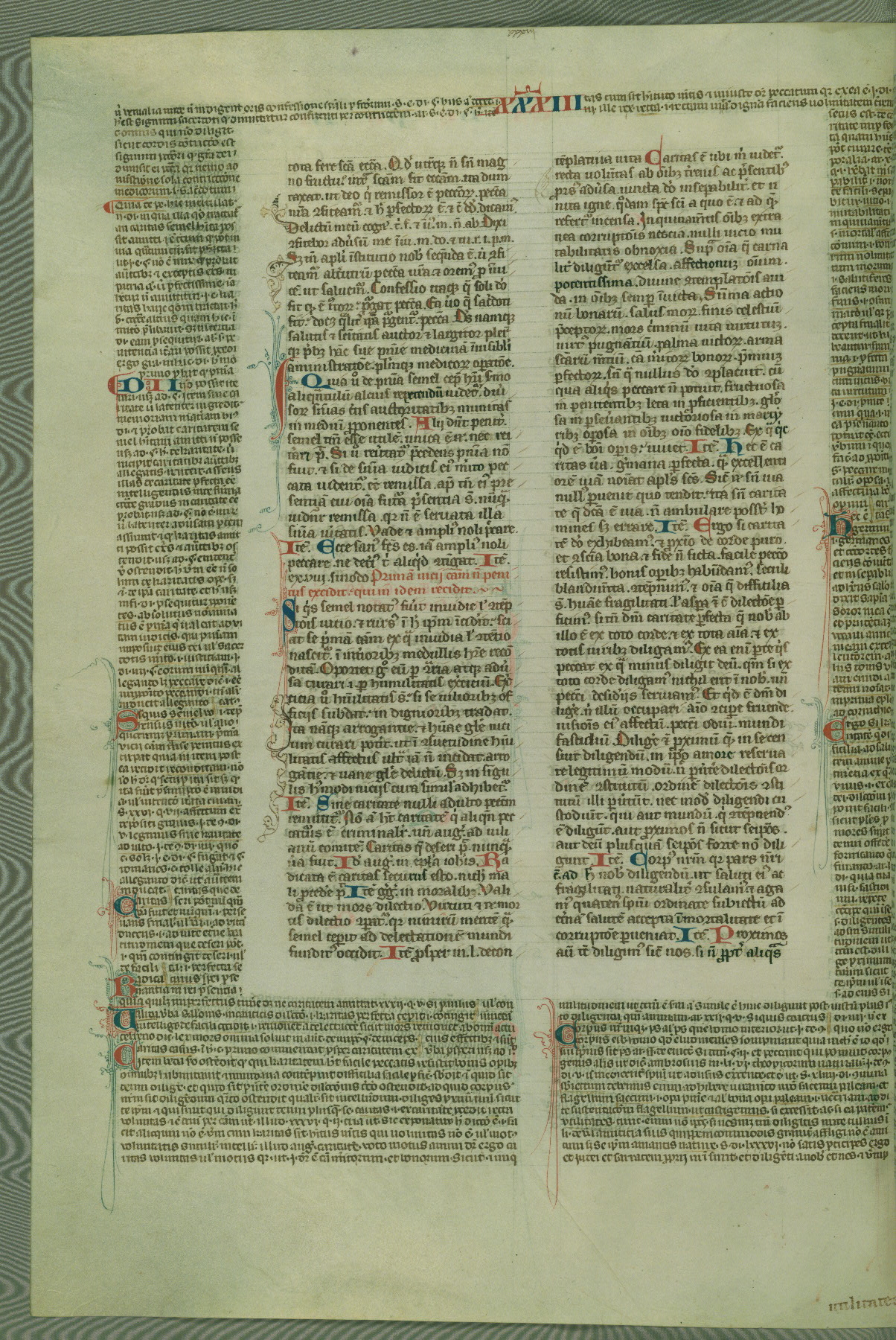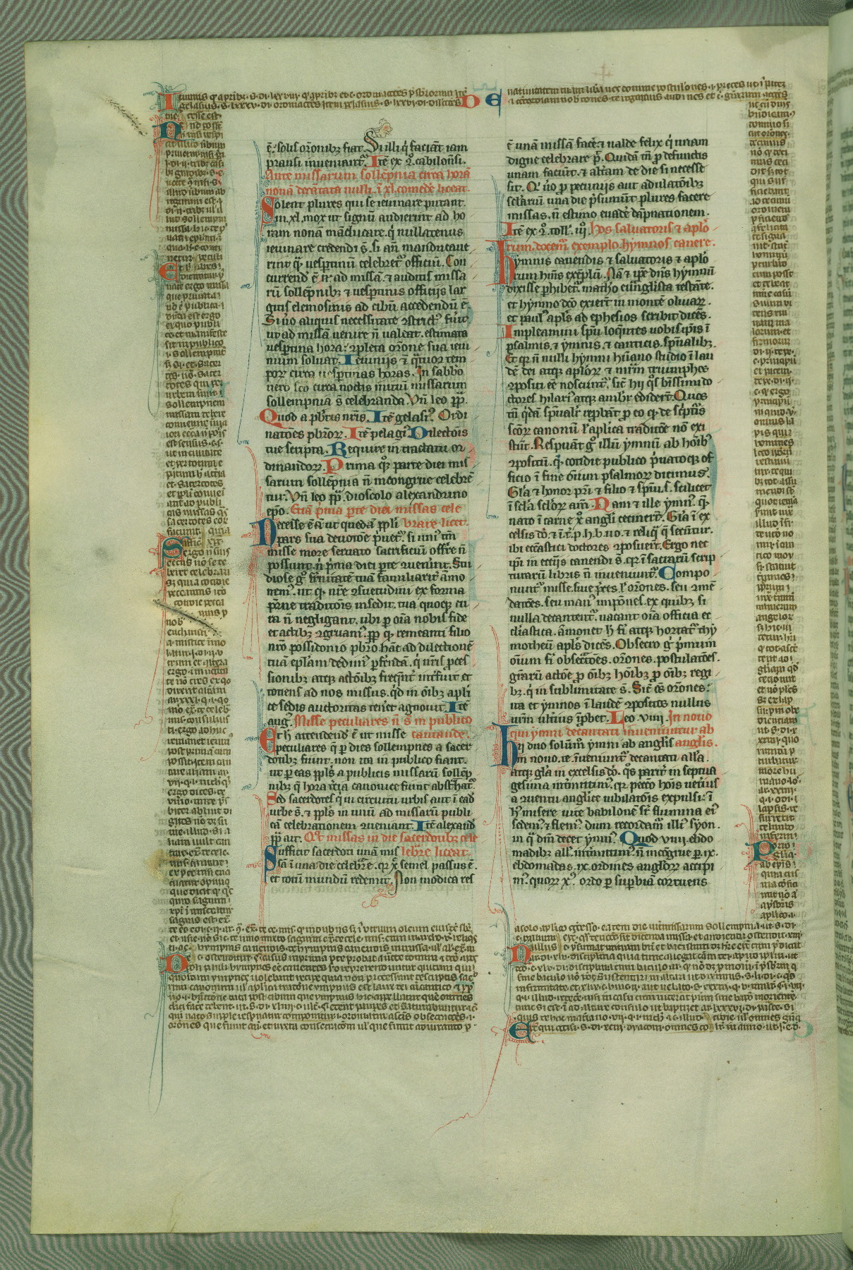 This deluxe version of Gratian's Decretum was created ca. 1280-90, most likely in Hainaut. The lively decoration of the manuscript indicates a marked taste for narrative, and there are thirty-seven historiated initials. The gloss work was completed by Bartholomew of Brescia. At first, Paris would seem to be the most likely place of origin, given that it was the leading center for the study of canon law. However, this particular manuscript exhibits scribal features that suggest its place of origin as being the Cistercian abbey of Cambron in Hainaut. Furthermore, Abbot Baudouin de Bousso, whose tenure at the abbey was from 1283 to 1293, was schooled in theology at the University of Paris, and he would eventually endorse the production of many fine manuscripts while at Cambron. In fact, the catalyst for this endeavor seems to have been the Beaupré Antiphonary (W.759-761), which was was created at Cambron during the 1280s. Stylistic features of W.133 seem to have connections with the Beaupré Antiphonary. For example, Cistercian monks are shown in three extant illuminations throughout three of the antiphonary volumes; these monks are pictured in brown habits similar to the type worn by clerics in W.133. The reliance upon Cistercian precedents for textual and design features associates W.133 with the Cistercian abbey at Cambron. However, more remains to be confirmed by further inspection of the output of the scriptorium at Cambron.