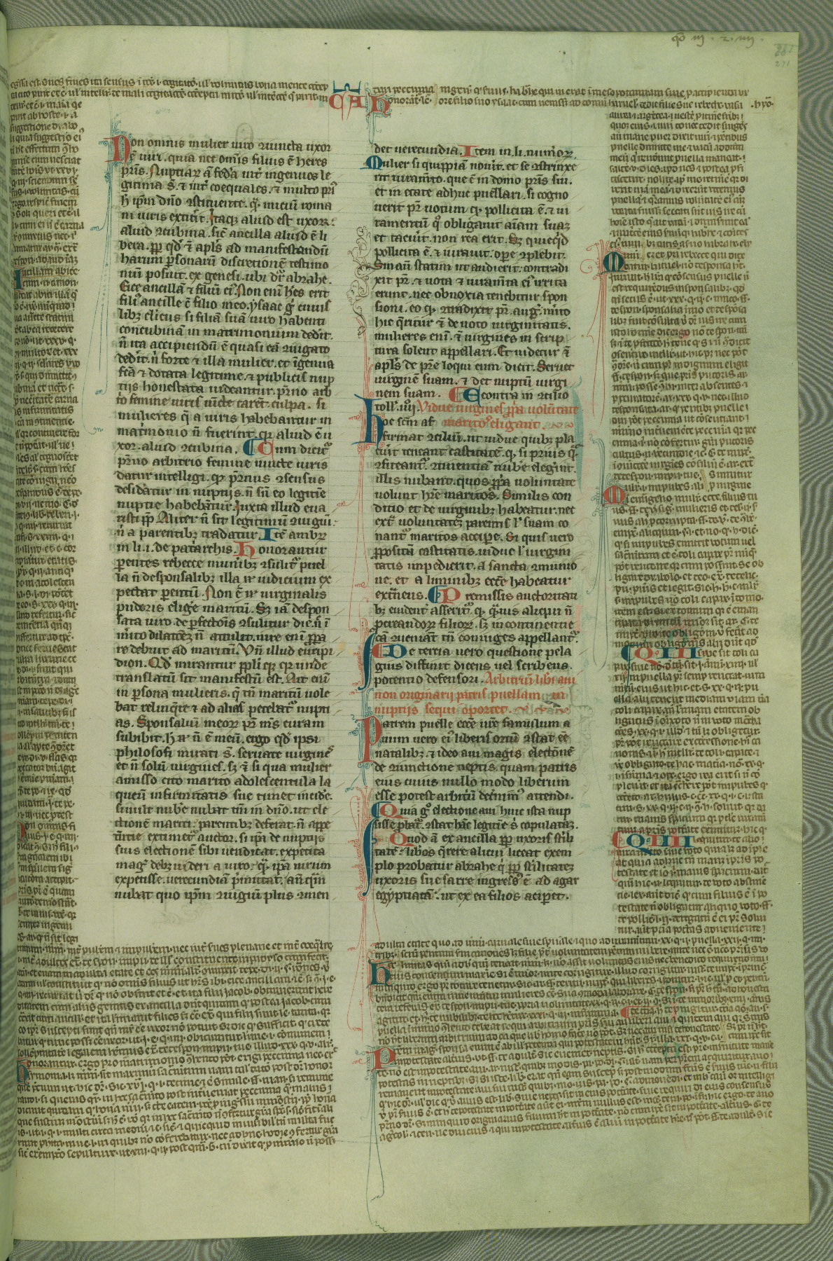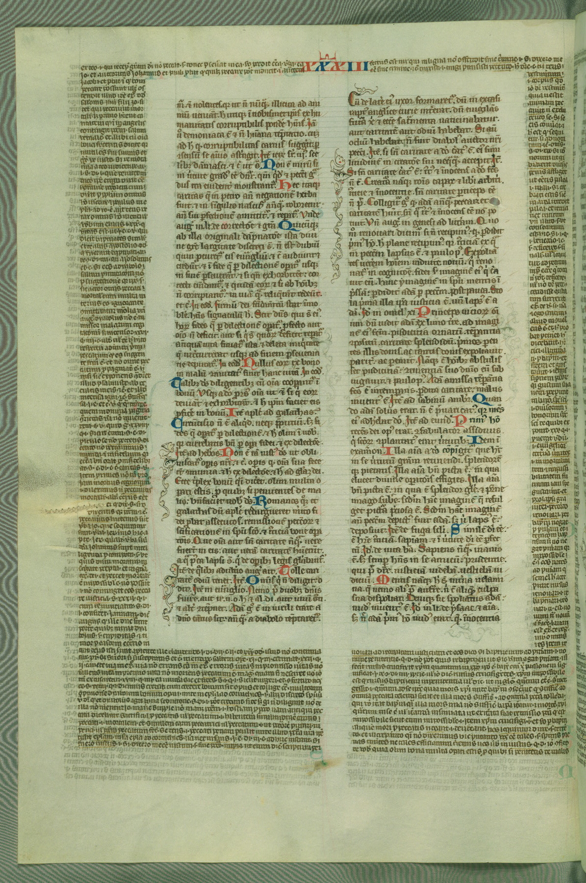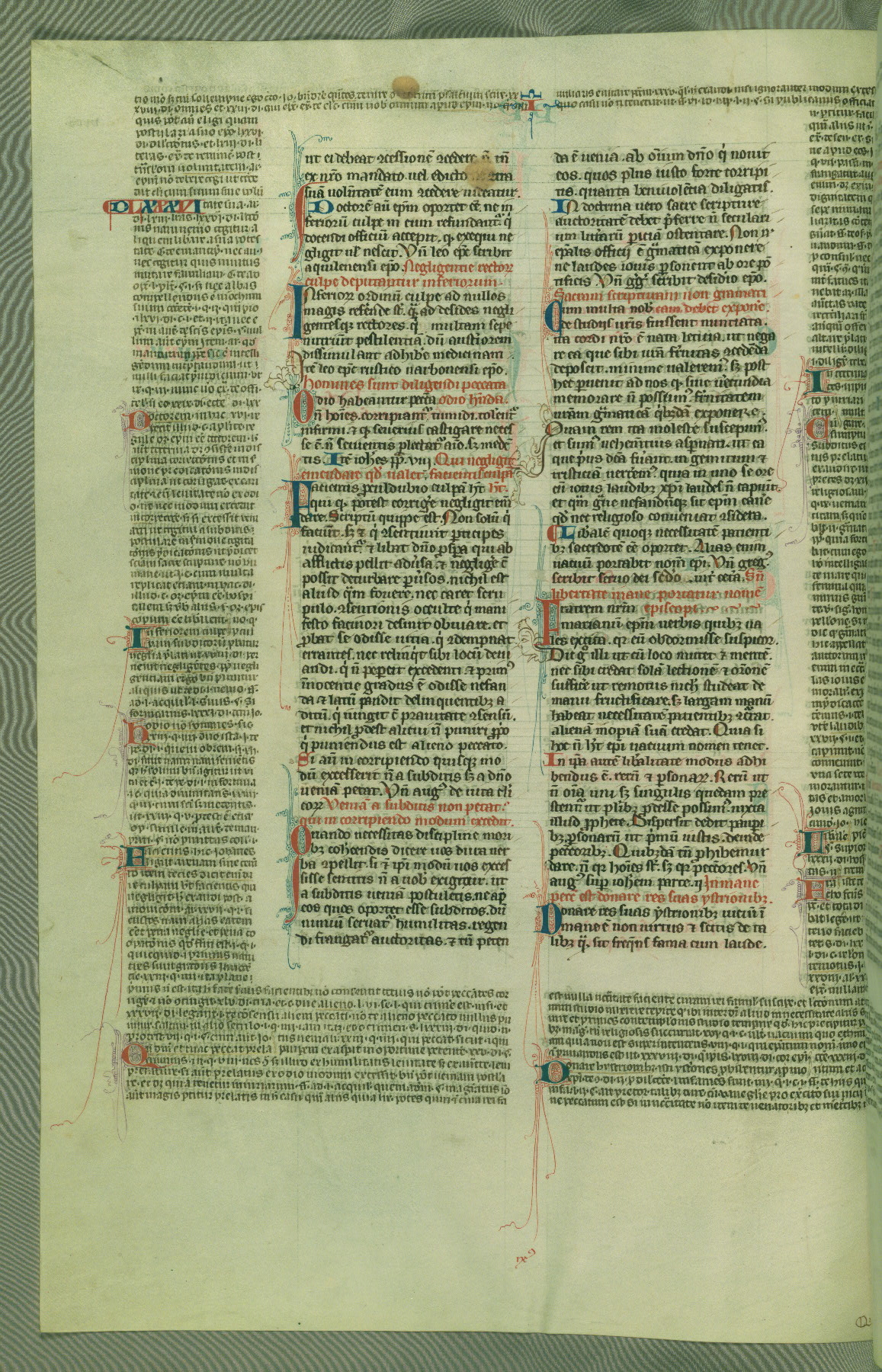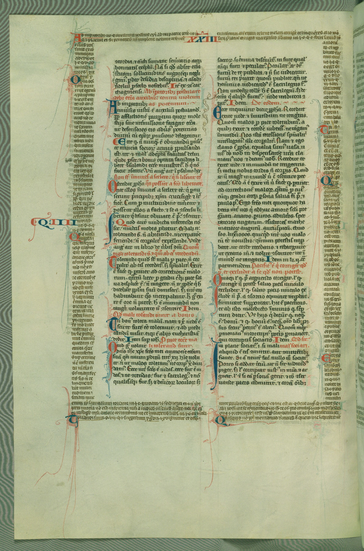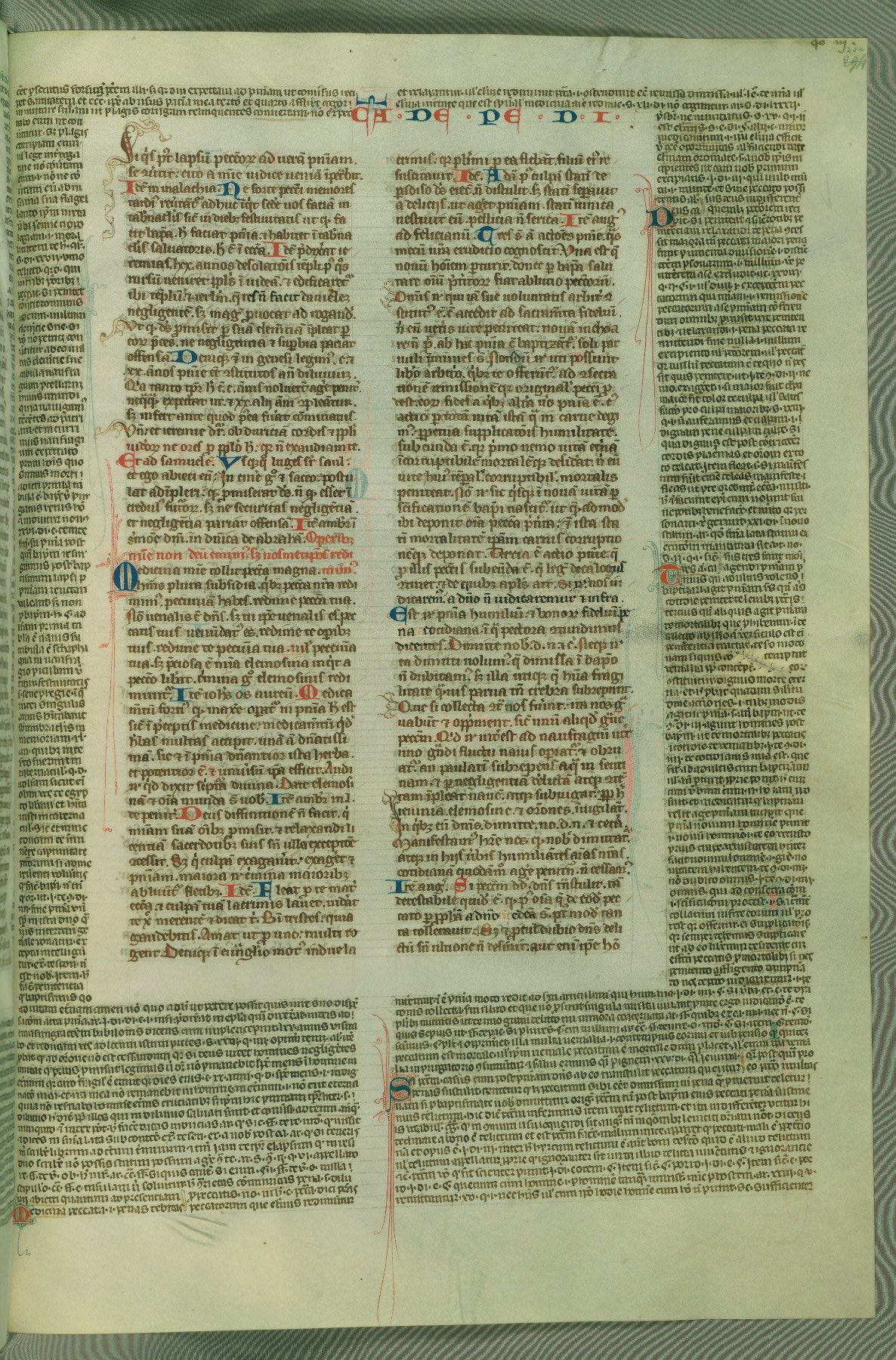 This deluxe version of Gratian's Decretum was created ca. 1280-90, most likely in Hainaut. The lively decoration of the manuscript indicates a marked taste for narrative, and there are thirty-seven historiated initials. The gloss work was completed by Bartholomew of Brescia. At first, Paris would seem to be the most likely place of origin, given that it was the leading center for the study of canon law. However, this particular manuscript exhibits scribal features that suggest its place of origin as being the Cistercian abbey of Cambron in Hainaut. Furthermore, Abbot Baudouin de Bousso, whose tenure at the abbey was from 1283 to 1293, was schooled in theology at the University of Paris, and he would eventually endorse the production of many fine manuscripts while at Cambron. In fact, the catalyst for this endeavor seems to have been the Beaupré Antiphonary (W.759-761), which was was created at Cambron during the 1280s. Stylistic features of W.133 seem to have connections with the Beaupré Antiphonary. For example, Cistercian monks are shown in three extant illuminations throughout three of the antiphonary volumes; these monks are pictured in brown habits similar to the type worn by clerics in W.133. The reliance upon Cistercian precedents for textual and design features associates W.133 with the Cistercian abbey at Cambron. However, more remains to be confirmed by further inspection of the output of the scriptorium at Cambron.