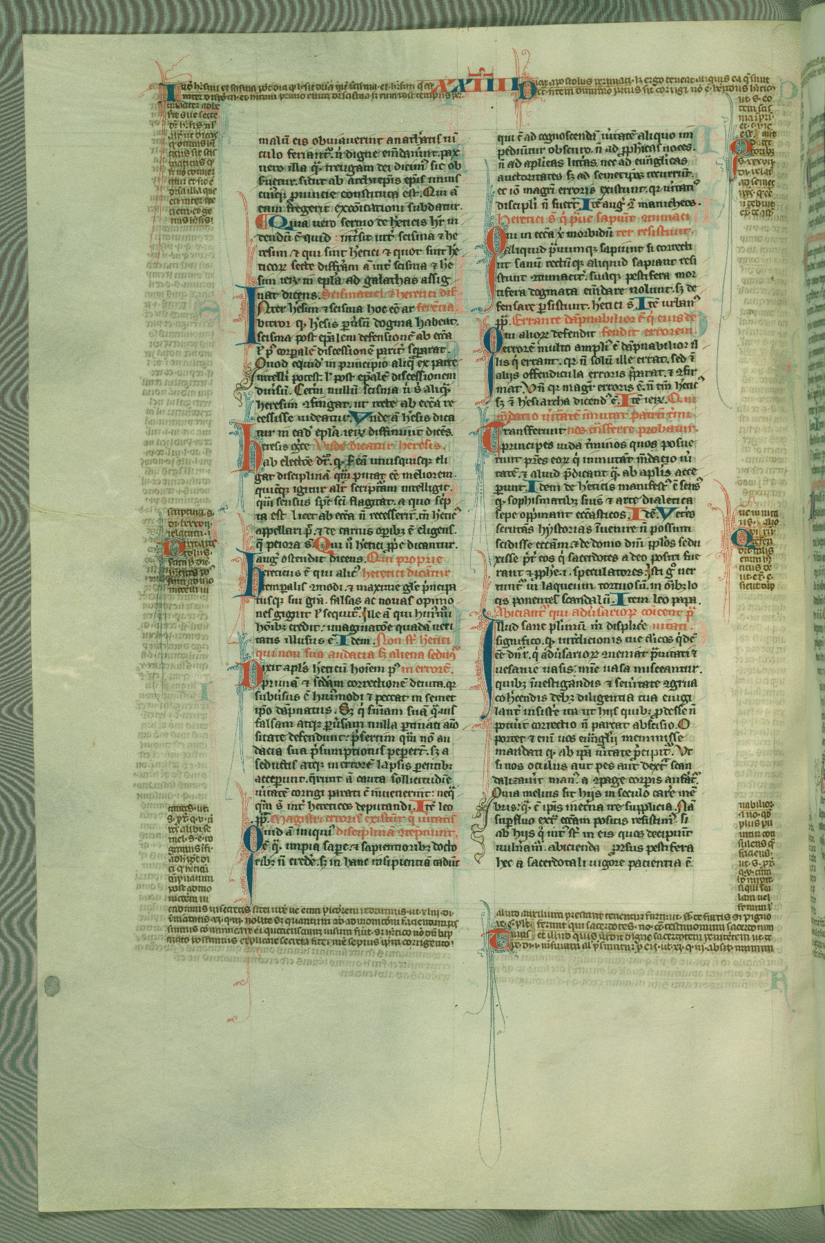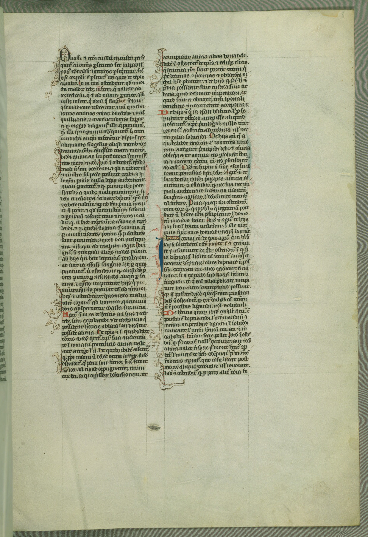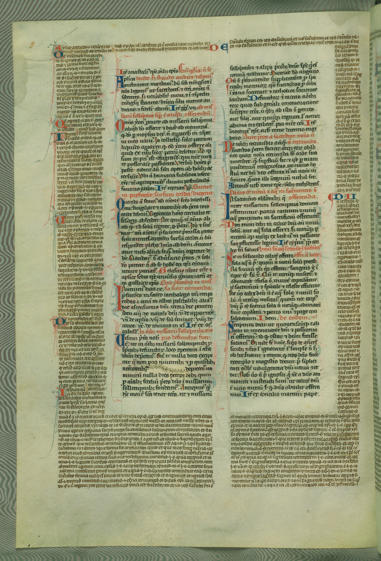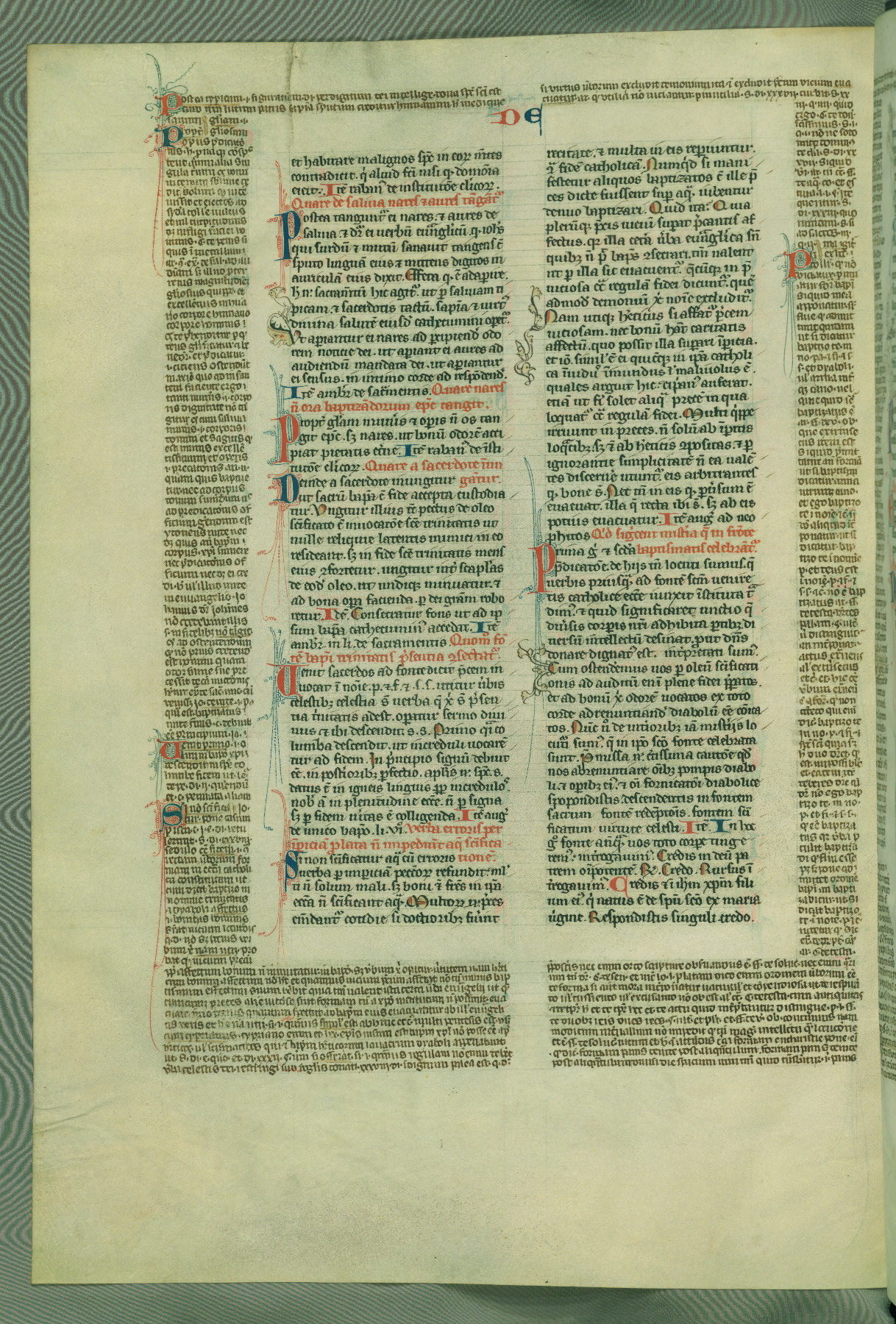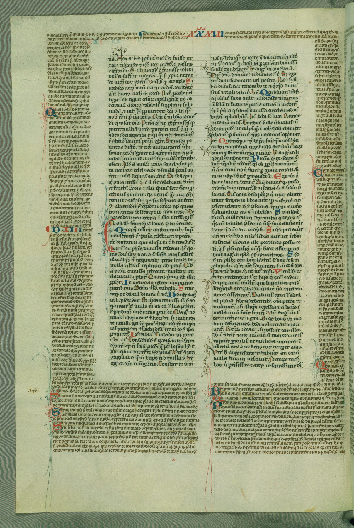 This deluxe version of Gratian's Decretum was created ca. 1280-90, most likely in Hainaut. The lively decoration of the manuscript indicates a marked taste for narrative, and there are thirty-seven historiated initials. The gloss work was completed by Bartholomew of Brescia. At first, Paris would seem to be the most likely place of origin, given that it was the leading center for the study of canon law. However, this particular manuscript exhibits scribal features that suggest its place of origin as being the Cistercian abbey of Cambron in Hainaut. Furthermore, Abbot Baudouin de Bousso, whose tenure at the abbey was from 1283 to 1293, was schooled in theology at the University of Paris, and he would eventually endorse the production of many fine manuscripts while at Cambron. In fact, the catalyst for this endeavor seems to have been the Beaupré Antiphonary (W.759-761), which was was created at Cambron during the 1280s. Stylistic features of W.133 seem to have connections with the Beaupré Antiphonary. For example, Cistercian monks are shown in three extant illuminations throughout three of the antiphonary volumes; these monks are pictured in brown habits similar to the type worn by clerics in W.133. The reliance upon Cistercian precedents for textual and design features associates W.133 with the Cistercian abbey at Cambron. However, more remains to be confirmed by further inspection of the output of the scriptorium at Cambron.
