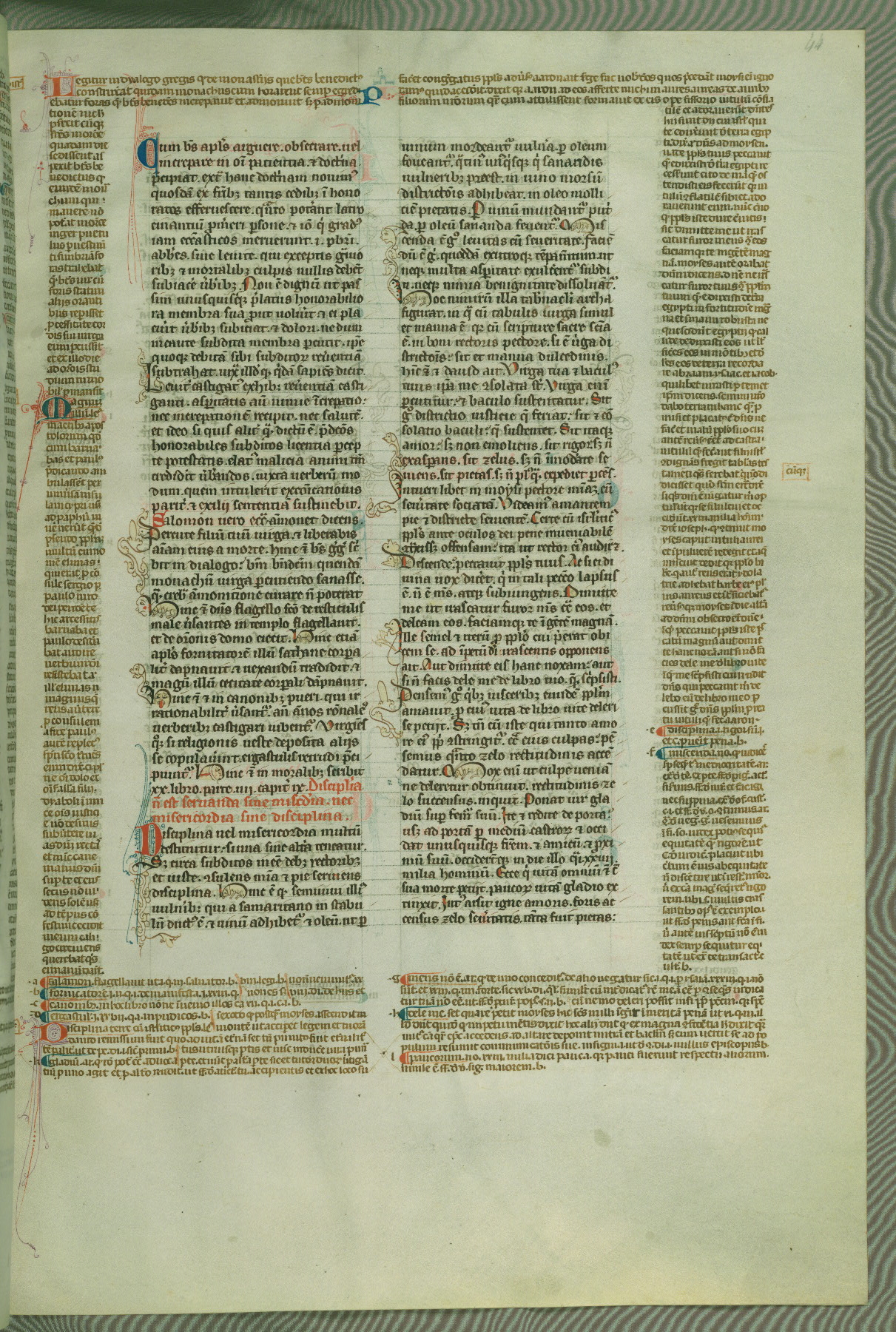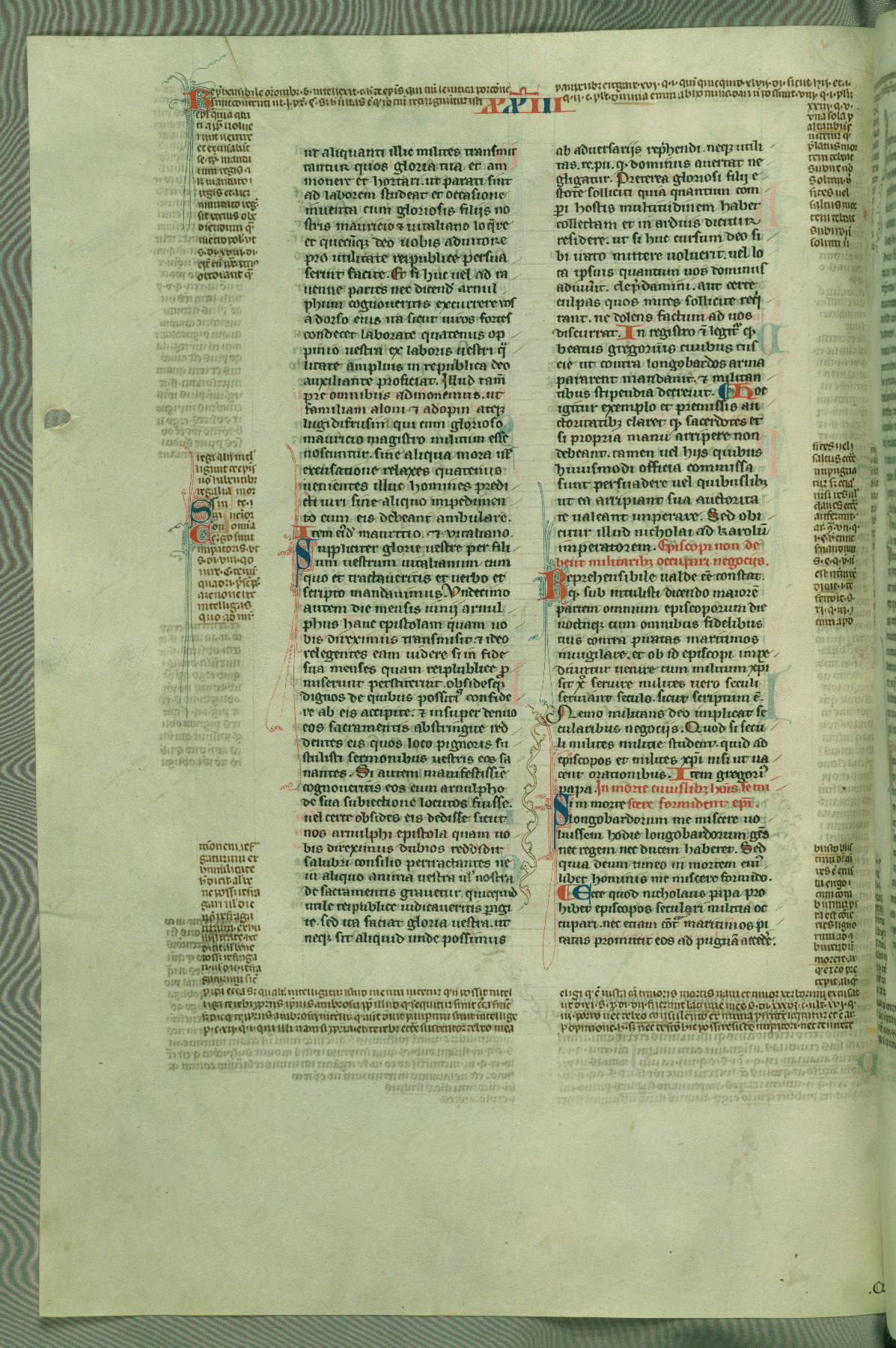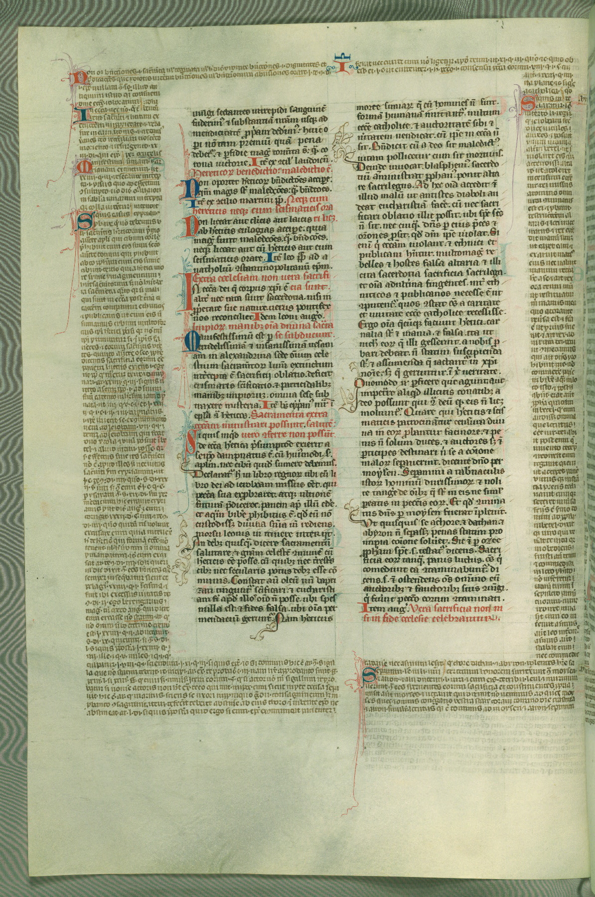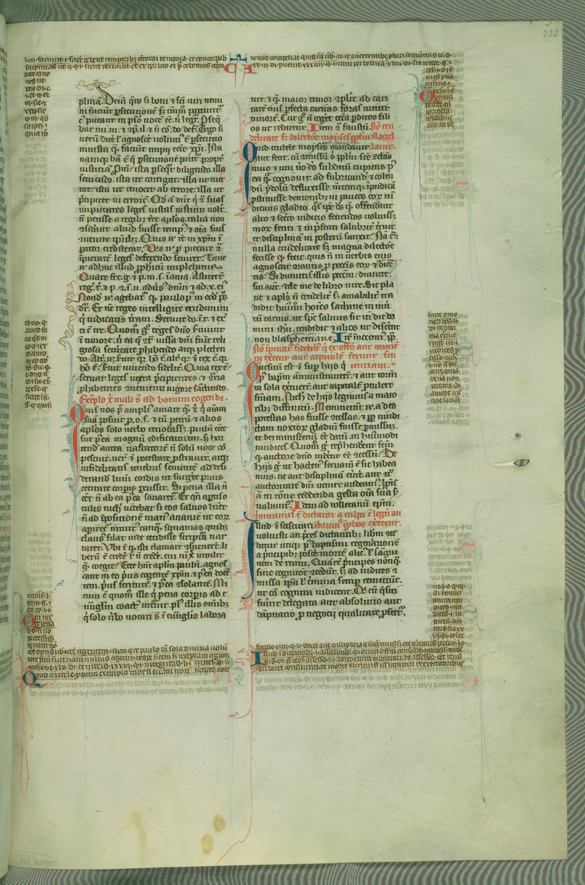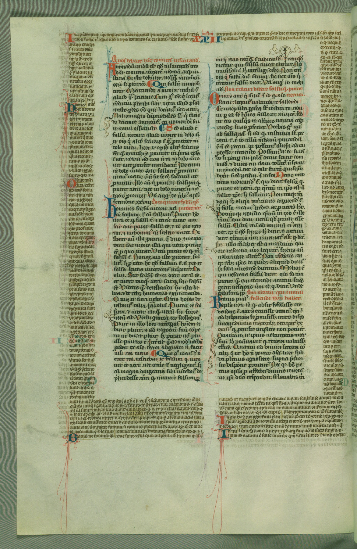 This deluxe version of Gratian's Decretum was created ca. 1280-90, most likely in Hainaut. The lively decoration of the manuscript indicates a marked taste for narrative, and there are thirty-seven historiated initials. The gloss work was completed by Bartholomew of Brescia. At first, Paris would seem to be the most likely place of origin, given that it was the leading center for the study of canon law. However, this particular manuscript exhibits scribal features that suggest its place of origin as being the Cistercian abbey of Cambron in Hainaut. Furthermore, Abbot Baudouin de Bousso, whose tenure at the abbey was from 1283 to 1293, was schooled in theology at the University of Paris, and he would eventually endorse the production of many fine manuscripts while at Cambron. In fact, the catalyst for this endeavor seems to have been the Beaupré Antiphonary (W.759-761), which was was created at Cambron during the 1280s. Stylistic features of W.133 seem to have connections with the Beaupré Antiphonary. For example, Cistercian monks are shown in three extant illuminations throughout three of the antiphonary volumes; these monks are pictured in brown habits similar to the type worn by clerics in W.133. The reliance upon Cistercian precedents for textual and design features associates W.133 with the Cistercian abbey at Cambron. However, more remains to be confirmed by further inspection of the output of the scriptorium at Cambron.