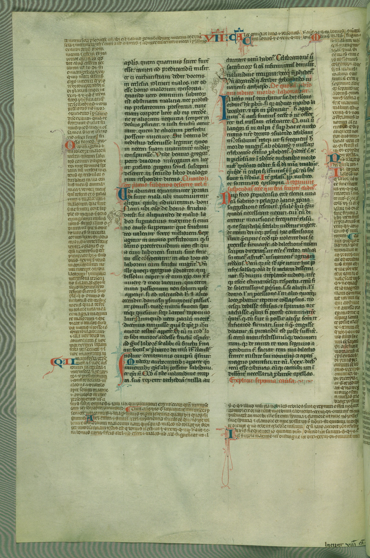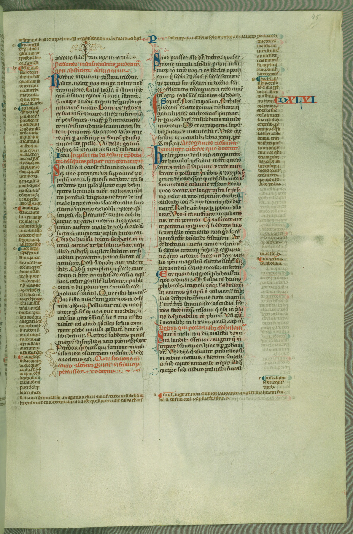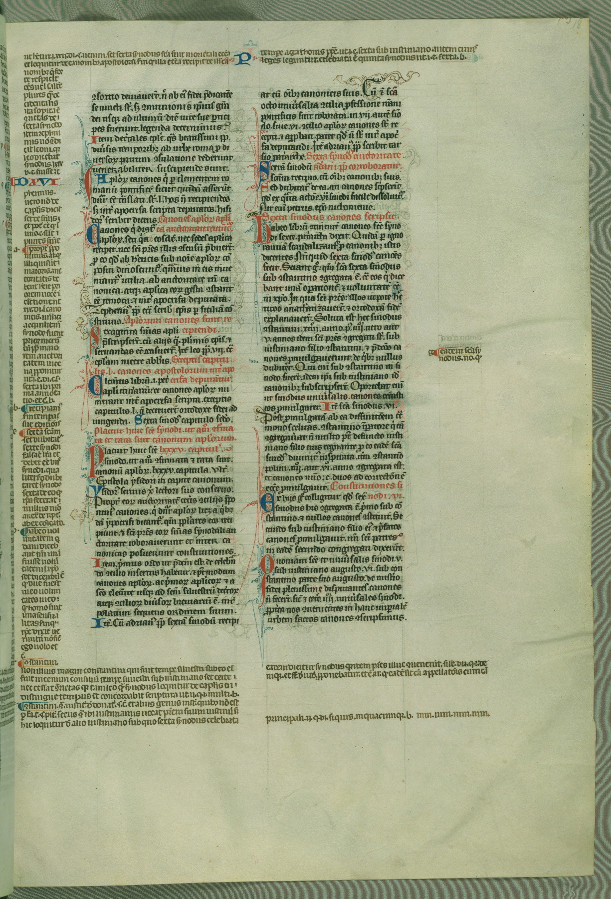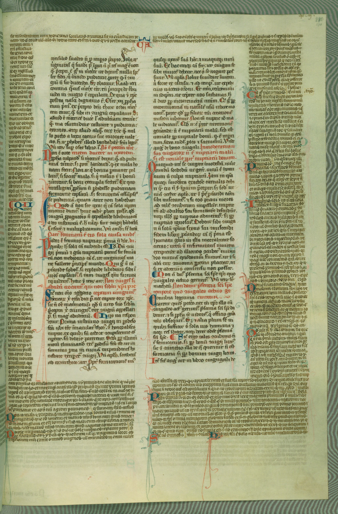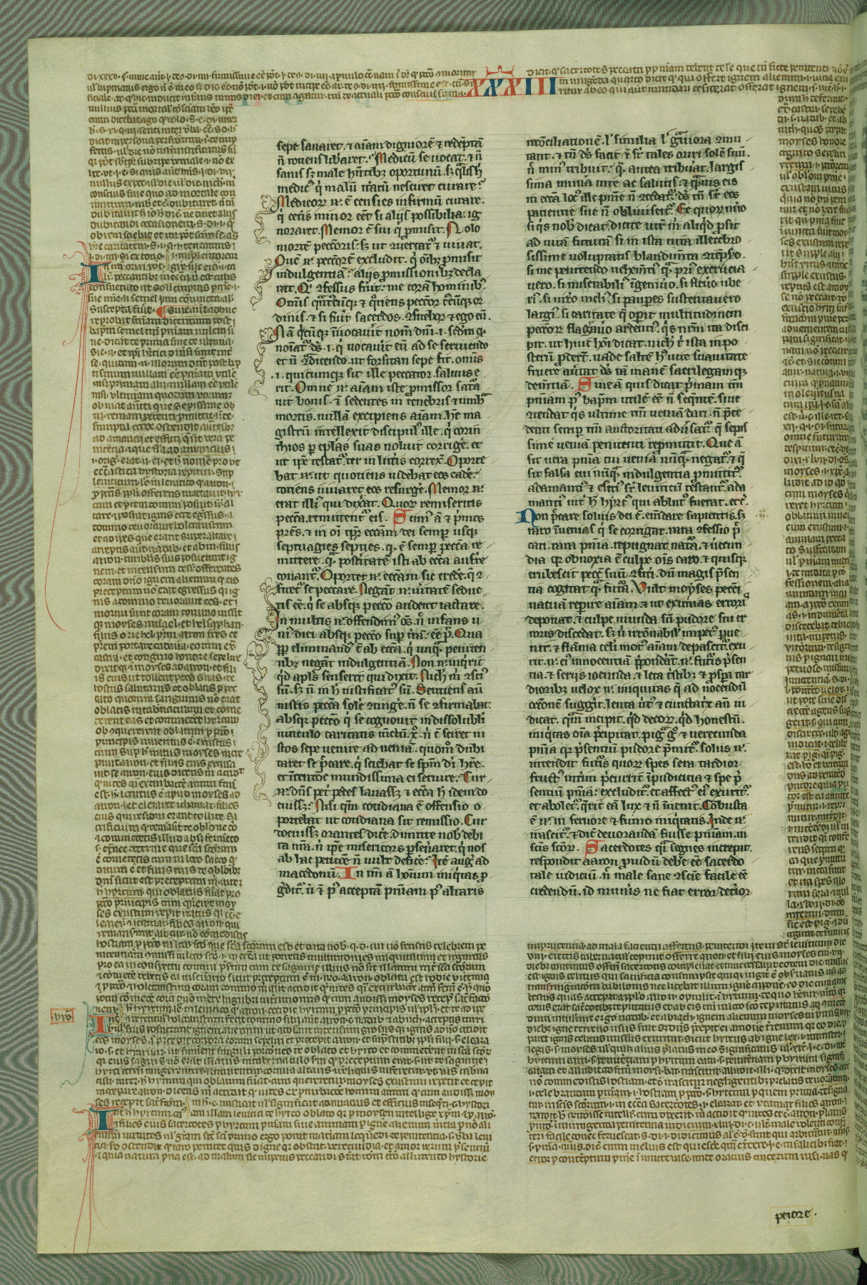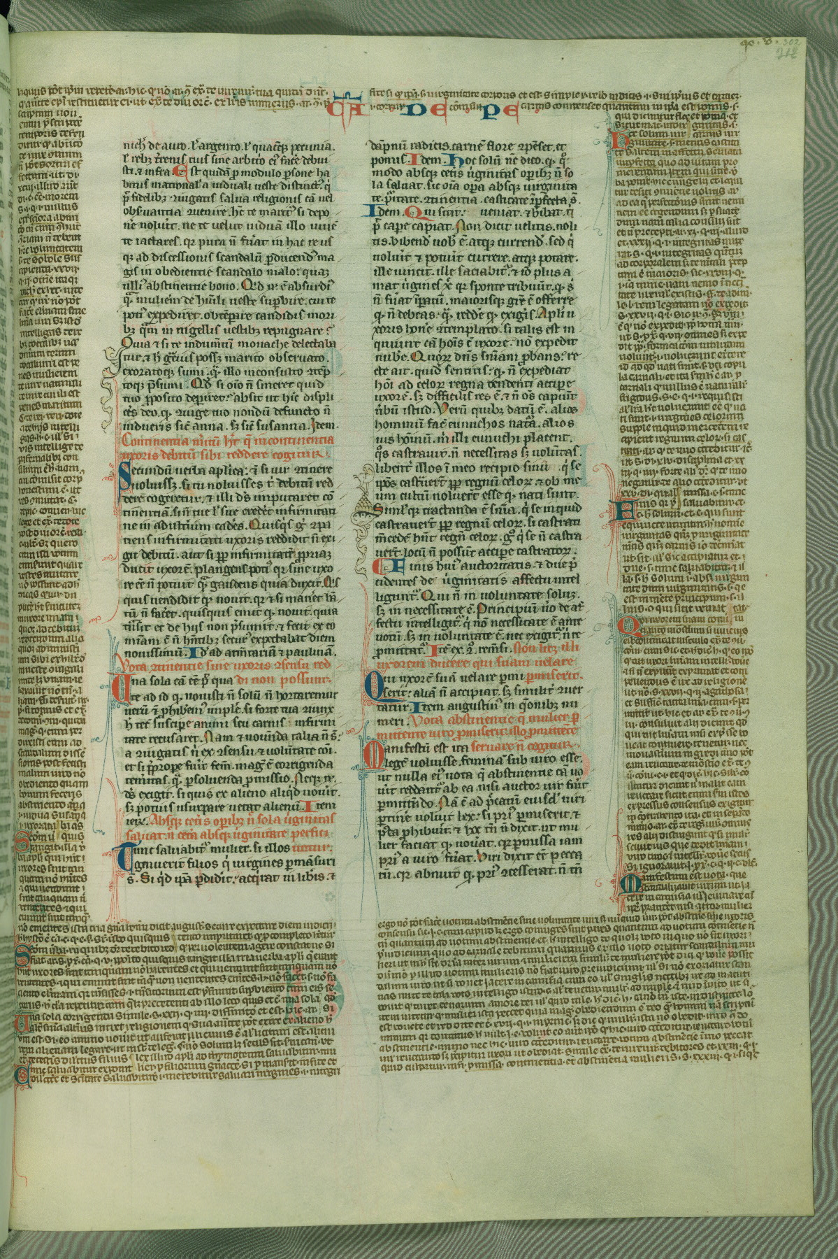 This deluxe version of Gratian's Decretum was created ca. 1280-90, most likely in Hainaut. The lively decoration of the manuscript indicates a marked taste for narrative, and there are thirty-seven historiated initials. The gloss work was completed by Bartholomew of Brescia. At first, Paris would seem to be the most likely place of origin, given that it was the leading center for the study of canon law. However, this particular manuscript exhibits scribal features that suggest its place of origin as being the Cistercian abbey of Cambron in Hainaut. Furthermore, Abbot Baudouin de Bousso, whose tenure at the abbey was from 1283 to 1293, was schooled in theology at the University of Paris, and he would eventually endorse the production of many fine manuscripts while at Cambron. In fact, the catalyst for this endeavor seems to have been the Beaupré Antiphonary (W.759-761), which was was created at Cambron during the 1280s. Stylistic features of W.133 seem to have connections with the Beaupré Antiphonary. For example, Cistercian monks are shown in three extant illuminations throughout three of the antiphonary volumes; these monks are pictured in brown habits similar to the type worn by clerics in W.133. The reliance upon Cistercian precedents for textual and design features associates W.133 with the Cistercian abbey at Cambron. However, more remains to be confirmed by further inspection of the output of the scriptorium at Cambron.