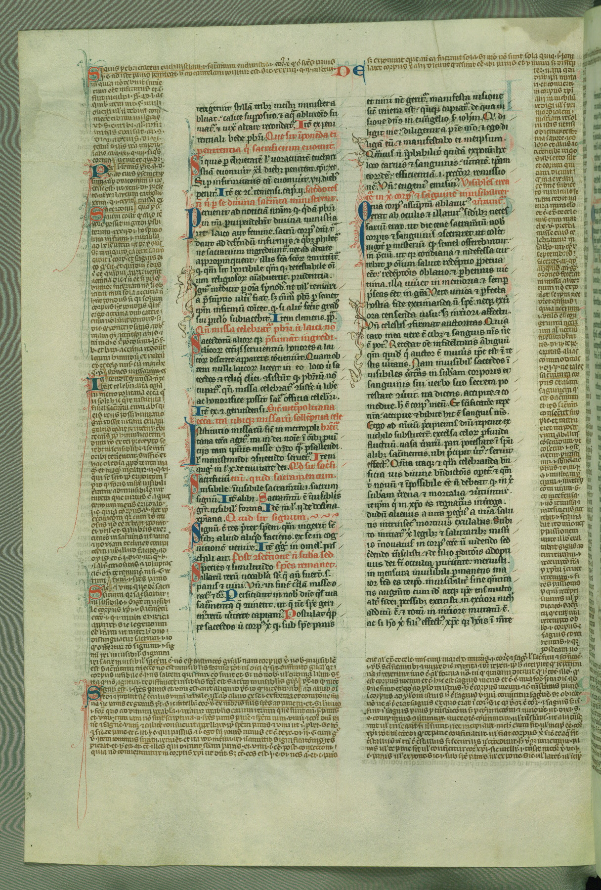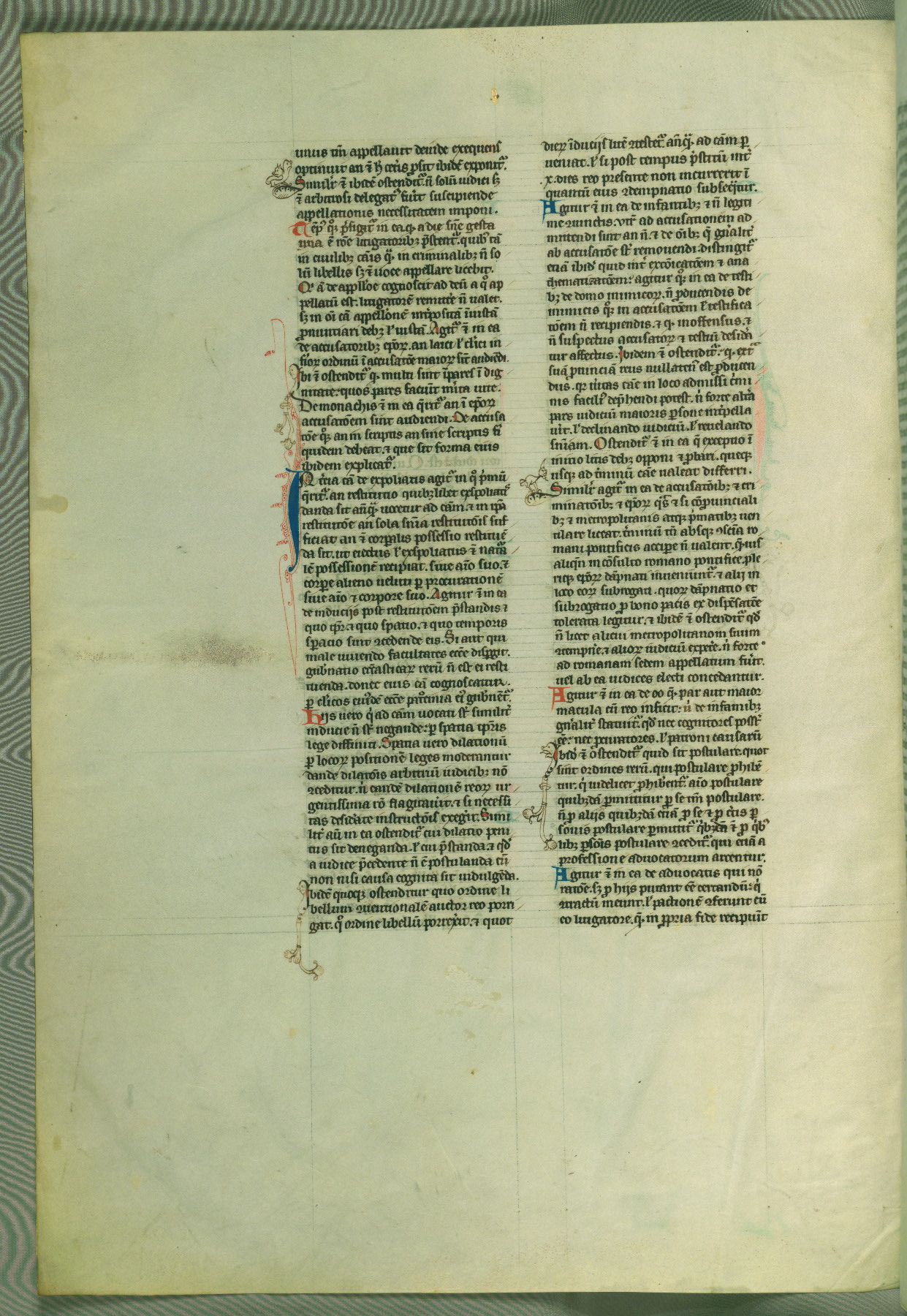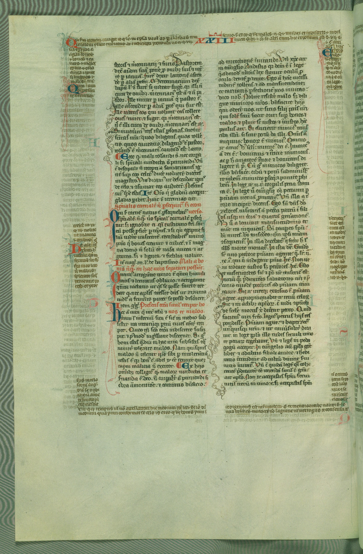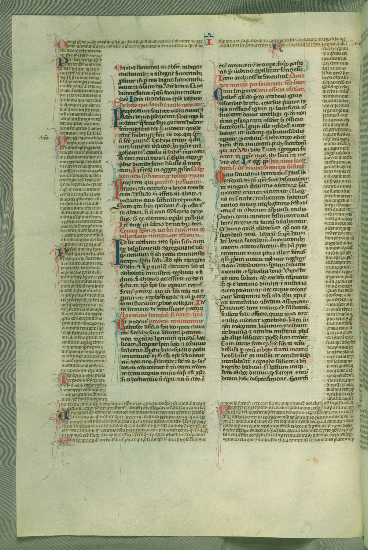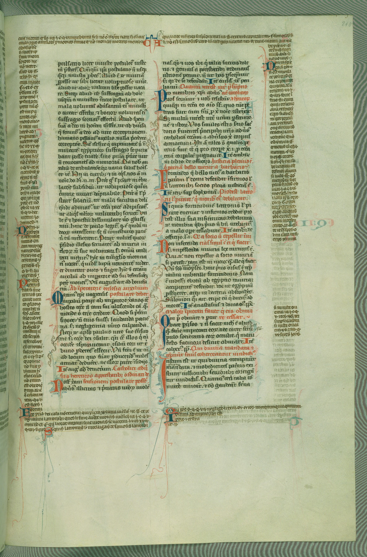 This deluxe version of Gratian's Decretum was created ca. 1280-90, most likely in Hainaut. The lively decoration of the manuscript indicates a marked taste for narrative, and there are thirty-seven historiated initials. The gloss work was completed by Bartholomew of Brescia. At first, Paris would seem to be the most likely place of origin, given that it was the leading center for the study of canon law. However, this particular manuscript exhibits scribal features that suggest its place of origin as being the Cistercian abbey of Cambron in Hainaut. Furthermore, Abbot Baudouin de Bousso, whose tenure at the abbey was from 1283 to 1293, was schooled in theology at the University of Paris, and he would eventually endorse the production of many fine manuscripts while at Cambron. In fact, the catalyst for this endeavor seems to have been the Beaupré Antiphonary (W.759-761), which was was created at Cambron during the 1280s. Stylistic features of W.133 seem to have connections with the Beaupré Antiphonary. For example, Cistercian monks are shown in three extant illuminations throughout three of the antiphonary volumes; these monks are pictured in brown habits similar to the type worn by clerics in W.133. The reliance upon Cistercian precedents for textual and design features associates W.133 with the Cistercian abbey at Cambron. However, more remains to be confirmed by further inspection of the output of the scriptorium at Cambron.