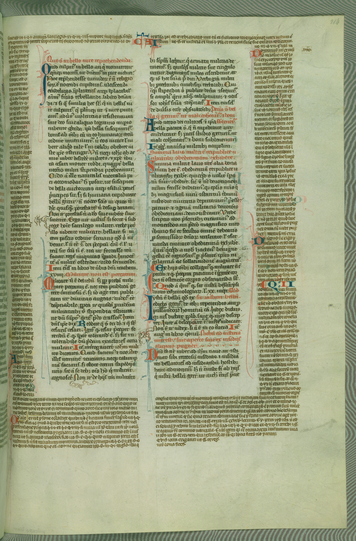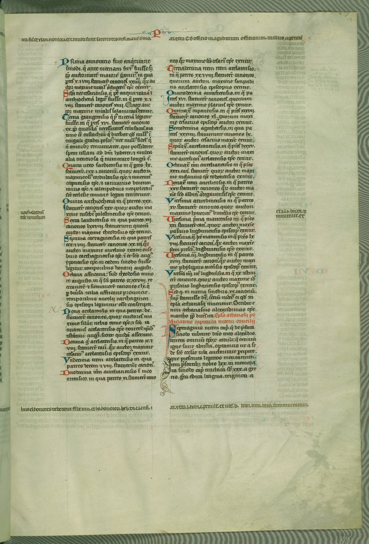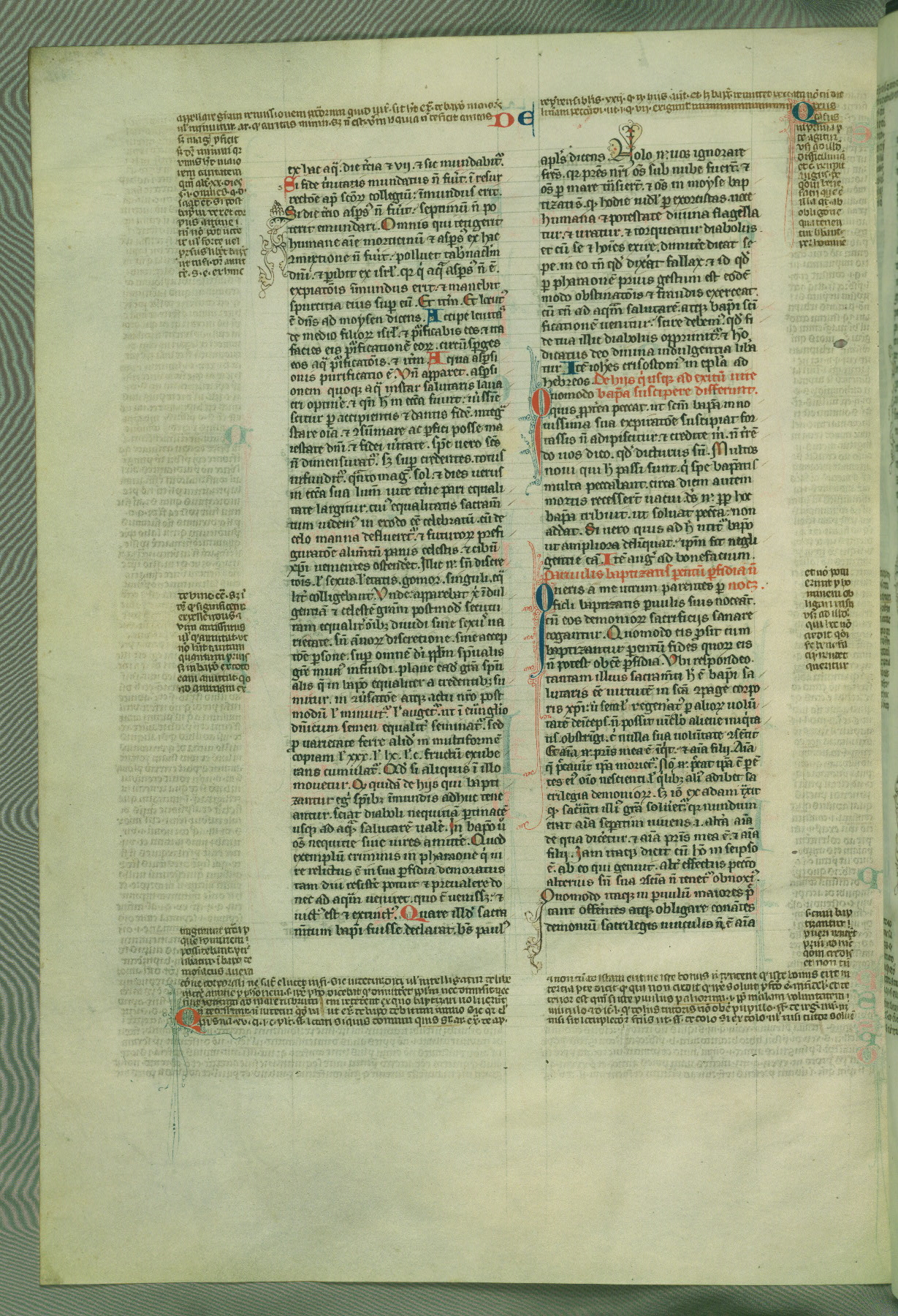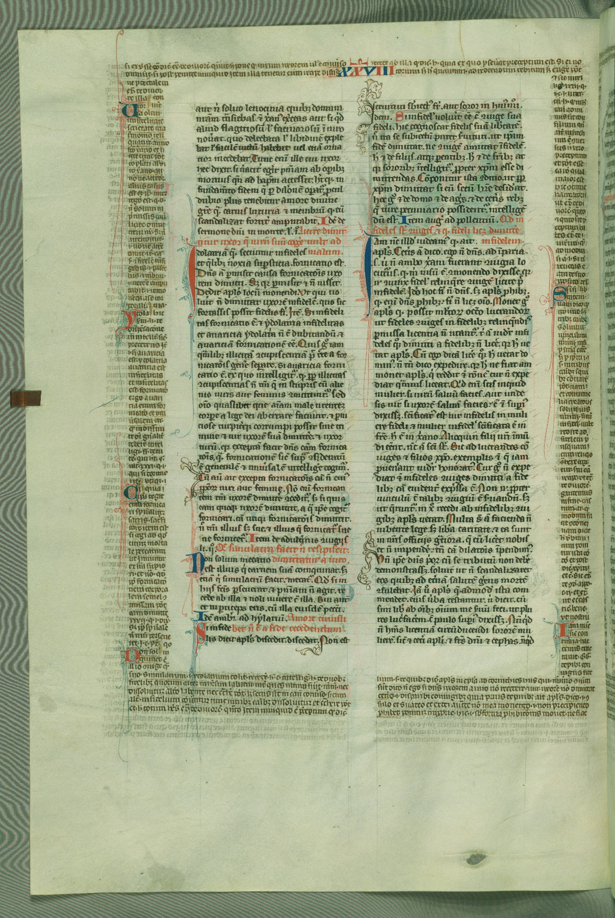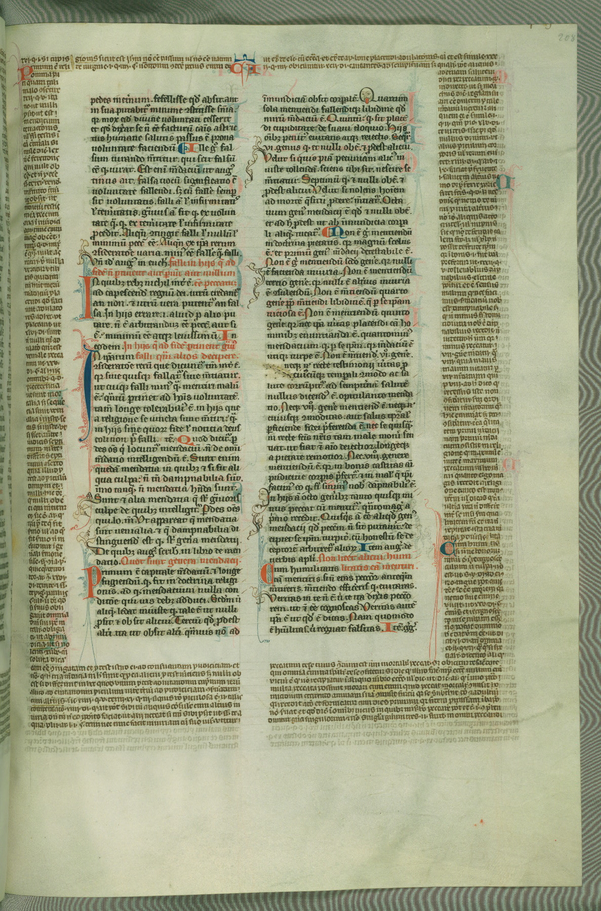 This deluxe version of Gratian's Decretum was created ca. 1280-90, most likely in Hainaut. The lively decoration of the manuscript indicates a marked taste for narrative, and there are thirty-seven historiated initials. The gloss work was completed by Bartholomew of Brescia. At first, Paris would seem to be the most likely place of origin, given that it was the leading center for the study of canon law. However, this particular manuscript exhibits scribal features that suggest its place of origin as being the Cistercian abbey of Cambron in Hainaut. Furthermore, Abbot Baudouin de Bousso, whose tenure at the abbey was from 1283 to 1293, was schooled in theology at the University of Paris, and he would eventually endorse the production of many fine manuscripts while at Cambron. In fact, the catalyst for this endeavor seems to have been the Beaupré Antiphonary (W.759-761), which was was created at Cambron during the 1280s. Stylistic features of W.133 seem to have connections with the Beaupré Antiphonary. For example, Cistercian monks are shown in three extant illuminations throughout three of the antiphonary volumes; these monks are pictured in brown habits similar to the type worn by clerics in W.133. The reliance upon Cistercian precedents for textual and design features associates W.133 with the Cistercian abbey at Cambron. However, more remains to be confirmed by further inspection of the output of the scriptorium at Cambron.