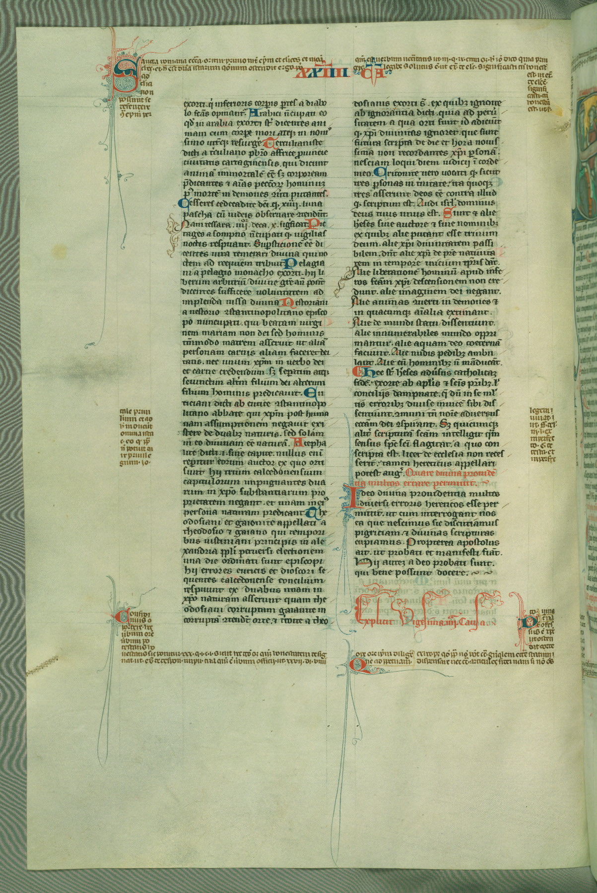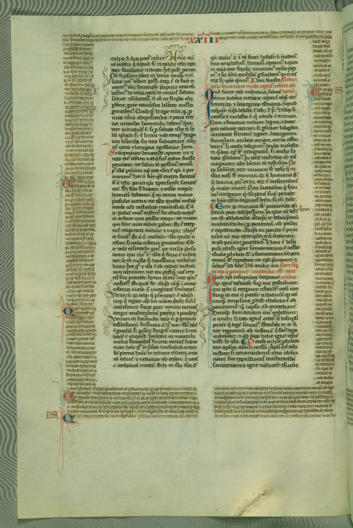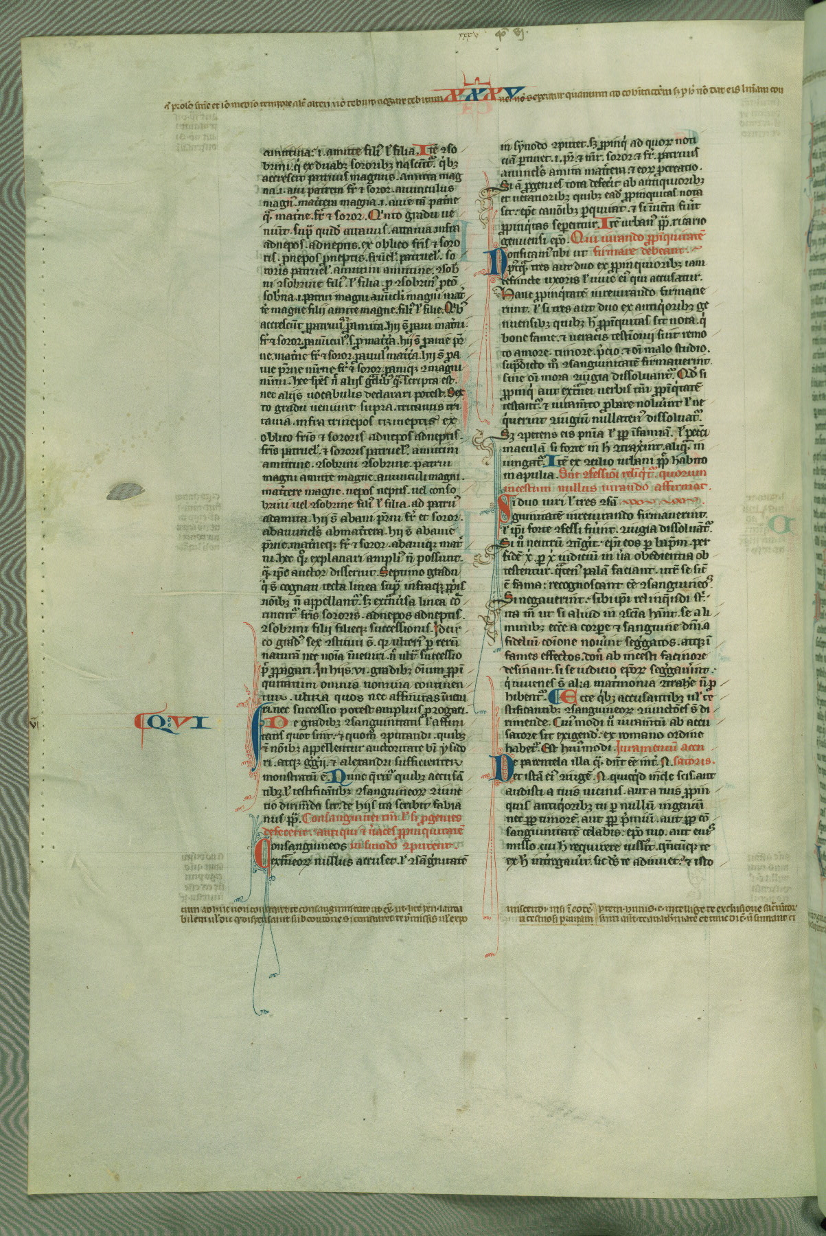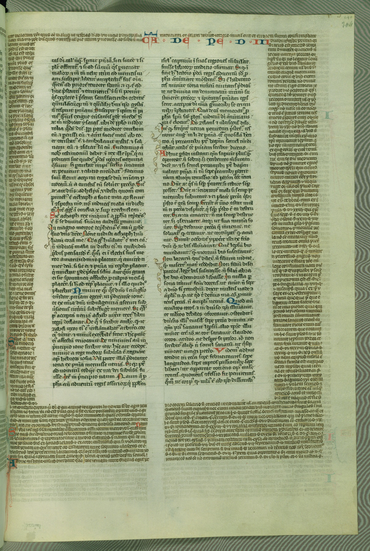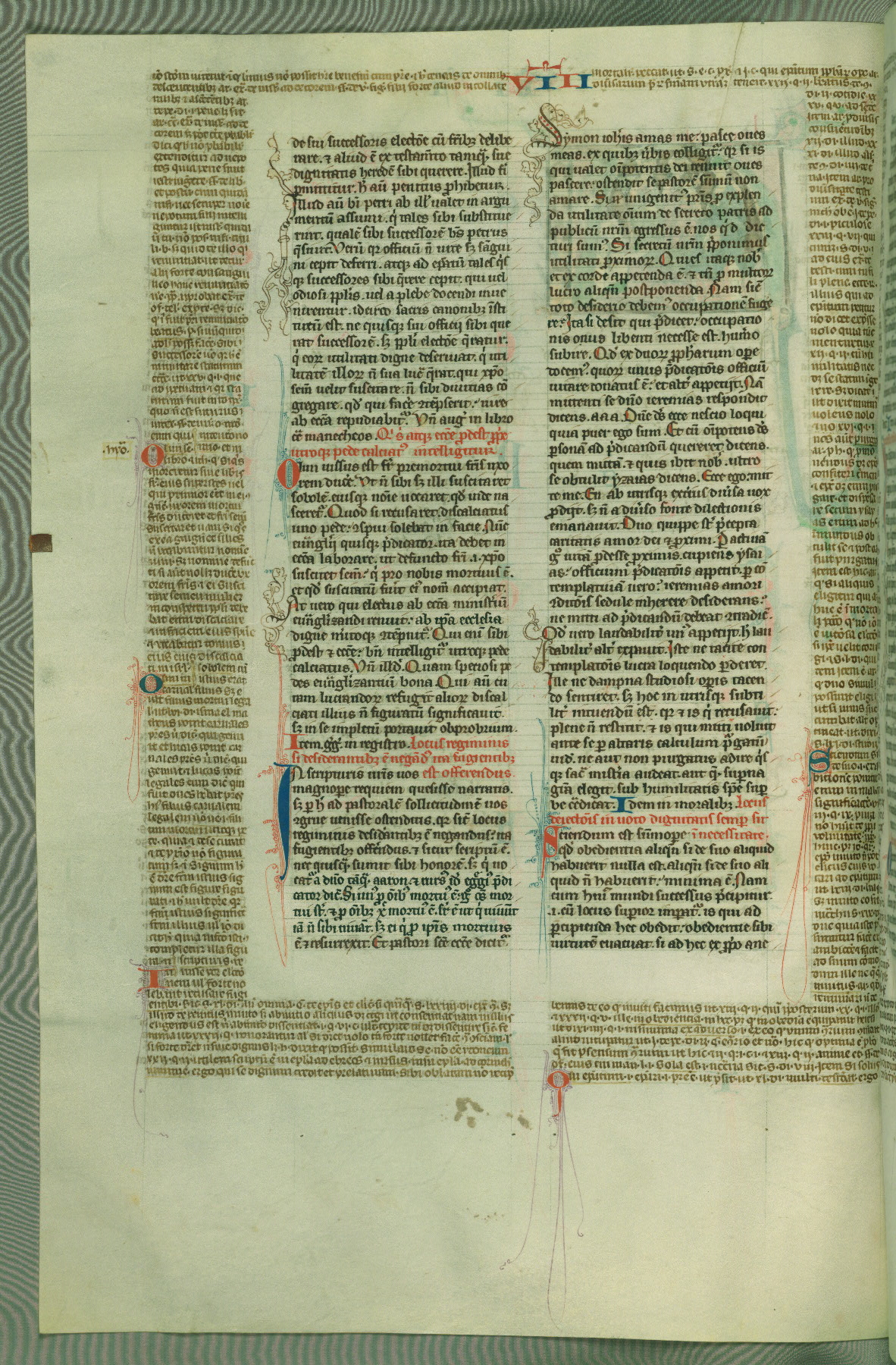 This deluxe version of Gratian's Decretum was created ca. 1280-90, most likely in Hainaut. The lively decoration of the manuscript indicates a marked taste for narrative, and there are thirty-seven historiated initials. The gloss work was completed by Bartholomew of Brescia. At first, Paris would seem to be the most likely place of origin, given that it was the leading center for the study of canon law. However, this particular manuscript exhibits scribal features that suggest its place of origin as being the Cistercian abbey of Cambron in Hainaut. Furthermore, Abbot Baudouin de Bousso, whose tenure at the abbey was from 1283 to 1293, was schooled in theology at the University of Paris, and he would eventually endorse the production of many fine manuscripts while at Cambron. In fact, the catalyst for this endeavor seems to have been the Beaupré Antiphonary (W.759-761), which was was created at Cambron during the 1280s. Stylistic features of W.133 seem to have connections with the Beaupré Antiphonary. For example, Cistercian monks are shown in three extant illuminations throughout three of the antiphonary volumes; these monks are pictured in brown habits similar to the type worn by clerics in W.133. The reliance upon Cistercian precedents for textual and design features associates W.133 with the Cistercian abbey at Cambron. However, more remains to be confirmed by further inspection of the output of the scriptorium at Cambron.