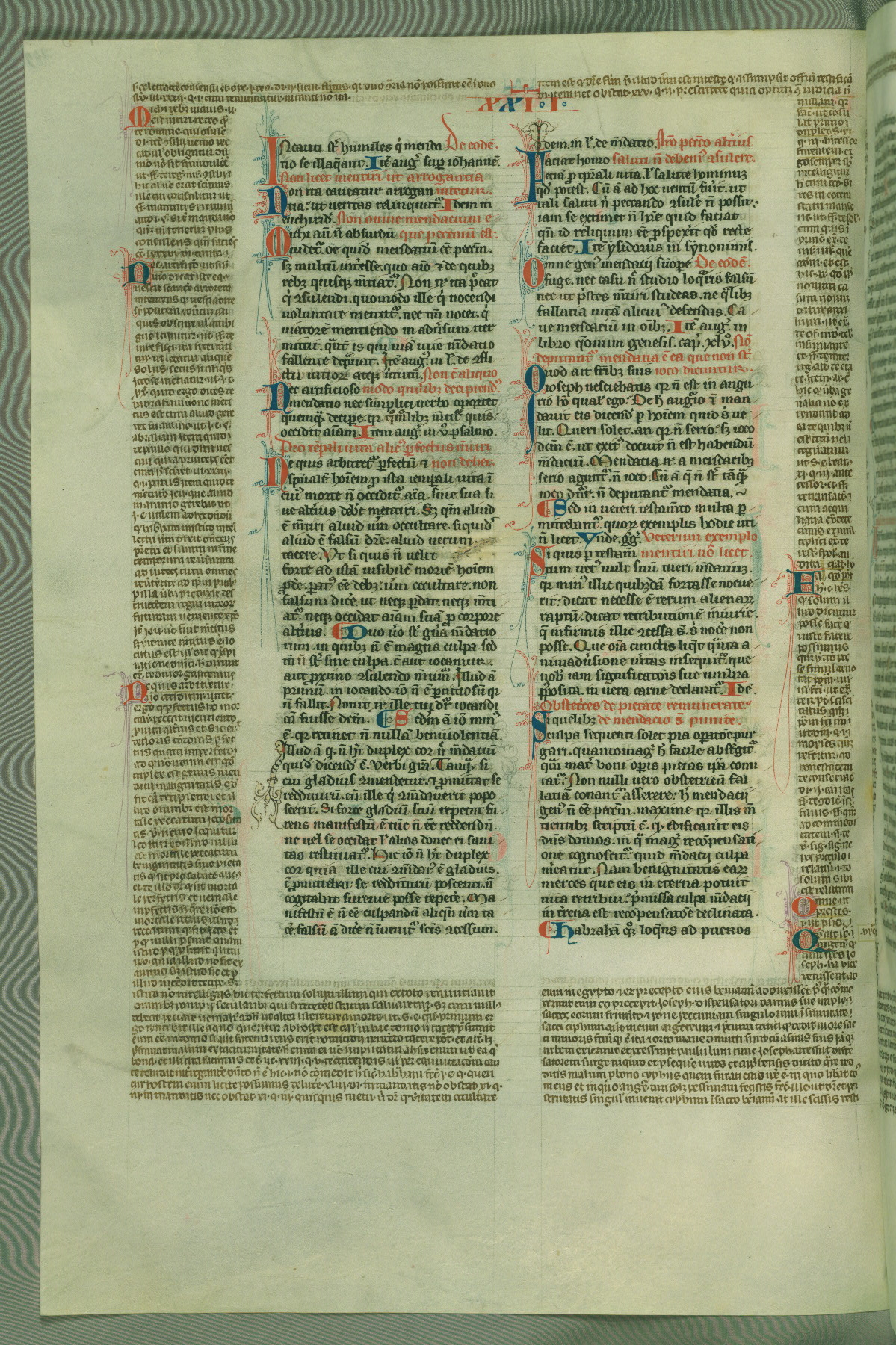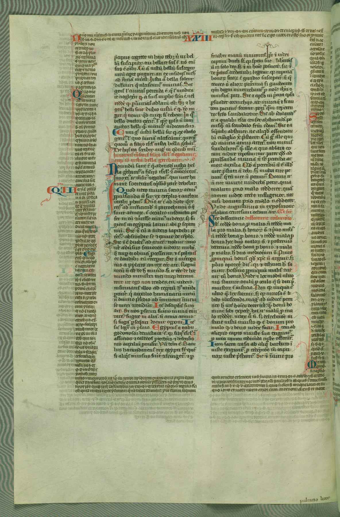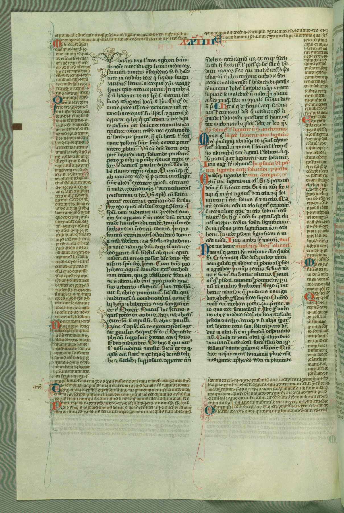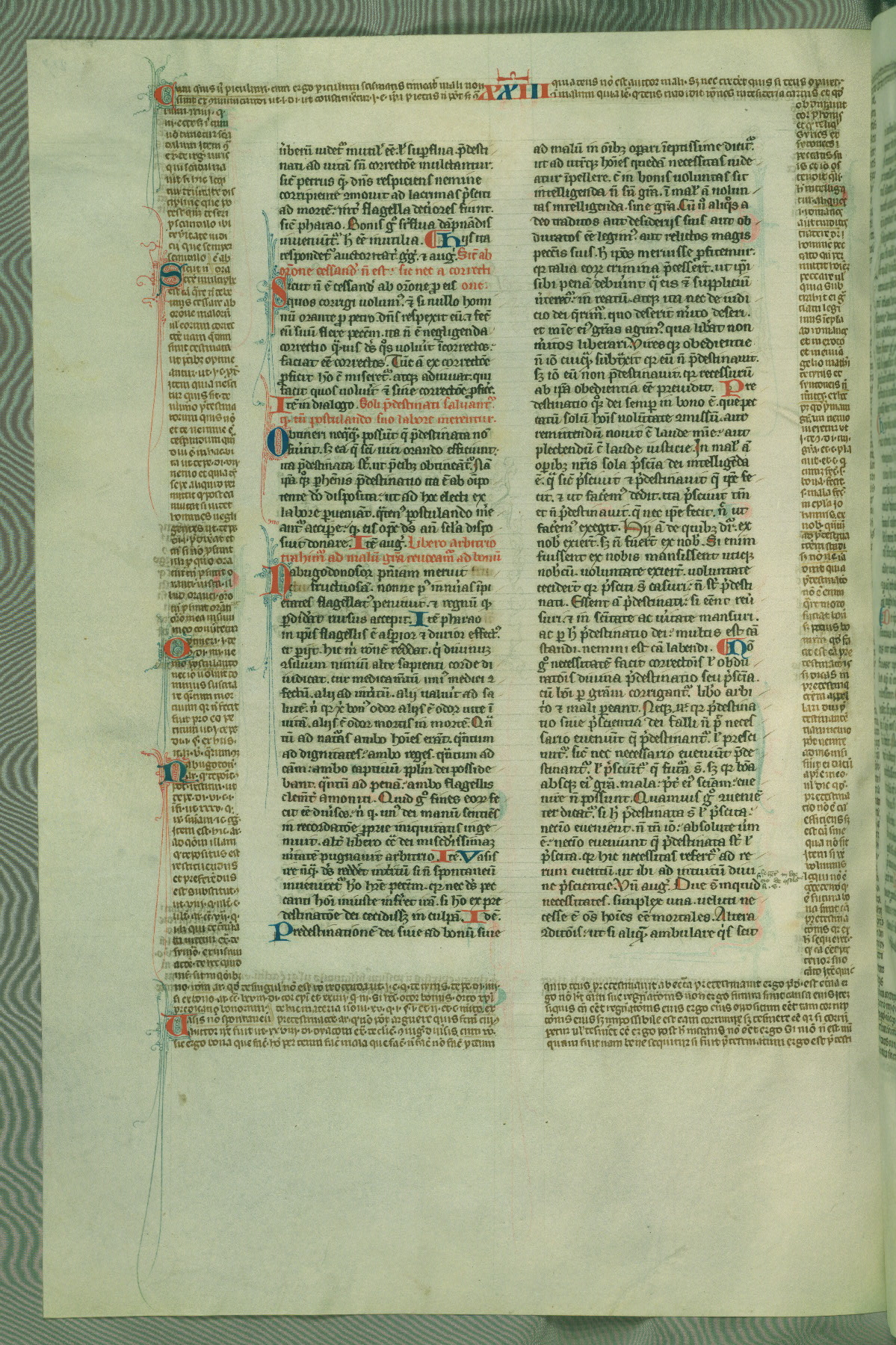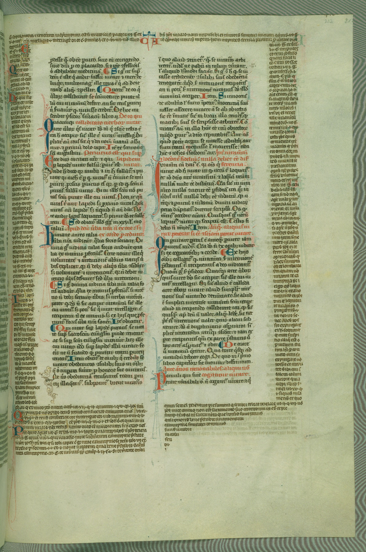 This deluxe version of Gratian's Decretum was created ca. 1280-90, most likely in Hainaut. The lively decoration of the manuscript indicates a marked taste for narrative, and there are thirty-seven historiated initials. The gloss work was completed by Bartholomew of Brescia. At first, Paris would seem to be the most likely place of origin, given that it was the leading center for the study of canon law. However, this particular manuscript exhibits scribal features that suggest its place of origin as being the Cistercian abbey of Cambron in Hainaut. Furthermore, Abbot Baudouin de Bousso, whose tenure at the abbey was from 1283 to 1293, was schooled in theology at the University of Paris, and he would eventually endorse the production of many fine manuscripts while at Cambron. In fact, the catalyst for this endeavor seems to have been the Beaupré Antiphonary (W.759-761), which was was created at Cambron during the 1280s. Stylistic features of W.133 seem to have connections with the Beaupré Antiphonary. For example, Cistercian monks are shown in three extant illuminations throughout three of the antiphonary volumes; these monks are pictured in brown habits similar to the type worn by clerics in W.133. The reliance upon Cistercian precedents for textual and design features associates W.133 with the Cistercian abbey at Cambron. However, more remains to be confirmed by further inspection of the output of the scriptorium at Cambron.