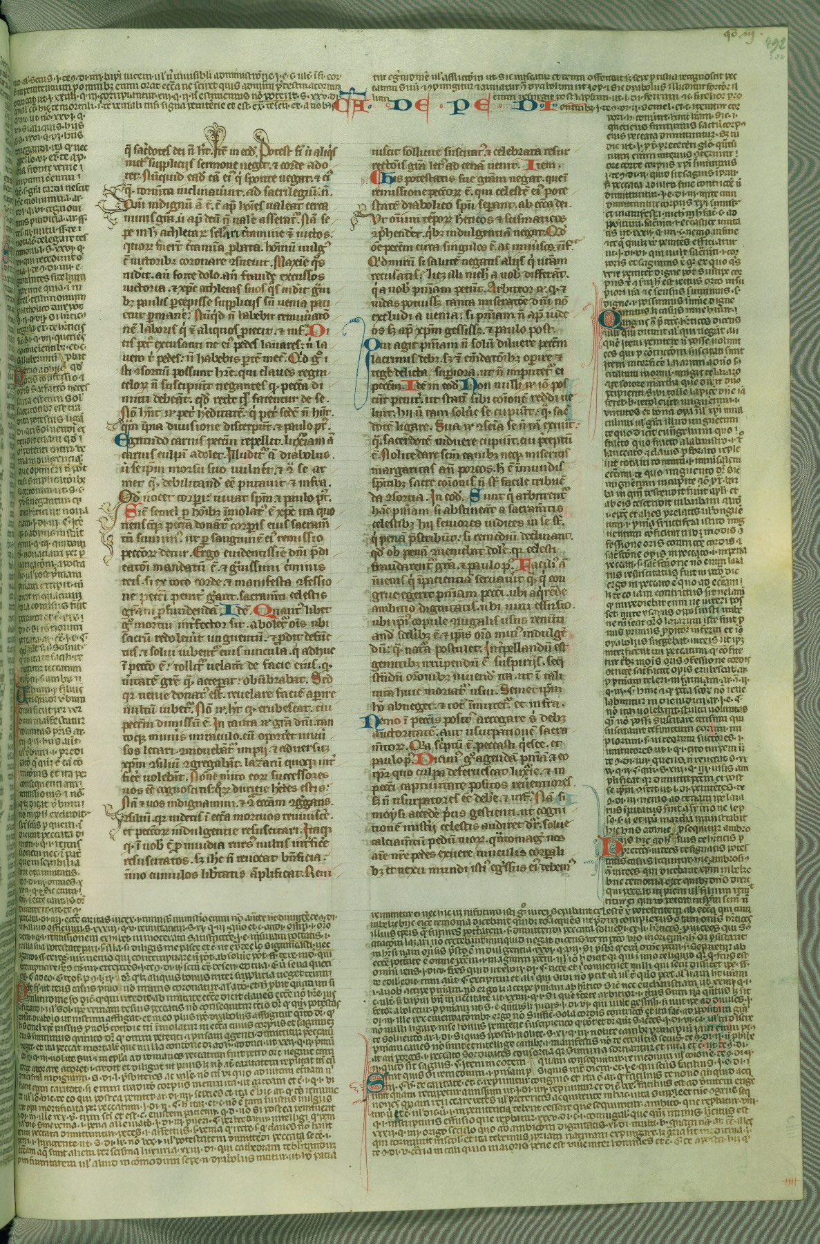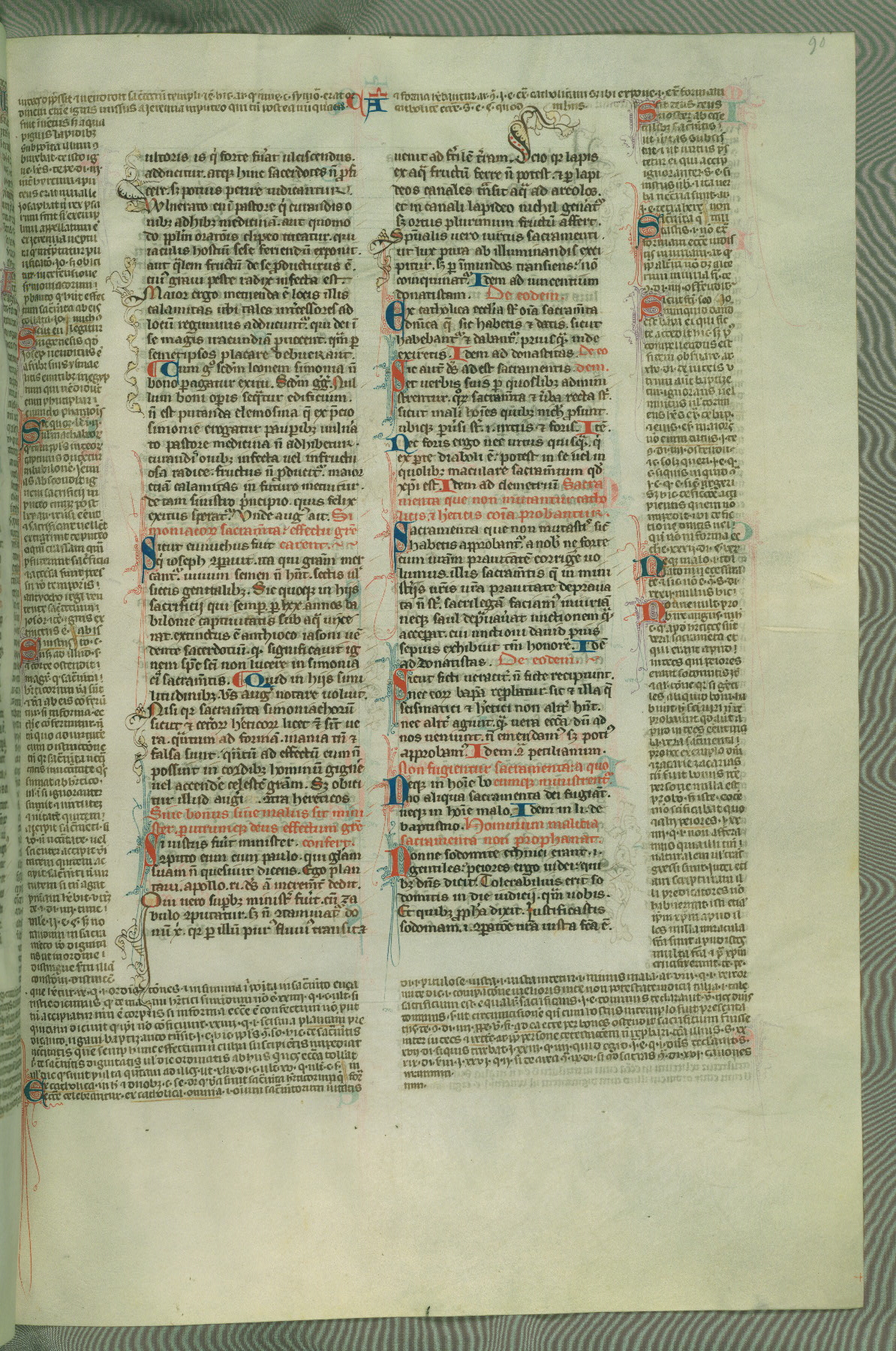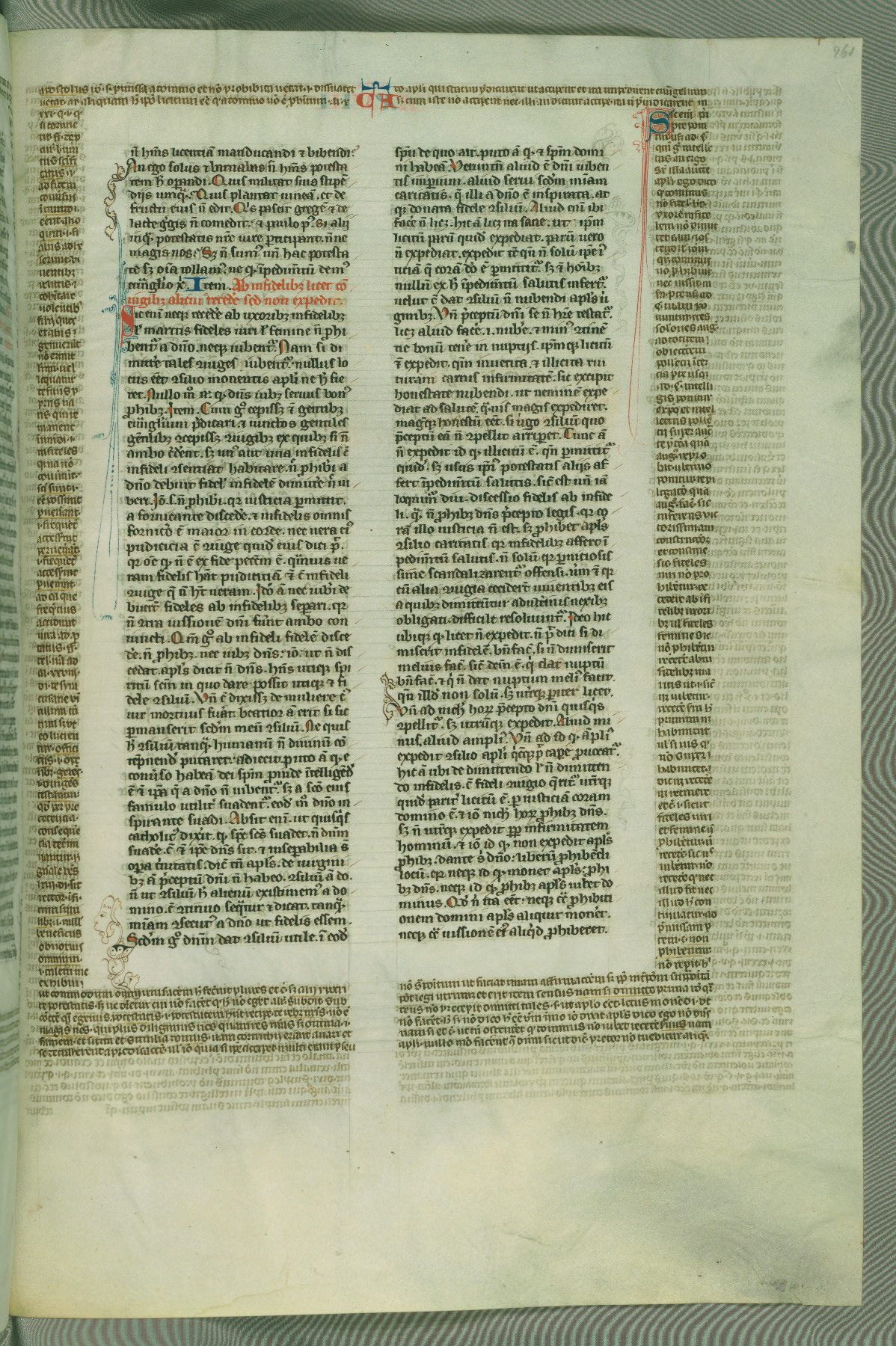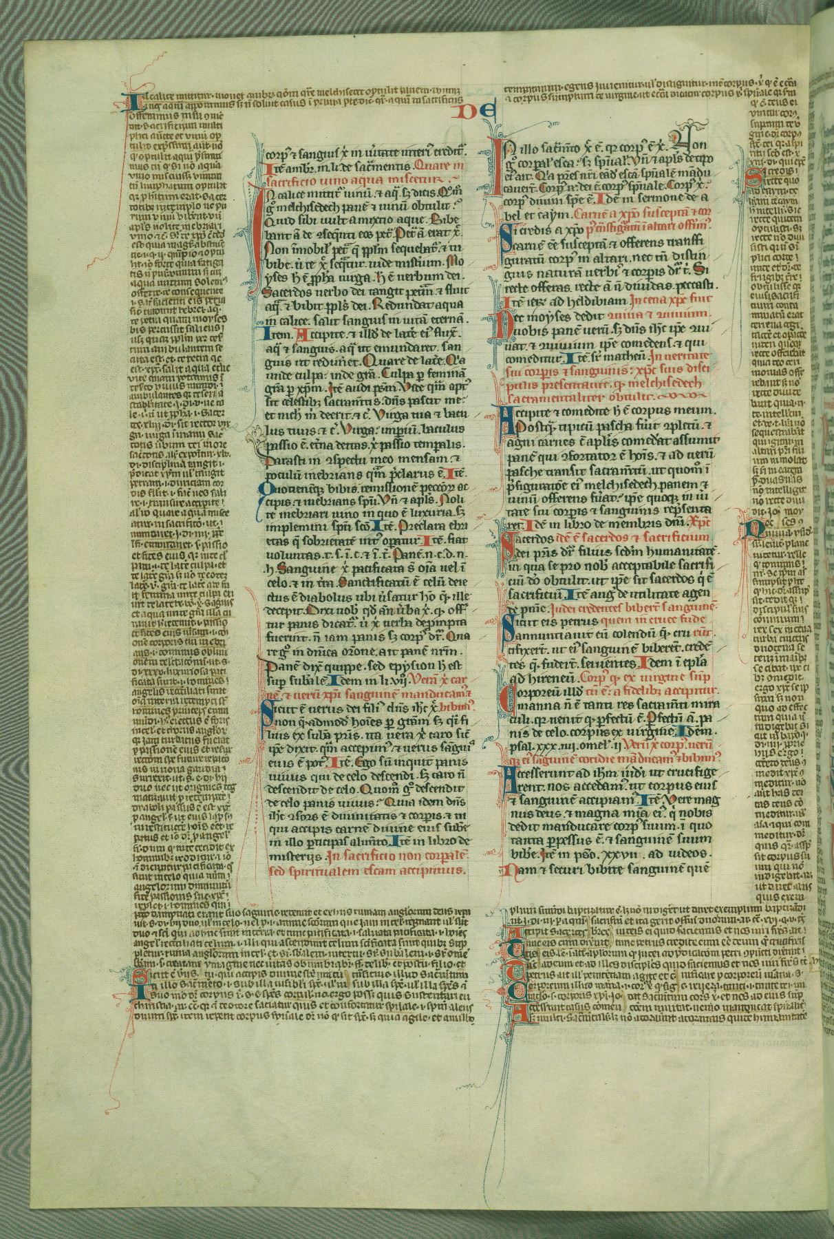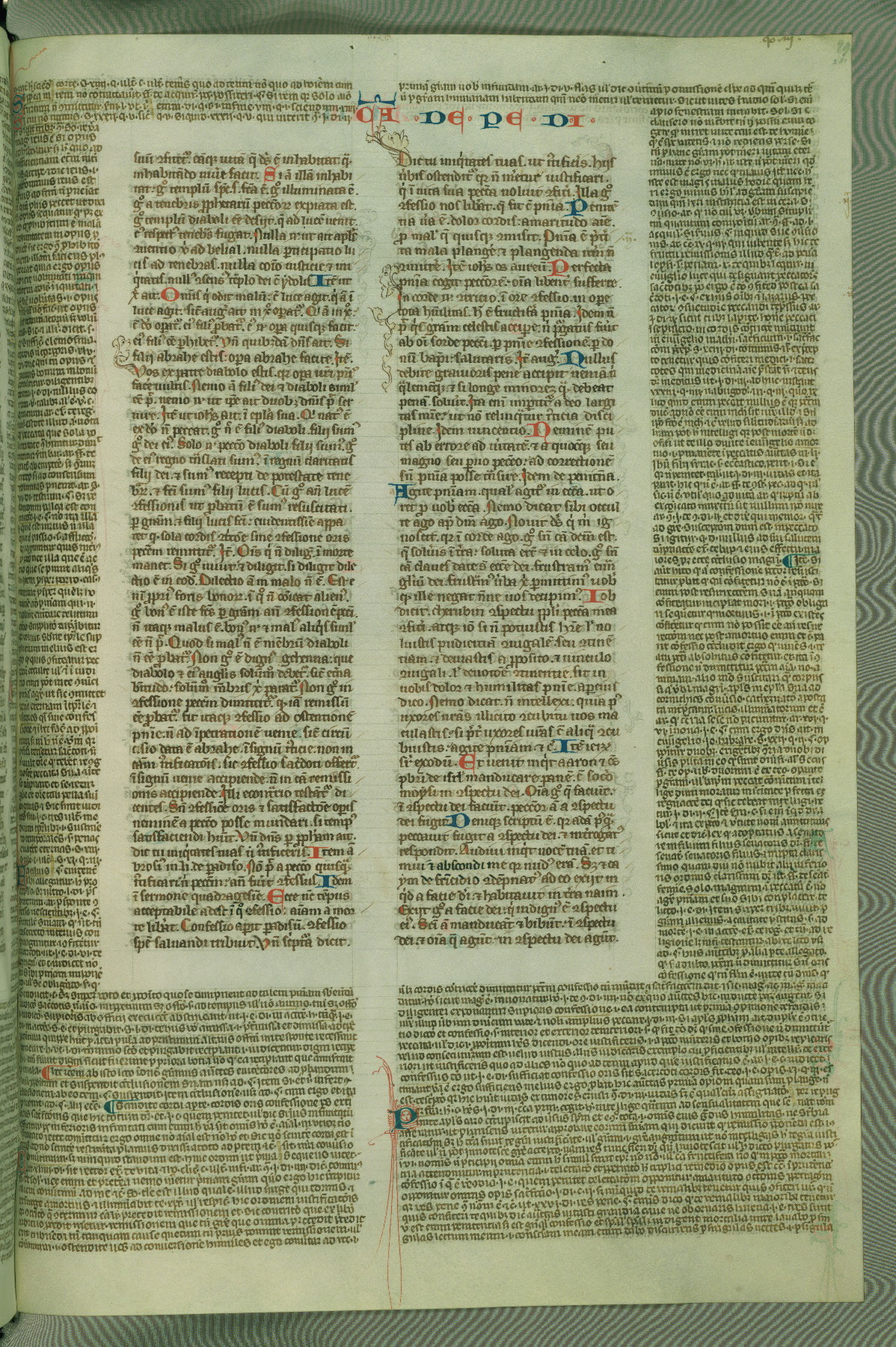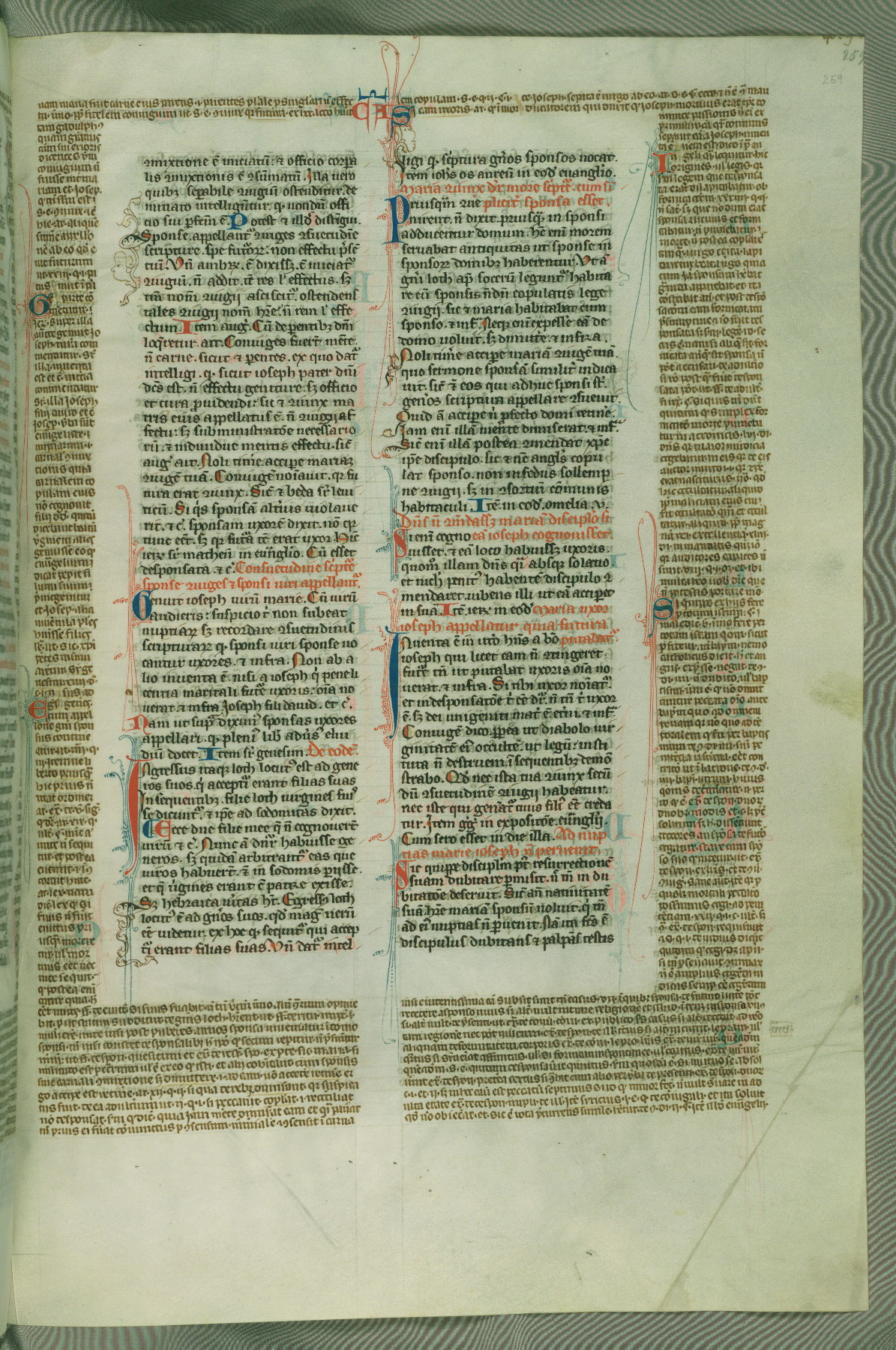 This deluxe version of Gratian's Decretum was created ca. 1280-90, most likely in Hainaut. The lively decoration of the manuscript indicates a marked taste for narrative, and there are thirty-seven historiated initials. The gloss work was completed by Bartholomew of Brescia. At first, Paris would seem to be the most likely place of origin, given that it was the leading center for the study of canon law. However, this particular manuscript exhibits scribal features that suggest its place of origin as being the Cistercian abbey of Cambron in Hainaut. Furthermore, Abbot Baudouin de Bousso, whose tenure at the abbey was from 1283 to 1293, was schooled in theology at the University of Paris, and he would eventually endorse the production of many fine manuscripts while at Cambron. In fact, the catalyst for this endeavor seems to have been the Beaupré Antiphonary (W.759-761), which was was created at Cambron during the 1280s. Stylistic features of W.133 seem to have connections with the Beaupré Antiphonary. For example, Cistercian monks are shown in three extant illuminations throughout three of the antiphonary volumes; these monks are pictured in brown habits similar to the type worn by clerics in W.133. The reliance upon Cistercian precedents for textual and design features associates W.133 with the Cistercian abbey at Cambron. However, more remains to be confirmed by further inspection of the output of the scriptorium at Cambron.