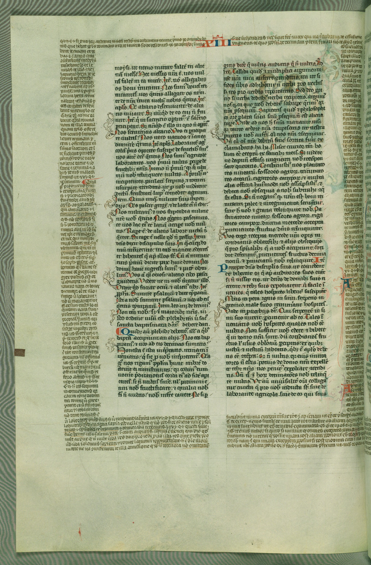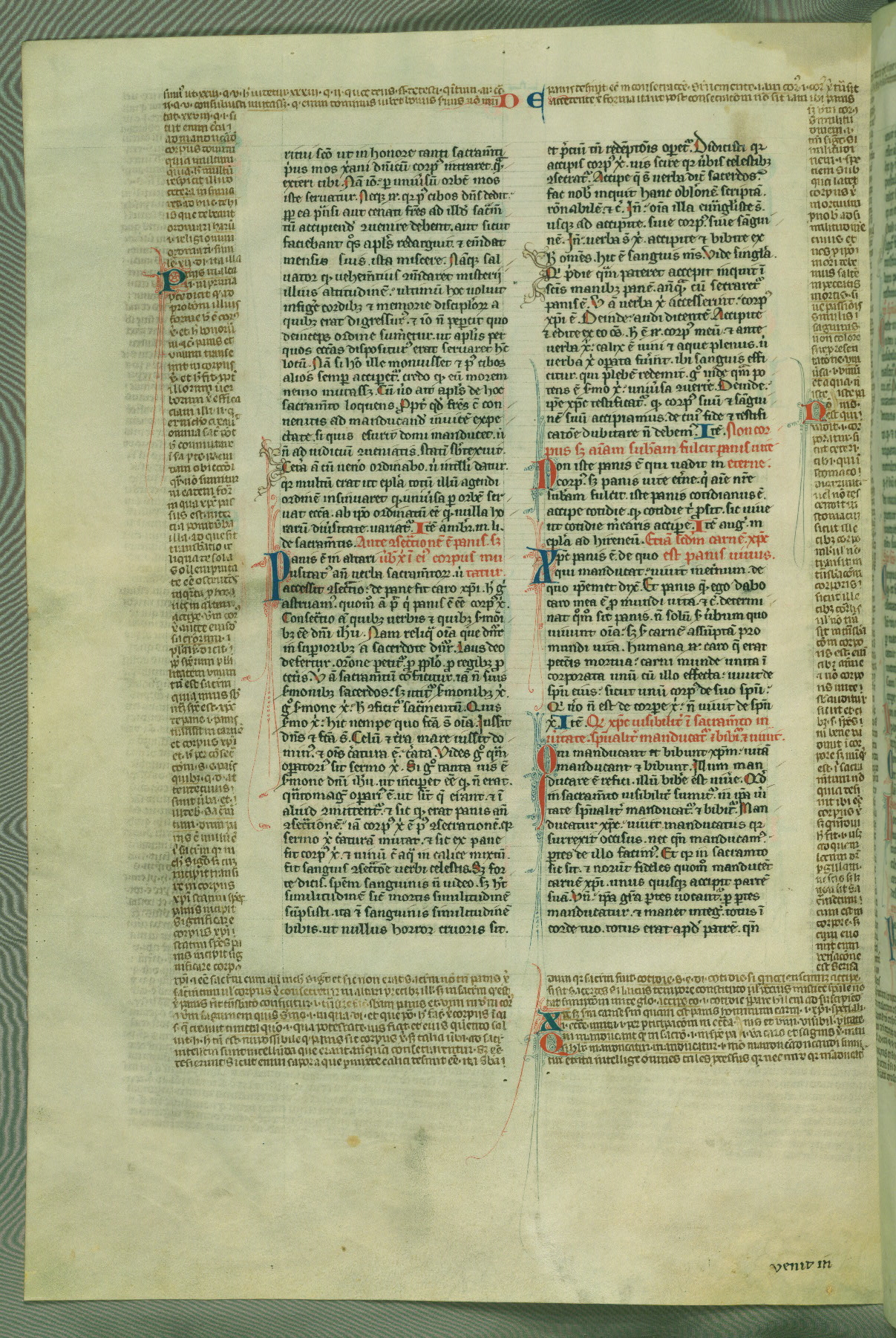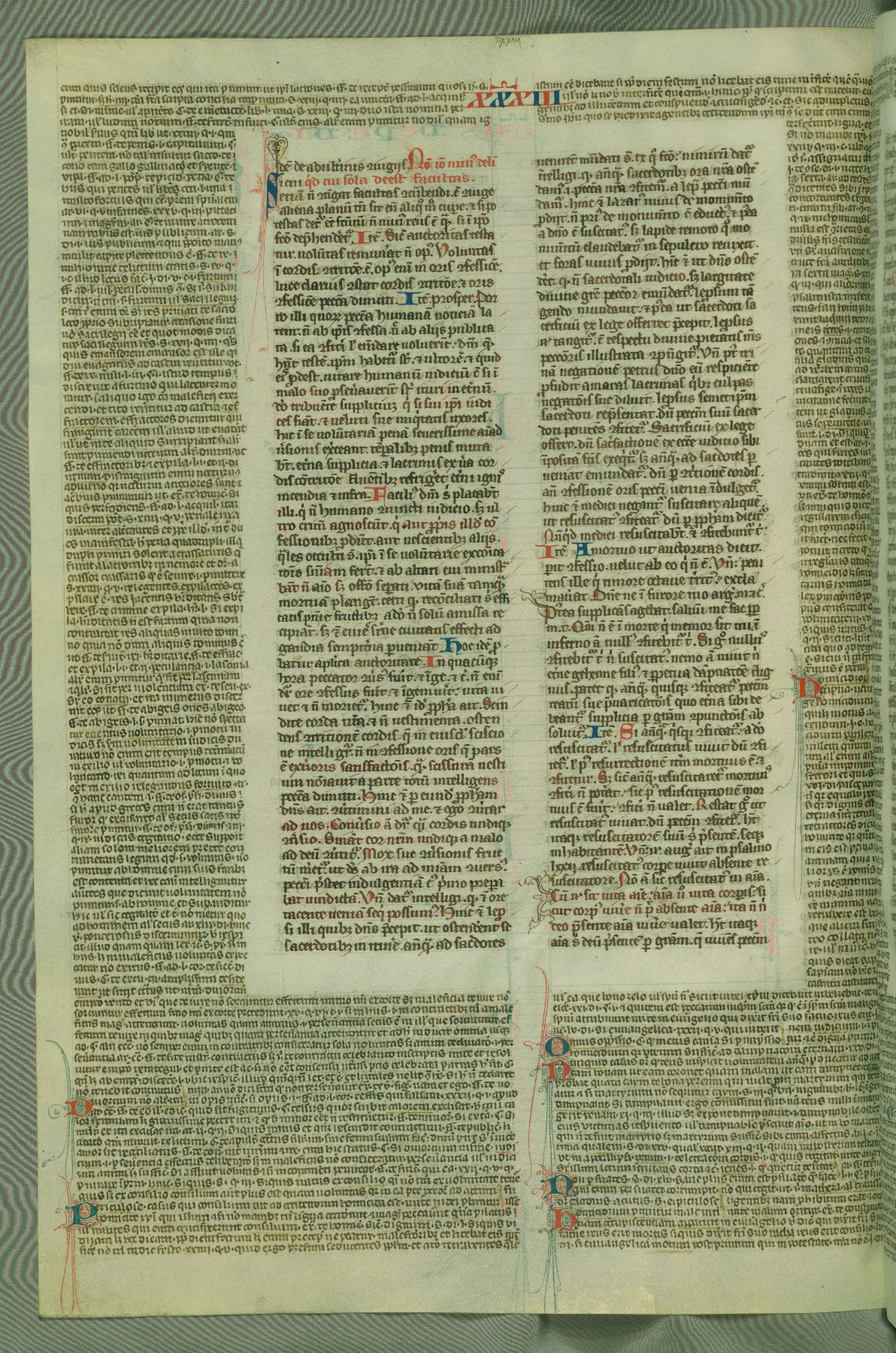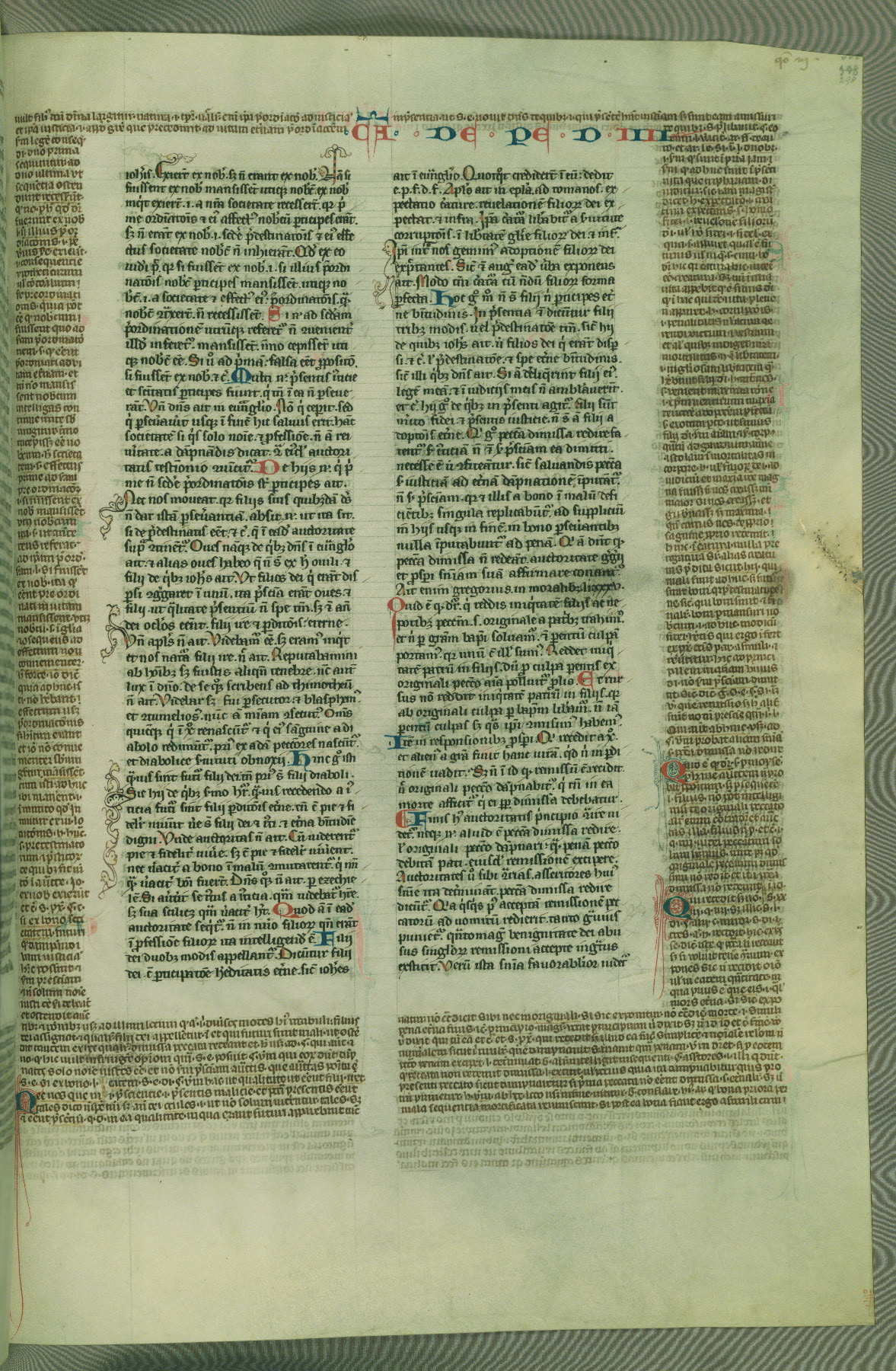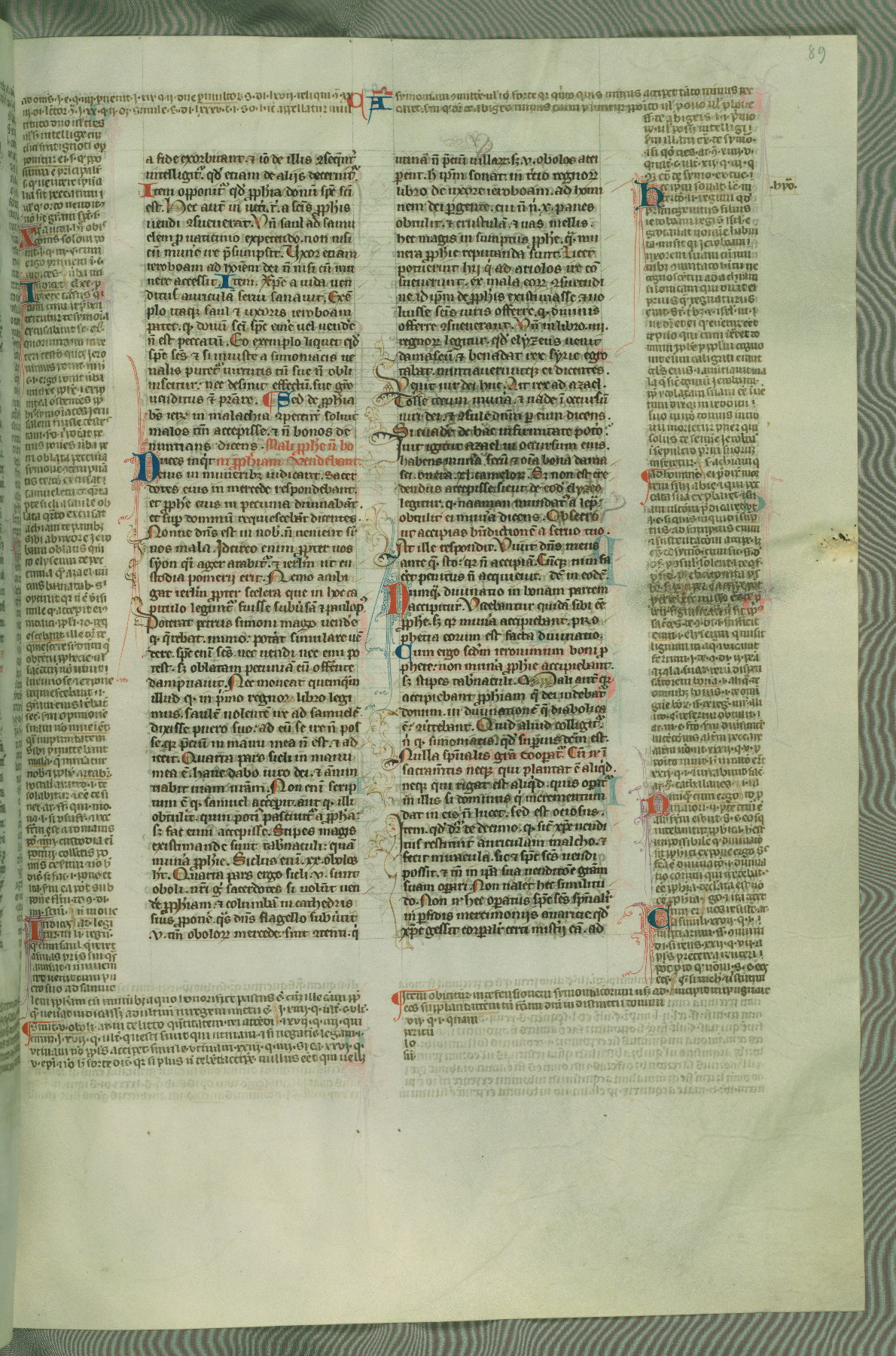 This deluxe version of Gratian's Decretum was created ca. 1280-90, most likely in Hainaut. The lively decoration of the manuscript indicates a marked taste for narrative, and there are thirty-seven historiated initials. The gloss work was completed by Bartholomew of Brescia. At first, Paris would seem to be the most likely place of origin, given that it was the leading center for the study of canon law. However, this particular manuscript exhibits scribal features that suggest its place of origin as being the Cistercian abbey of Cambron in Hainaut. Furthermore, Abbot Baudouin de Bousso, whose tenure at the abbey was from 1283 to 1293, was schooled in theology at the University of Paris, and he would eventually endorse the production of many fine manuscripts while at Cambron. In fact, the catalyst for this endeavor seems to have been the Beaupré Antiphonary (W.759-761), which was was created at Cambron during the 1280s. Stylistic features of W.133 seem to have connections with the Beaupré Antiphonary. For example, Cistercian monks are shown in three extant illuminations throughout three of the antiphonary volumes; these monks are pictured in brown habits similar to the type worn by clerics in W.133. The reliance upon Cistercian precedents for textual and design features associates W.133 with the Cistercian abbey at Cambron. However, more remains to be confirmed by further inspection of the output of the scriptorium at Cambron.