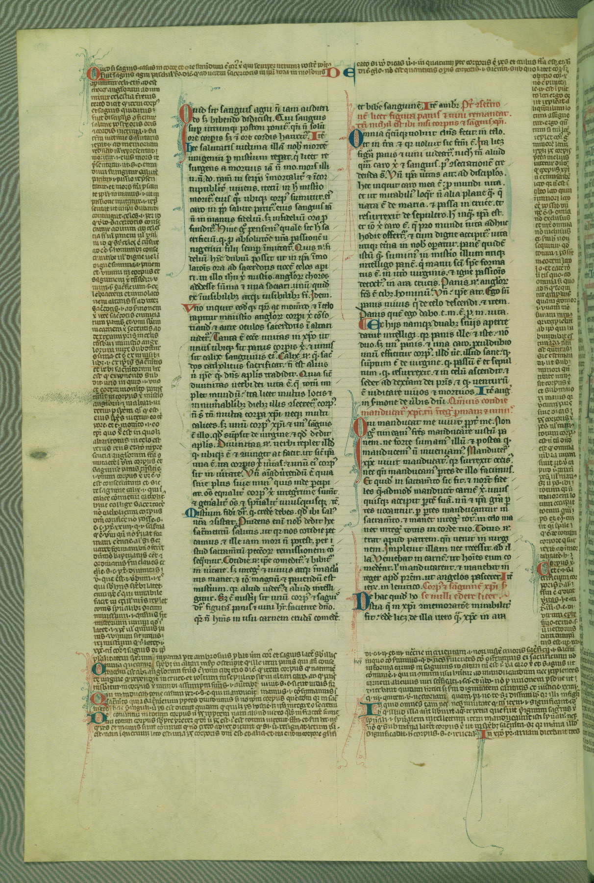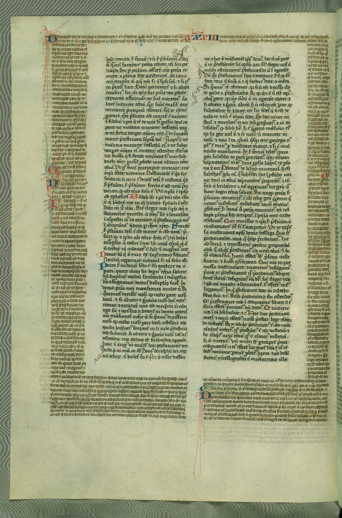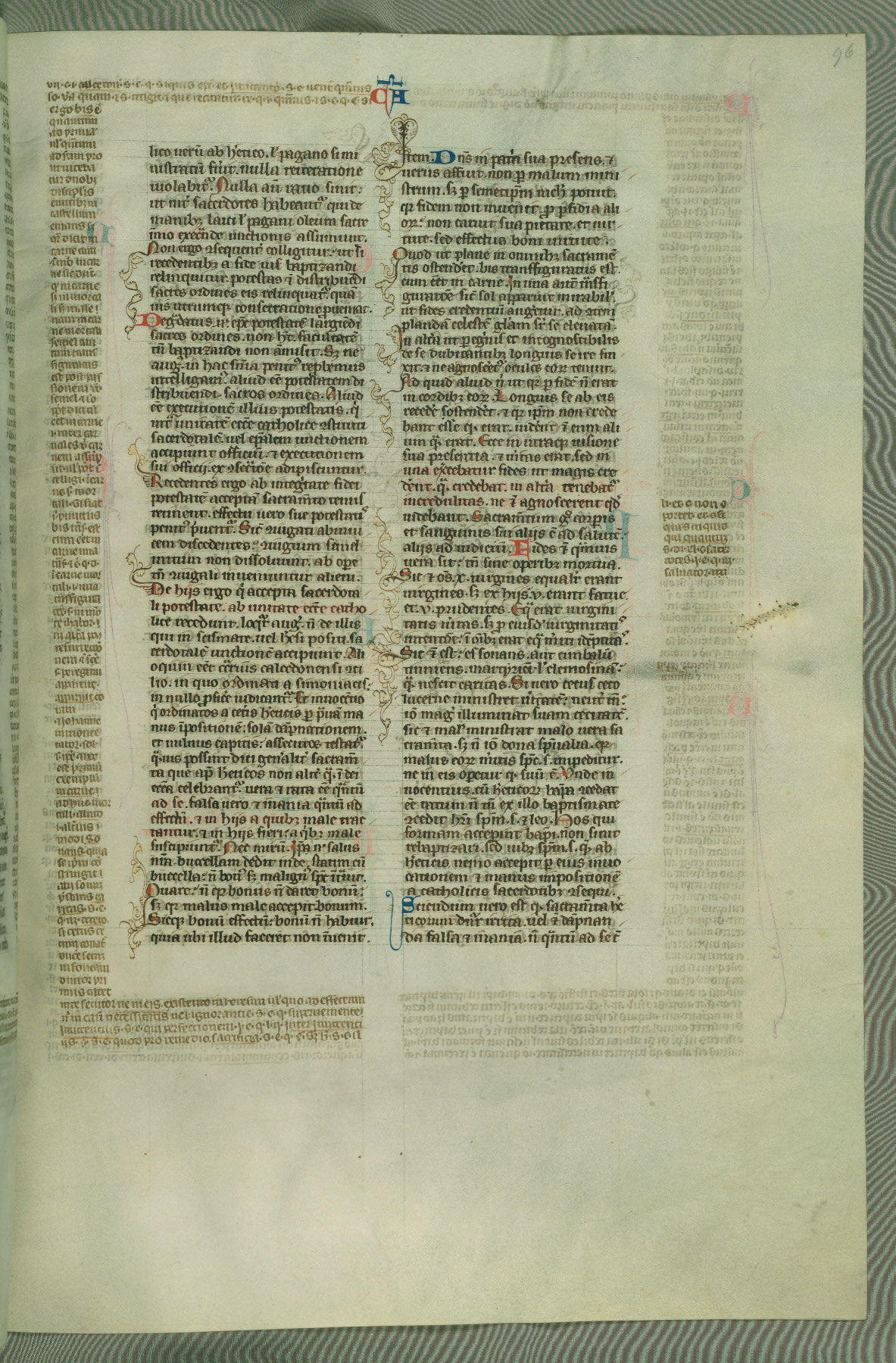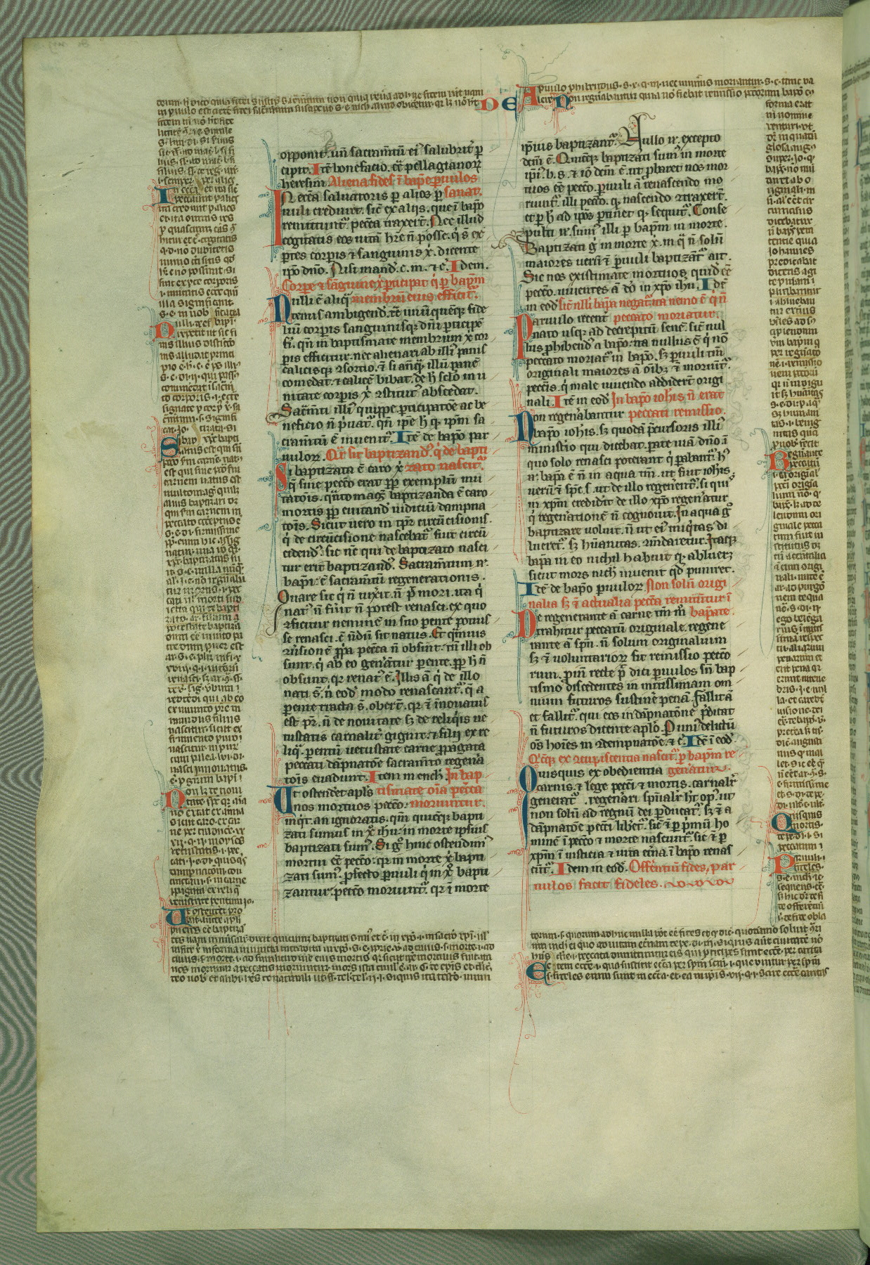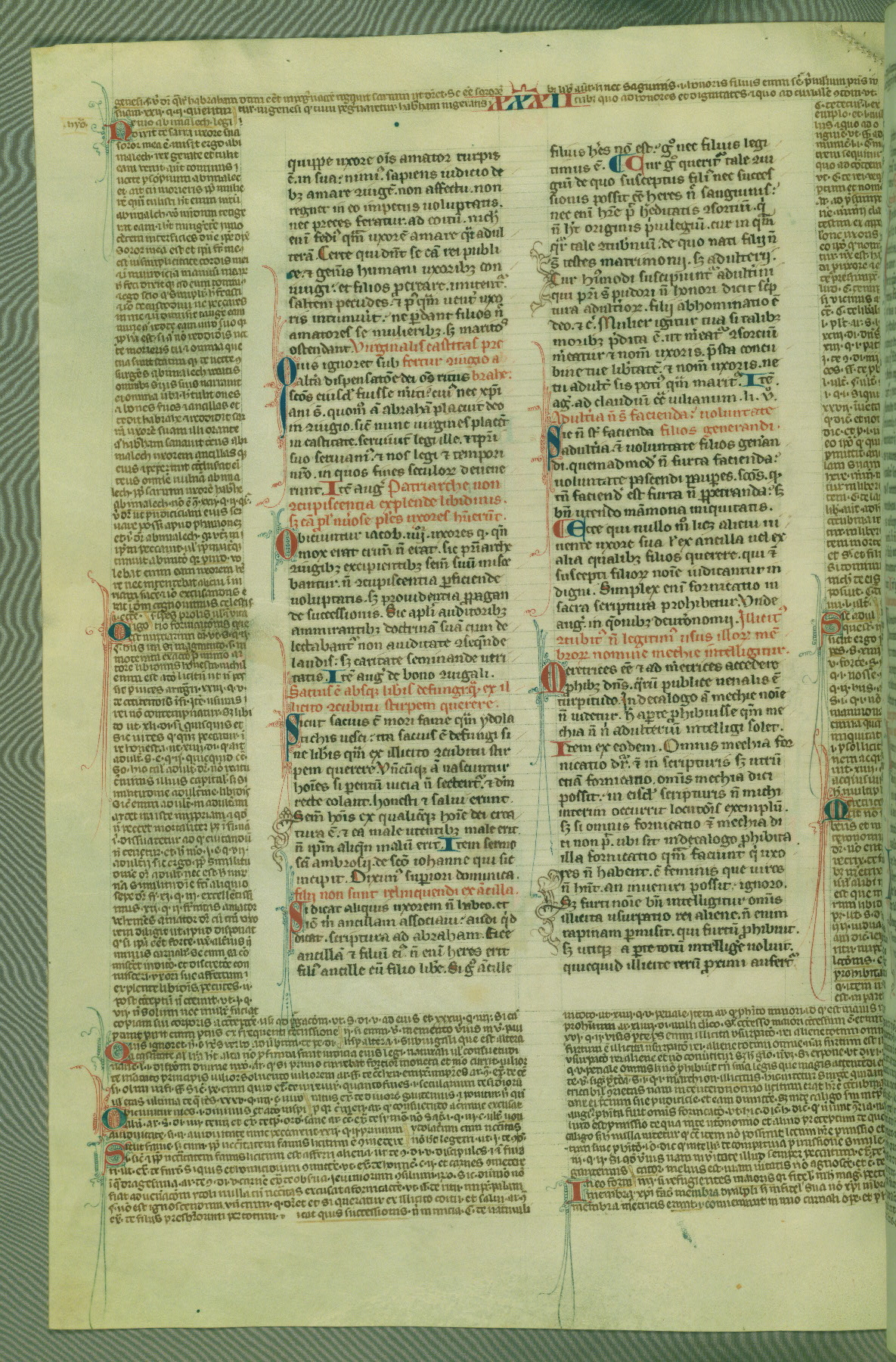 This deluxe version of Gratian's Decretum was created ca. 1280-90, most likely in Hainaut. The lively decoration of the manuscript indicates a marked taste for narrative, and there are thirty-seven historiated initials. The gloss work was completed by Bartholomew of Brescia. At first, Paris would seem to be the most likely place of origin, given that it was the leading center for the study of canon law. However, this particular manuscript exhibits scribal features that suggest its place of origin as being the Cistercian abbey of Cambron in Hainaut. Furthermore, Abbot Baudouin de Bousso, whose tenure at the abbey was from 1283 to 1293, was schooled in theology at the University of Paris, and he would eventually endorse the production of many fine manuscripts while at Cambron. In fact, the catalyst for this endeavor seems to have been the Beaupré Antiphonary (W.759-761), which was was created at Cambron during the 1280s. Stylistic features of W.133 seem to have connections with the Beaupré Antiphonary. For example, Cistercian monks are shown in three extant illuminations throughout three of the antiphonary volumes; these monks are pictured in brown habits similar to the type worn by clerics in W.133. The reliance upon Cistercian precedents for textual and design features associates W.133 with the Cistercian abbey at Cambron. However, more remains to be confirmed by further inspection of the output of the scriptorium at Cambron.