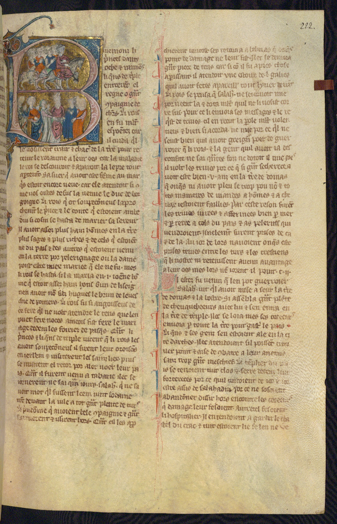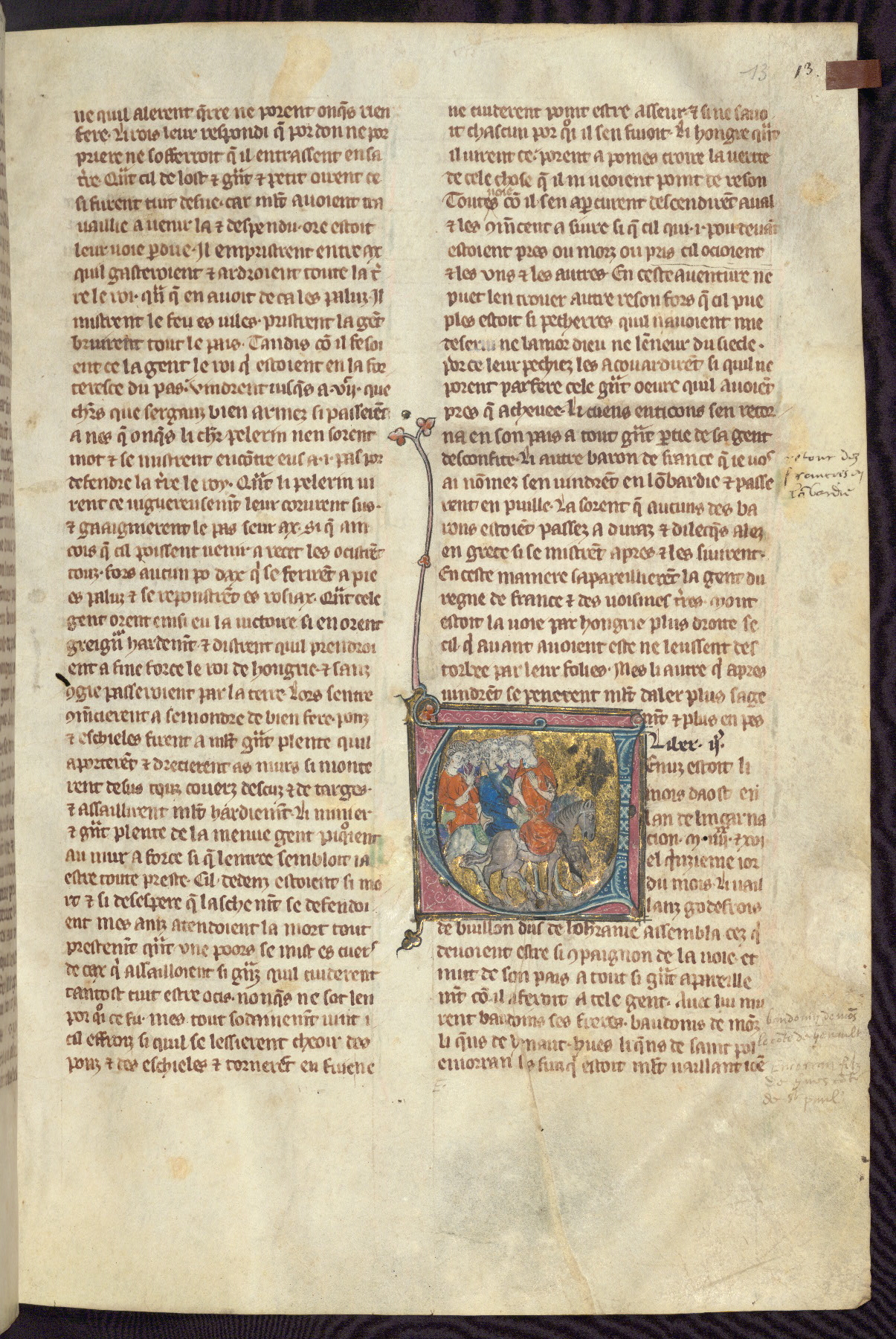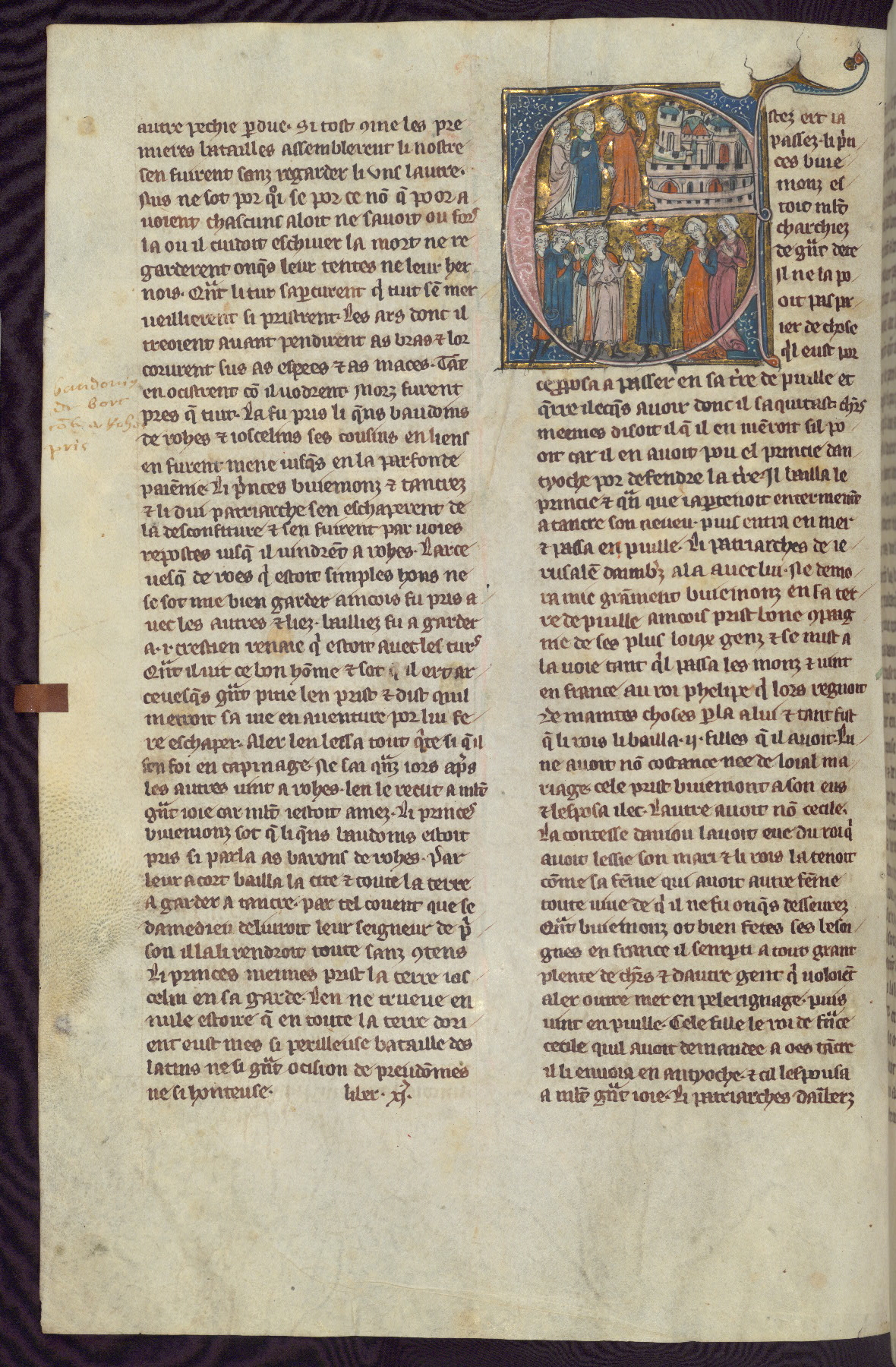 - Title: Historiated initial "B" with Bohemond of Antioch and followers ride to Jerusalem / Marriage of Sybille, daughter of Amaury I, and Guy of Lusignan