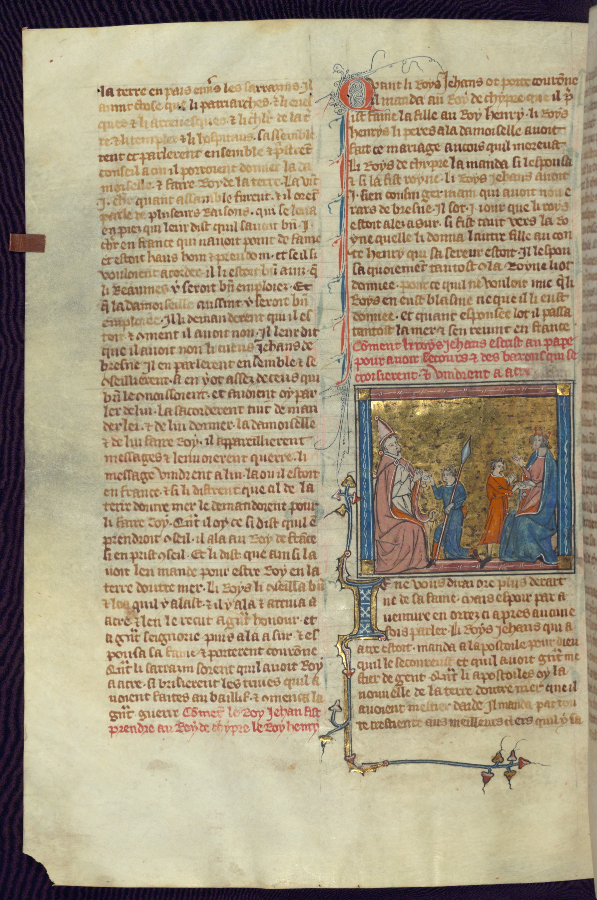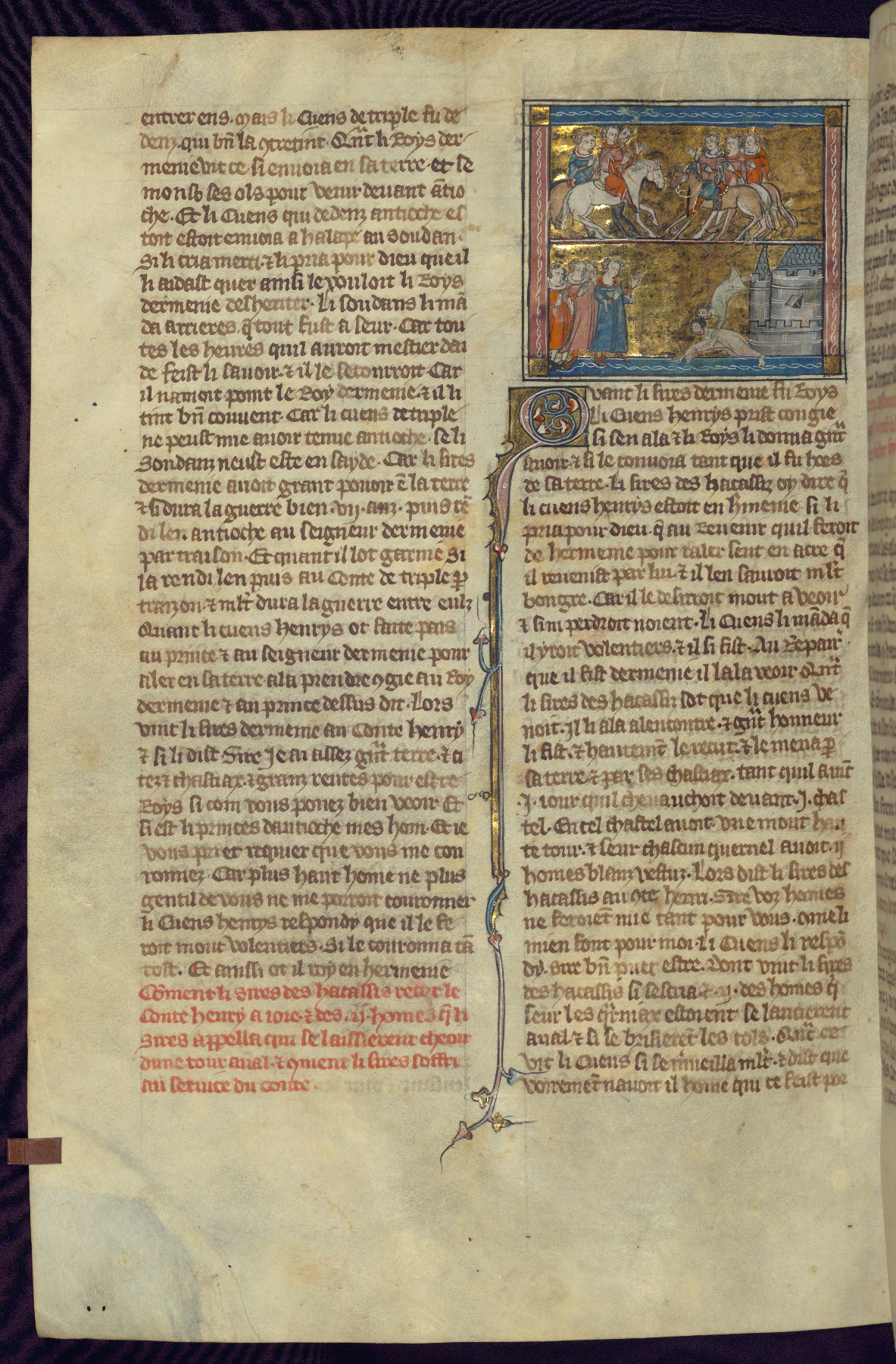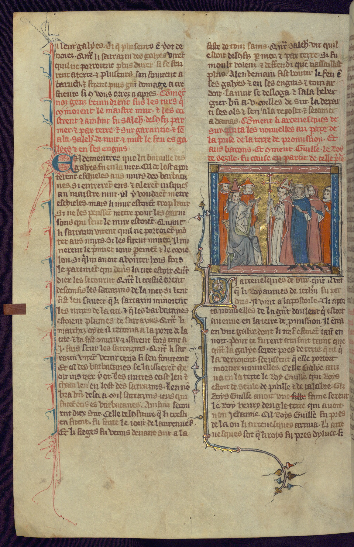 - Title: Historiated initial "B" with Bohemond of Antioch and followers ride to Jerusalem / Marriage of Sybille, daughter of Amaury I, and Guy of Lusignan