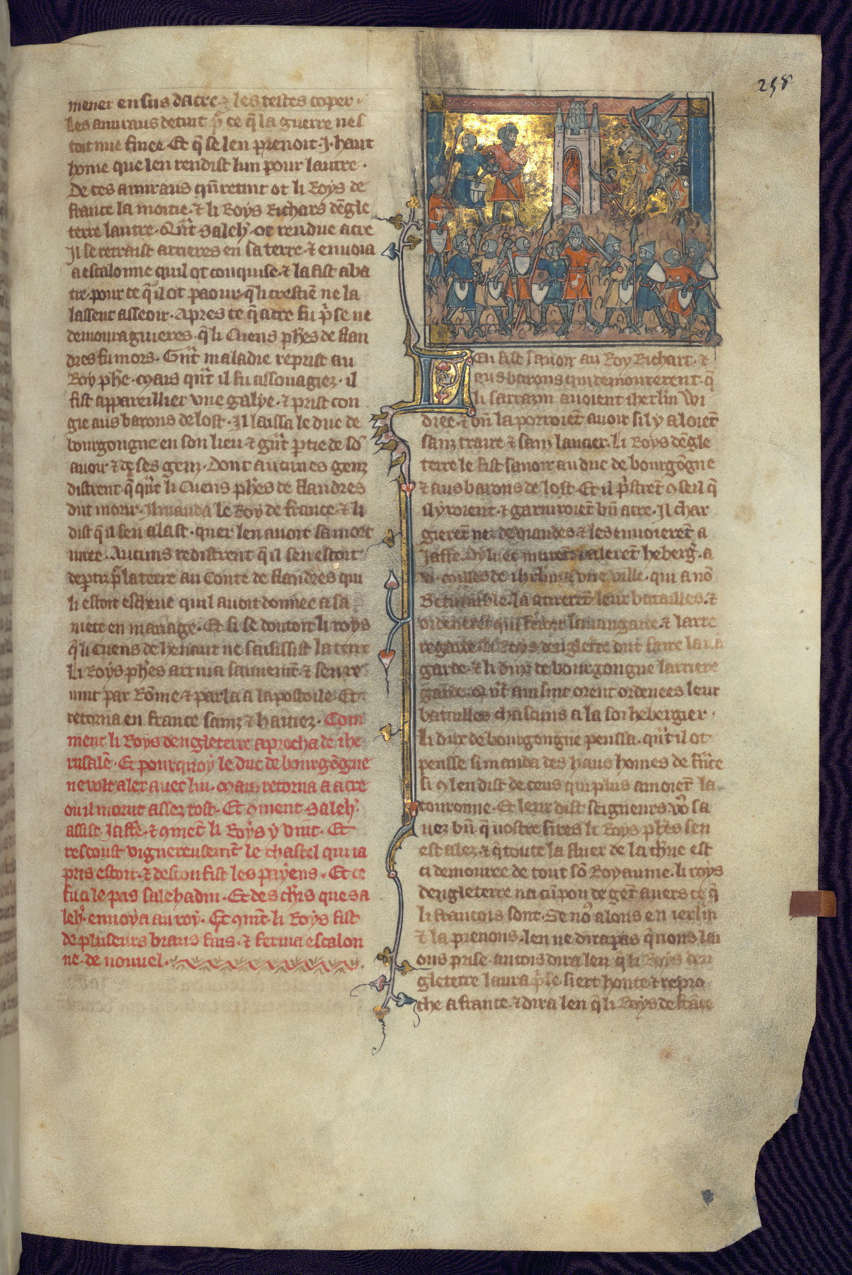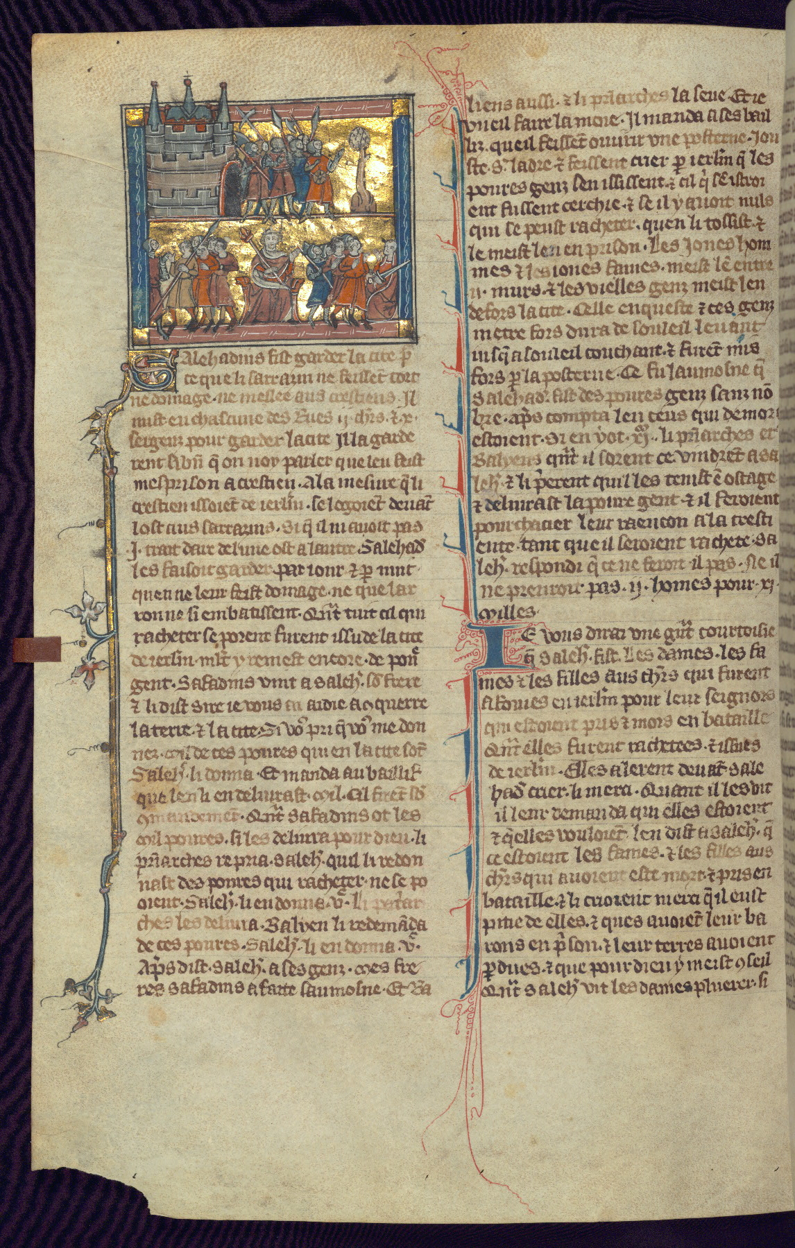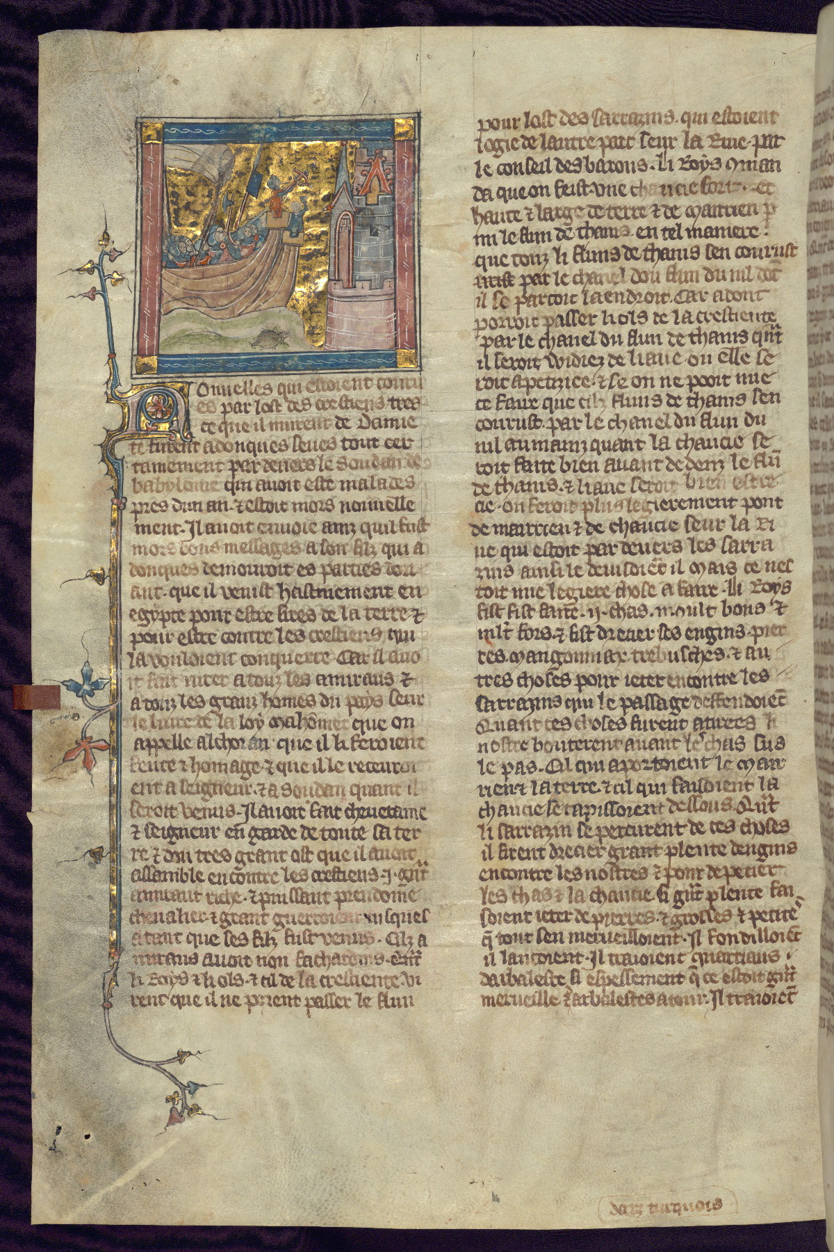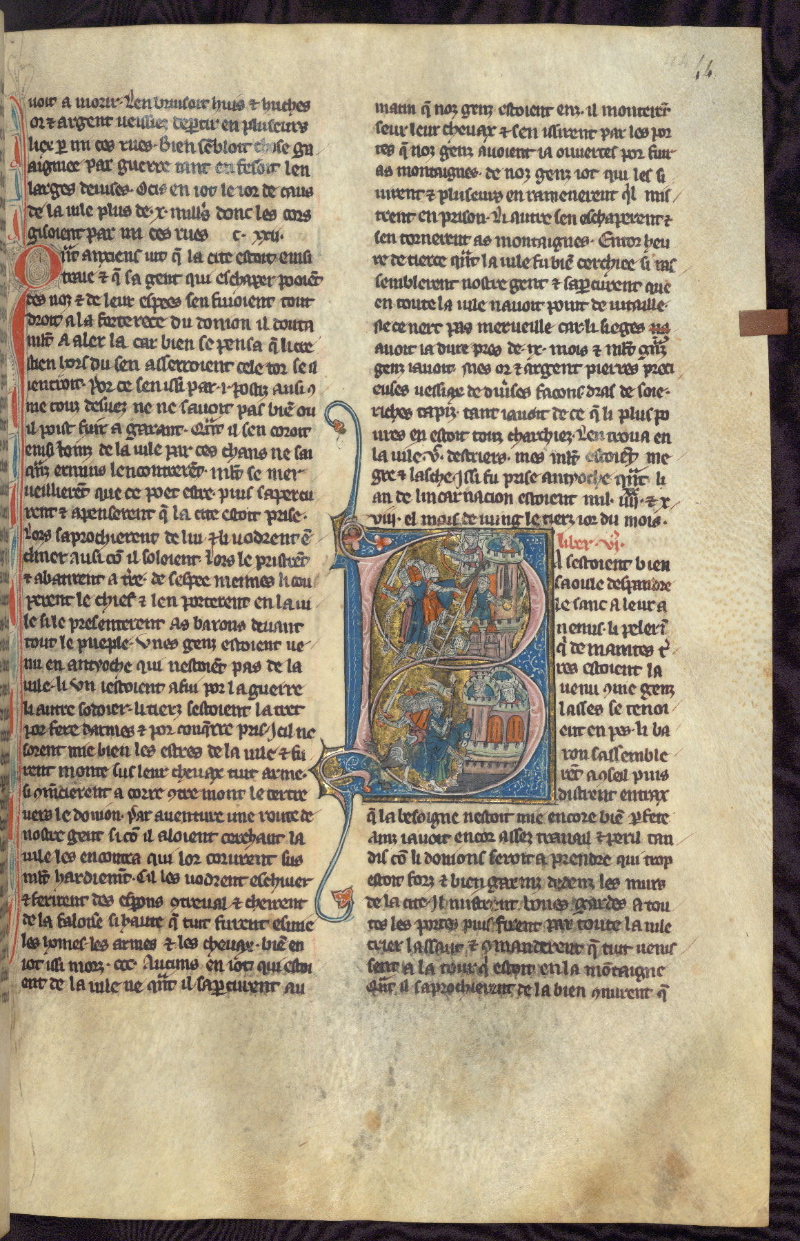 - Title: Historiated initial "V" with Firuz preparing to kill his brother as crusaders return / Crusaders enter Antioch, gates opened from within by compatriots