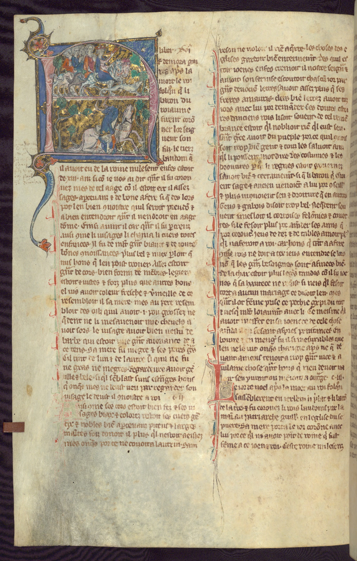 - Title: Historiated initial "N" with King Fulk hunting on horseback with followers / King Fulk thrown from horse and fatally injured