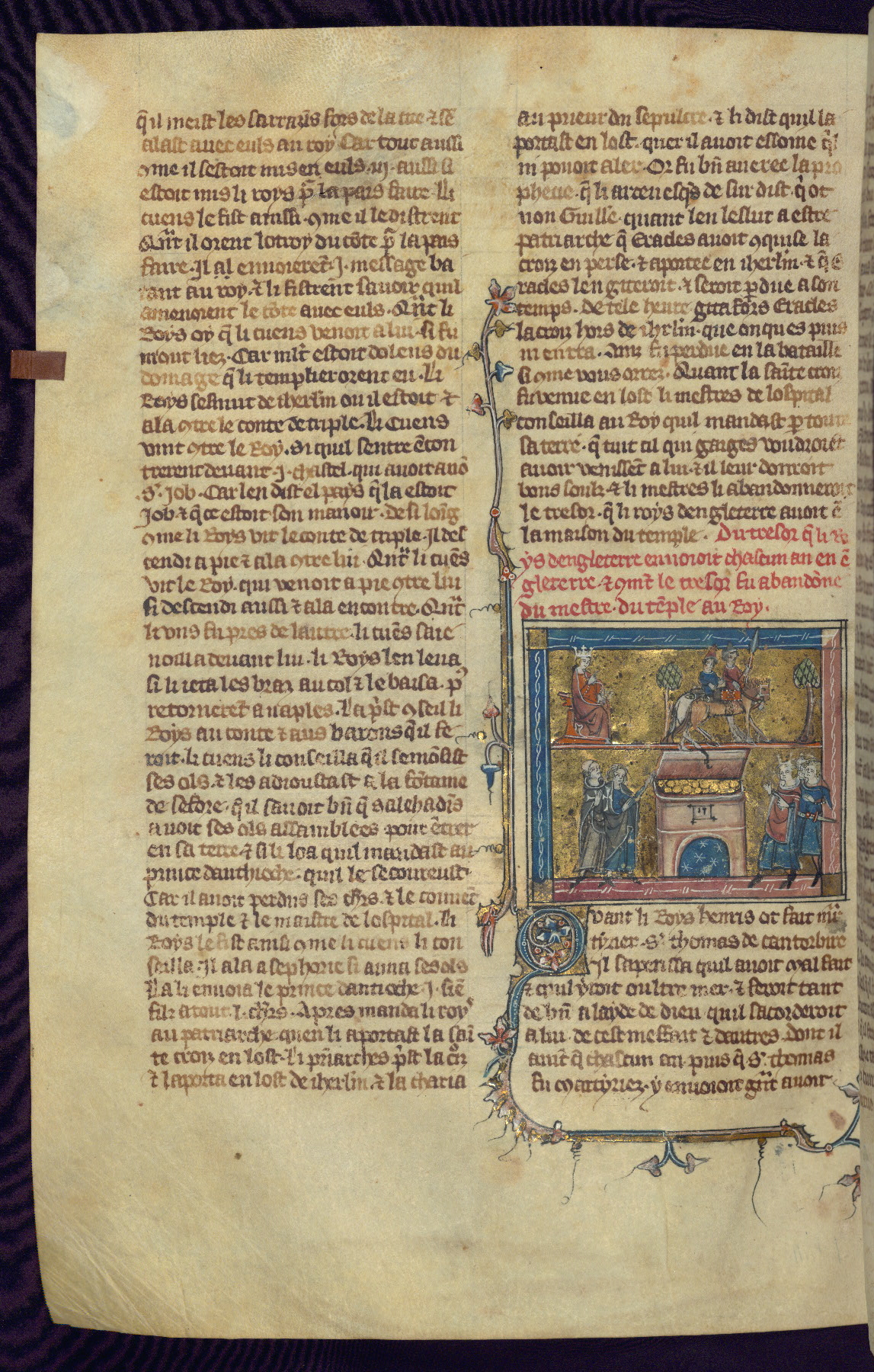 - Title: King Henry II of England sending two horsemen to Holy Land with annual contribution to expiate murder of Thomas Becket / Master of the Temple and assistant open gold-filled coffer sent by Henry II; King Guy of Jerusalem and two followers prepare to use funds for defense against Saladin