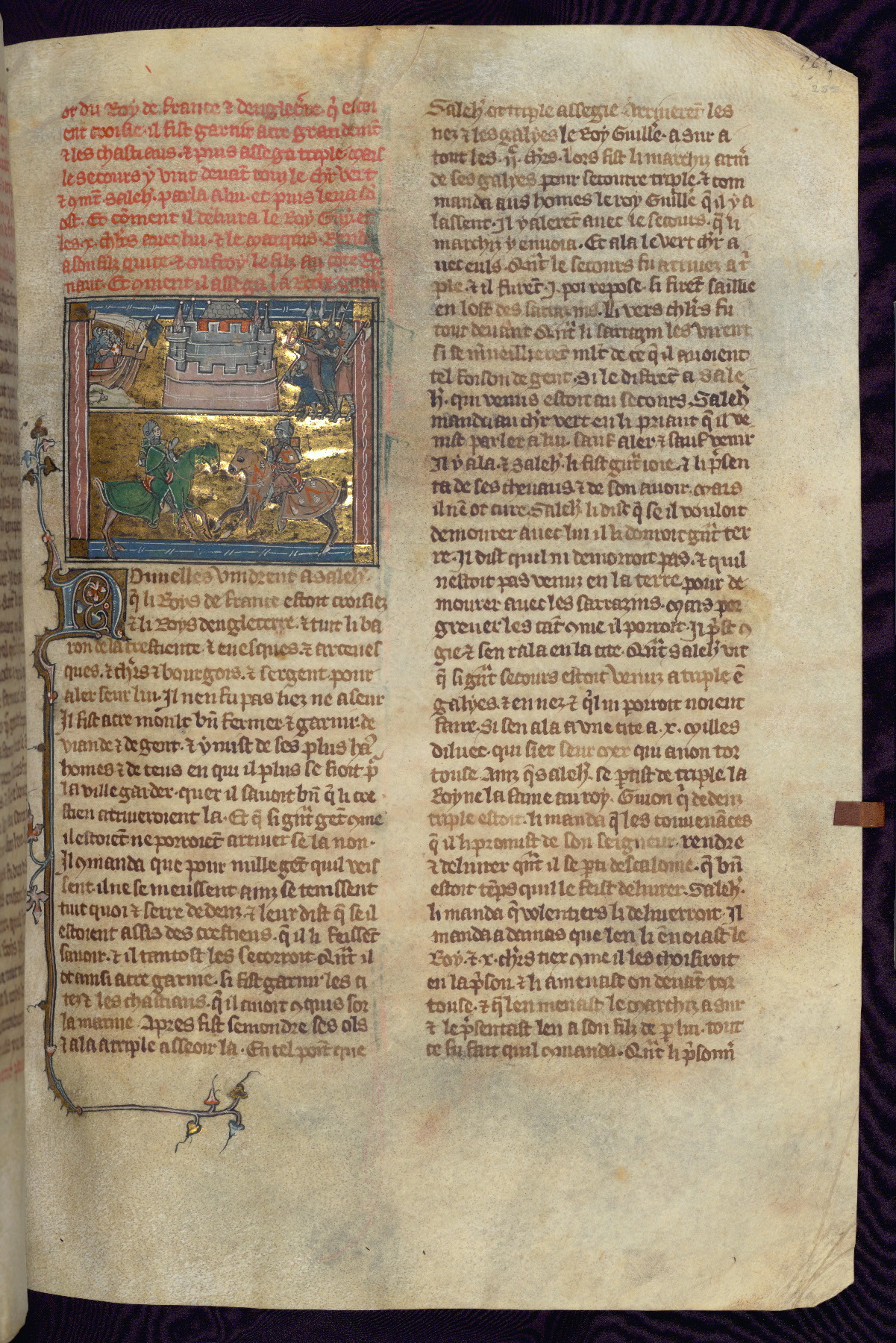 - Title: Navy of King William II of Sicily arriving in Holy Land; Saladin and men besiege Tripoli / Encounter near Tripoli between the Green Knight and Saladin, both on horseback