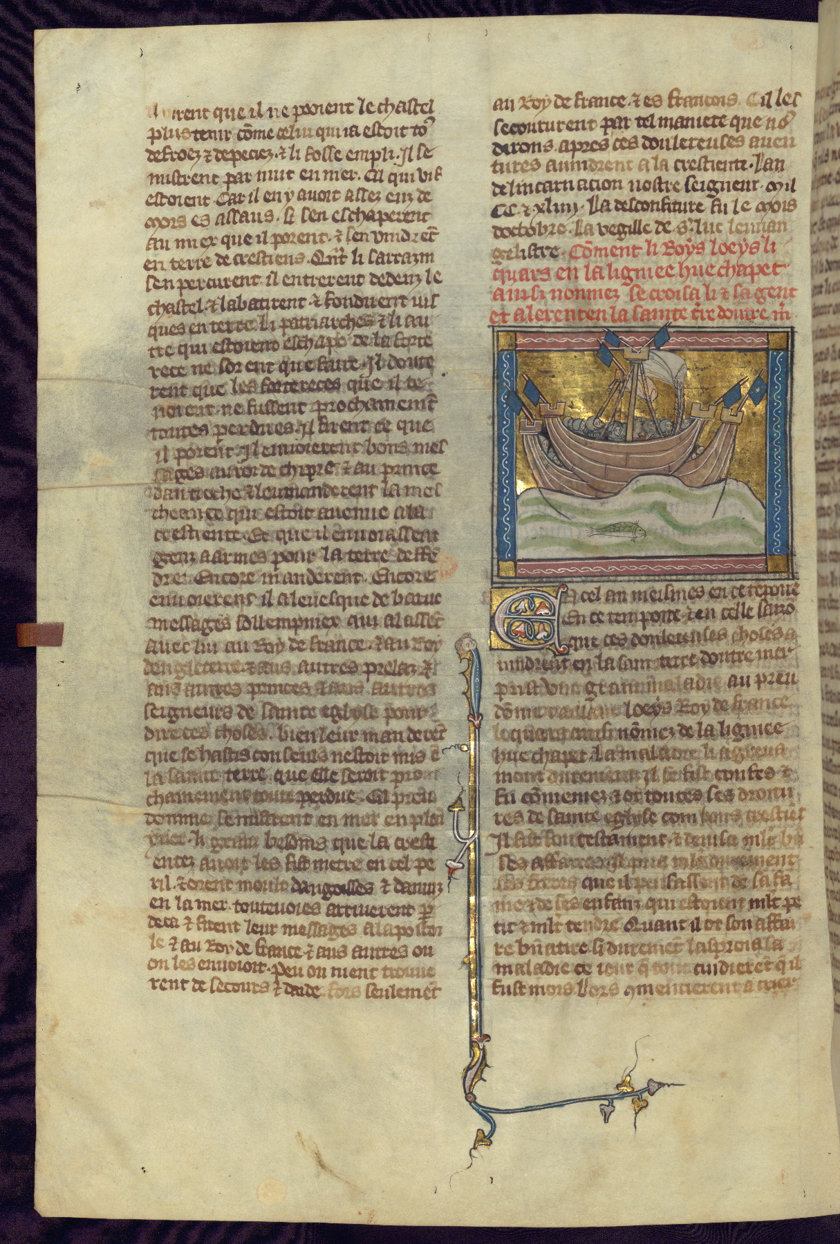 - Title: Historiated initial "V" with Godefroy de Bouillon and followers en route to Holy Land