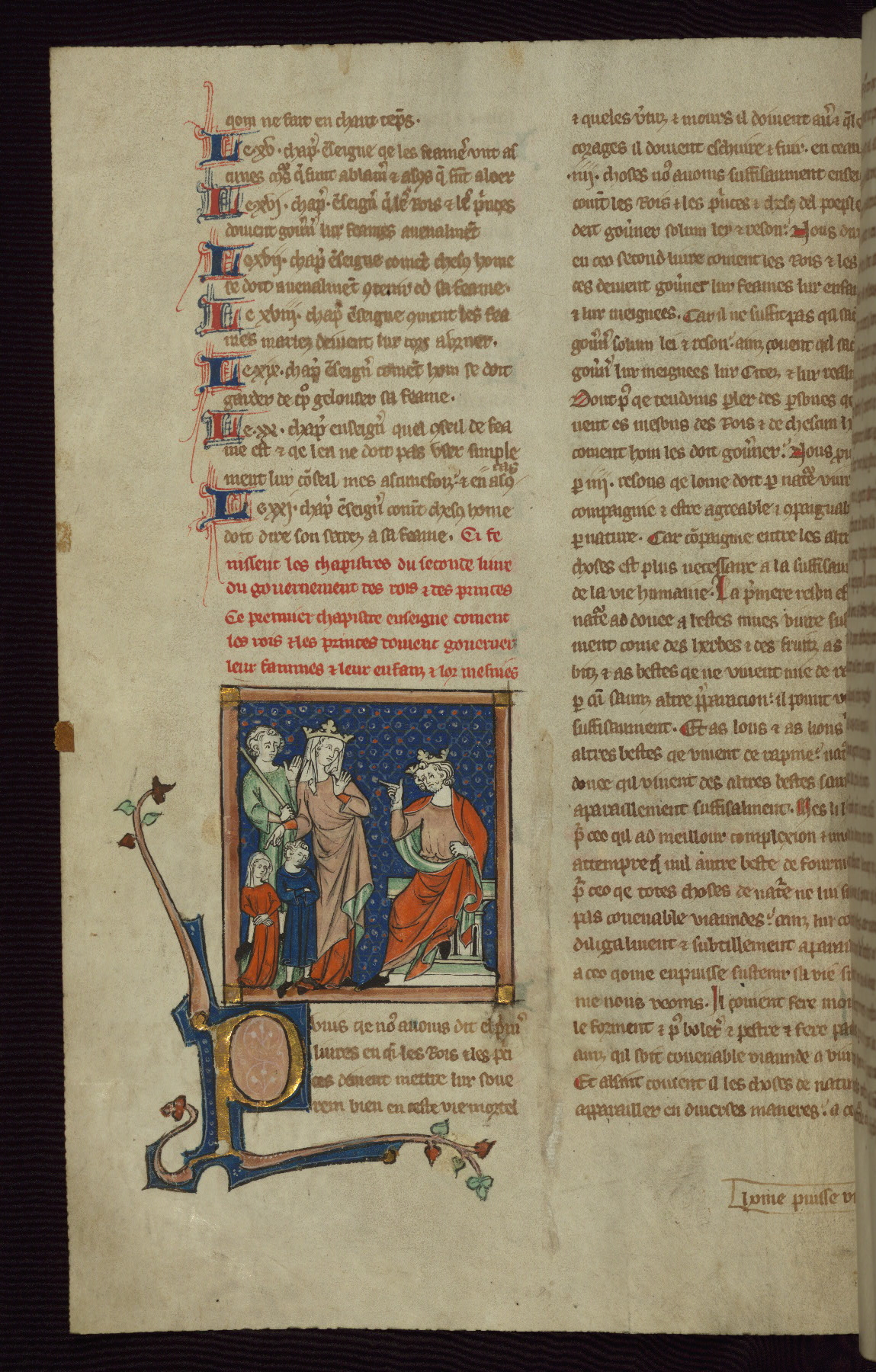 For a similar image of a prince governing his family, see Cambridge, Cambridge University Library MS Ff.3.3, fol. 67r, a manuscript of De regimine principum written and illuminated in early fourteenth-century France with an added index written in fifteenth-century England.