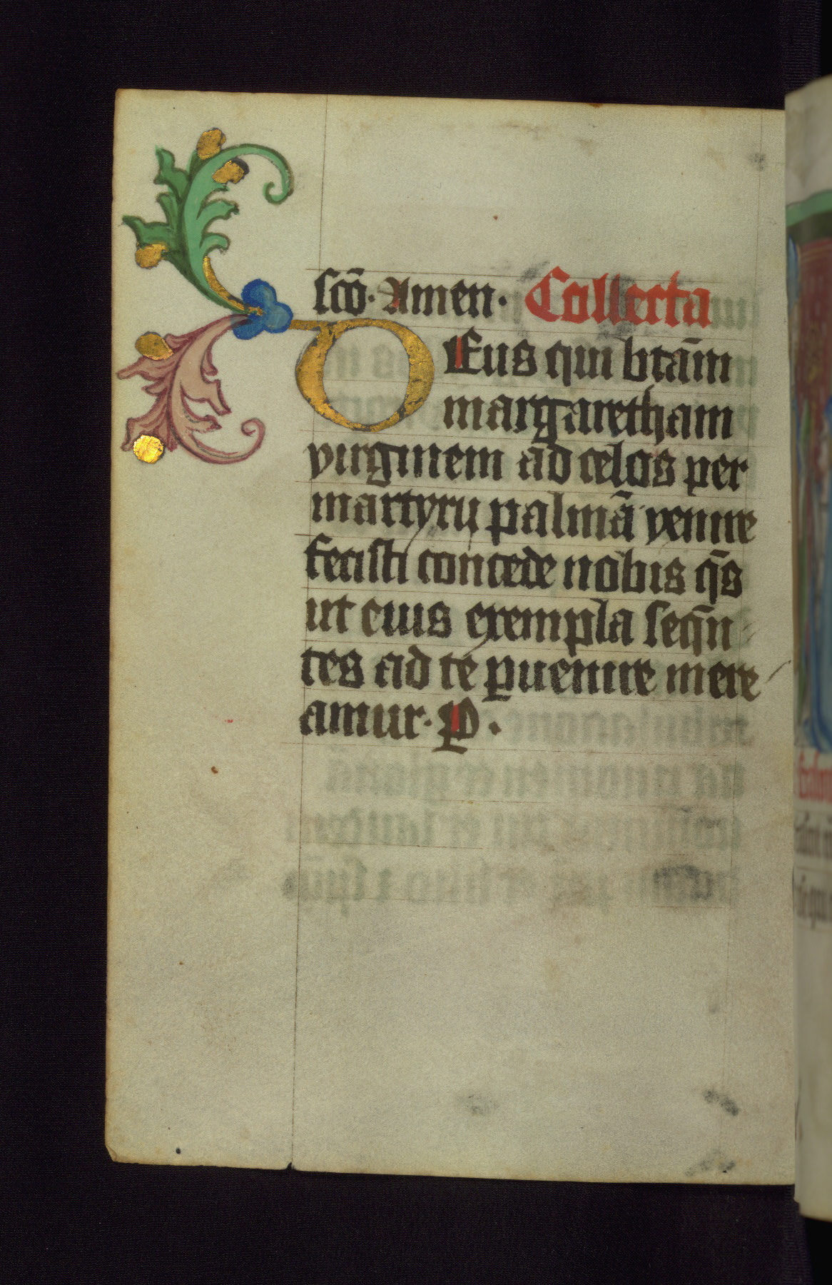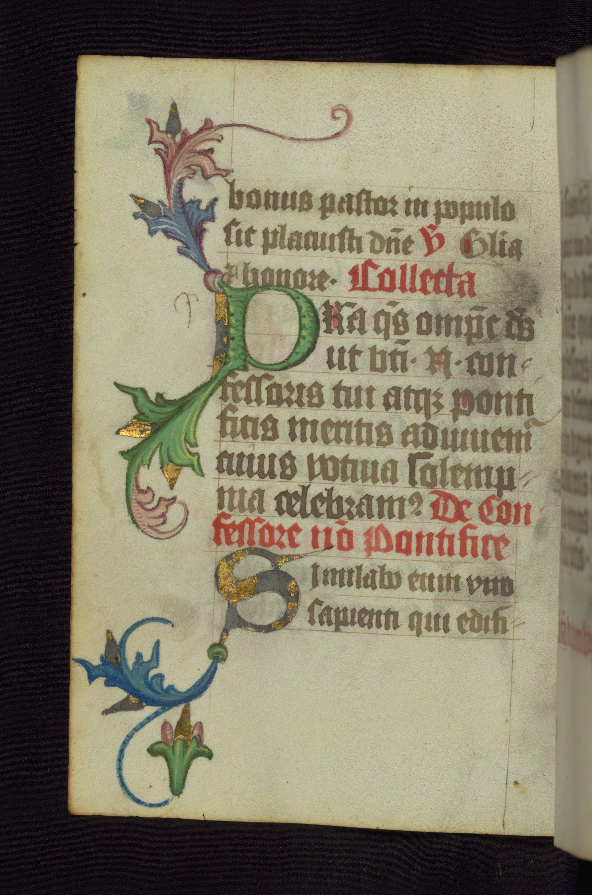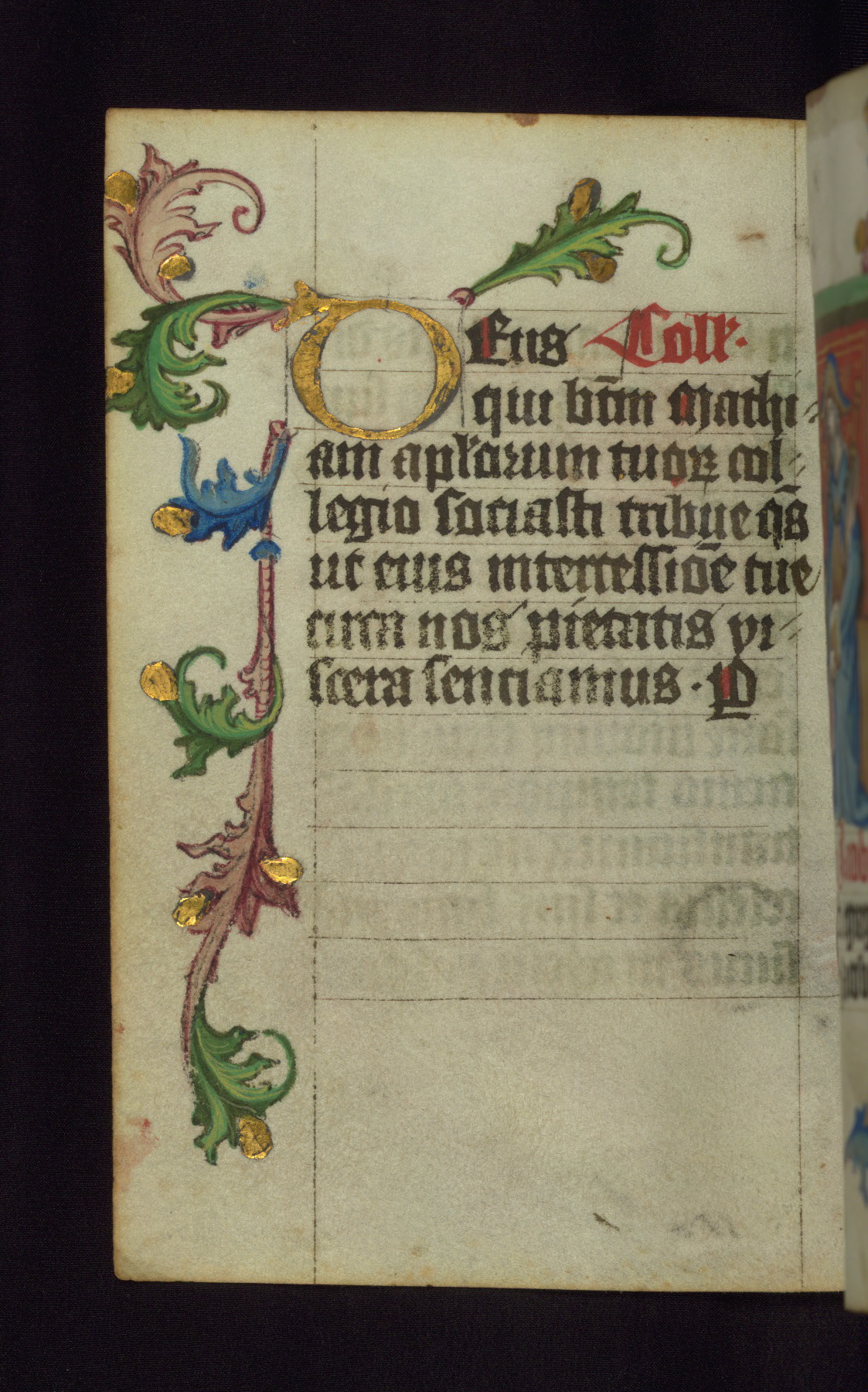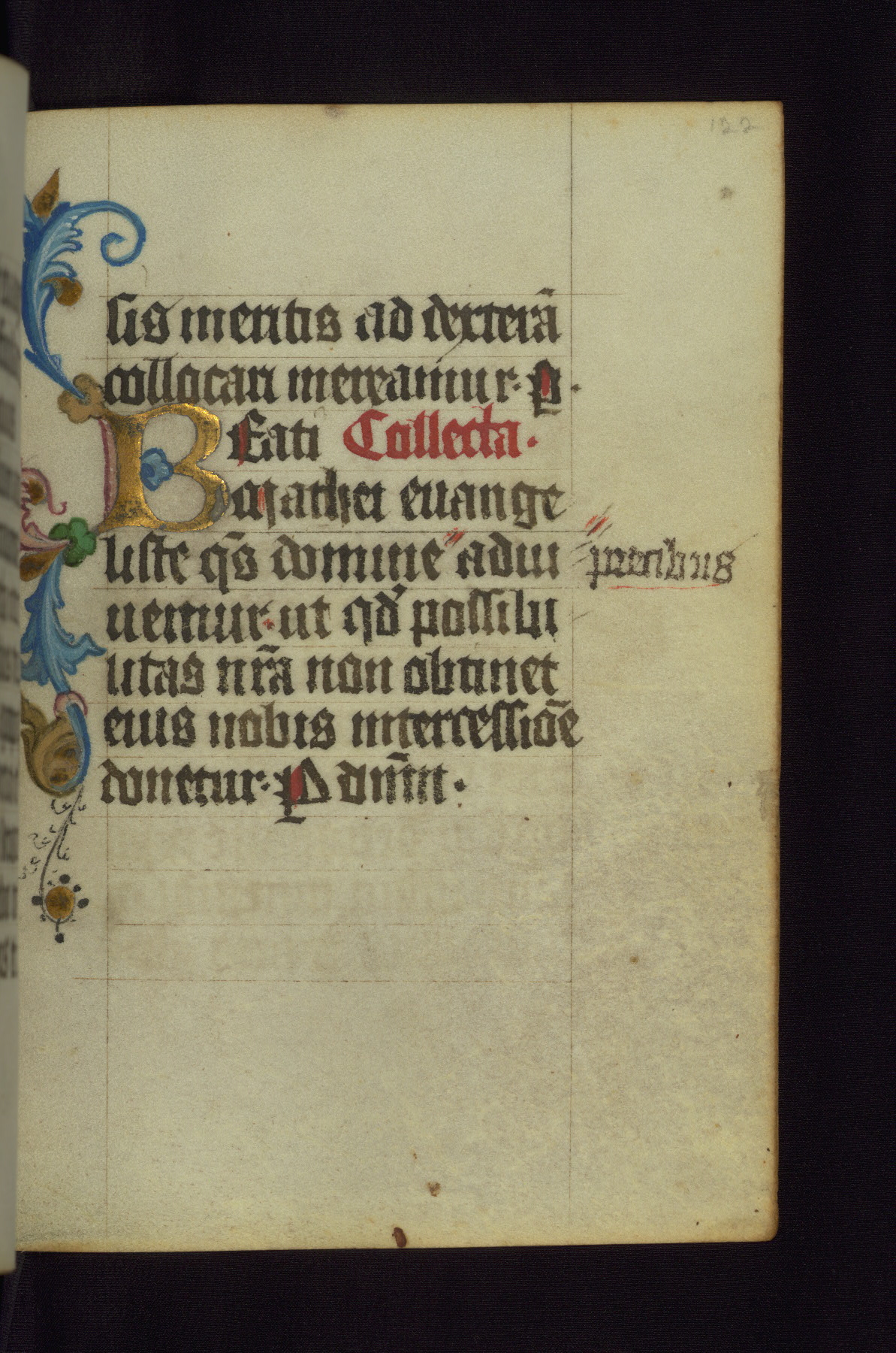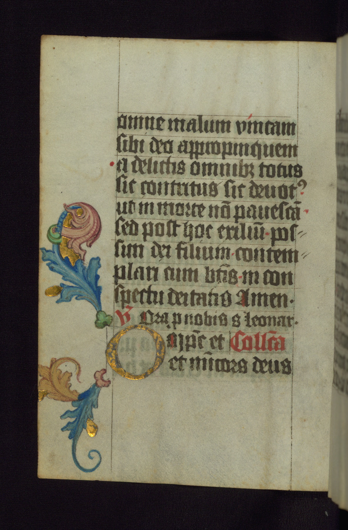 This late medieval German prayer book is an example of a highly personal devotional item. It was originally made ca. 1440 for Leonhard von Laymingen, bishop of Passau (fl. 1423-1451). The text primarily features a series of prayers to various saints as well as prayers for travelings. Many illuminations and some text pages have been excised, but the book is nonetheless extensively decorated. The prayer book's illuminations consist of thirty miniatures and four historiated initials that complement the text, usually with illustrations of saints. Bishop von Laymingen appears in his prayer book several times kneeling before the saint to which that particular prayer is dedicated. Additionally, the Laymingen coat of arms appears twenty times throughout the book.