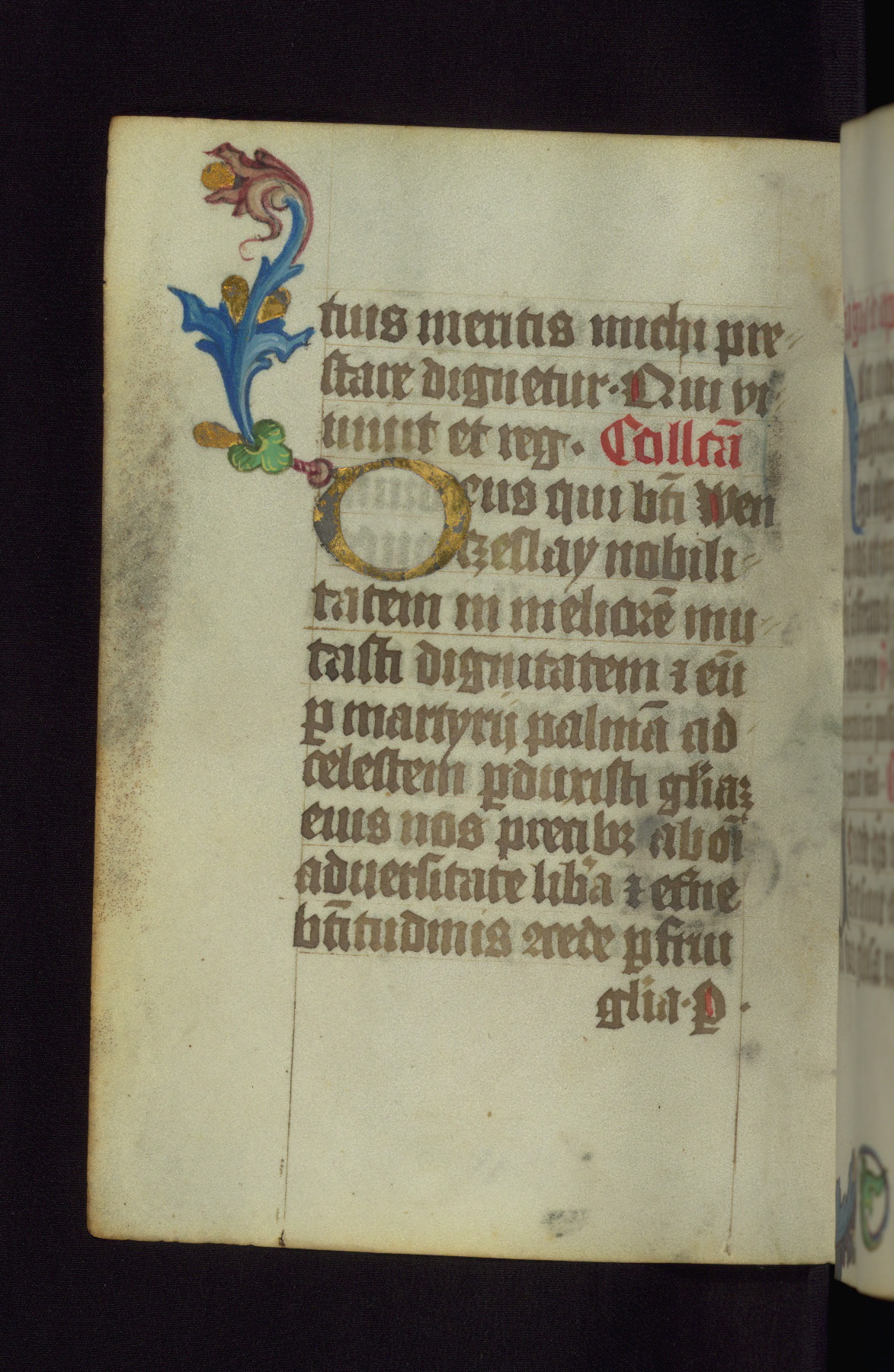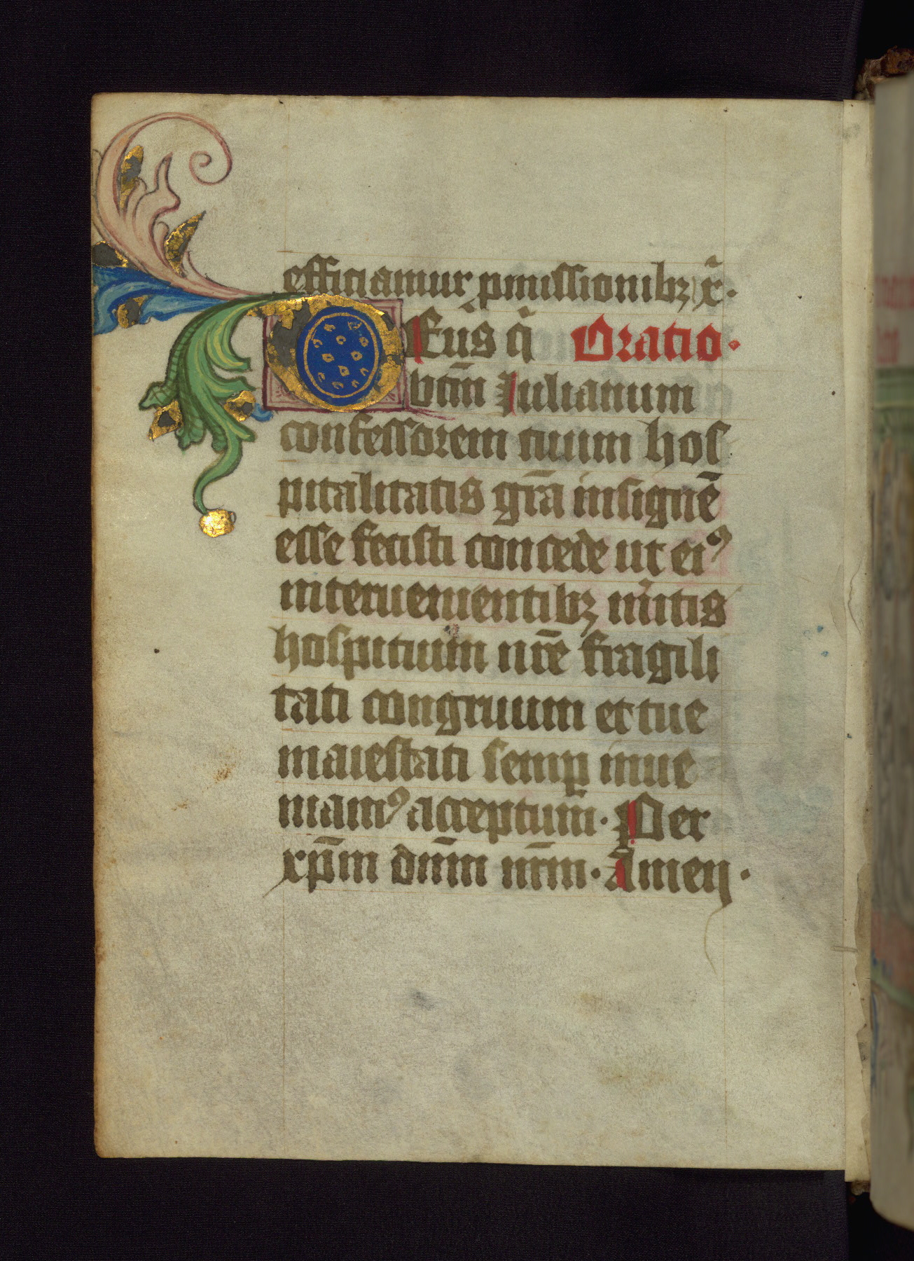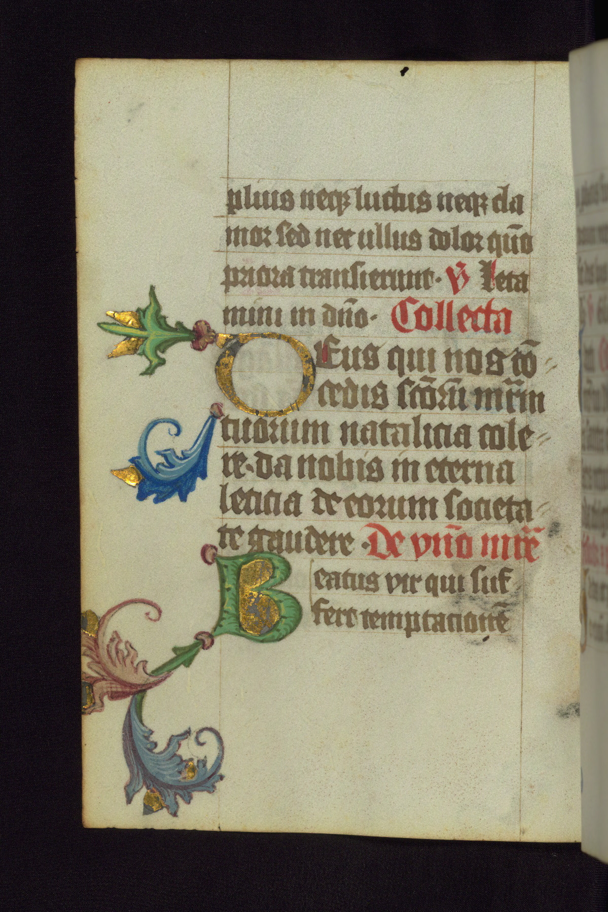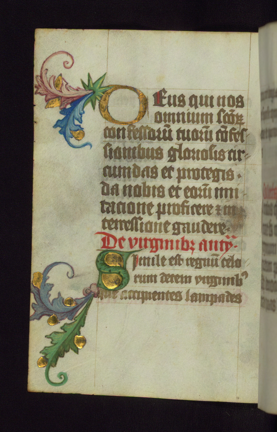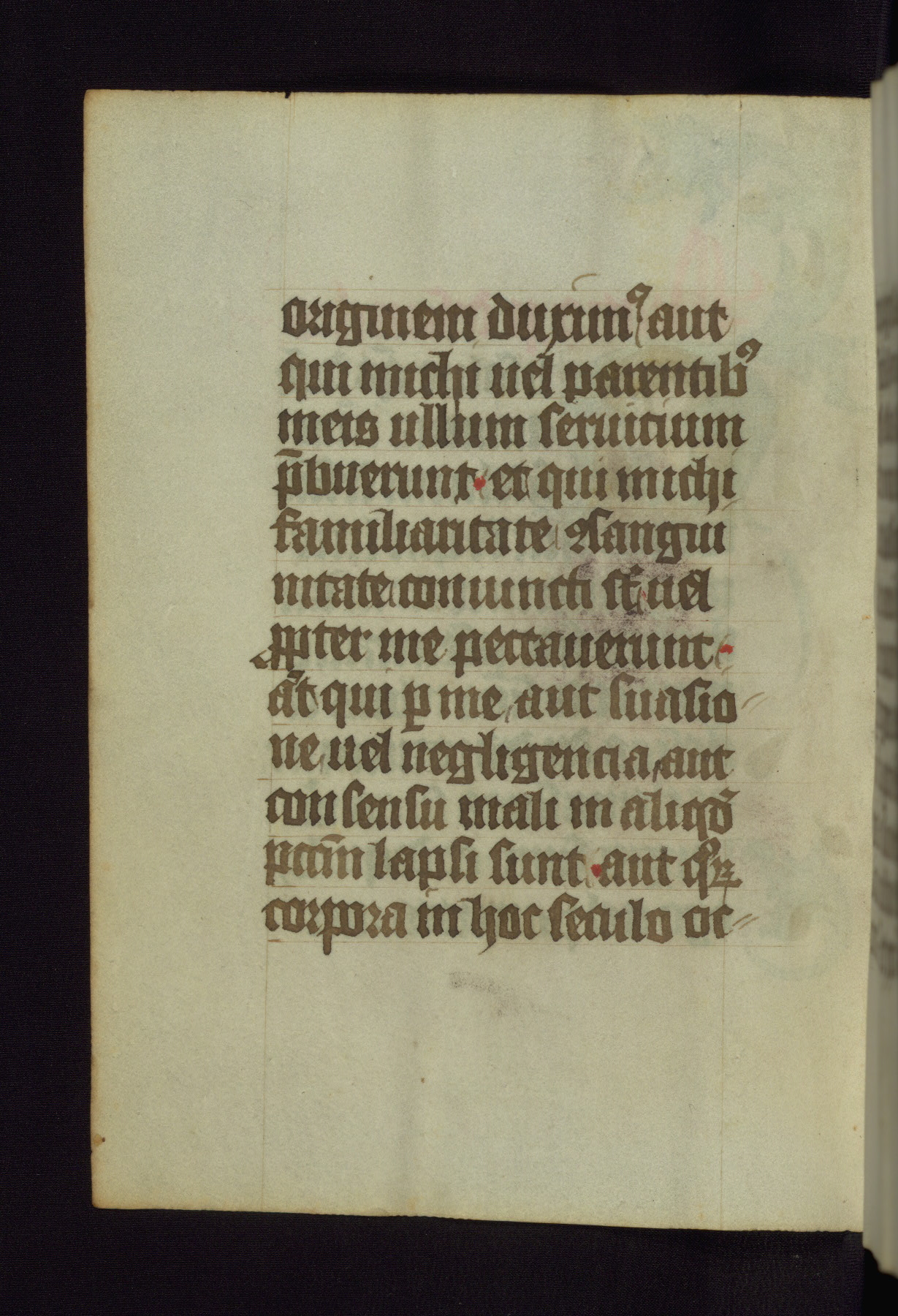 This late medieval German prayer book is an example of a highly personal devotional item. It was originally made ca. 1440 for Leonhard von Laymingen, bishop of Passau (fl. 1423-1451). The text primarily features a series of prayers to various saints as well as prayers for travelings. Many illuminations and some text pages have been excised, but the book is nonetheless extensively decorated. The prayer book's illuminations consist of thirty miniatures and four historiated initials that complement the text, usually with illustrations of saints. Bishop von Laymingen appears in his prayer book several times kneeling before the saint to which that particular prayer is dedicated. Additionally, the Laymingen coat of arms appears twenty times throughout the book.