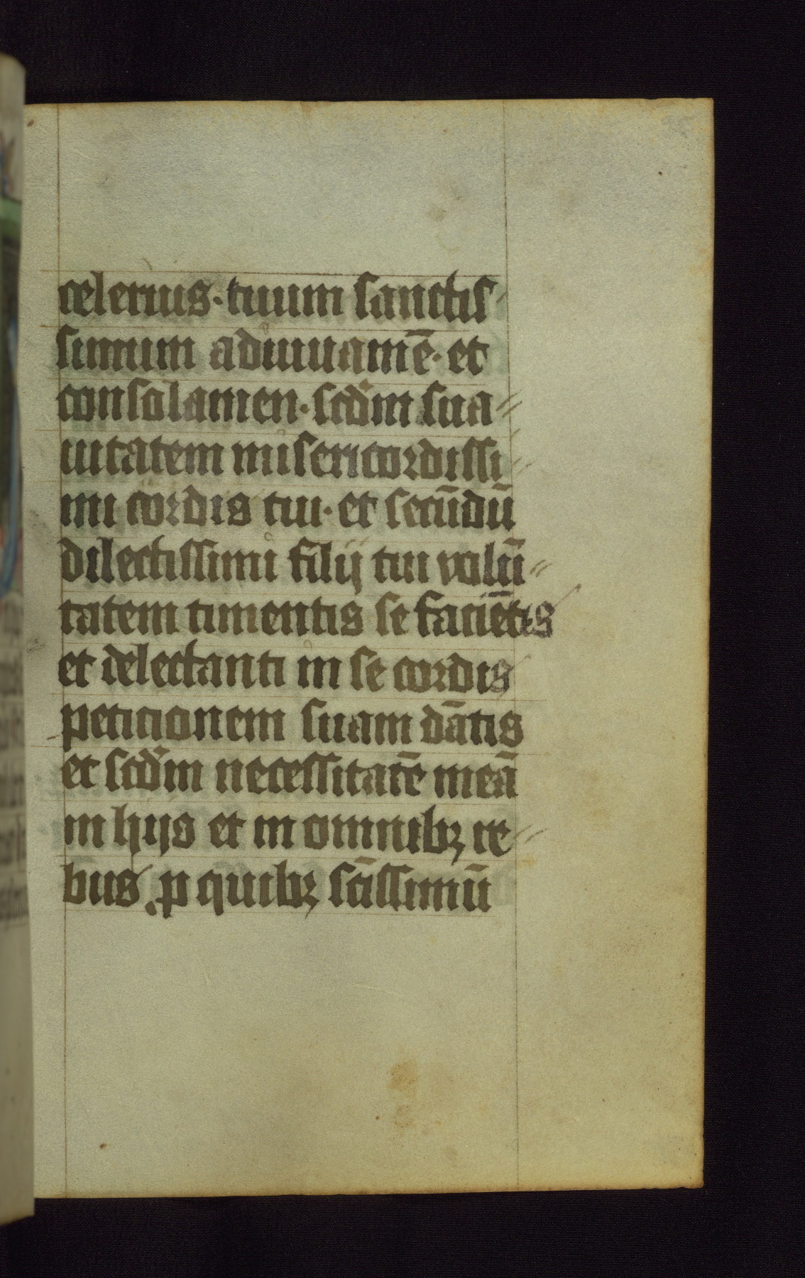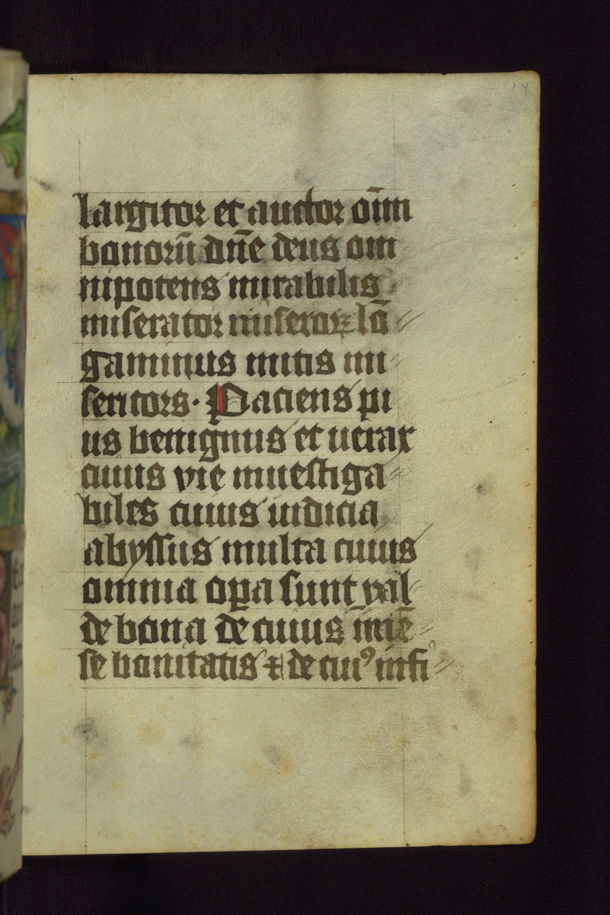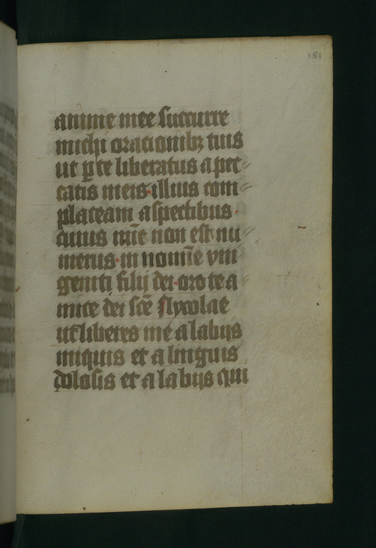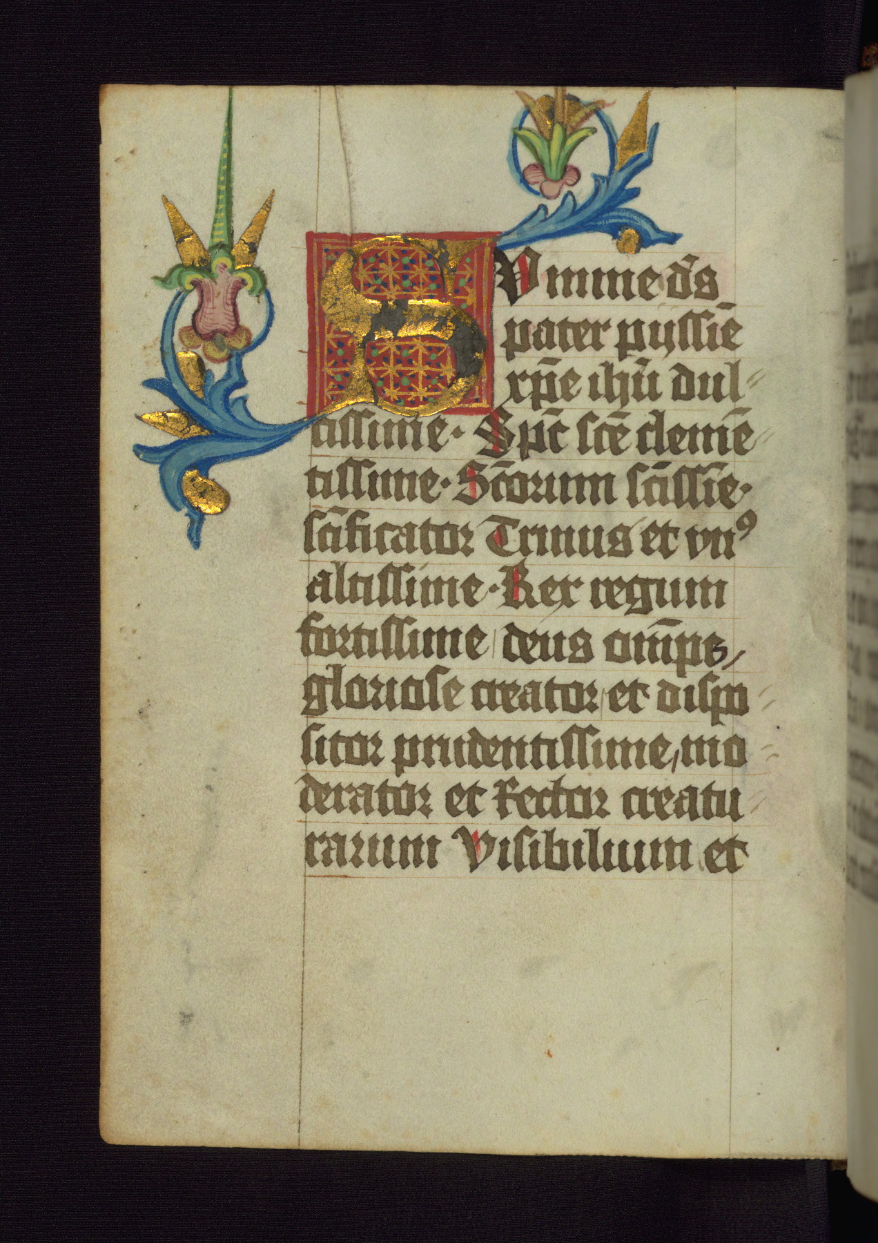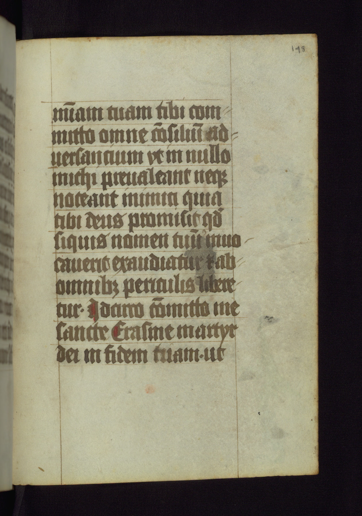 This late medieval German prayer book is an example of a highly personal devotional item. It was originally made ca. 1440 for Leonhard von Laymingen, bishop of Passau (fl. 1423-1451). The text primarily features a series of prayers to various saints as well as prayers for travelings. Many illuminations and some text pages have been excised, but the book is nonetheless extensively decorated. The prayer book's illuminations consist of thirty miniatures and four historiated initials that complement the text, usually with illustrations of saints. Bishop von Laymingen appears in his prayer book several times kneeling before the saint to which that particular prayer is dedicated. Additionally, the Laymingen coat of arms appears twenty times throughout the book.