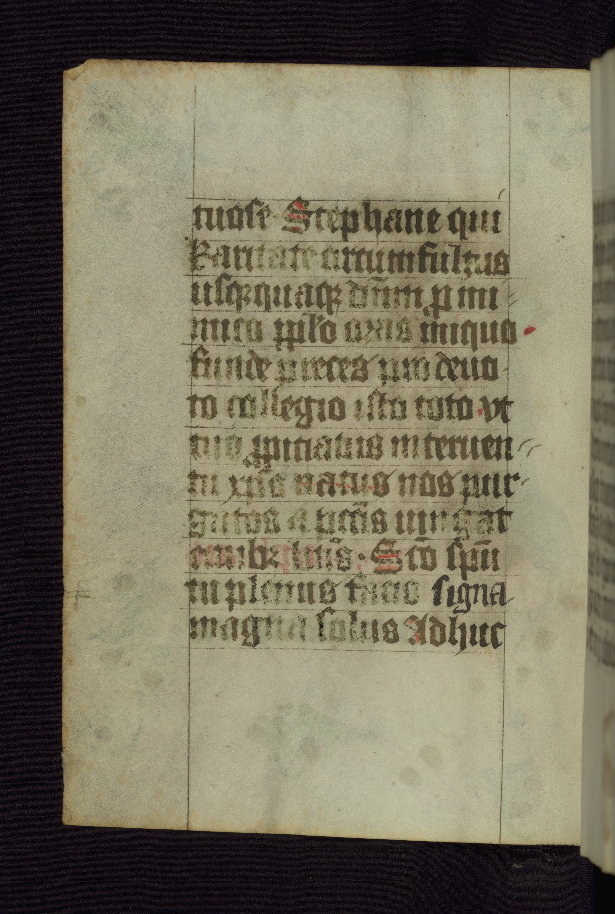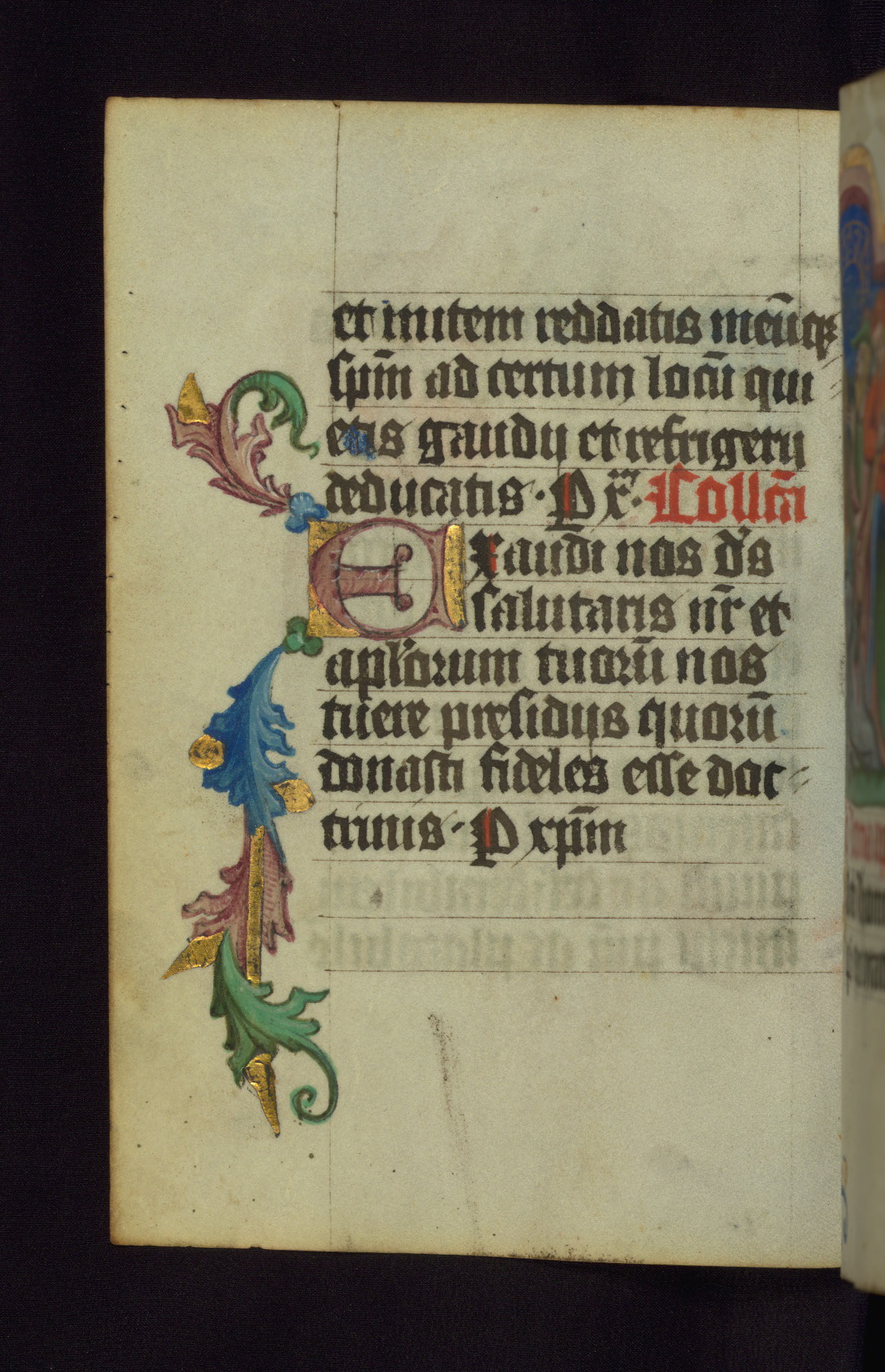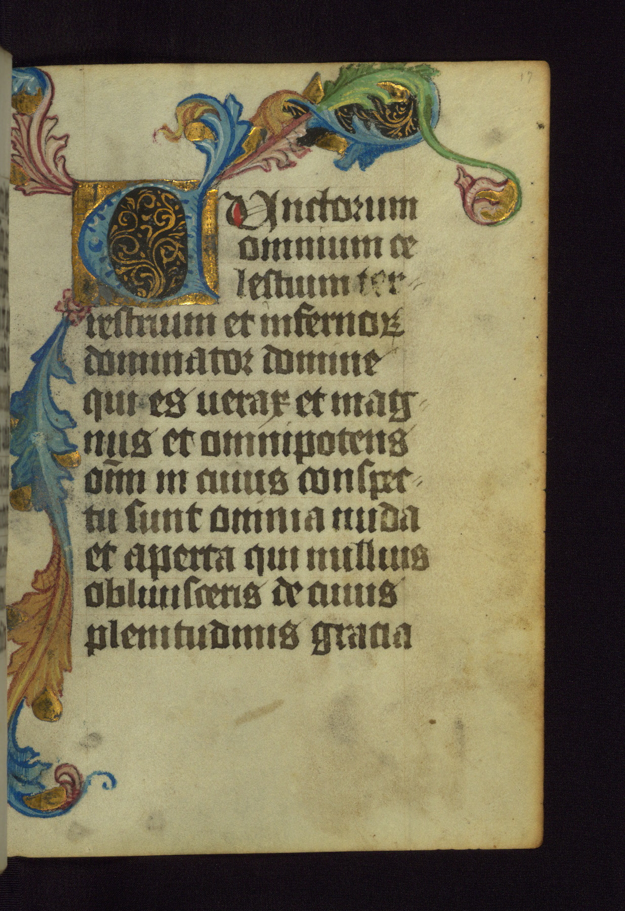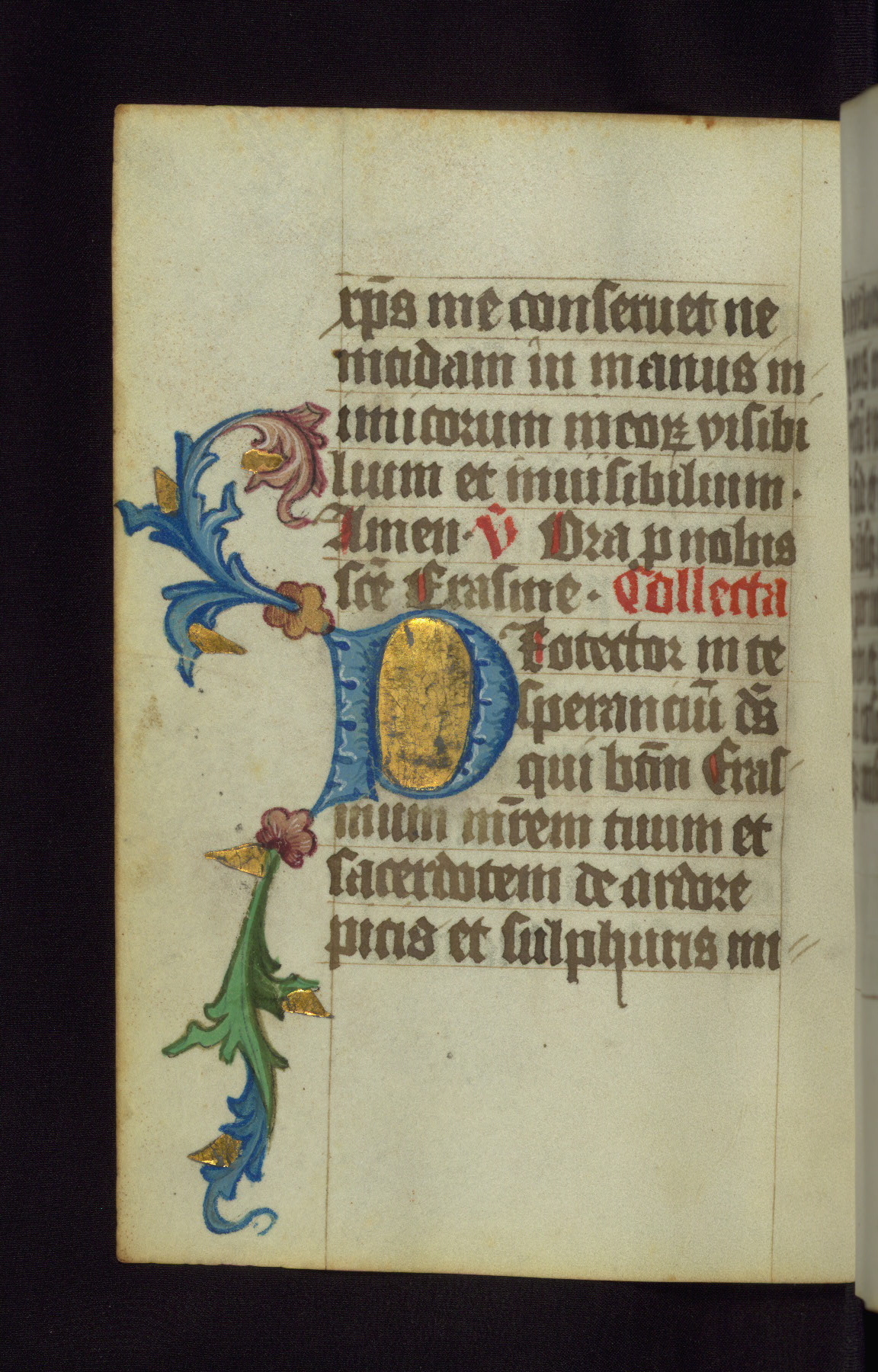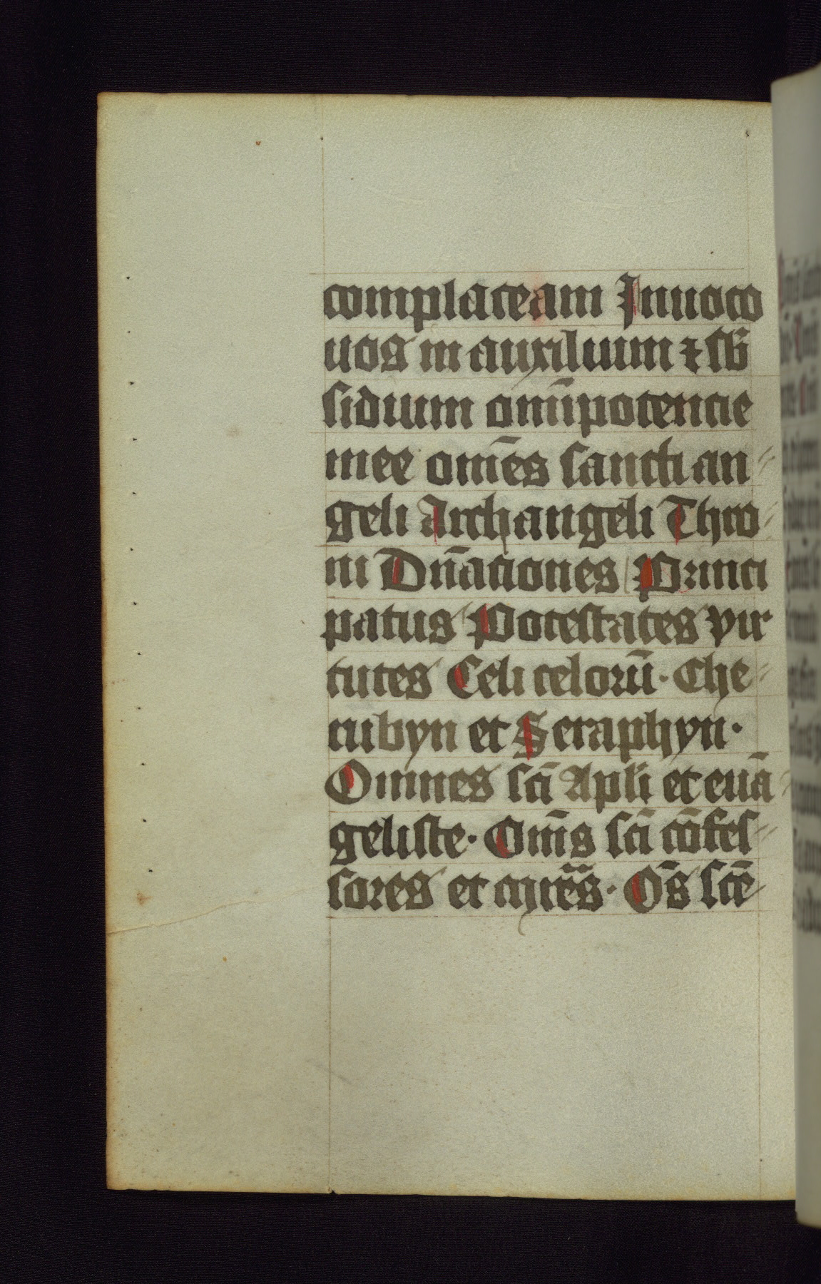 This late medieval German prayer book is an example of a highly personal devotional item. It was originally made ca. 1440 for Leonhard von Laymingen, bishop of Passau (fl. 1423-1451). The text primarily features a series of prayers to various saints as well as prayers for travelings. Many illuminations and some text pages have been excised, but the book is nonetheless extensively decorated. The prayer book's illuminations consist of thirty miniatures and four historiated initials that complement the text, usually with illustrations of saints. Bishop von Laymingen appears in his prayer book several times kneeling before the saint to which that particular prayer is dedicated. Additionally, the Laymingen coat of arms appears twenty times throughout the book.