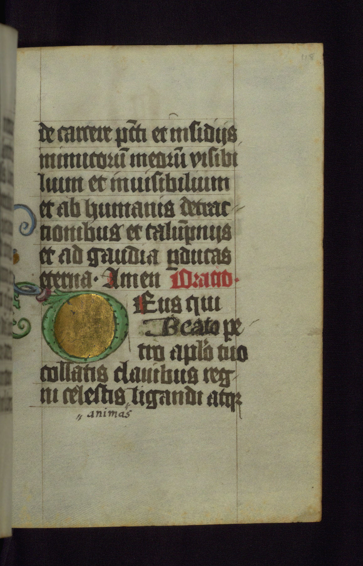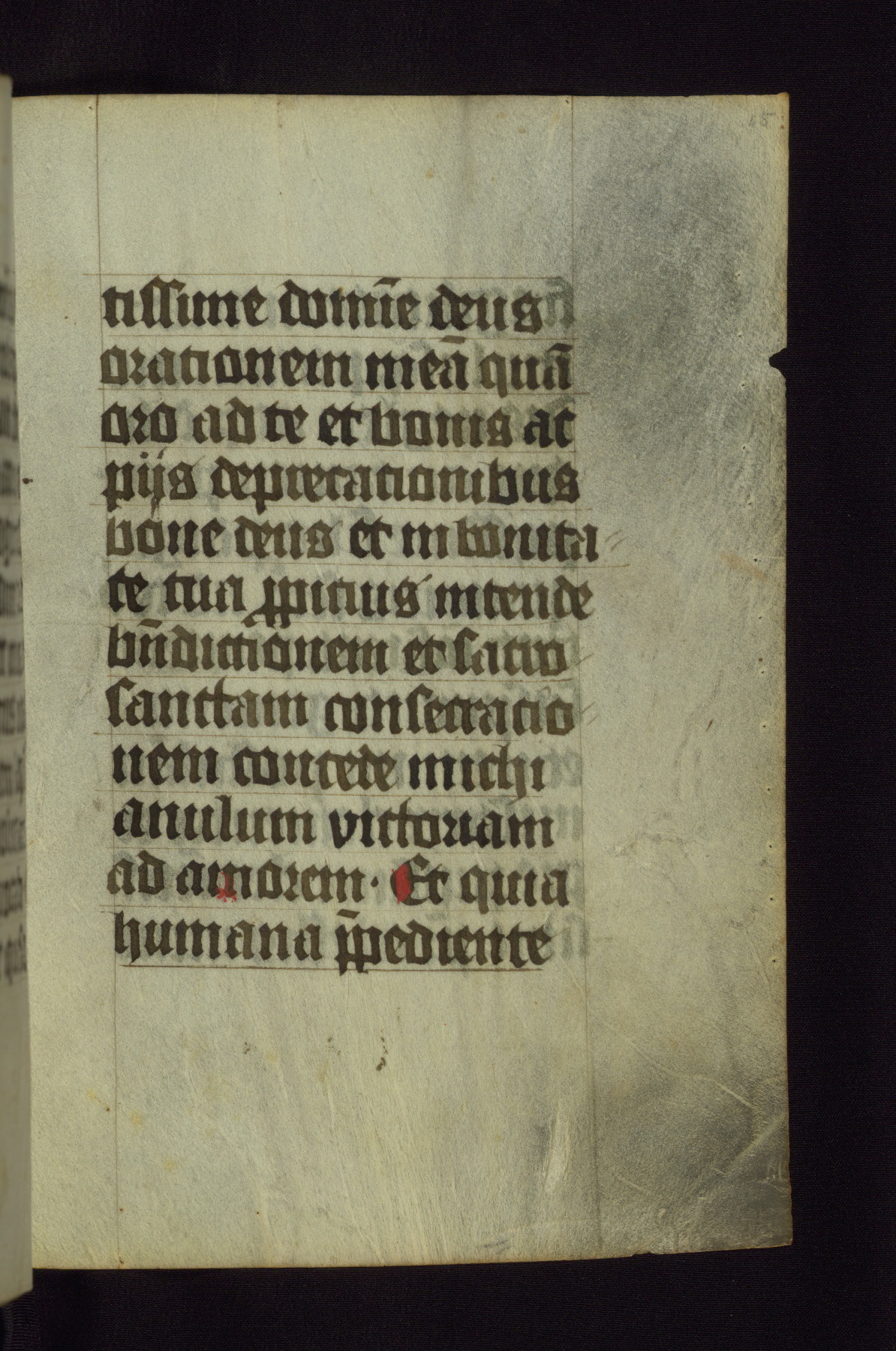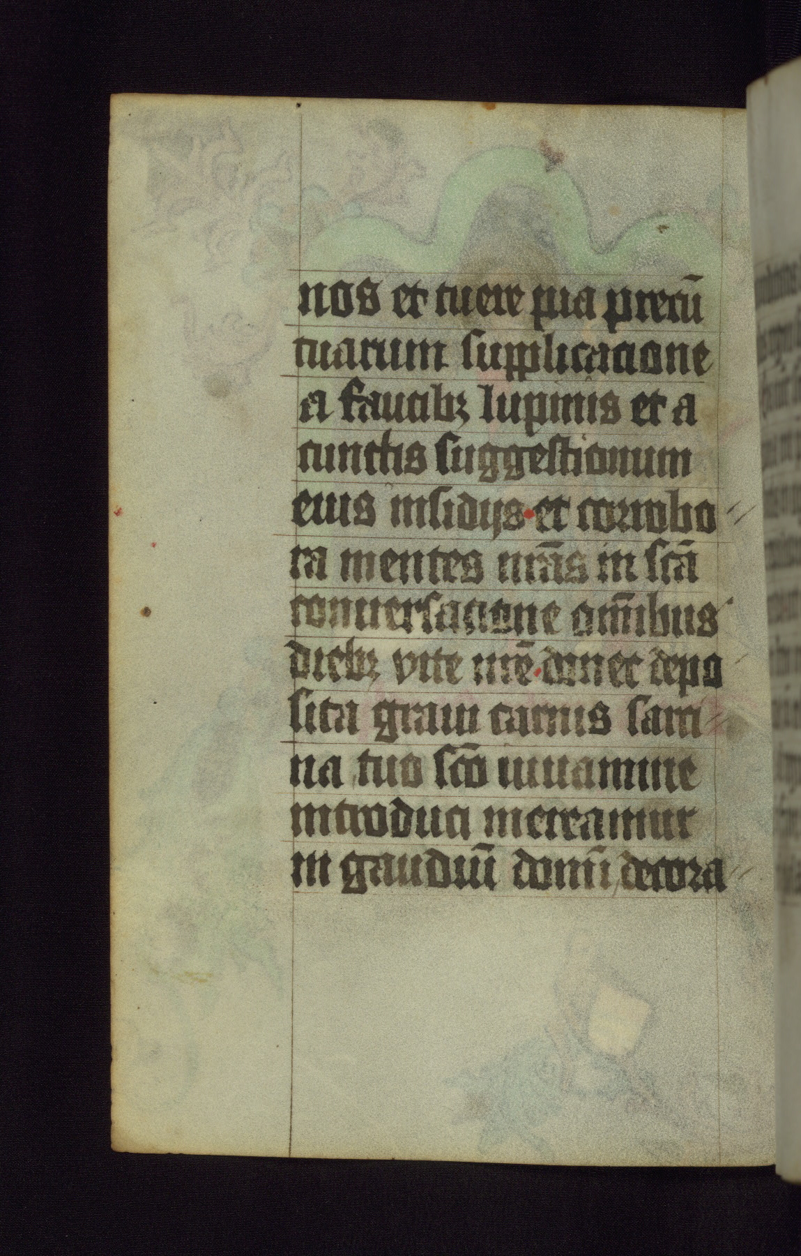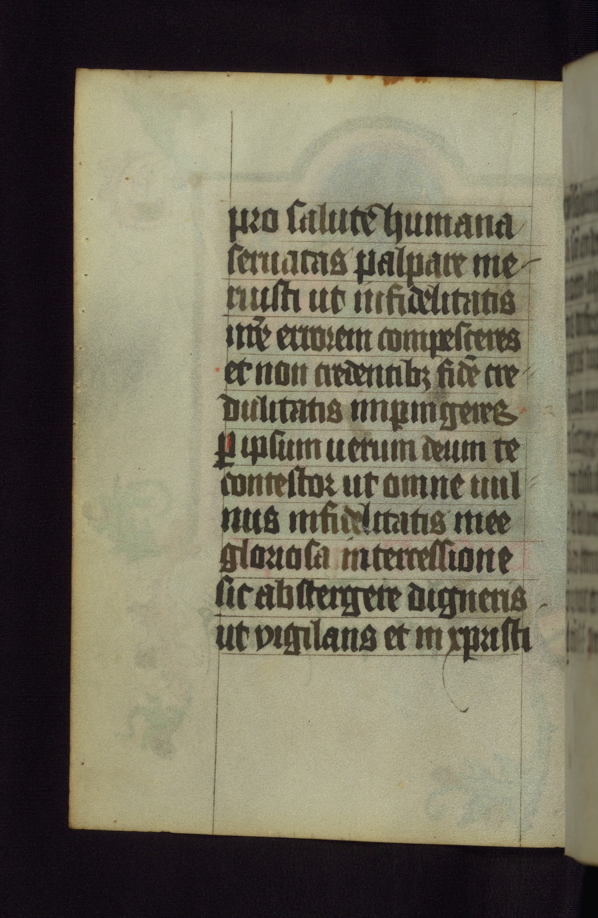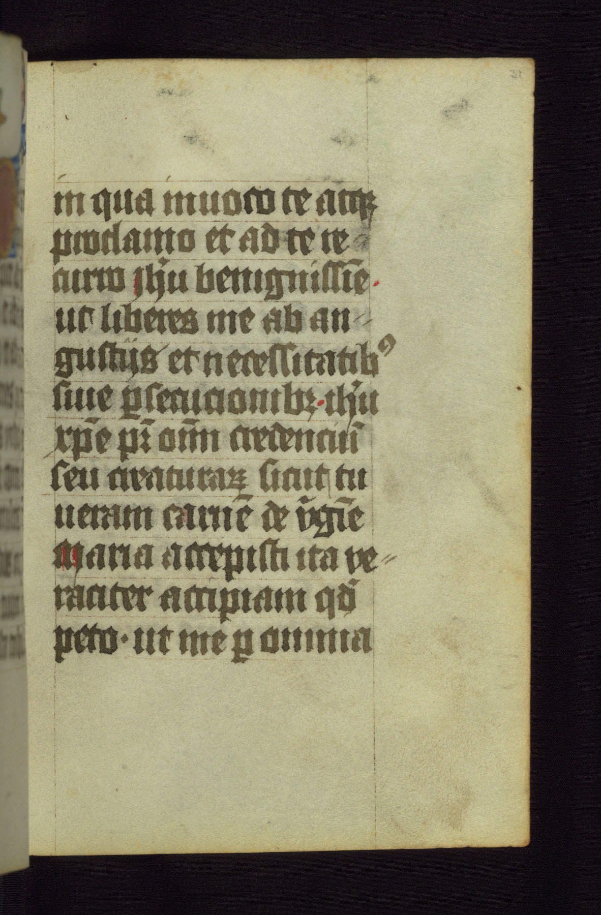 This late medieval German prayer book is an example of a highly personal devotional item. It was originally made ca. 1440 for Leonhard von Laymingen, bishop of Passau (fl. 1423-1451). The text primarily features a series of prayers to various saints as well as prayers for travelings. Many illuminations and some text pages have been excised, but the book is nonetheless extensively decorated. The prayer book's illuminations consist of thirty miniatures and four historiated initials that complement the text, usually with illustrations of saints. Bishop von Laymingen appears in his prayer book several times kneeling before the saint to which that particular prayer is dedicated. Additionally, the Laymingen coat of arms appears twenty times throughout the book.