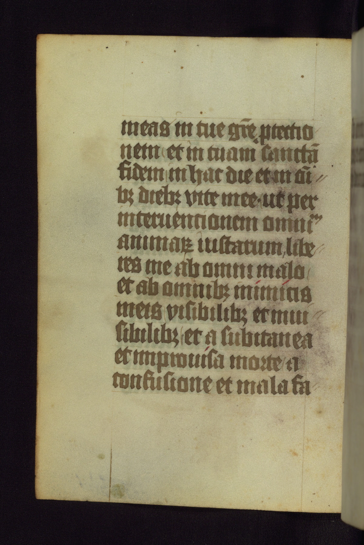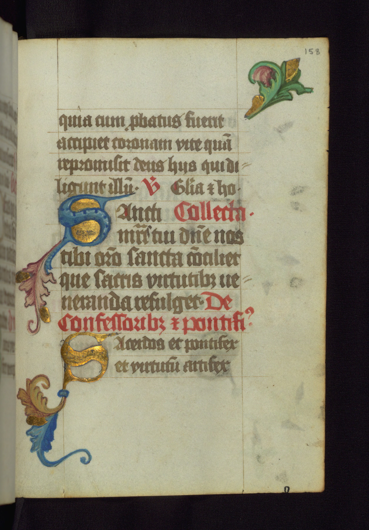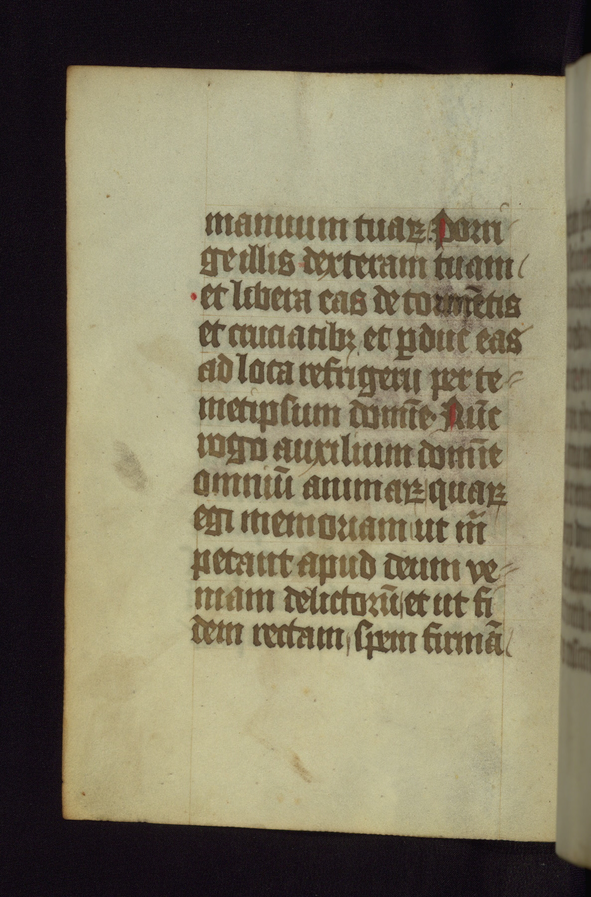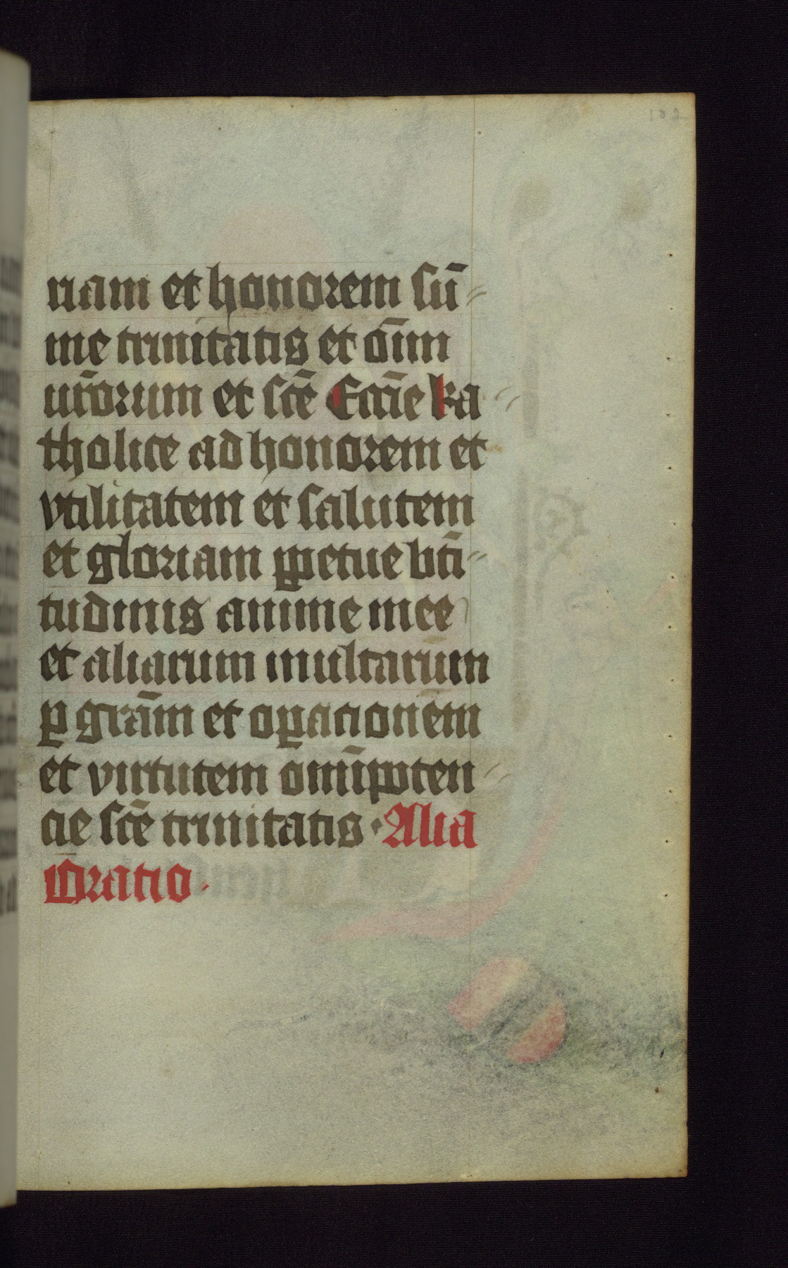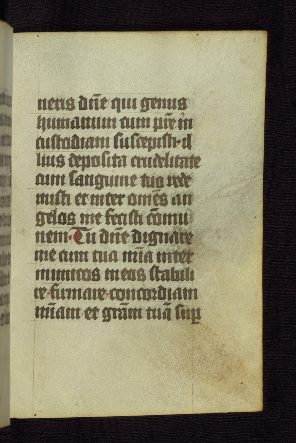 This late medieval German prayer book is an example of a highly personal devotional item. It was originally made ca. 1440 for Leonhard von Laymingen, bishop of Passau (fl. 1423-1451). The text primarily features a series of prayers to various saints as well as prayers for travelings. Many illuminations and some text pages have been excised, but the book is nonetheless extensively decorated. The prayer book's illuminations consist of thirty miniatures and four historiated initials that complement the text, usually with illustrations of saints. Bishop von Laymingen appears in his prayer book several times kneeling before the saint to which that particular prayer is dedicated. Additionally, the Laymingen coat of arms appears twenty times throughout the book.