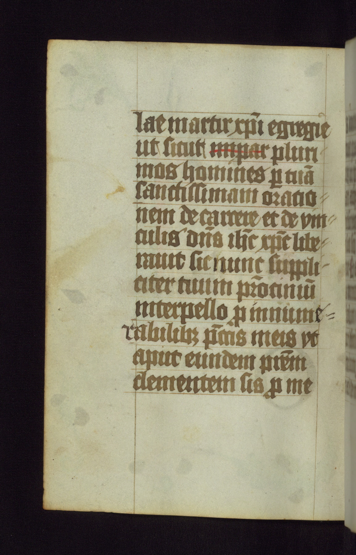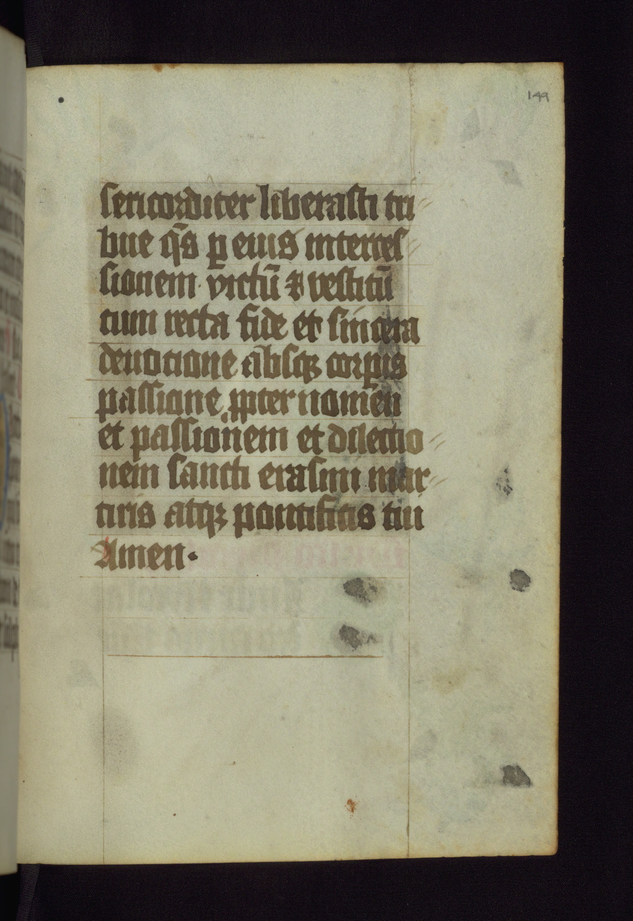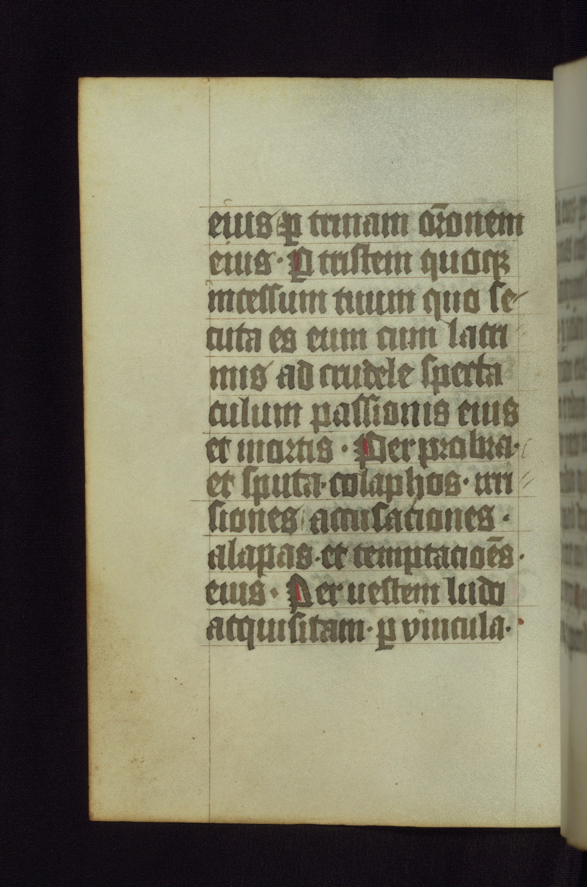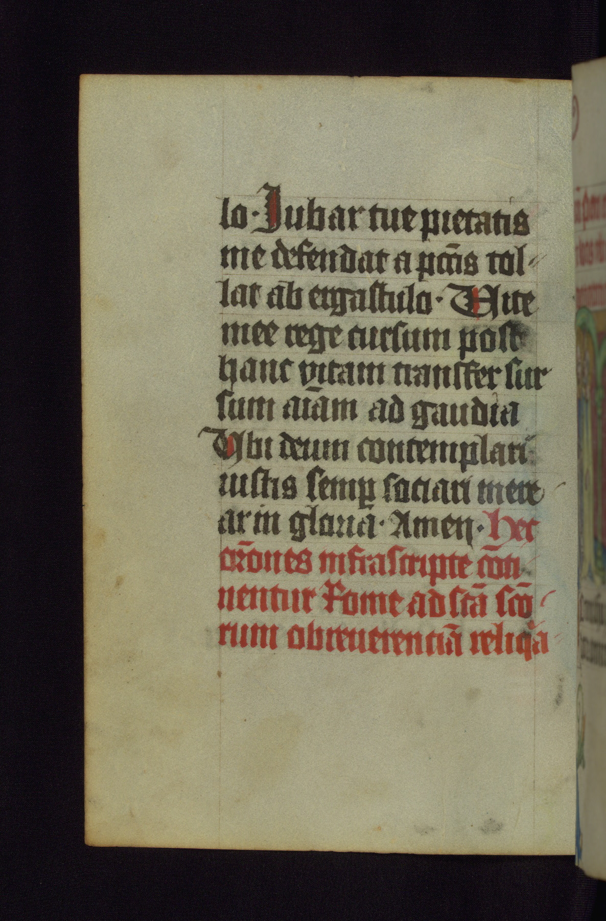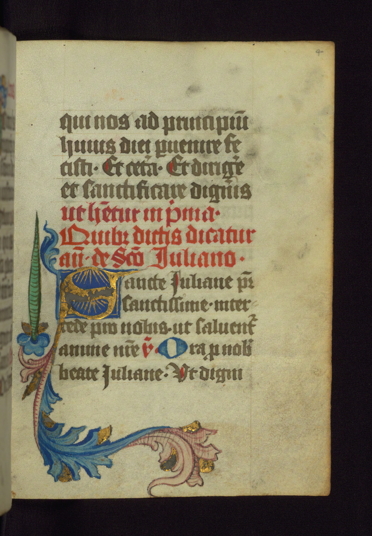 This late medieval German prayer book is an example of a highly personal devotional item. It was originally made ca. 1440 for Leonhard von Laymingen, bishop of Passau (fl. 1423-1451). The text primarily features a series of prayers to various saints as well as prayers for travelings. Many illuminations and some text pages have been excised, but the book is nonetheless extensively decorated. The prayer book's illuminations consist of thirty miniatures and four historiated initials that complement the text, usually with illustrations of saints. Bishop von Laymingen appears in his prayer book several times kneeling before the saint to which that particular prayer is dedicated. Additionally, the Laymingen coat of arms appears twenty times throughout the book.
