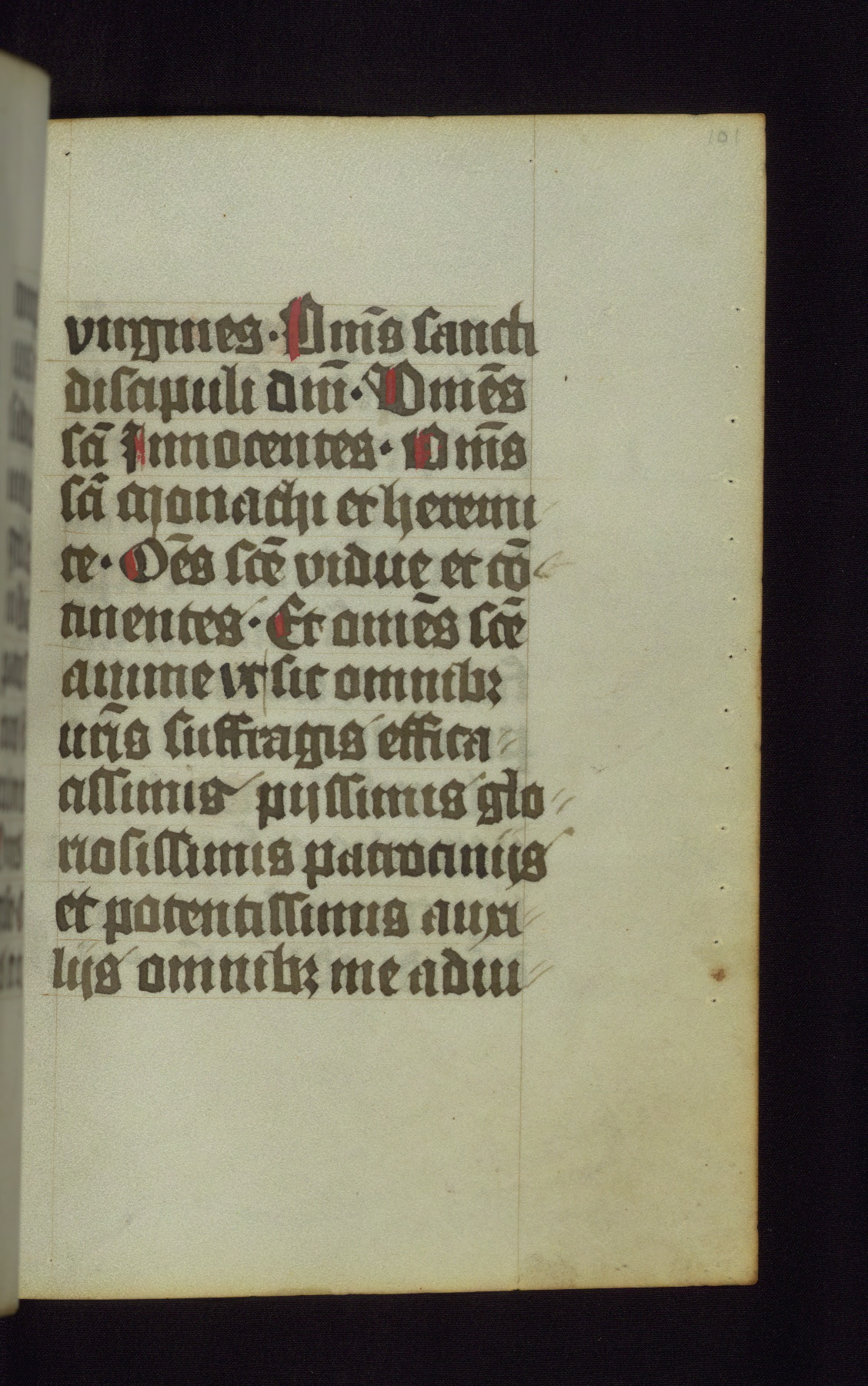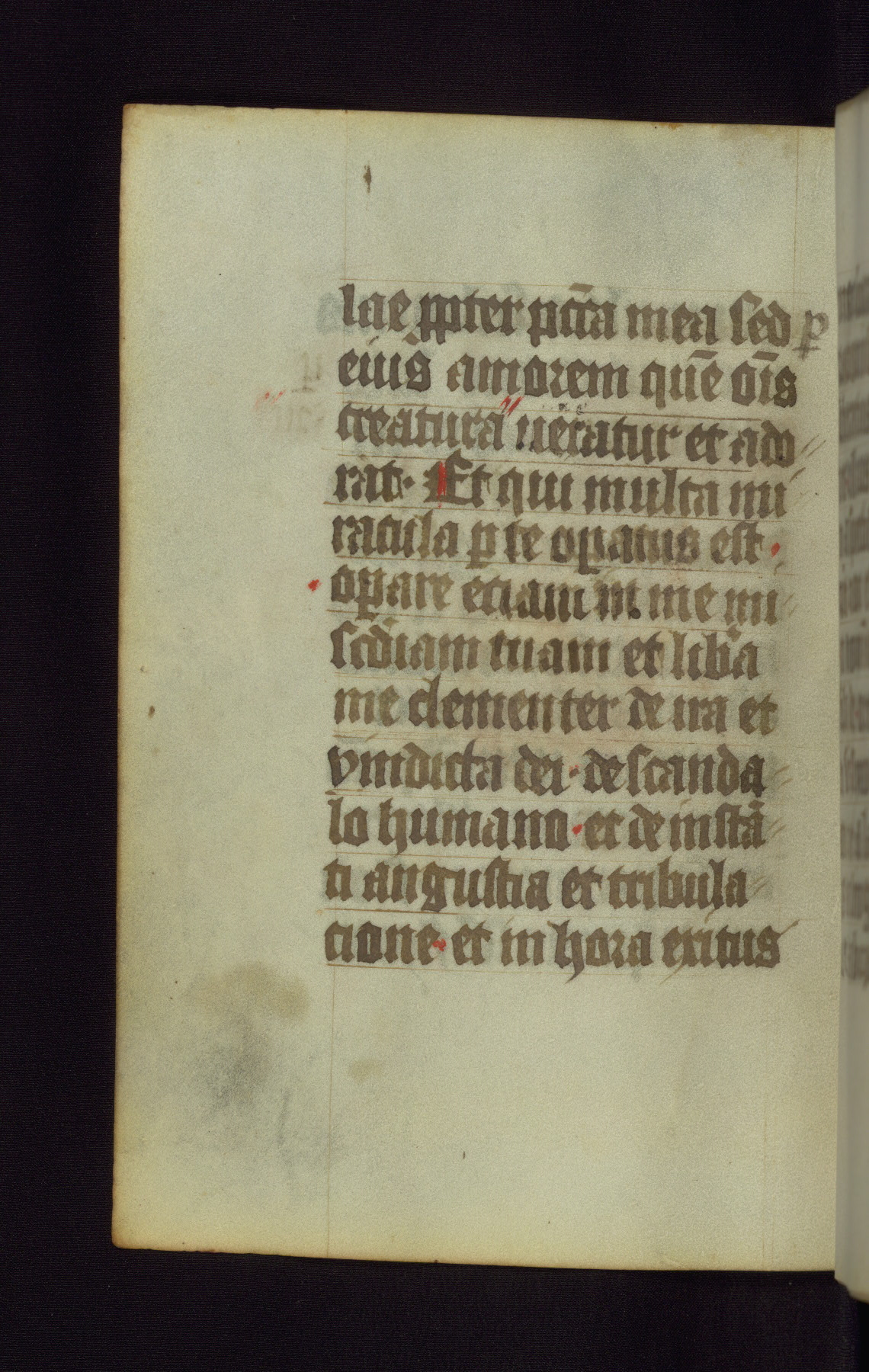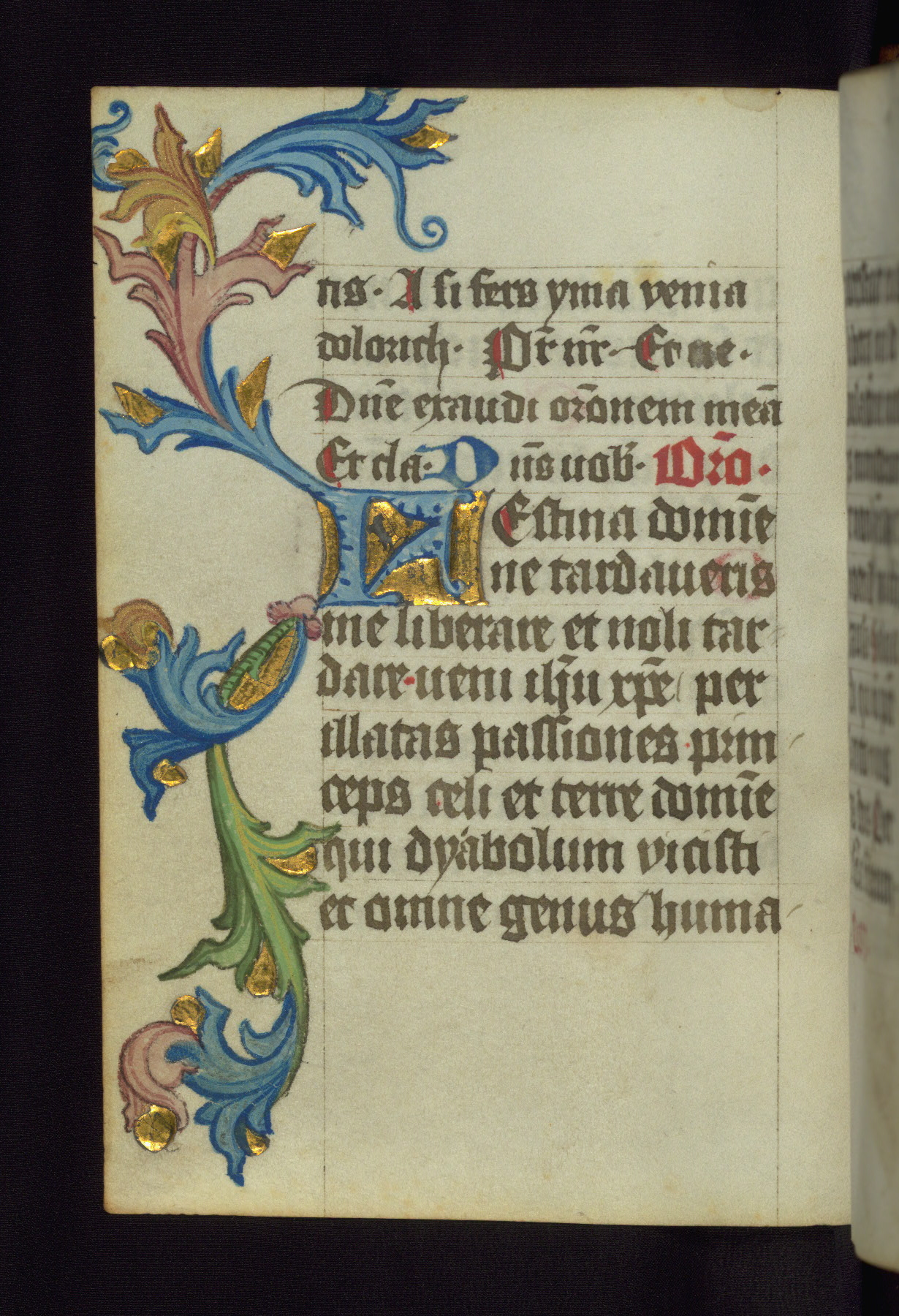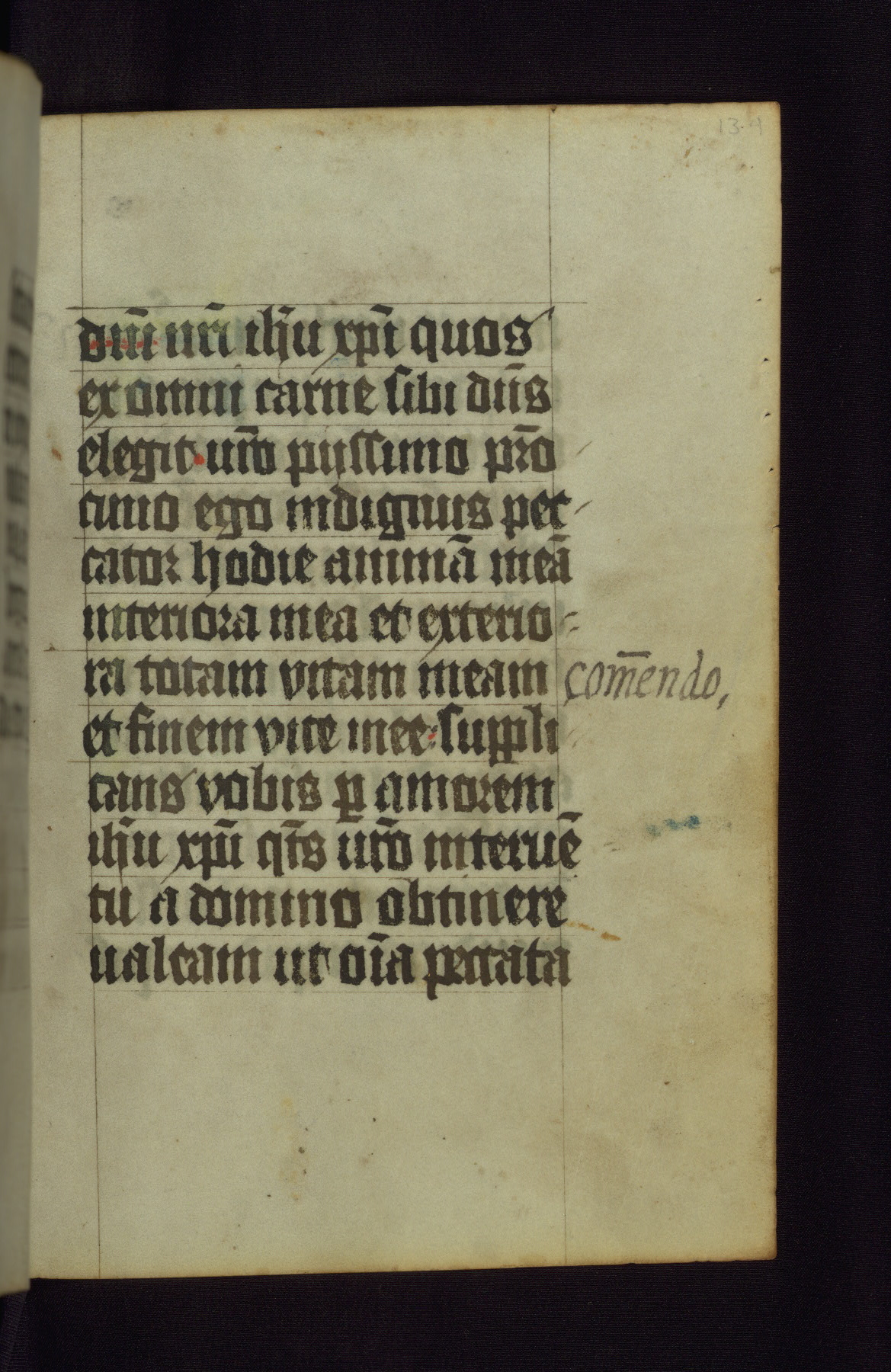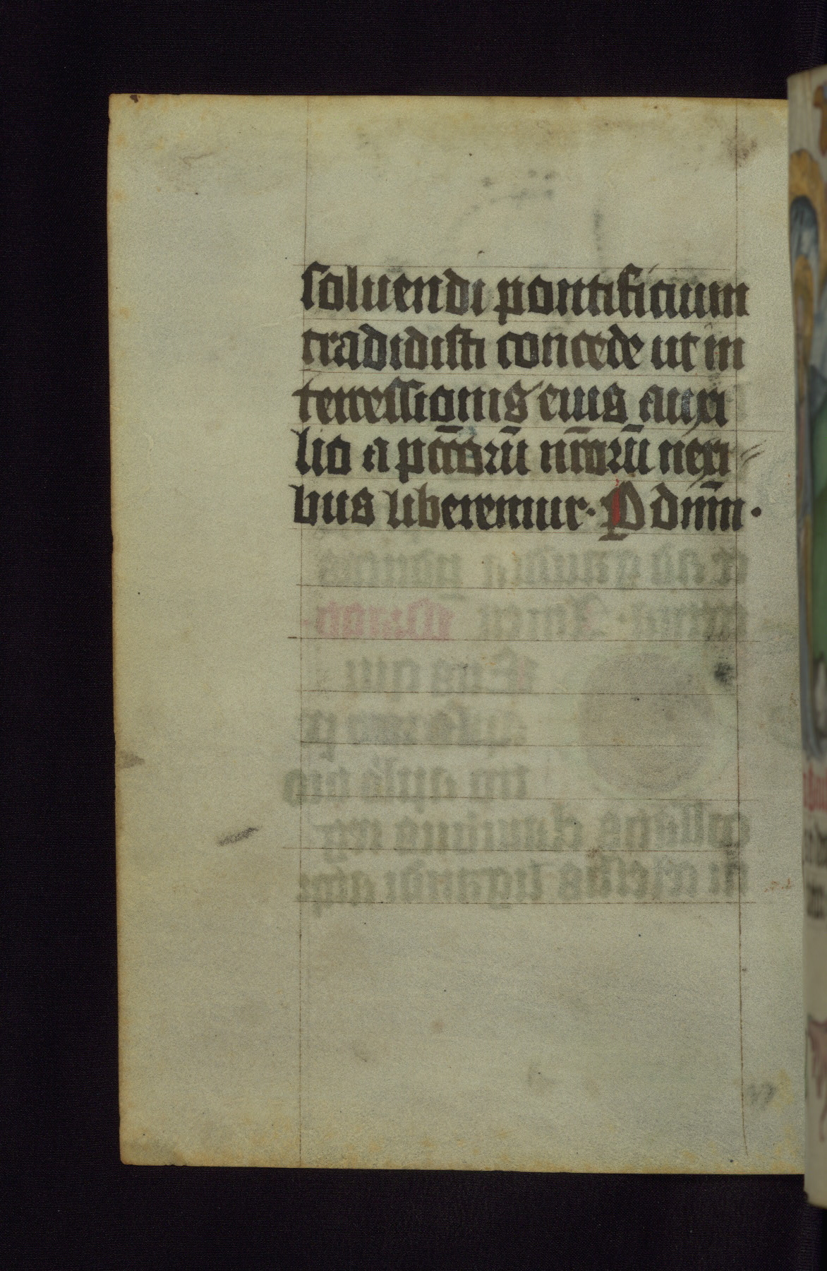 This late medieval German prayer book is an example of a highly personal devotional item. It was originally made ca. 1440 for Leonhard von Laymingen, bishop of Passau (fl. 1423-1451). The text primarily features a series of prayers to various saints as well as prayers for travelings. Many illuminations and some text pages have been excised, but the book is nonetheless extensively decorated. The prayer book's illuminations consist of thirty miniatures and four historiated initials that complement the text, usually with illustrations of saints. Bishop von Laymingen appears in his prayer book several times kneeling before the saint to which that particular prayer is dedicated. Additionally, the Laymingen coat of arms appears twenty times throughout the book.
