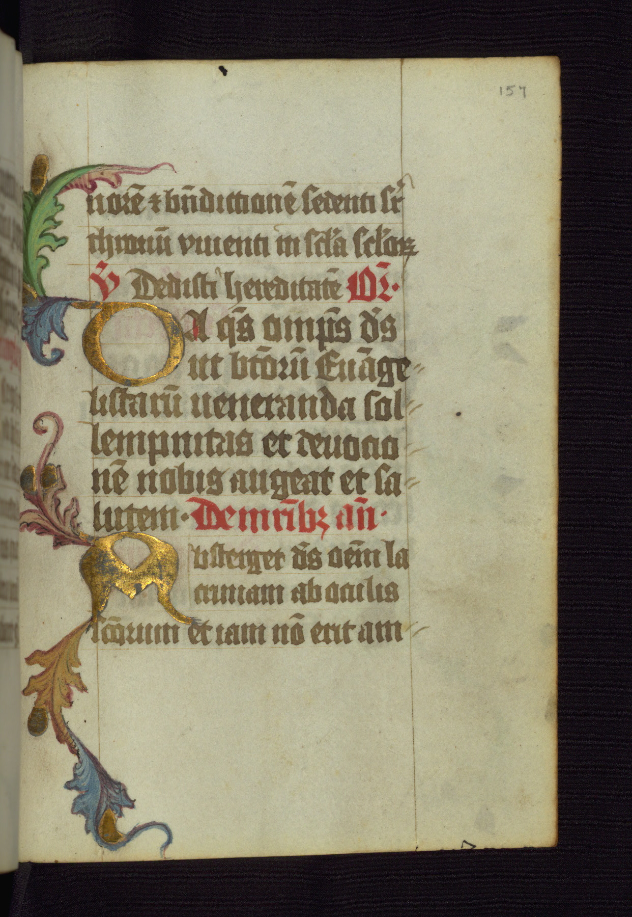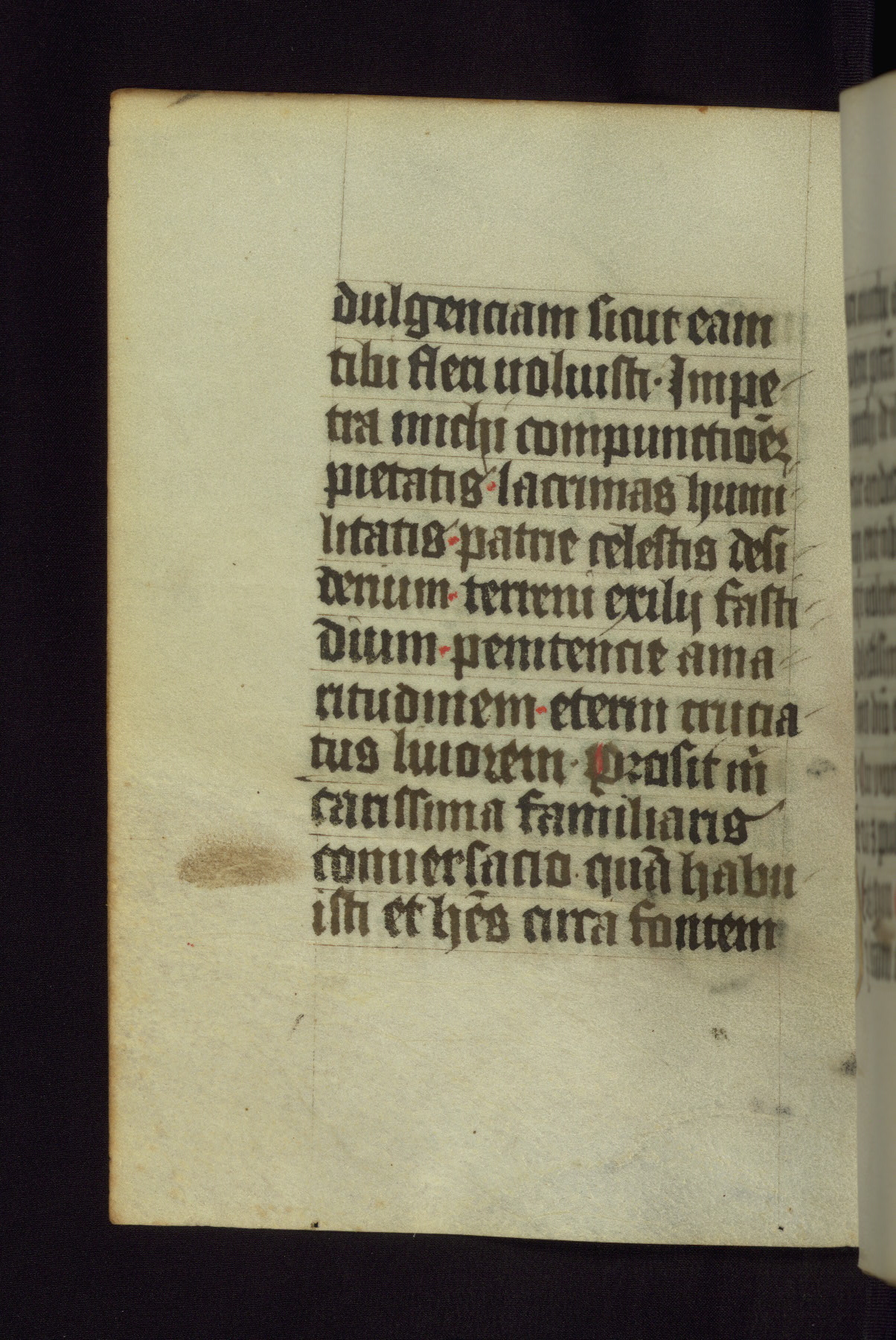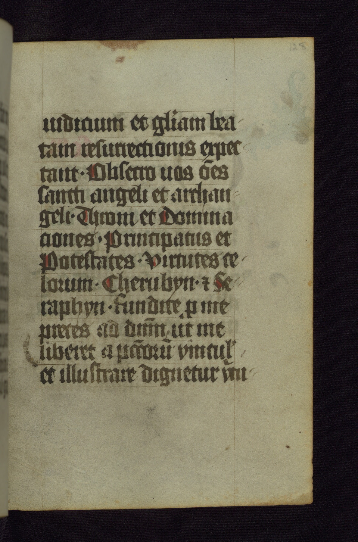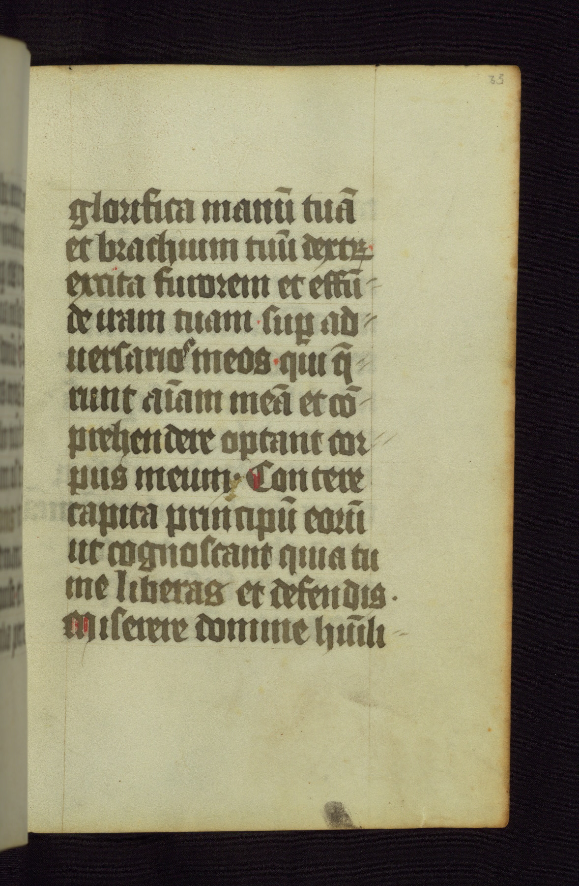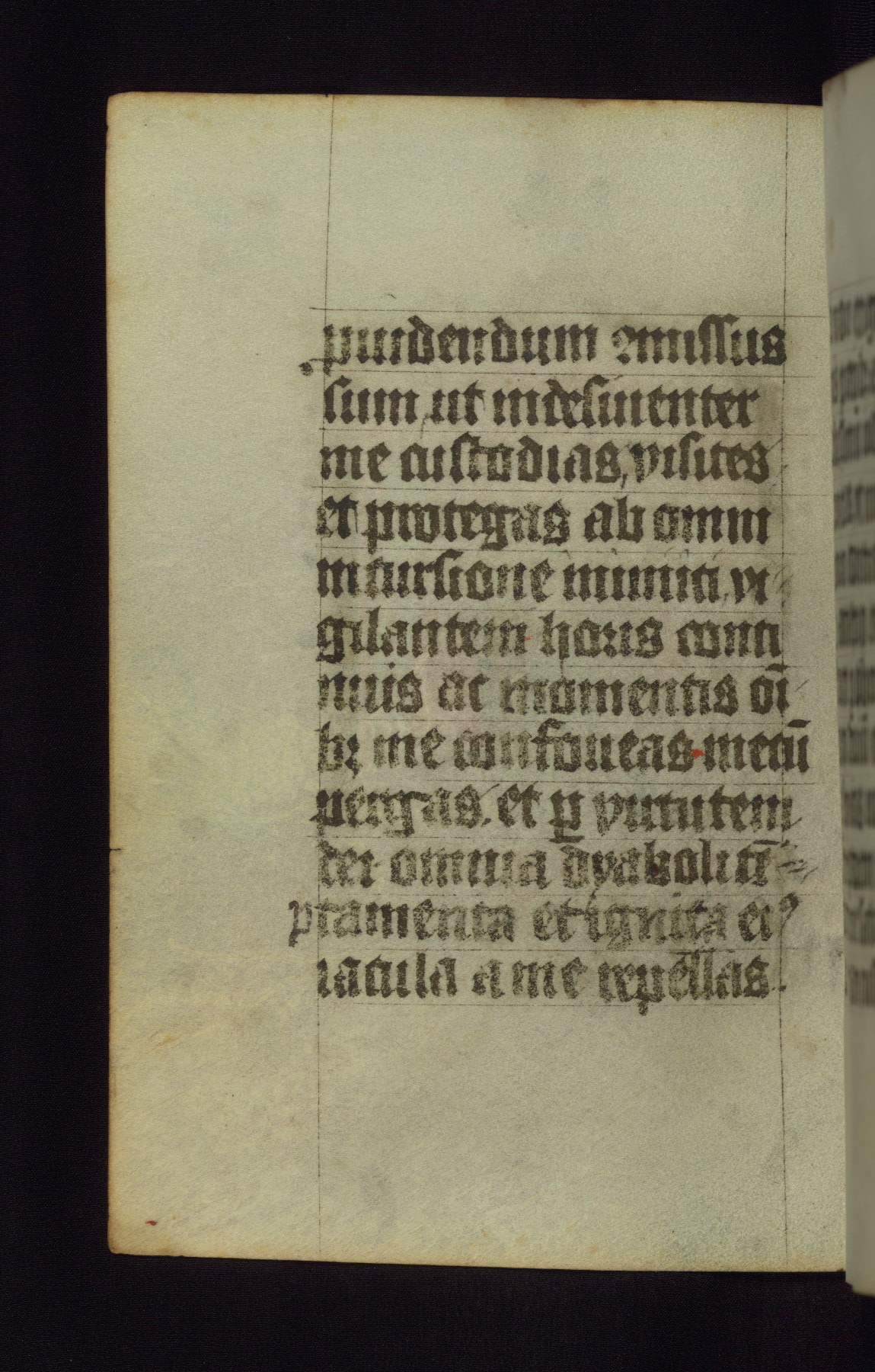 This late medieval German prayer book is an example of a highly personal devotional item. It was originally made ca. 1440 for Leonhard von Laymingen, bishop of Passau (fl. 1423-1451). The text primarily features a series of prayers to various saints as well as prayers for travelings. Many illuminations and some text pages have been excised, but the book is nonetheless extensively decorated. The prayer book's illuminations consist of thirty miniatures and four historiated initials that complement the text, usually with illustrations of saints. Bishop von Laymingen appears in his prayer book several times kneeling before the saint to which that particular prayer is dedicated. Additionally, the Laymingen coat of arms appears twenty times throughout the book.