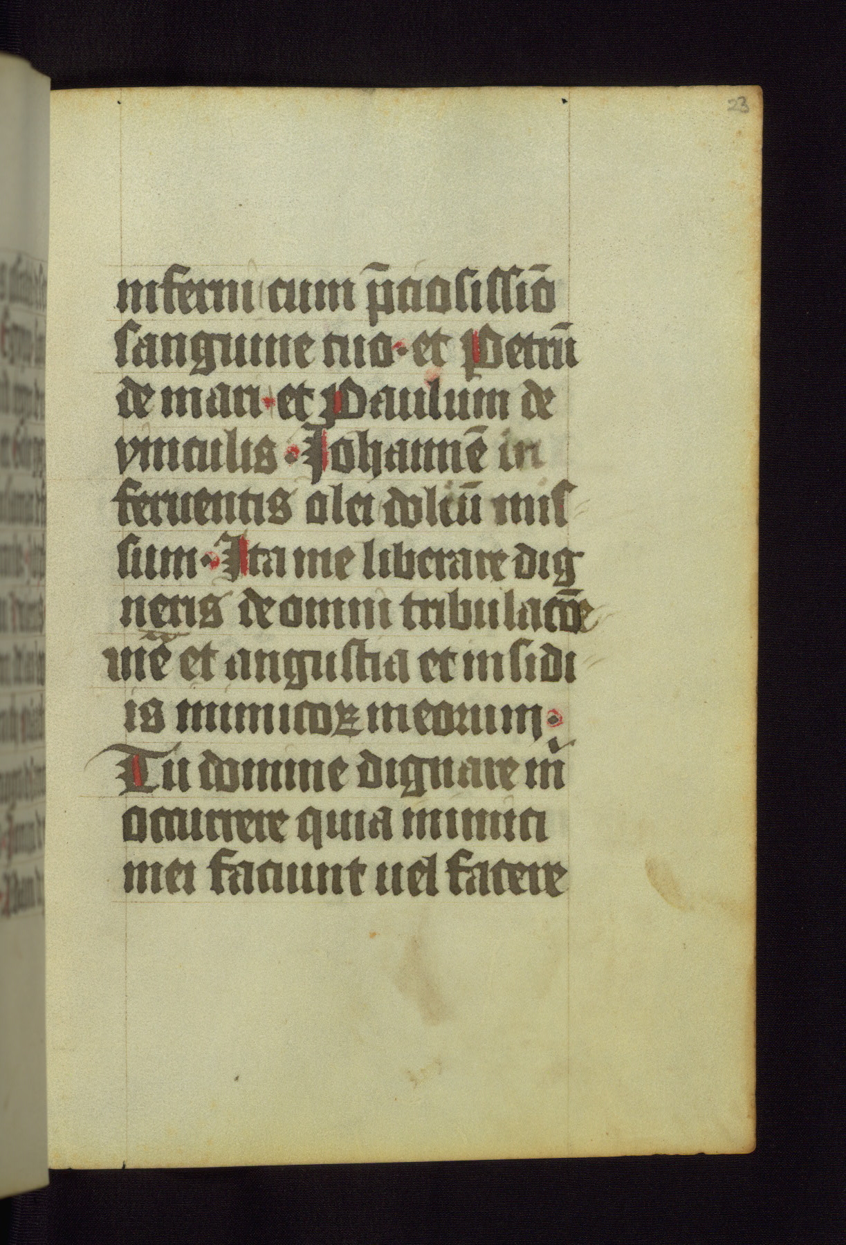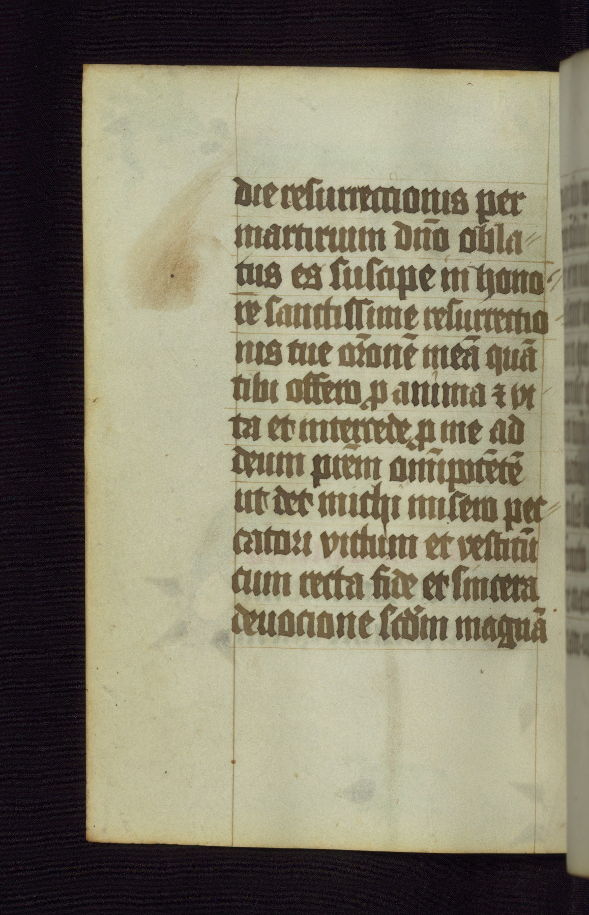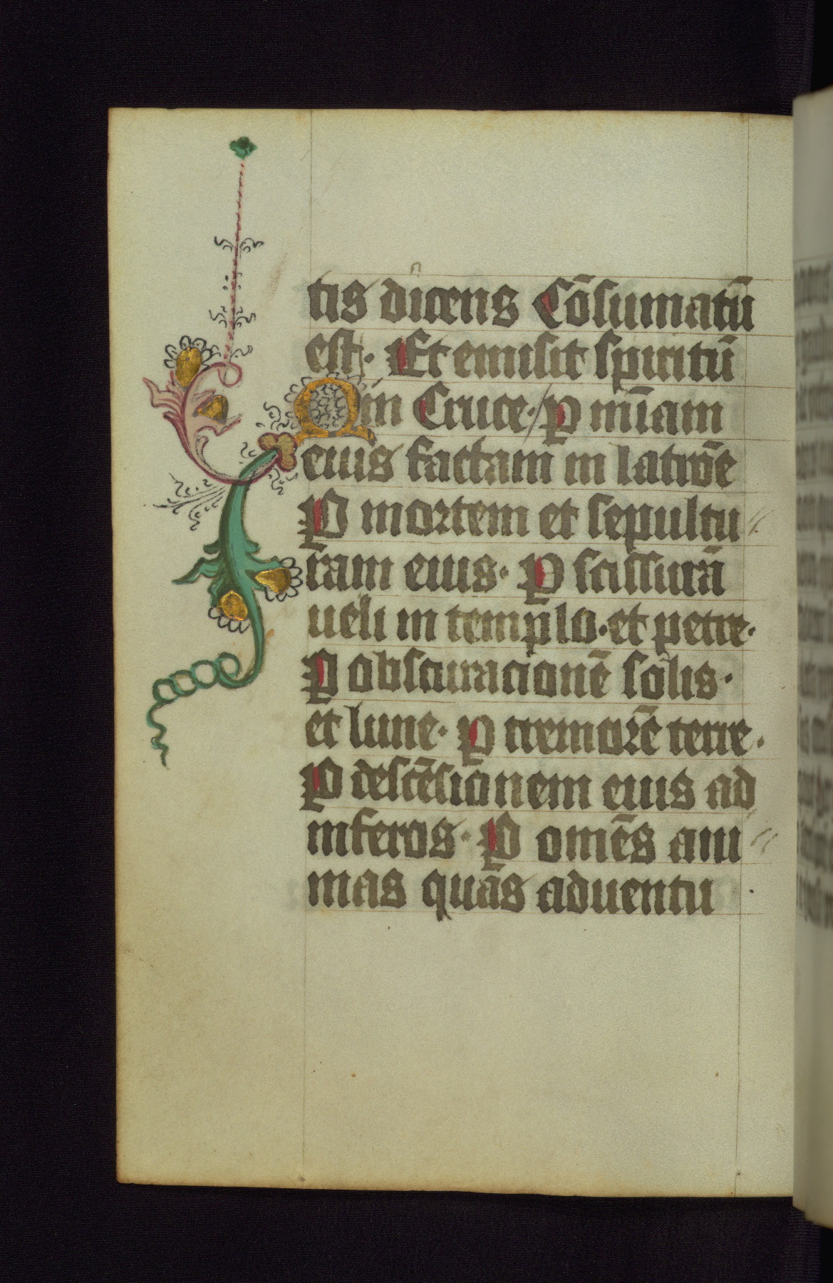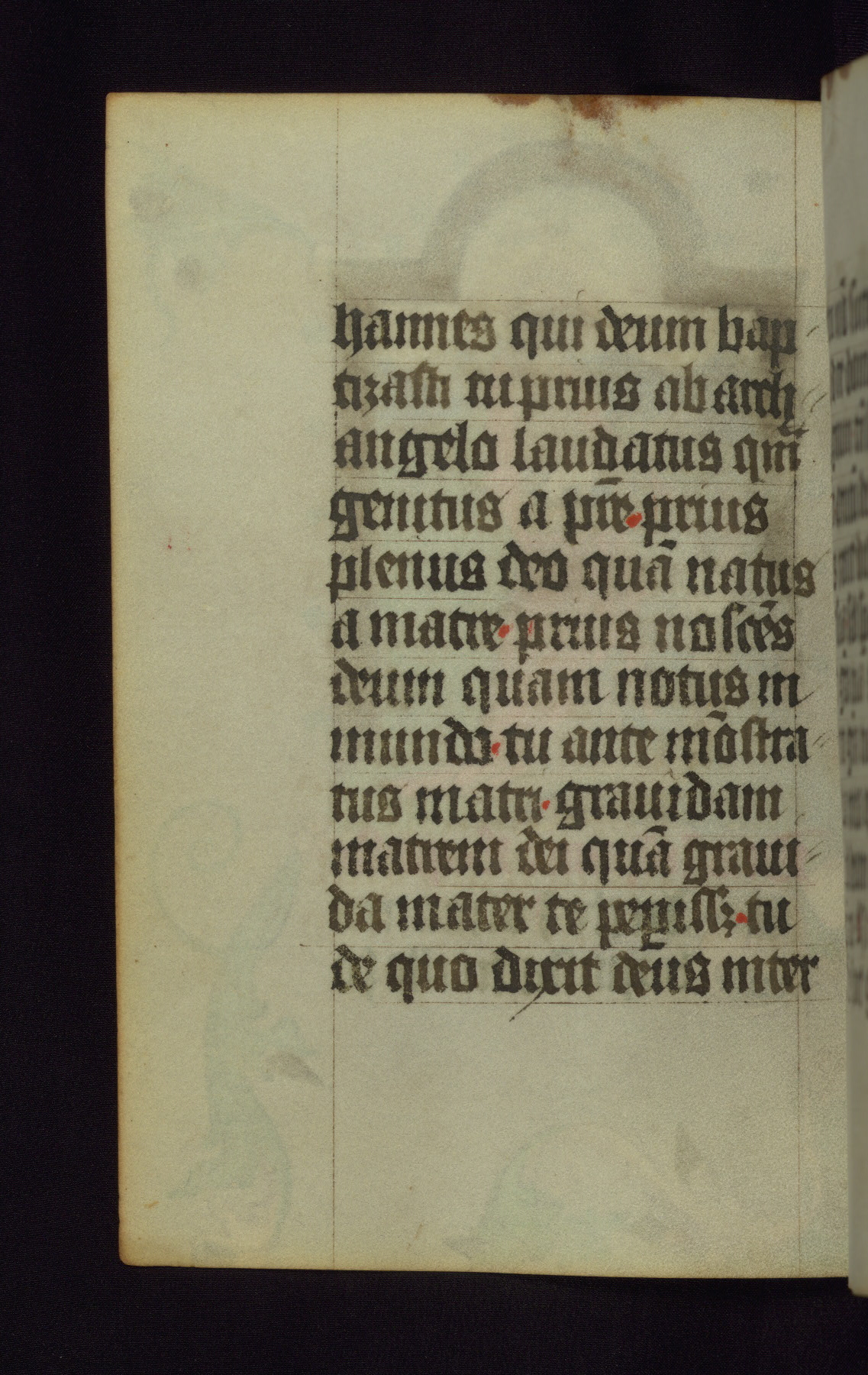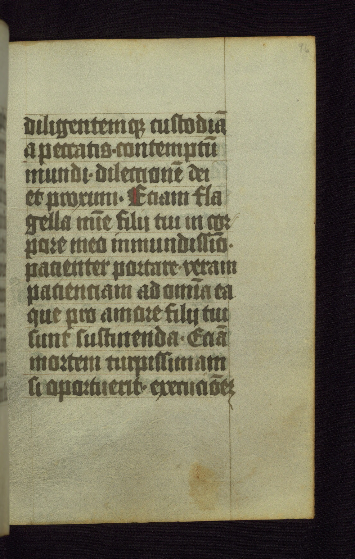 This late medieval German prayer book is an example of a highly personal devotional item. It was originally made ca. 1440 for Leonhard von Laymingen, bishop of Passau (fl. 1423-1451). The text primarily features a series of prayers to various saints as well as prayers for travelings. Many illuminations and some text pages have been excised, but the book is nonetheless extensively decorated. The prayer book's illuminations consist of thirty miniatures and four historiated initials that complement the text, usually with illustrations of saints. Bishop von Laymingen appears in his prayer book several times kneeling before the saint to which that particular prayer is dedicated. Additionally, the Laymingen coat of arms appears twenty times throughout the book.