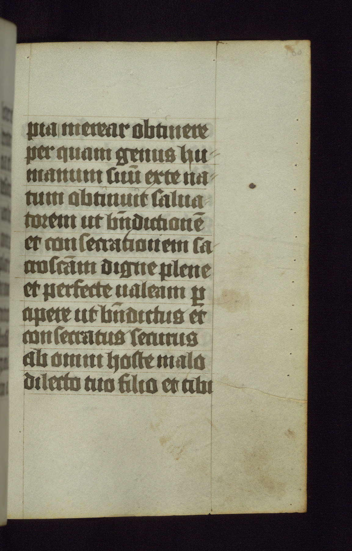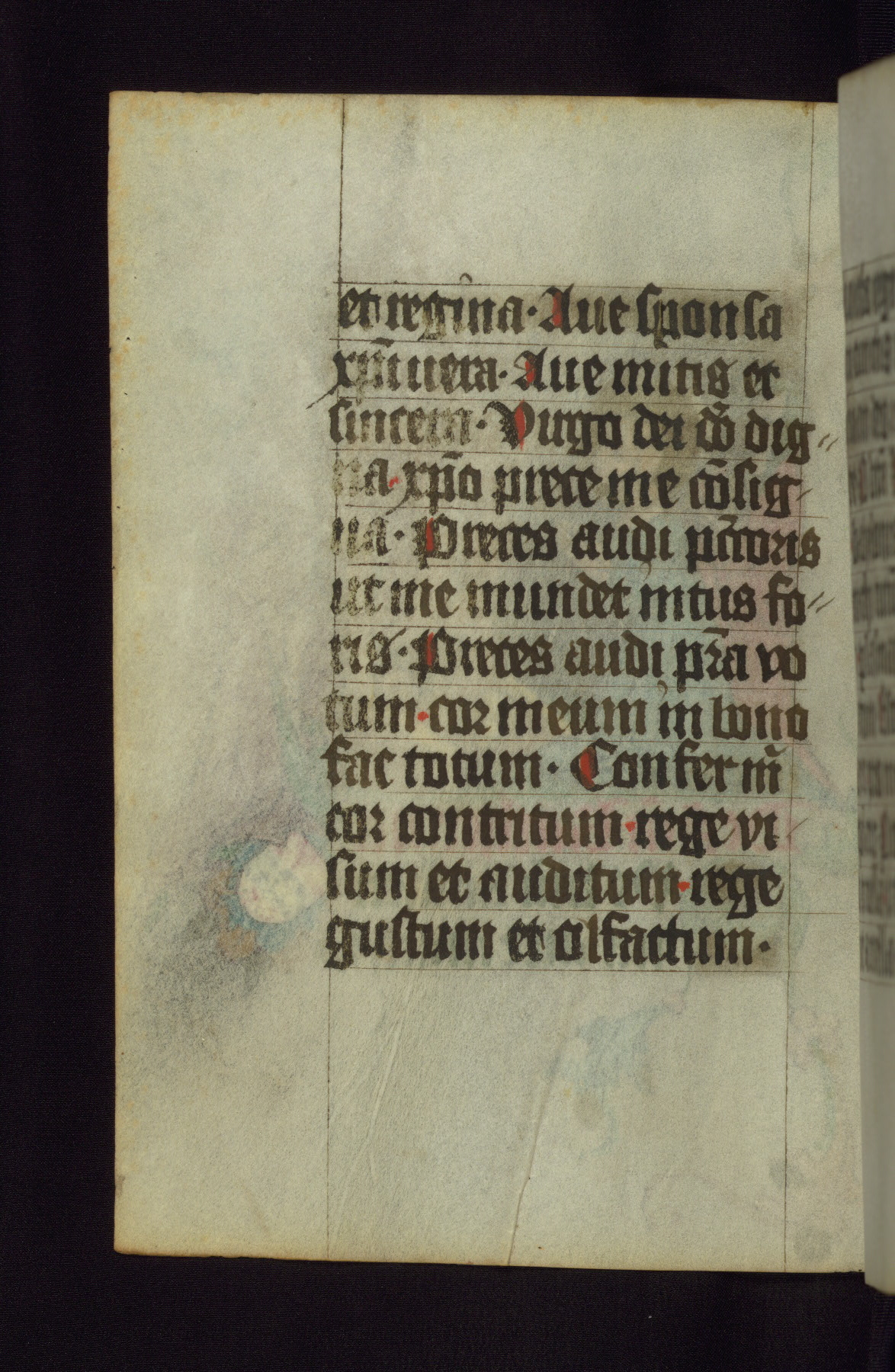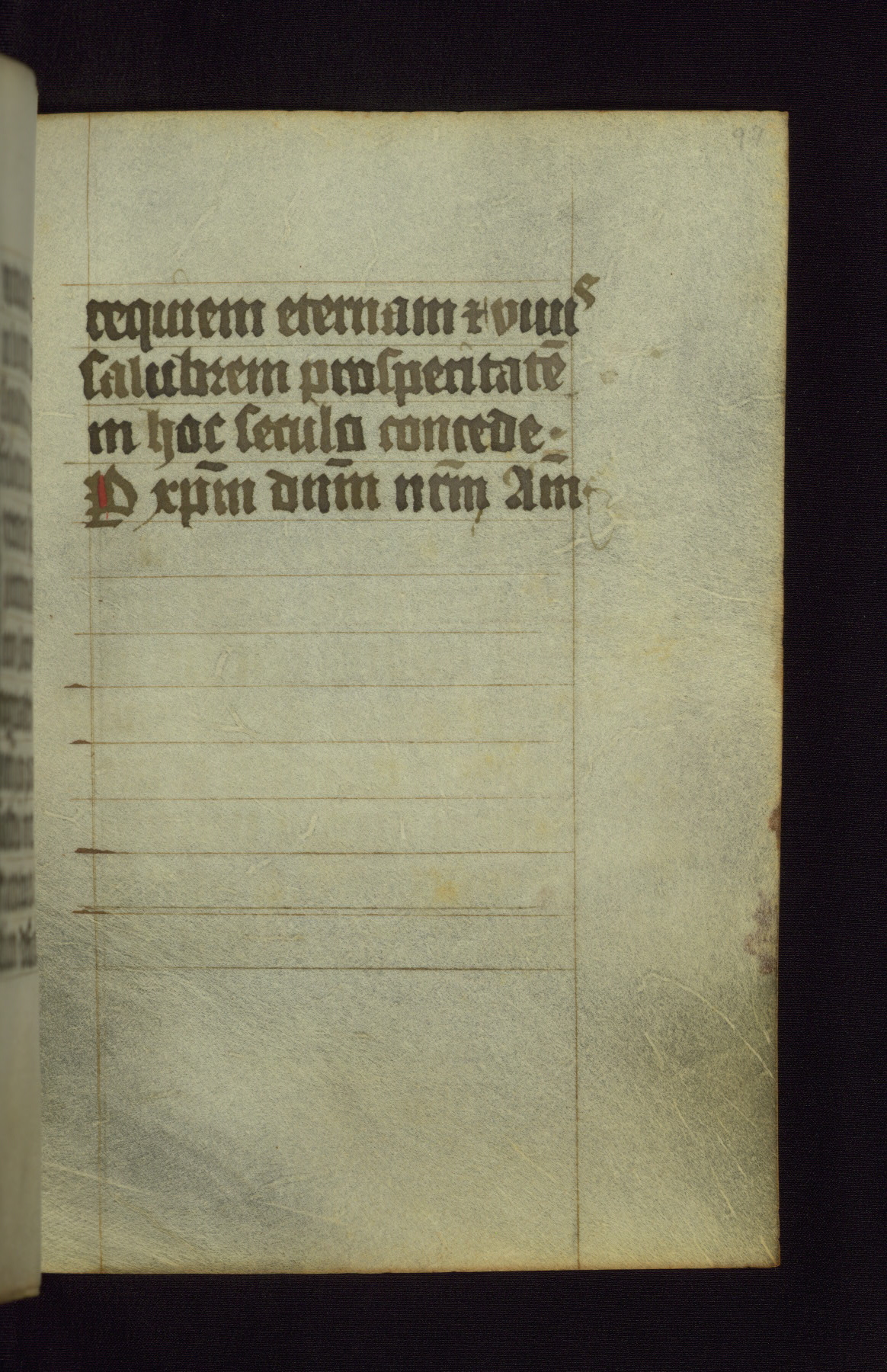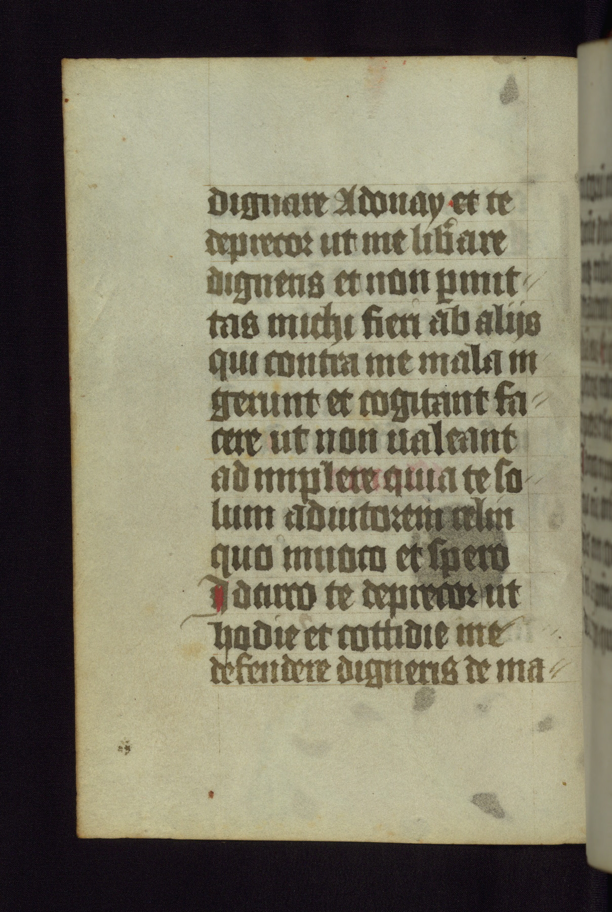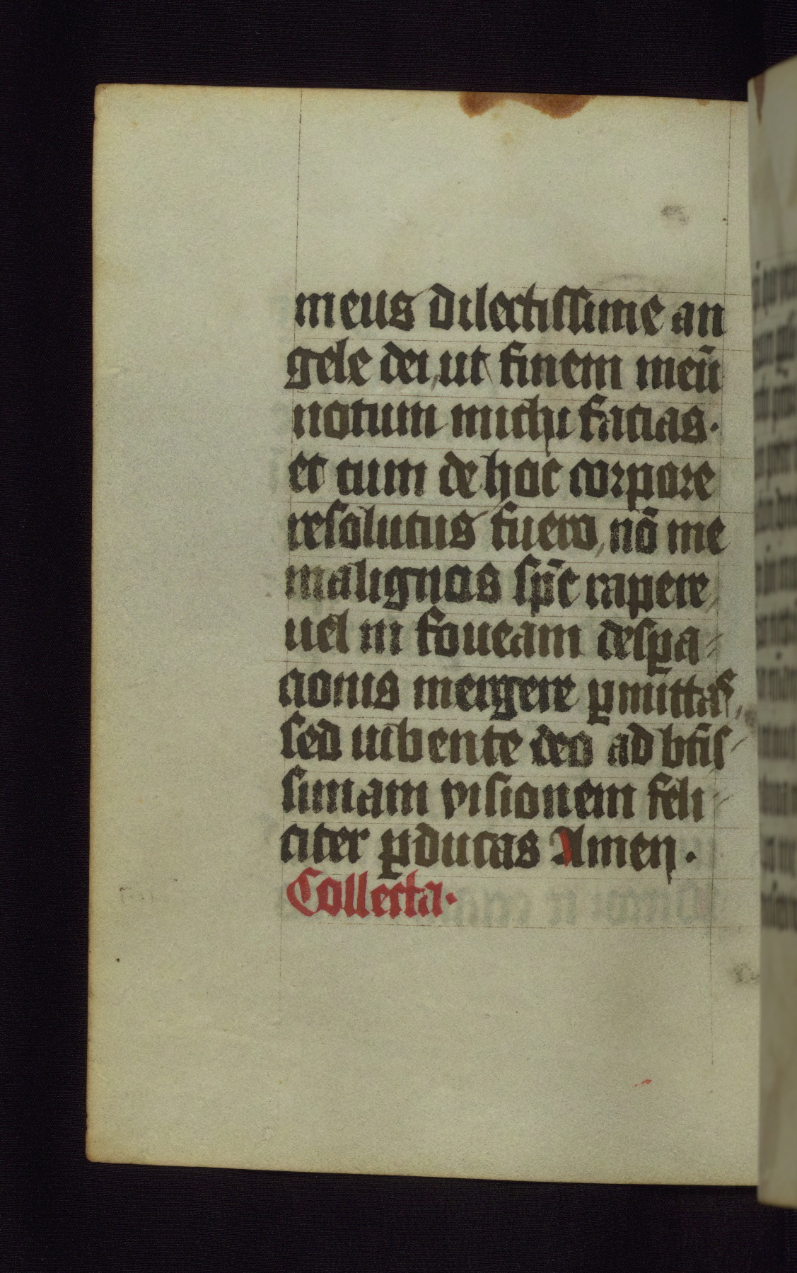 This late medieval German prayer book is an example of a highly personal devotional item. It was originally made ca. 1440 for Leonhard von Laymingen, bishop of Passau (fl. 1423-1451). The text primarily features a series of prayers to various saints as well as prayers for travelings. Many illuminations and some text pages have been excised, but the book is nonetheless extensively decorated. The prayer book's illuminations consist of thirty miniatures and four historiated initials that complement the text, usually with illustrations of saints. Bishop von Laymingen appears in his prayer book several times kneeling before the saint to which that particular prayer is dedicated. Additionally, the Laymingen coat of arms appears twenty times throughout the book.