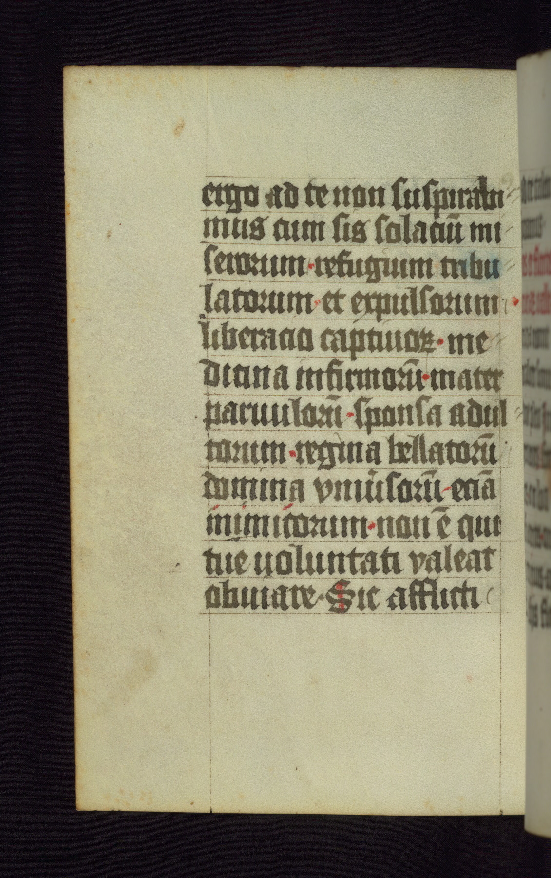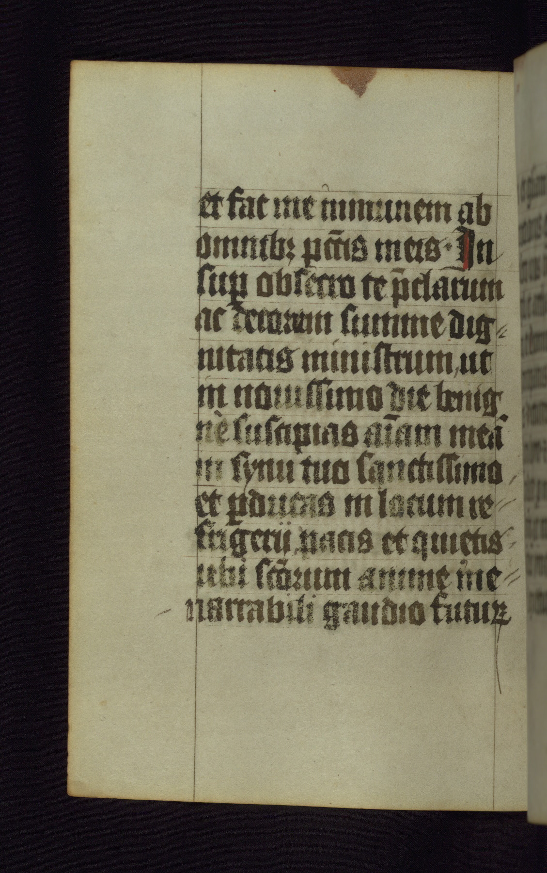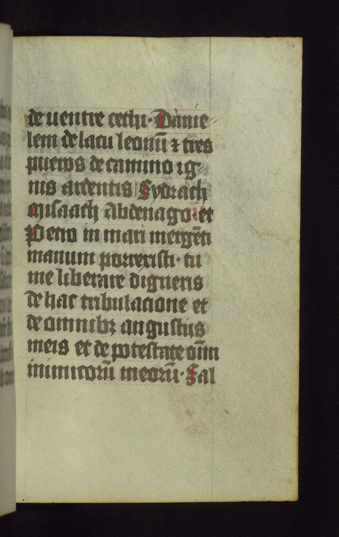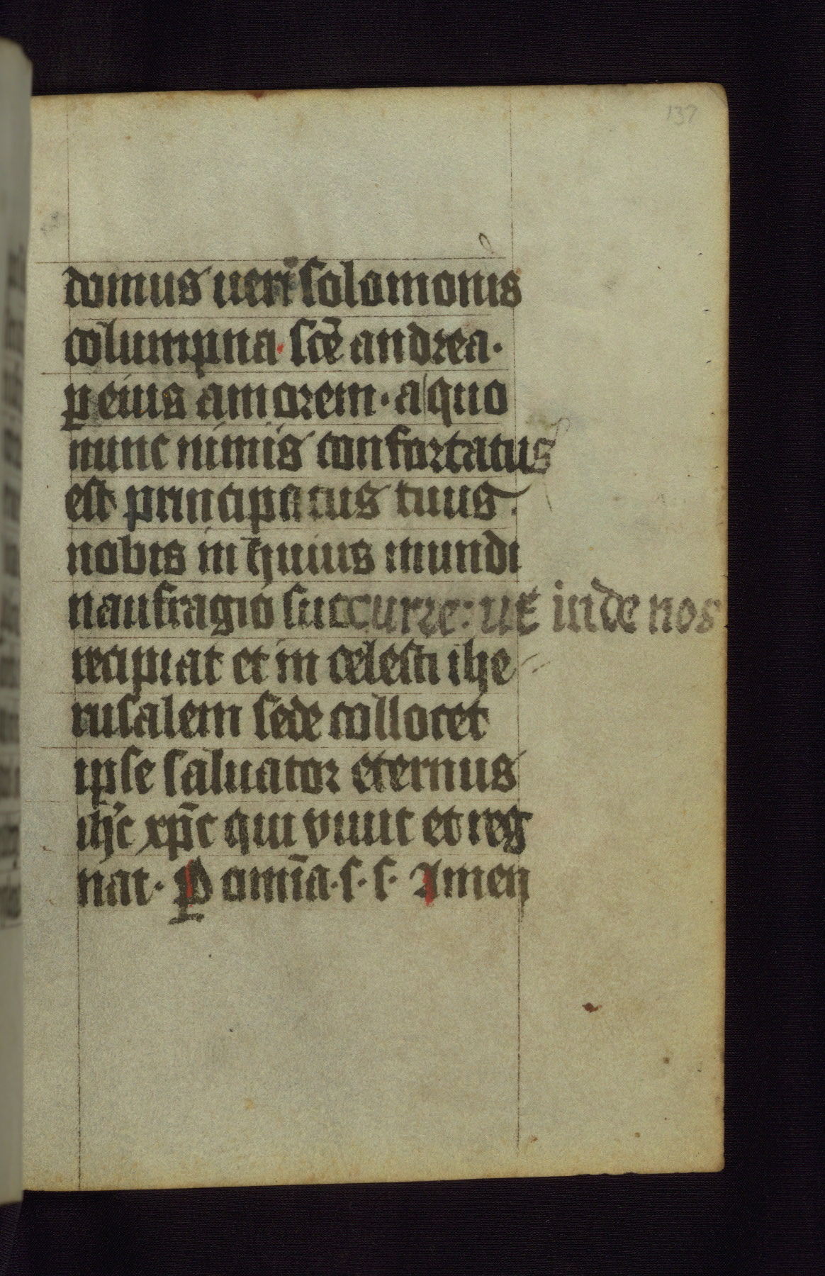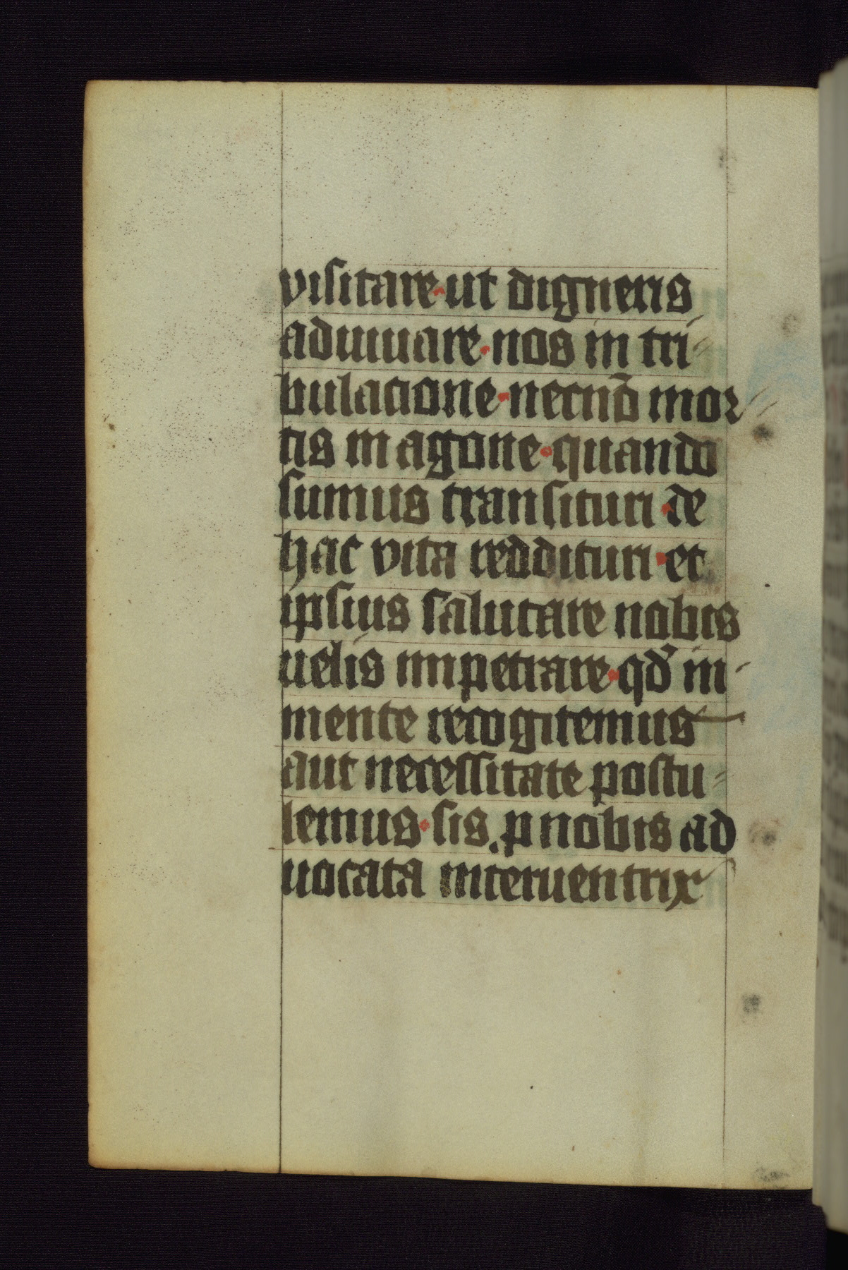 This late medieval German prayer book is an example of a highly personal devotional item. It was originally made ca. 1440 for Leonhard von Laymingen, bishop of Passau (fl. 1423-1451). The text primarily features a series of prayers to various saints as well as prayers for travelings. Many illuminations and some text pages have been excised, but the book is nonetheless extensively decorated. The prayer book's illuminations consist of thirty miniatures and four historiated initials that complement the text, usually with illustrations of saints. Bishop von Laymingen appears in his prayer book several times kneeling before the saint to which that particular prayer is dedicated. Additionally, the Laymingen coat of arms appears twenty times throughout the book.
