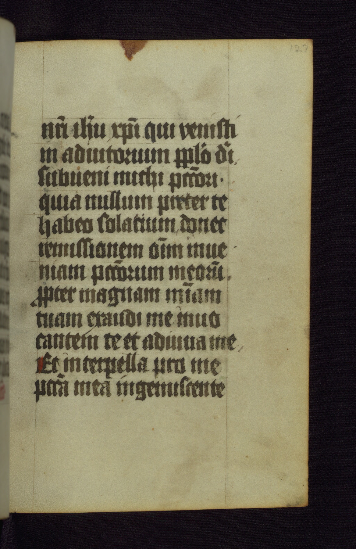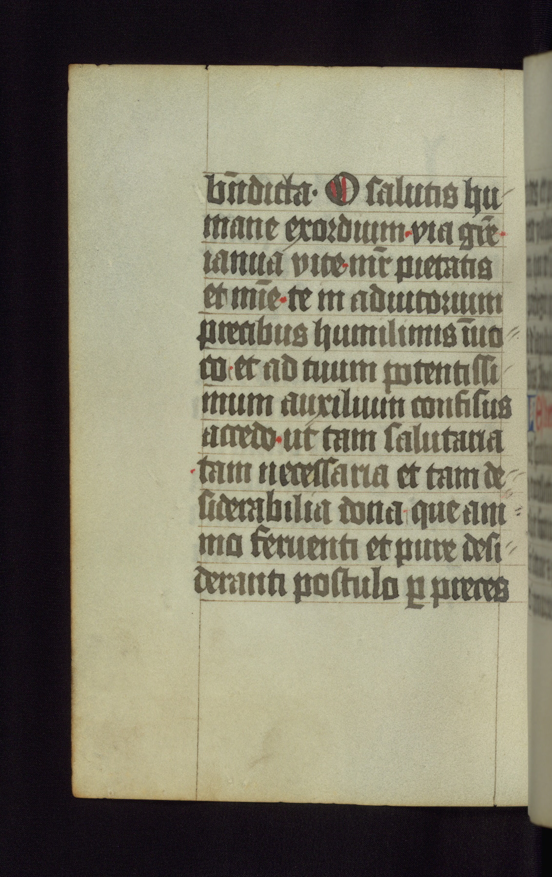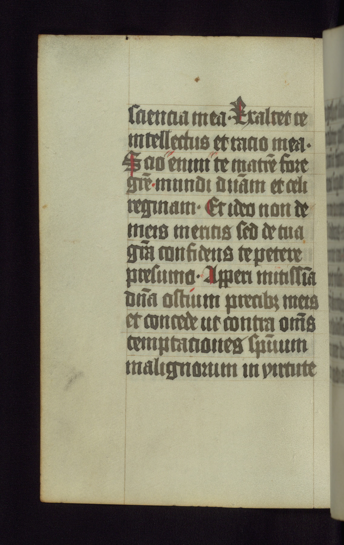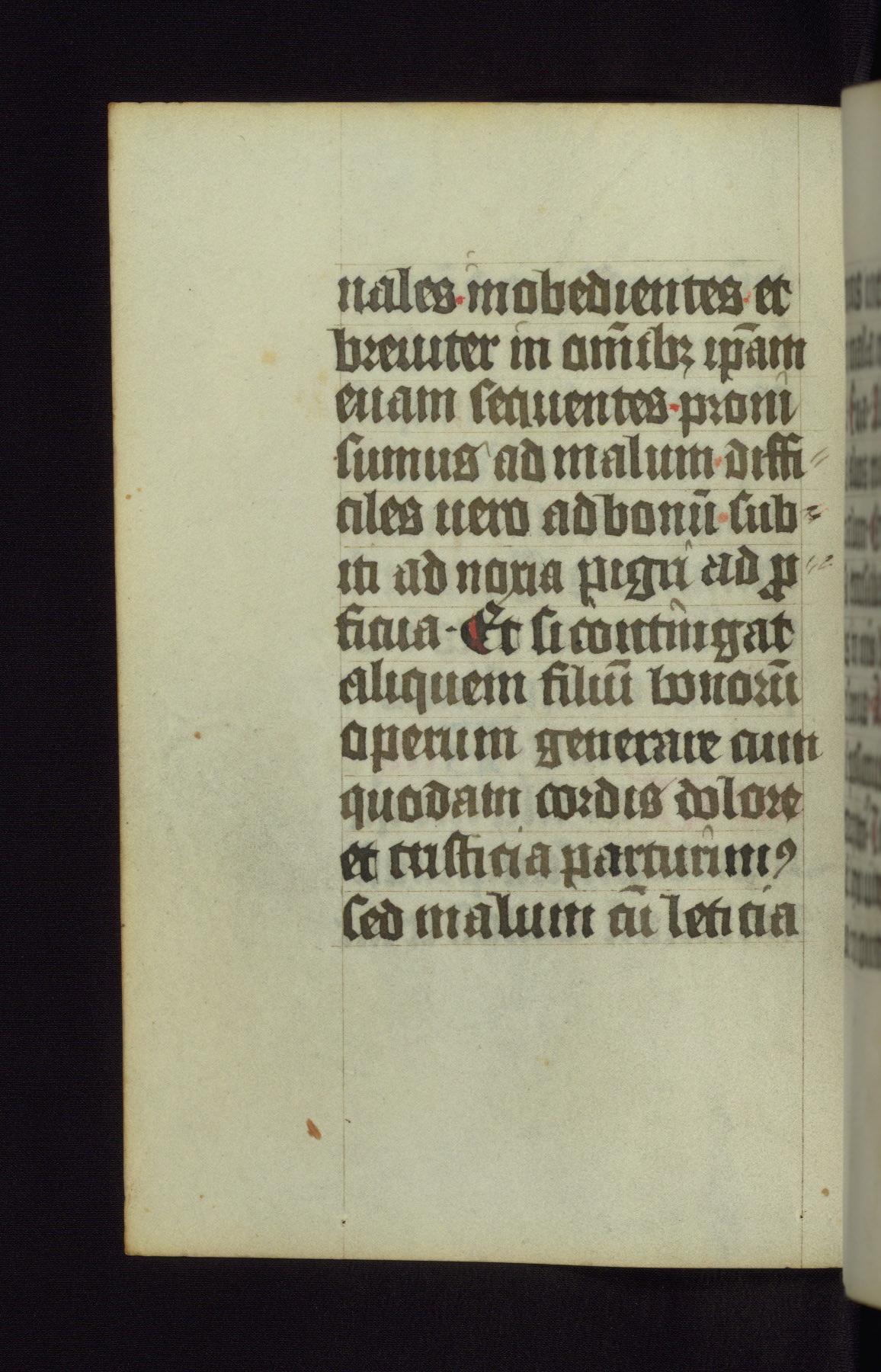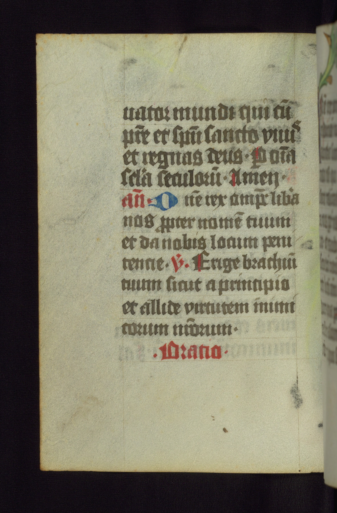 This late medieval German prayer book is an example of a highly personal devotional item. It was originally made ca. 1440 for Leonhard von Laymingen, bishop of Passau (fl. 1423-1451). The text primarily features a series of prayers to various saints as well as prayers for travelings. Many illuminations and some text pages have been excised, but the book is nonetheless extensively decorated. The prayer book's illuminations consist of thirty miniatures and four historiated initials that complement the text, usually with illustrations of saints. Bishop von Laymingen appears in his prayer book several times kneeling before the saint to which that particular prayer is dedicated. Additionally, the Laymingen coat of arms appears twenty times throughout the book.