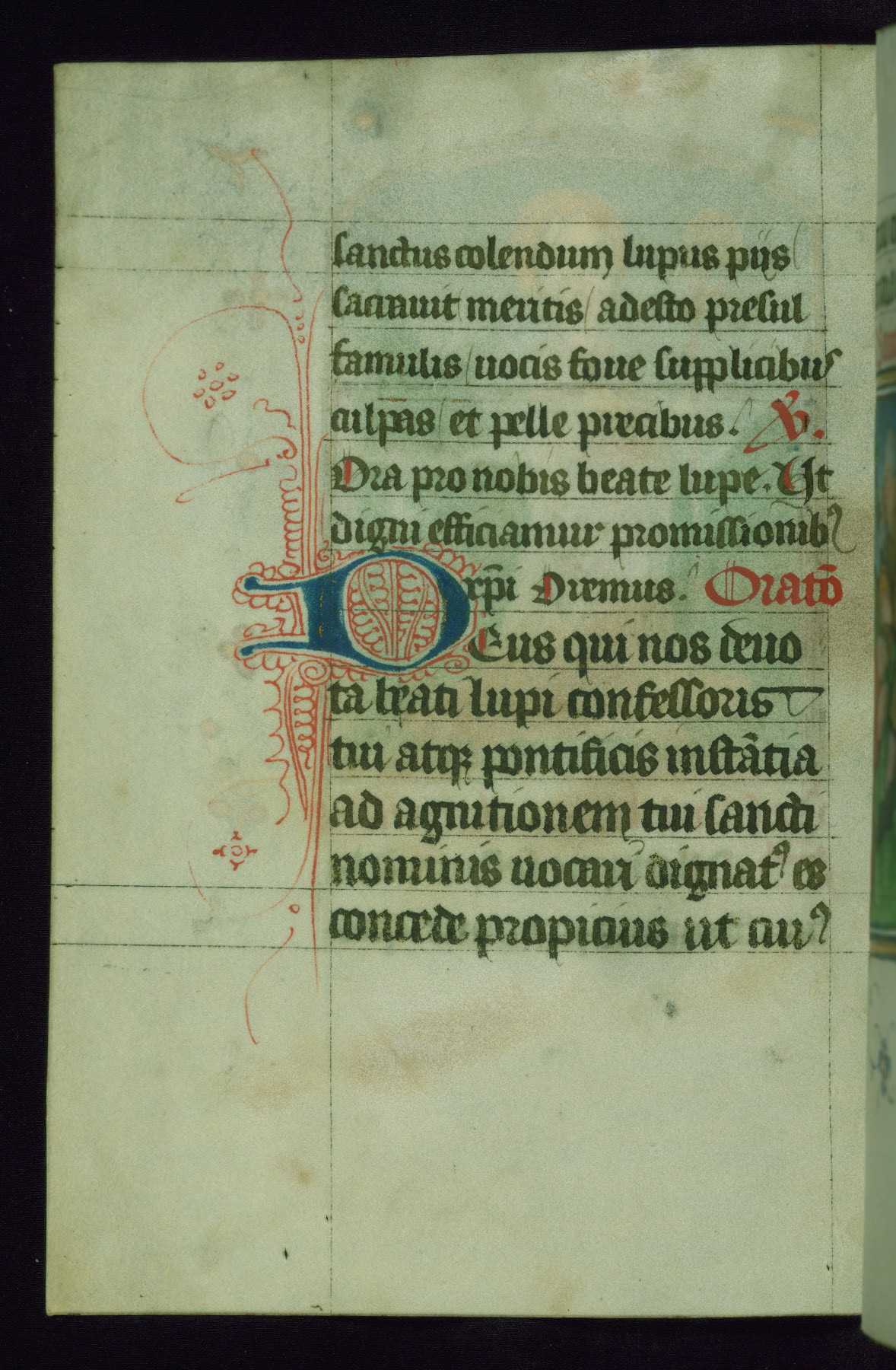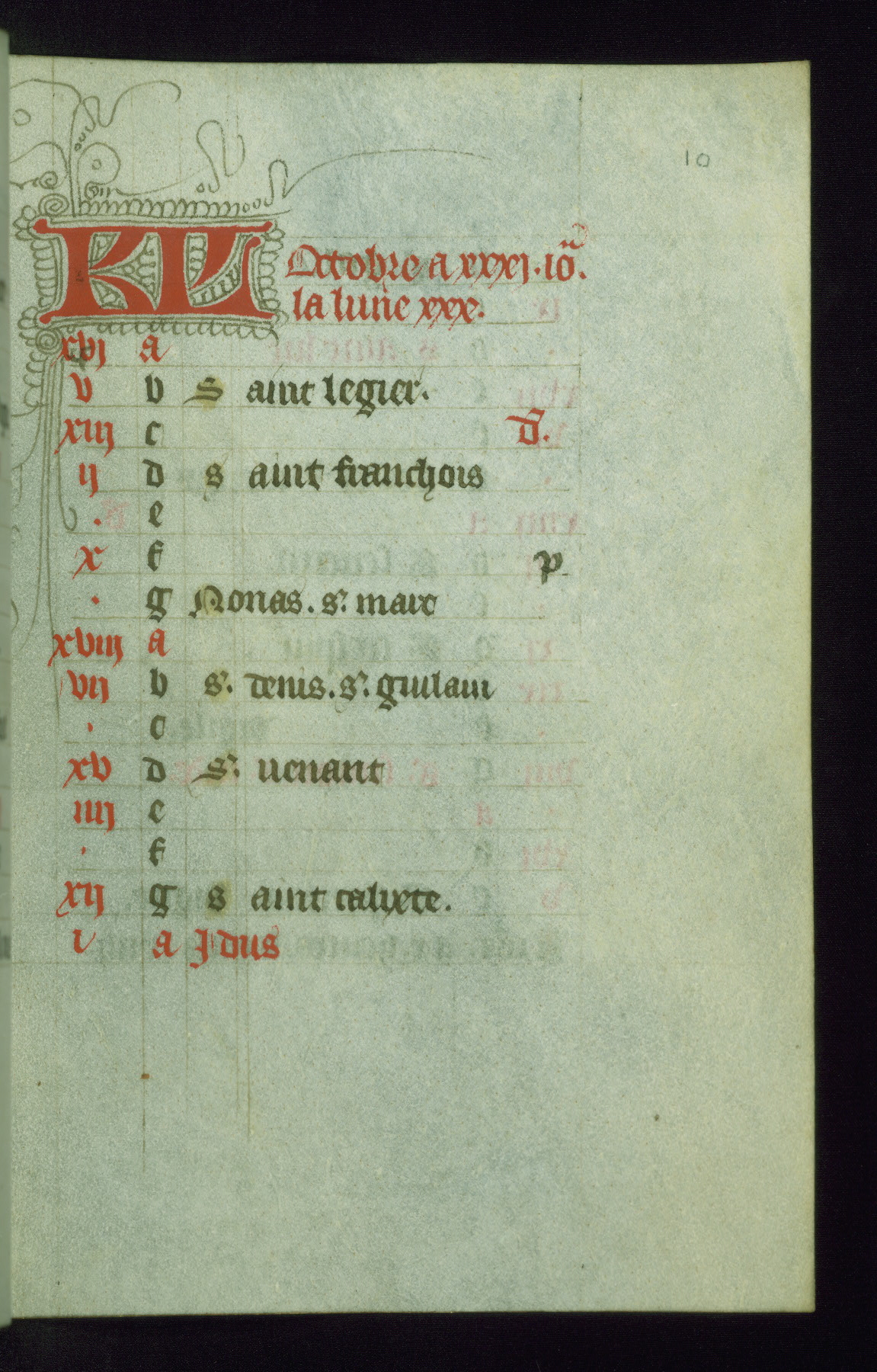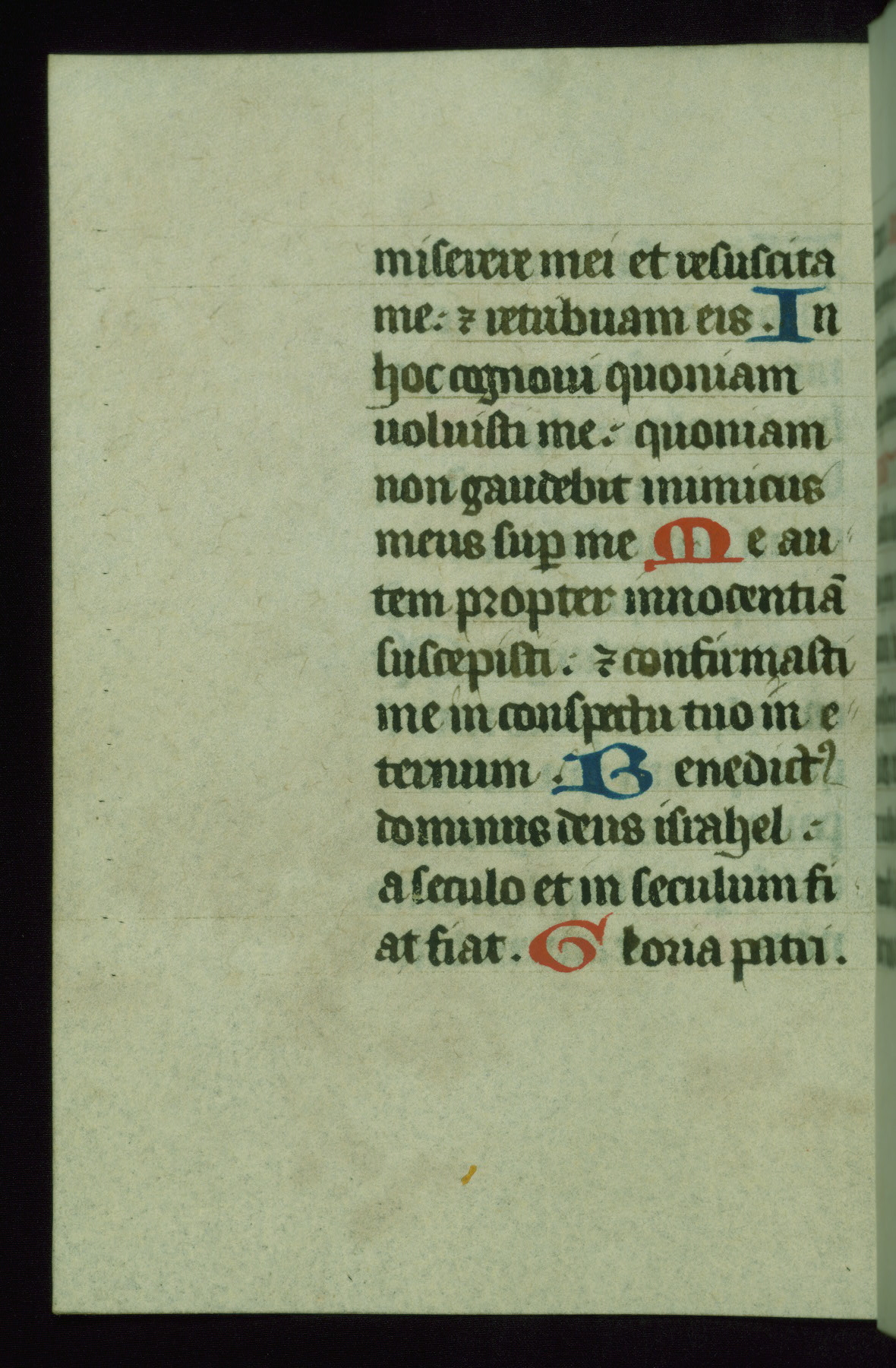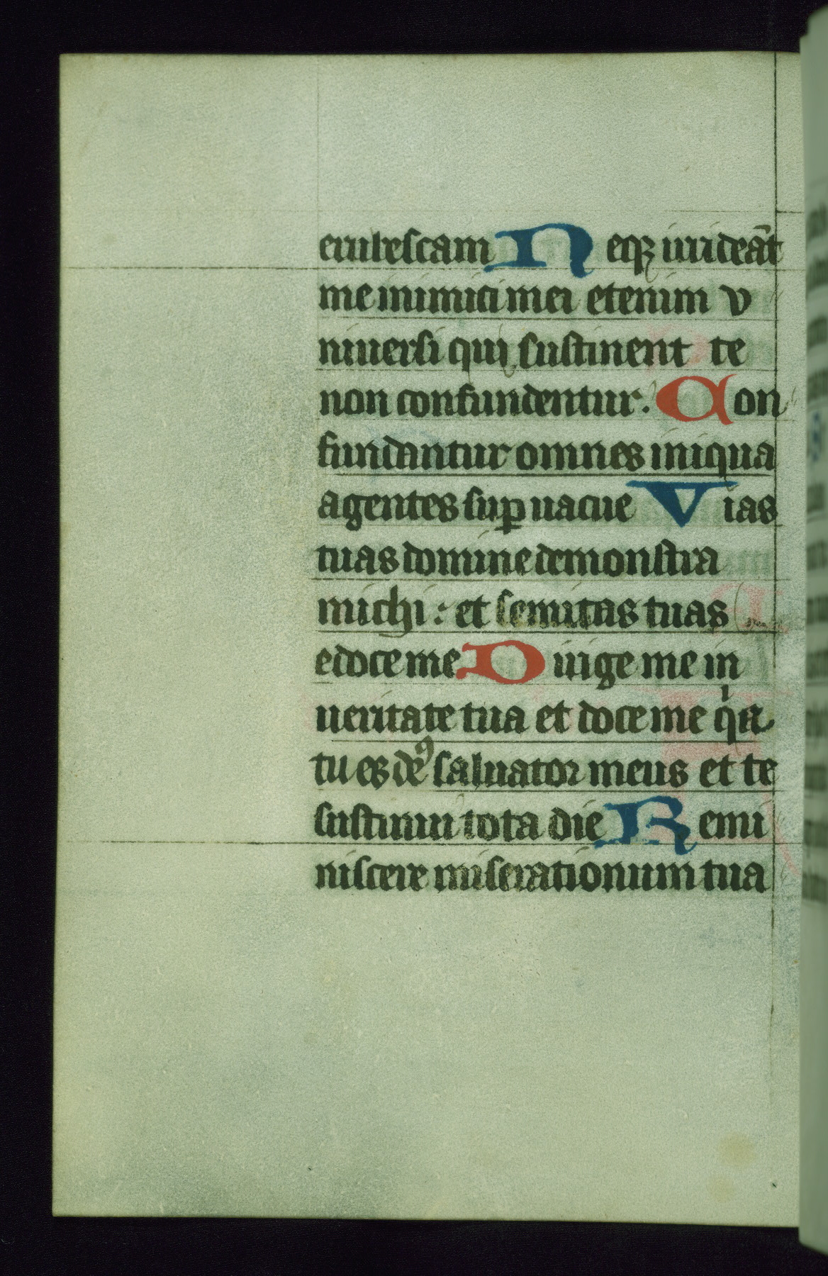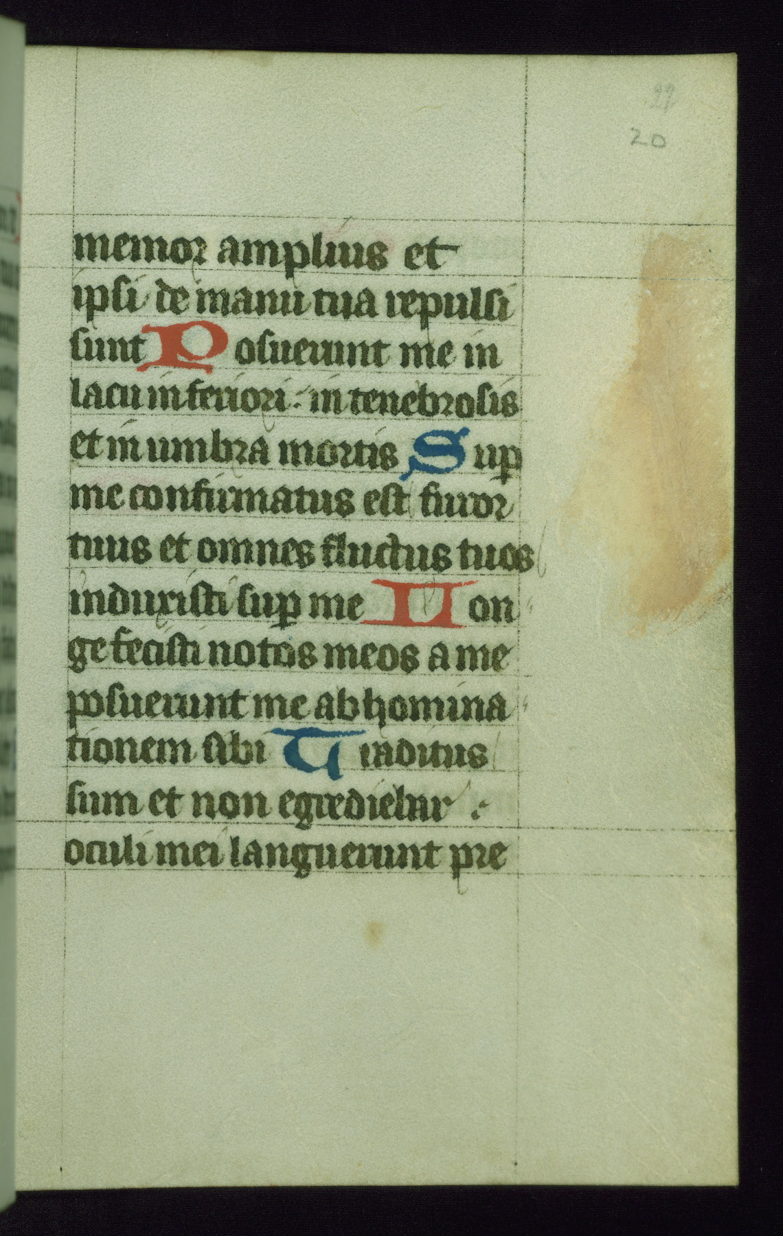 This prayer book was produced ca. 1430-40, likely in Brabant, but the contents of the calendar point to Tournai and Cambrai, and the Office of the Dead is for the use of Liège. North Netherlandish influence, possibly connected with works by the Masters of the Gold Scrolls, is suggested by the style and iconography of its images. The manuscript is notable for its large number of miniatures--forty-eight in total--as well as the sense of narrative within them, and the diversity of the suffrages they illustrate is striking. That the original owner had a strong interest in the Passion is evident in both the choice of texts and the images. The manuscript was well used, and accrued not only additional prayers and suffrages, but devotional objects as well: a pilgrim's badge was once attached to the corner of the image for the suffrage to relics on fol. 160r.