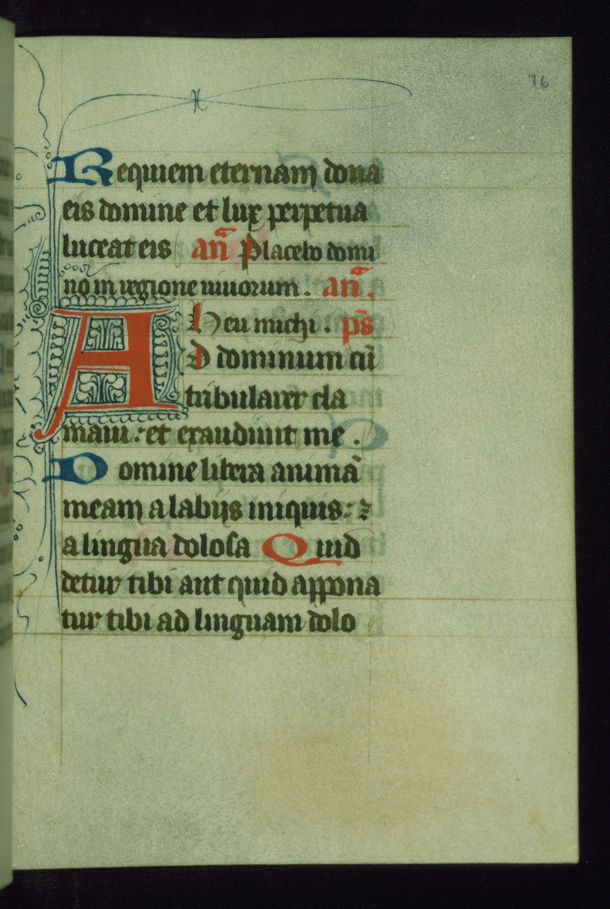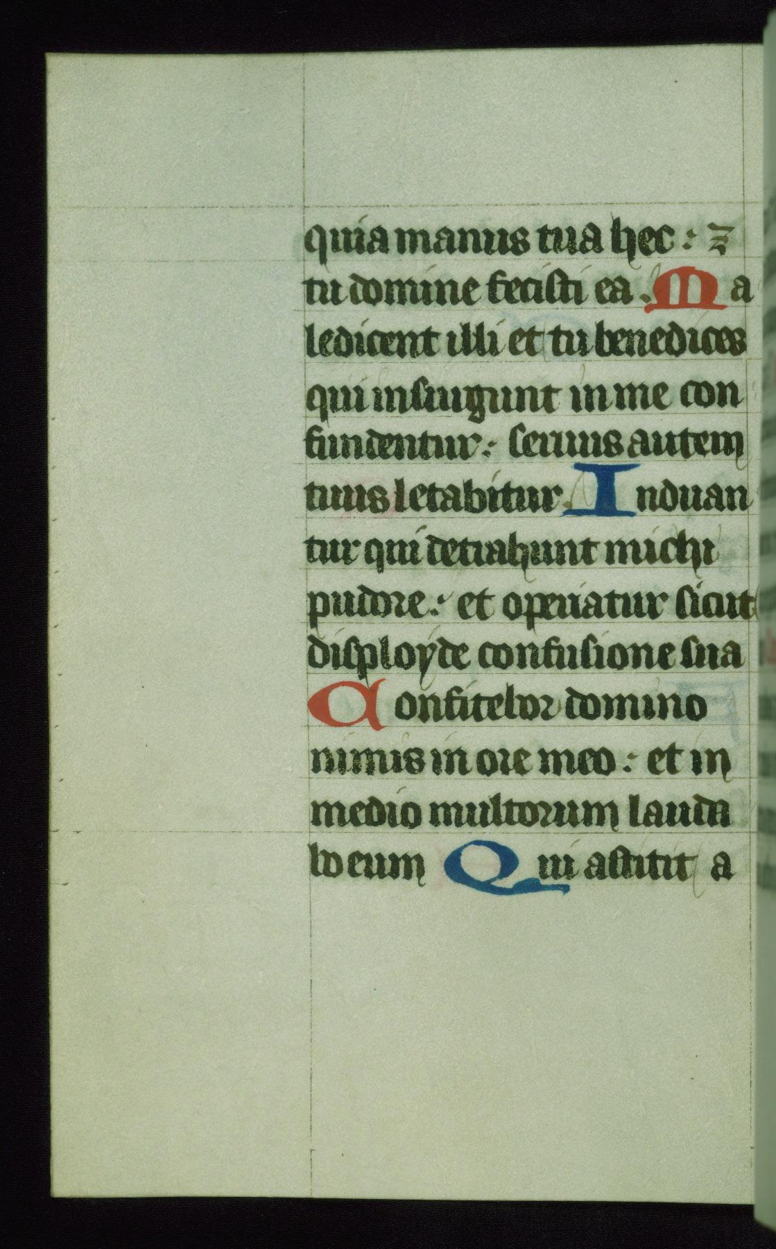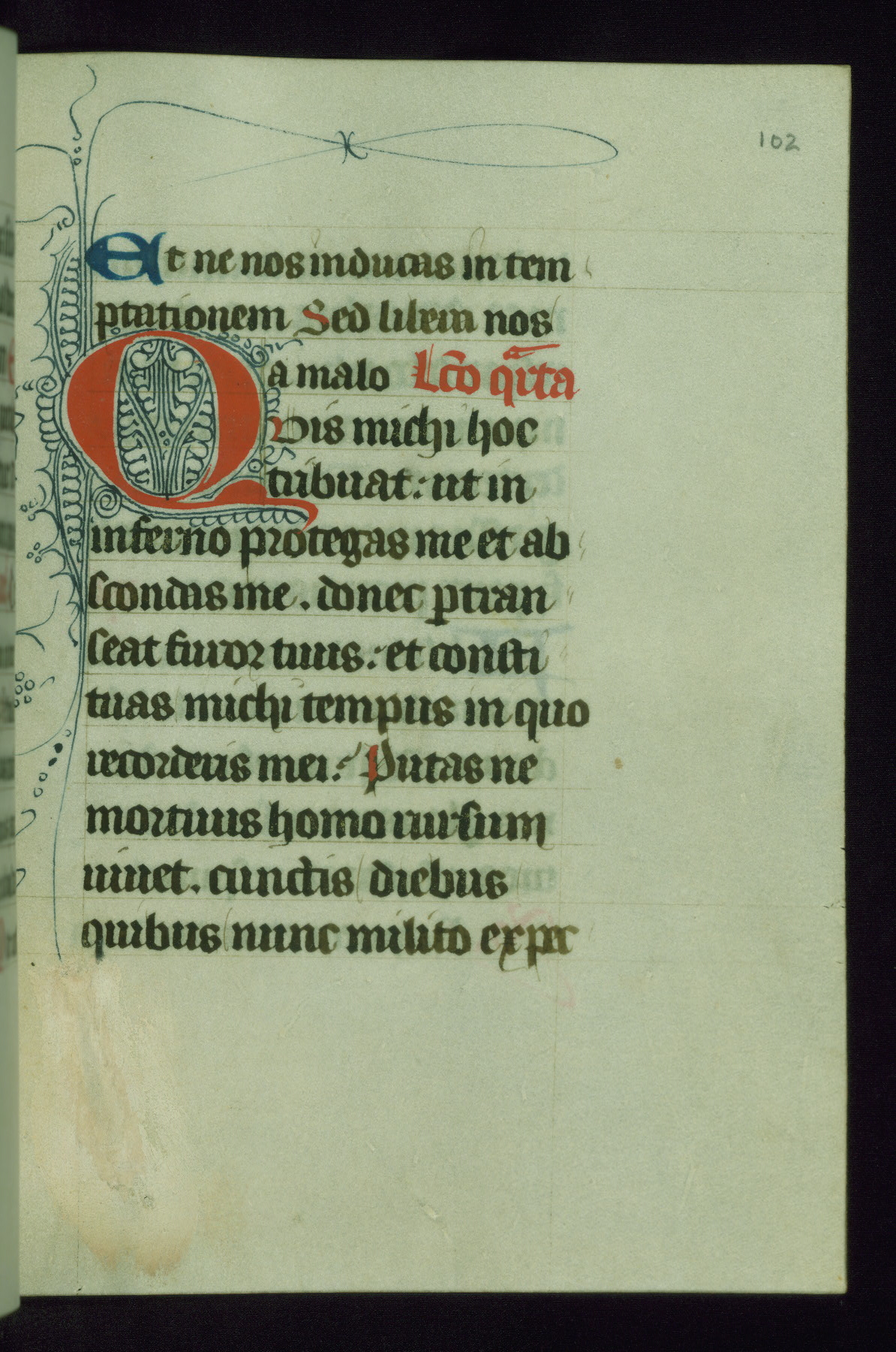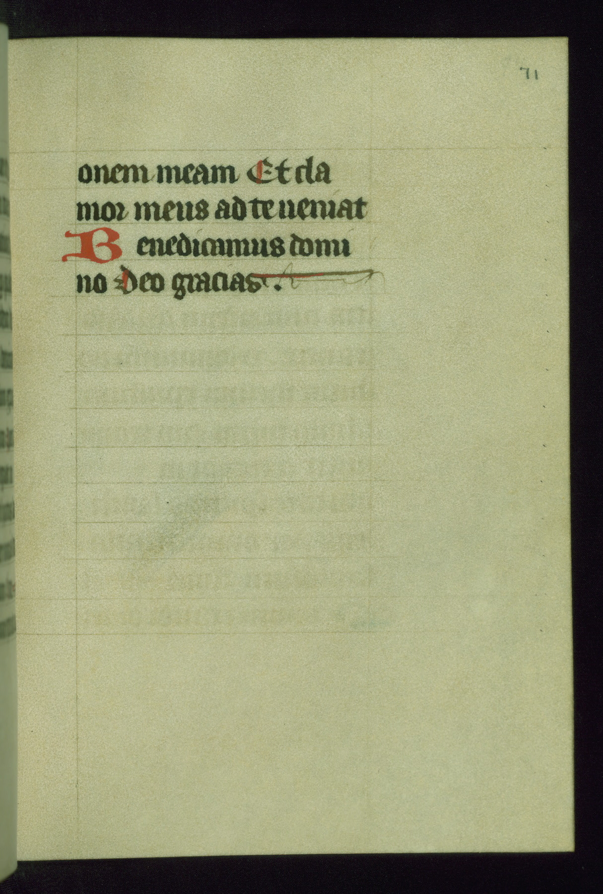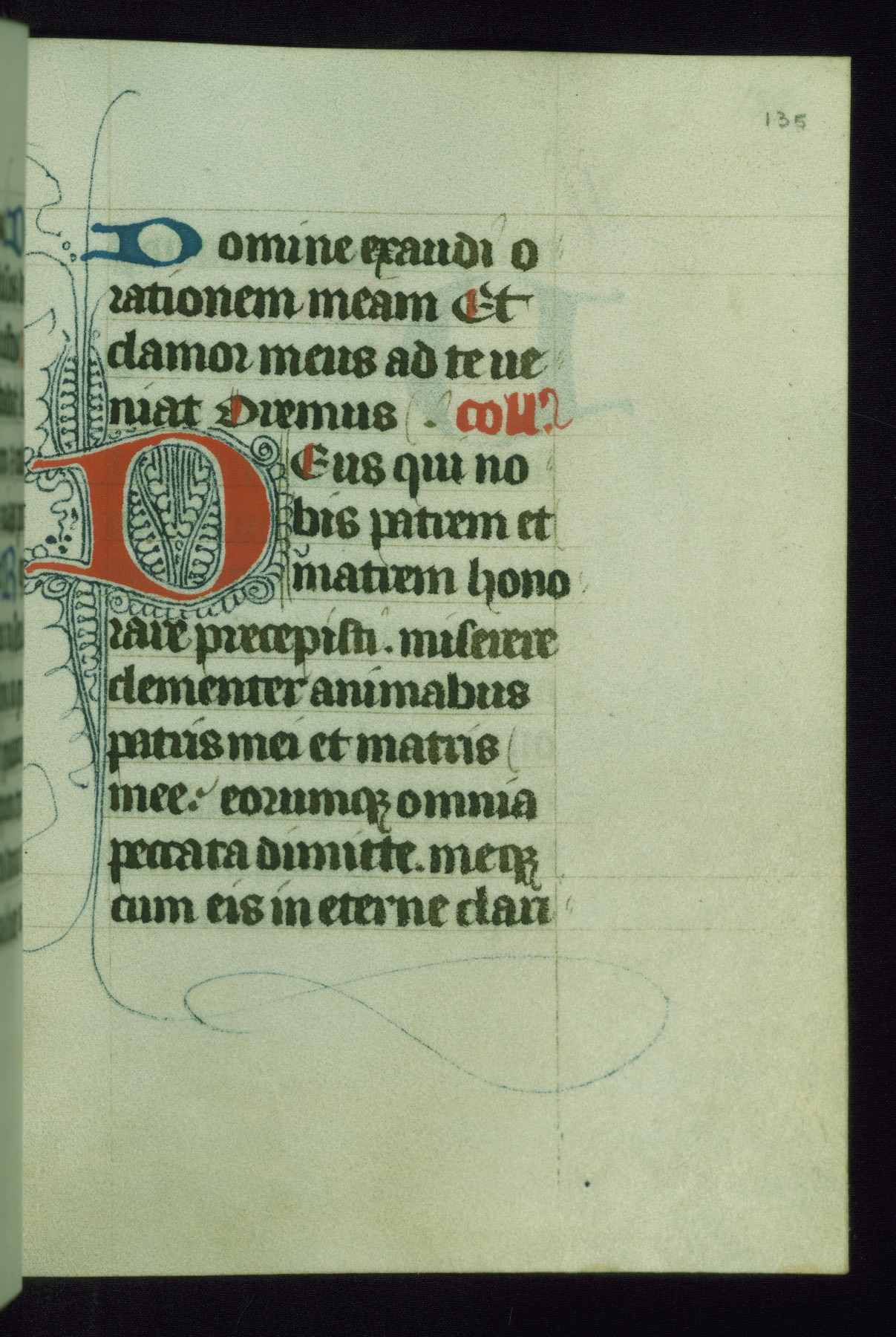 This prayer book was produced ca. 1430-40, likely in Brabant, but the contents of the calendar point to Tournai and Cambrai, and the Office of the Dead is for the use of Liège. North Netherlandish influence, possibly connected with works by the Masters of the Gold Scrolls, is suggested by the style and iconography of its images. The manuscript is notable for its large number of miniatures--forty-eight in total--as well as the sense of narrative within them, and the diversity of the suffrages they illustrate is striking. That the original owner had a strong interest in the Passion is evident in both the choice of texts and the images. The manuscript was well used, and accrued not only additional prayers and suffrages, but devotional objects as well: a pilgrim's badge was once attached to the corner of the image for the suffrage to relics on fol. 160r.
